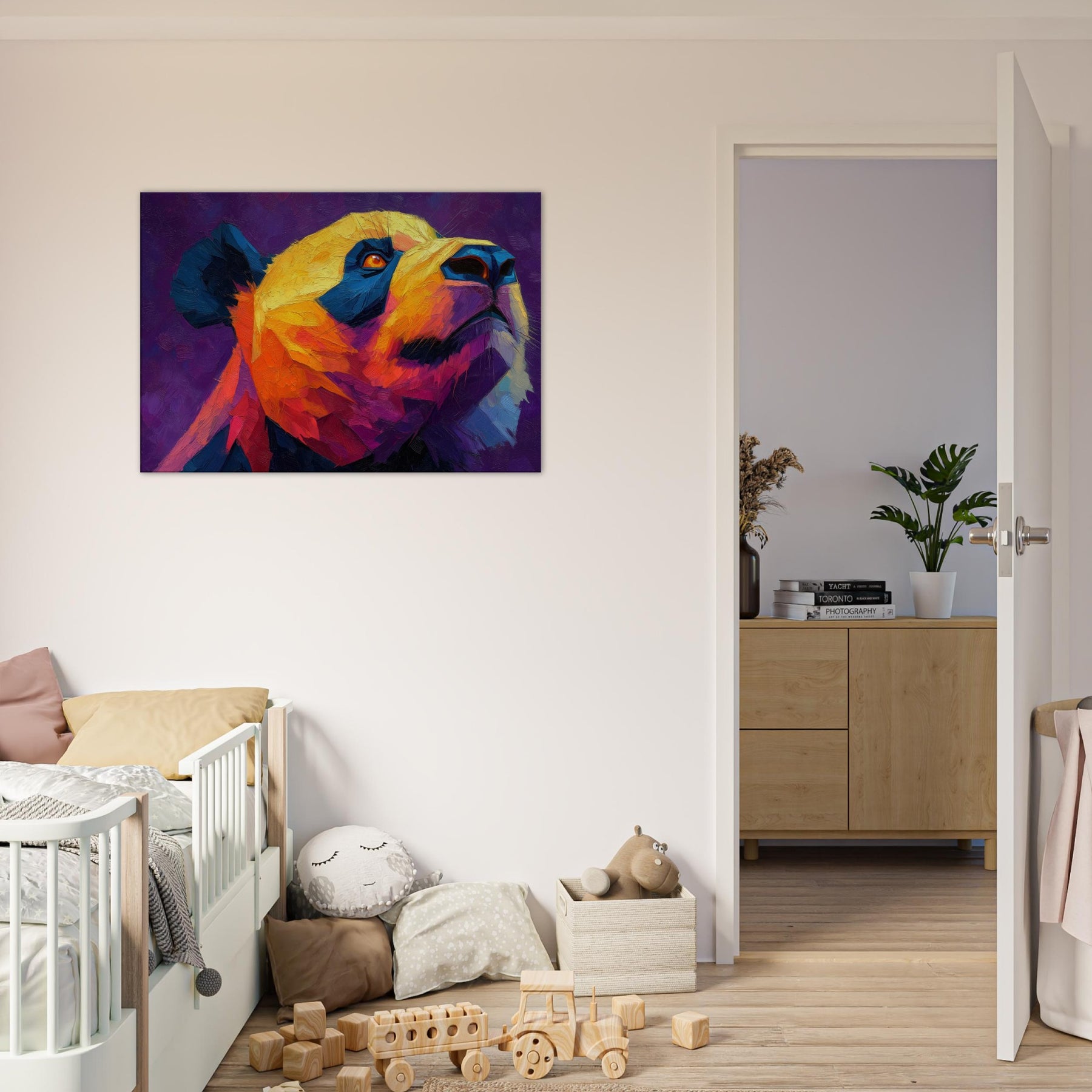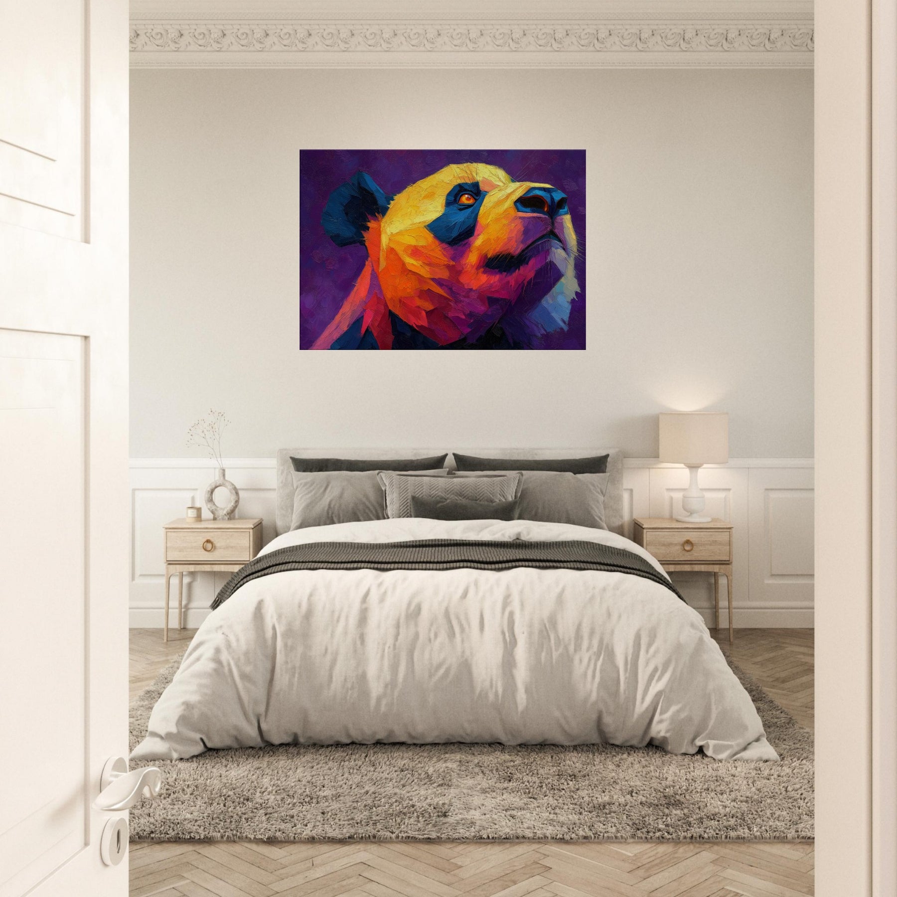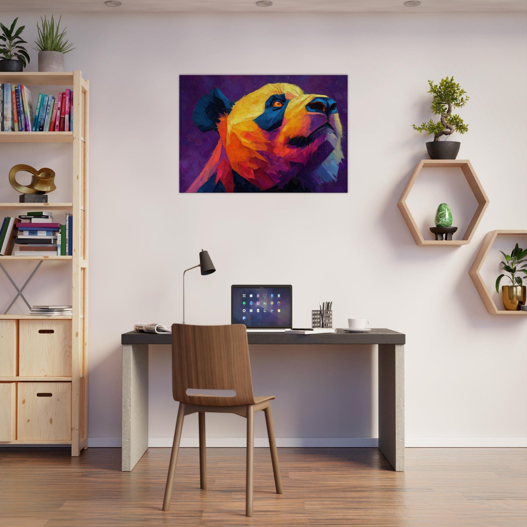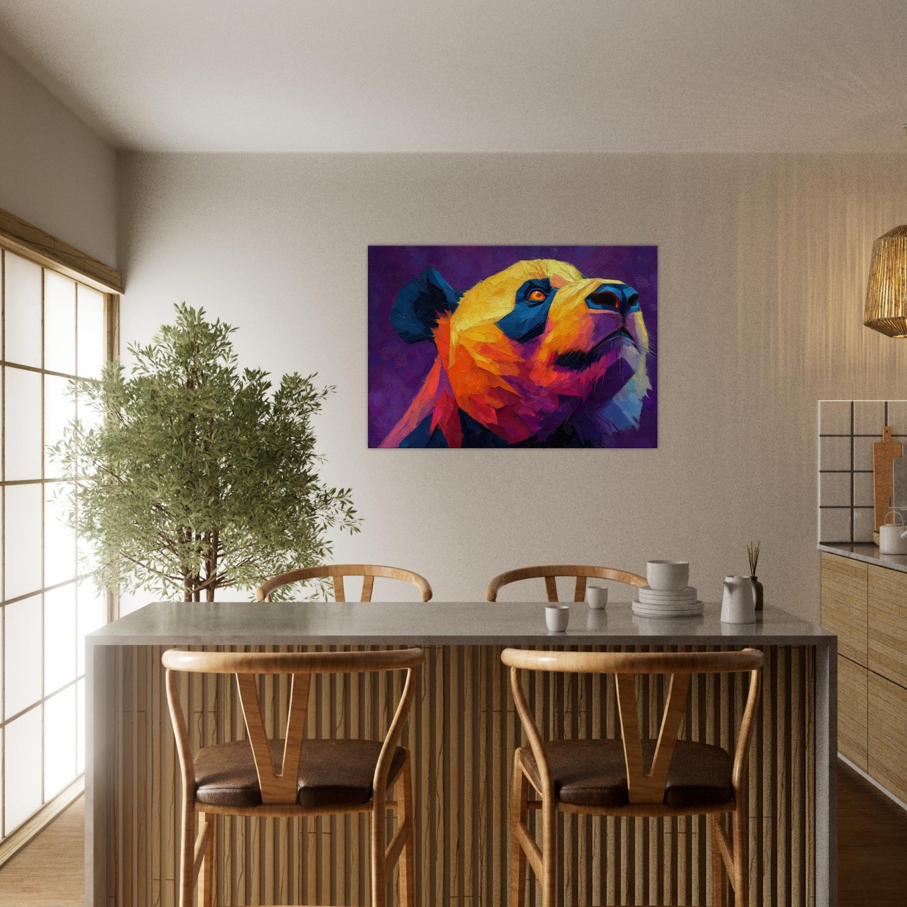 A luminous of a Panda unfolds in a riot of color and texture. The bold palette sunny yellows, electric blues, and moody purples evokes a dawn chorus and tranquil evening. The painterly geometry catches light from every angle, turning a quiet animal into a dynamic centerpiece. Hang it in a living room or entryway to invite warmth, curiosity, and conversation, as the Panda seems to watch over your space with gentle, radiant presence.