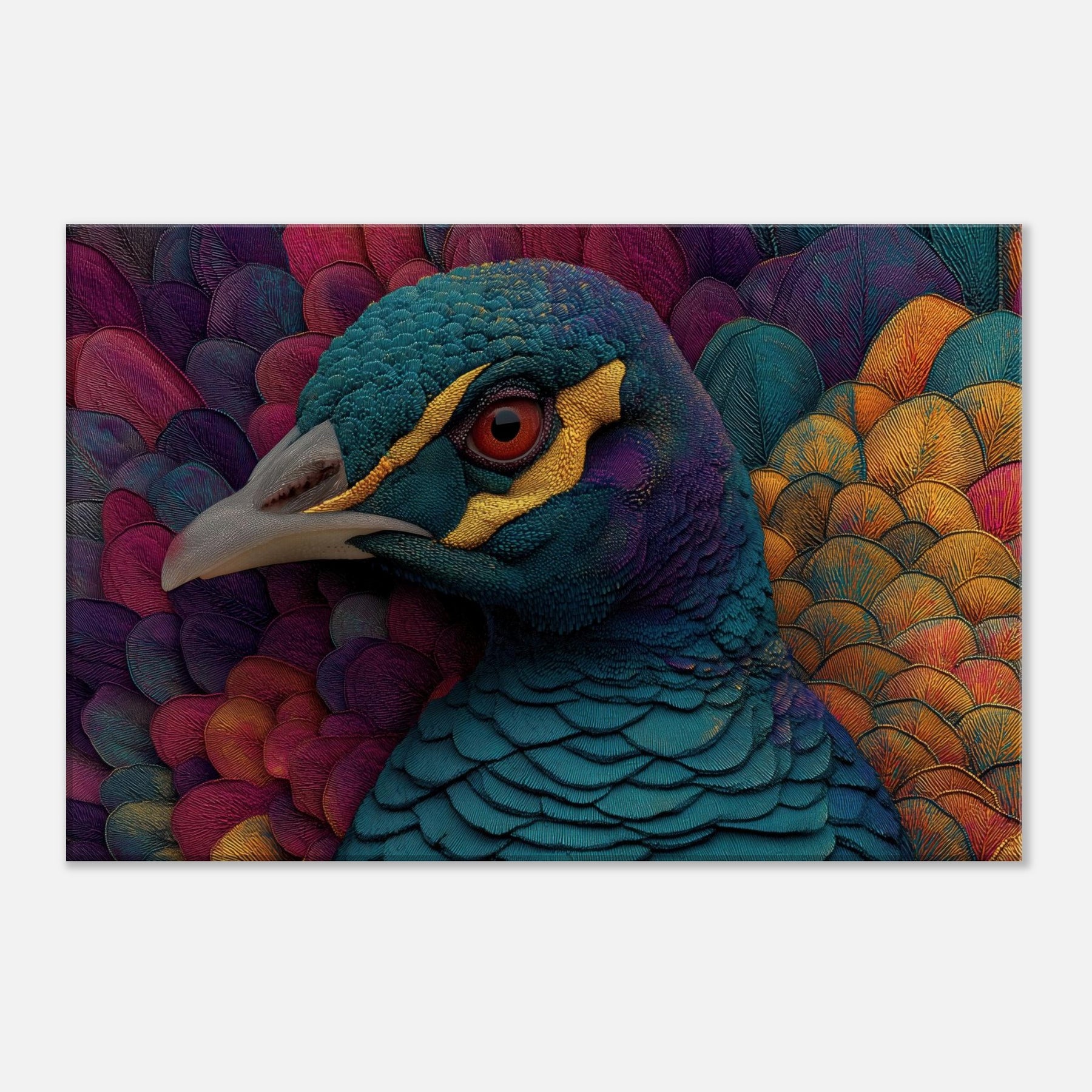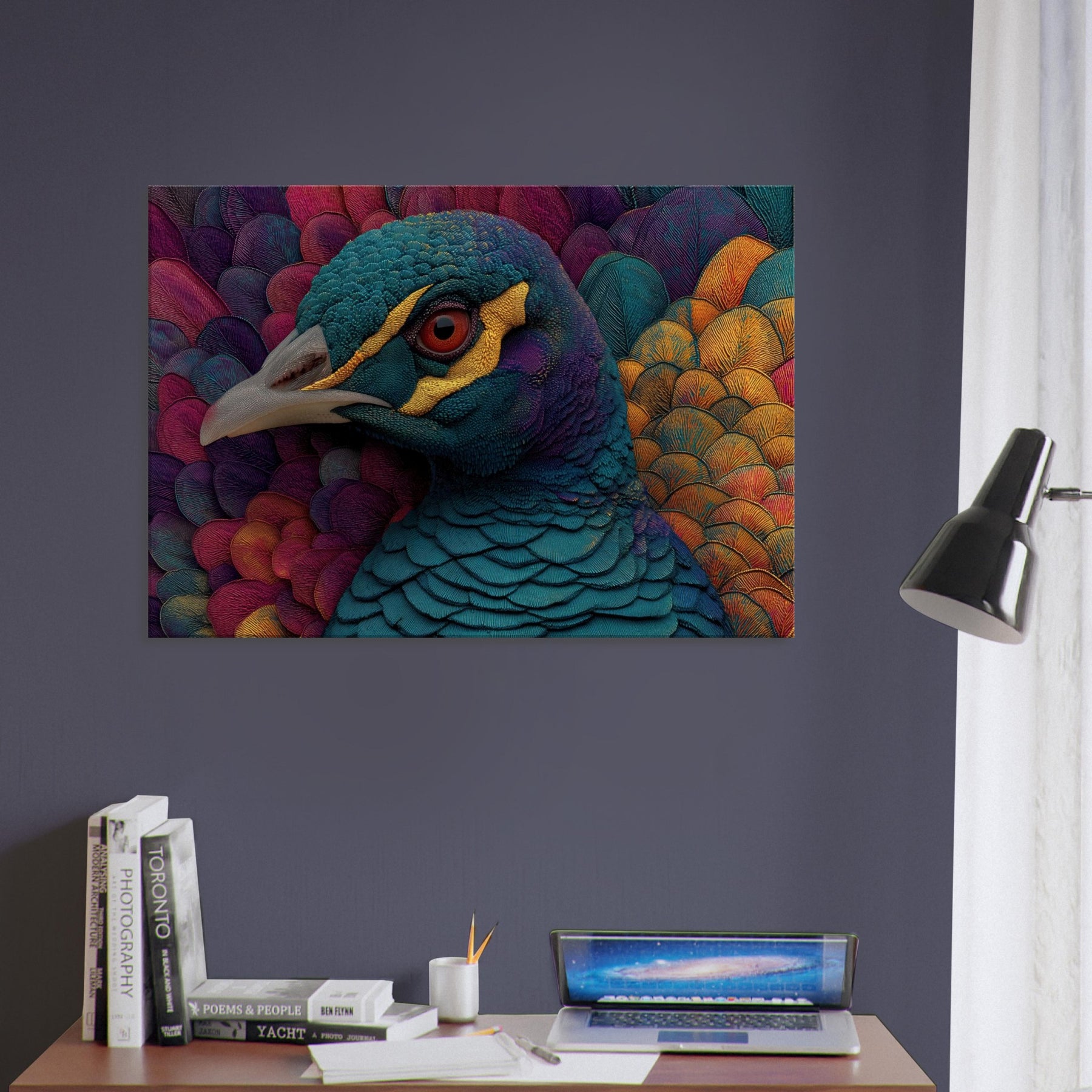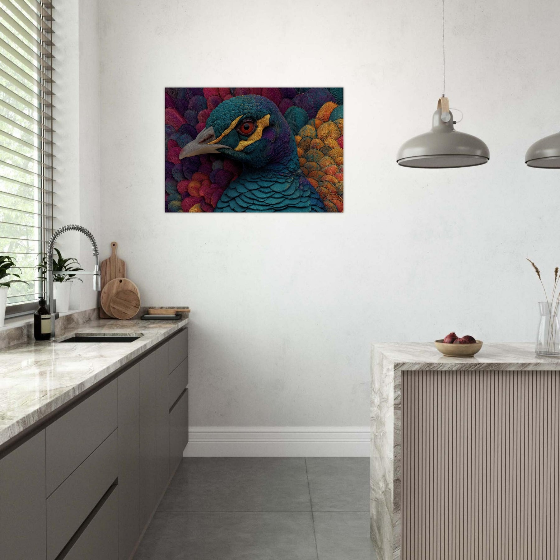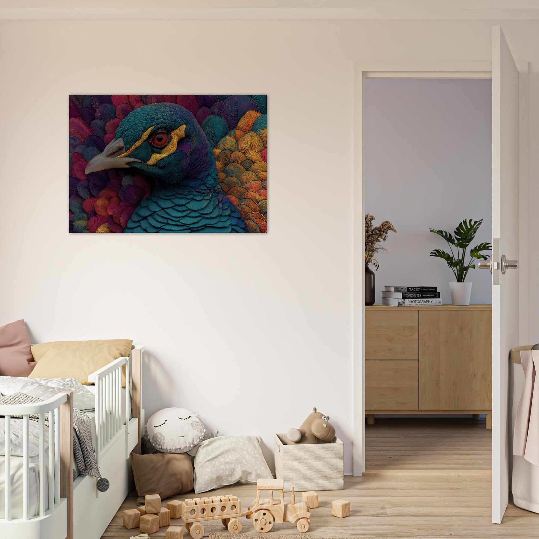 Let this luminous Peacock drift through your space, a dreamlike infusion of color and texture. The composition blooms with teal, turquoise, gold, and violet as if each feather holds a tiny sunrise. The atmosphere is serene yet electric, inviting slow, admiring glances and a sense of movement even when still. Perfect for a living room or study, it elevates walls into a gallery of warmth, refinement, and imaginative depth.