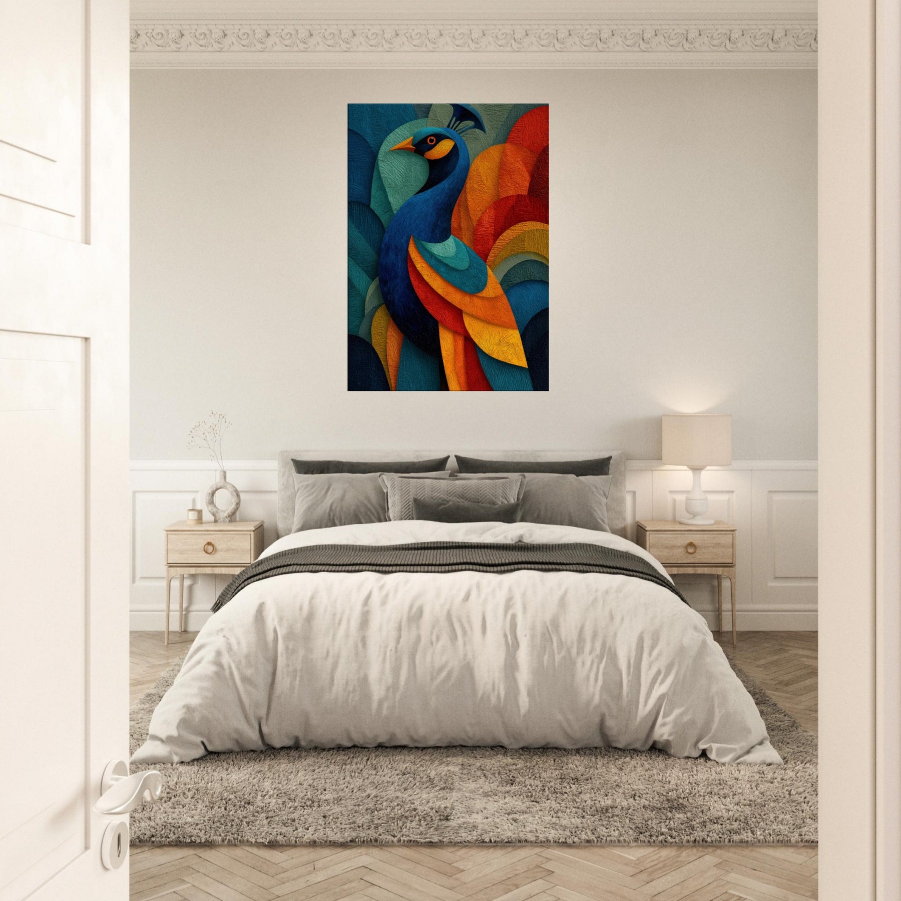 Adorn your wall with the Peacock, where color and form melt into a shimmering, orchestrated chorus. The abstract composition threads cobalt, emerald, and gold into a single, breathing creature, its plumes unfurling with tactile texture and sun kissed warmth. This piece invites quiet awe and playful energy, transforming any living space into a sanctuary of imagination. Let the Peacock’s radiant presence cast luminous atmosphere across your room, encouraging slow, lingering moments of wonder and conversation.