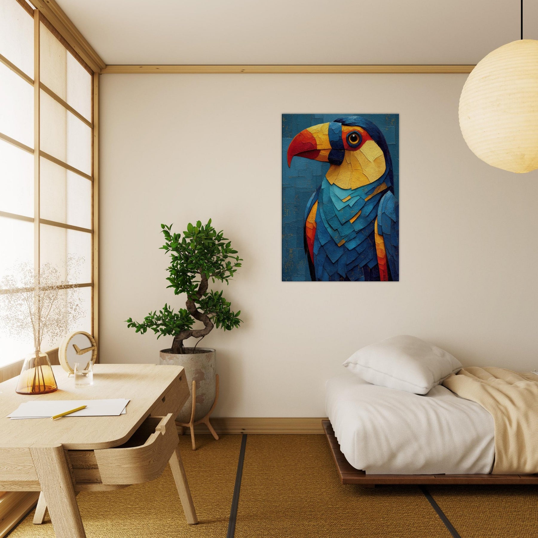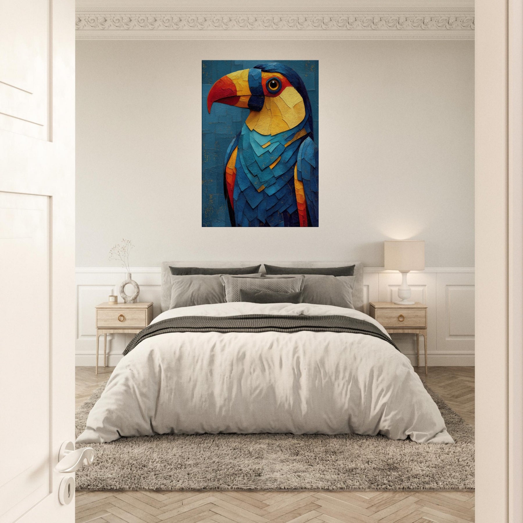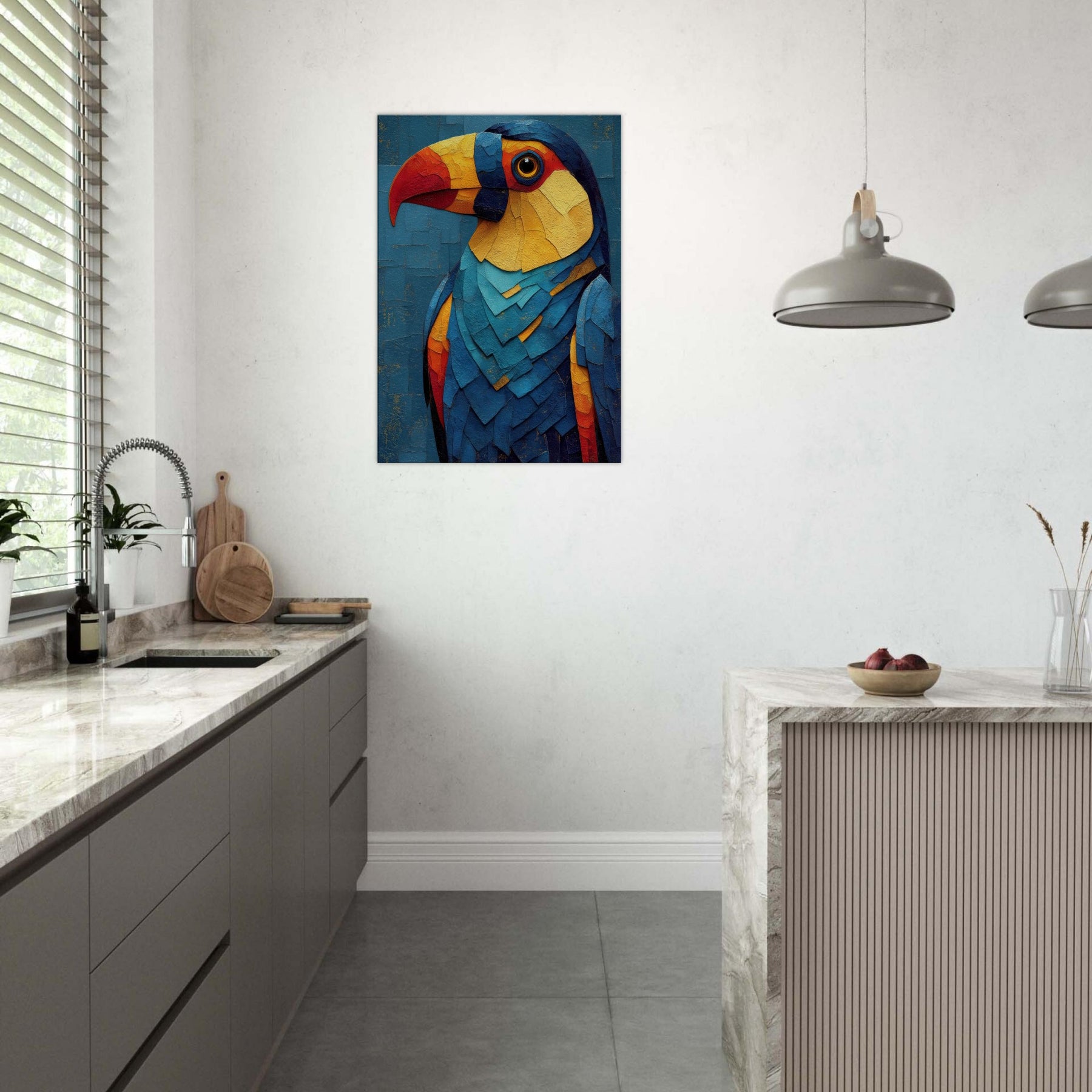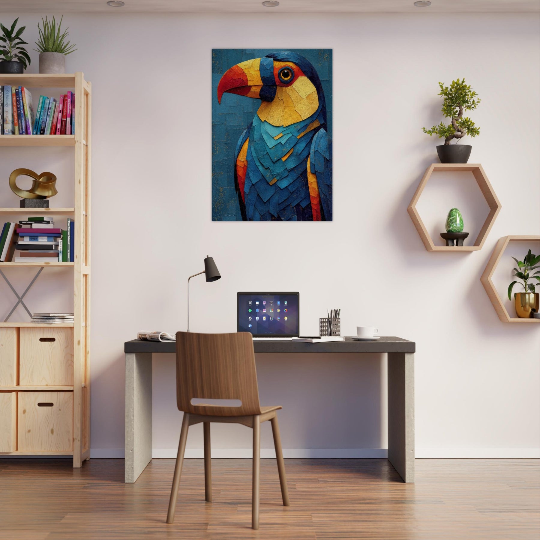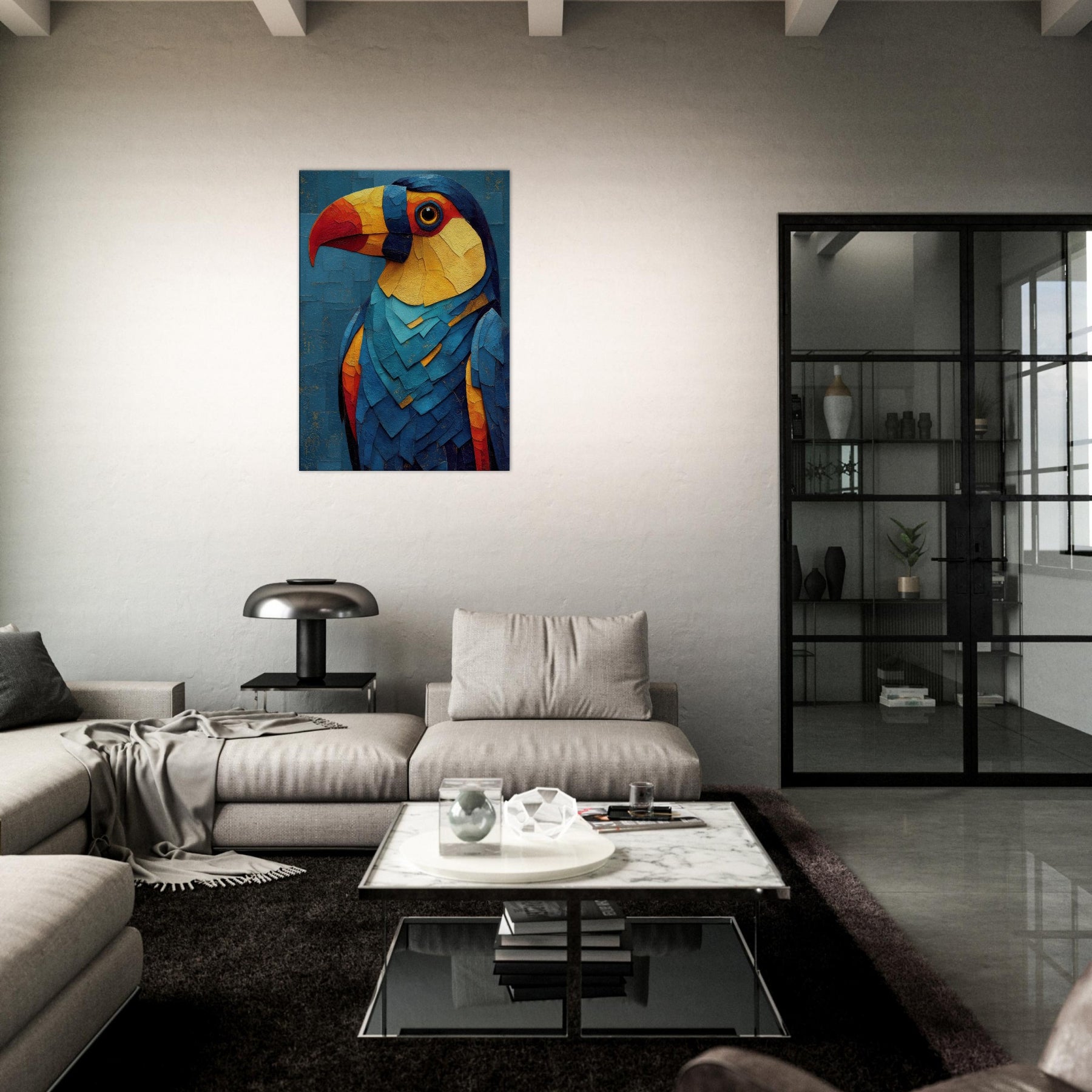 Let this penguin mosaic wash your space with color and calm. Each geometric fragment catches the light like stained glass ice, weaving cool blues with sunlit yellows and fiery corals. The penguin becomes a wandering constellation, a surface of texture and energy that invites quiet contemplation. Hang it in a living room or study to spark conversation, slow the pace of a busy day, and invite a moment of oceanic stillness into your home.