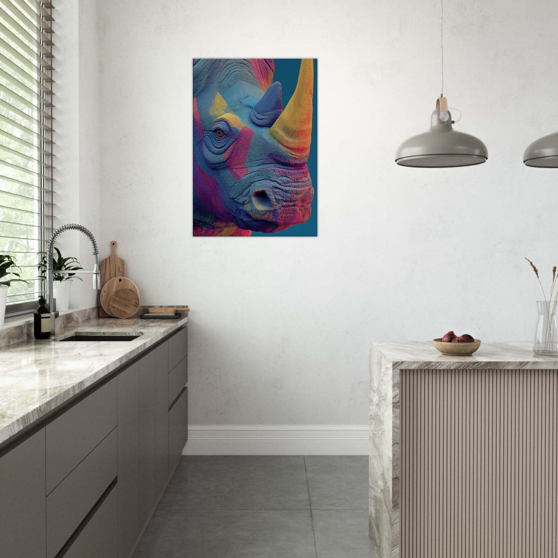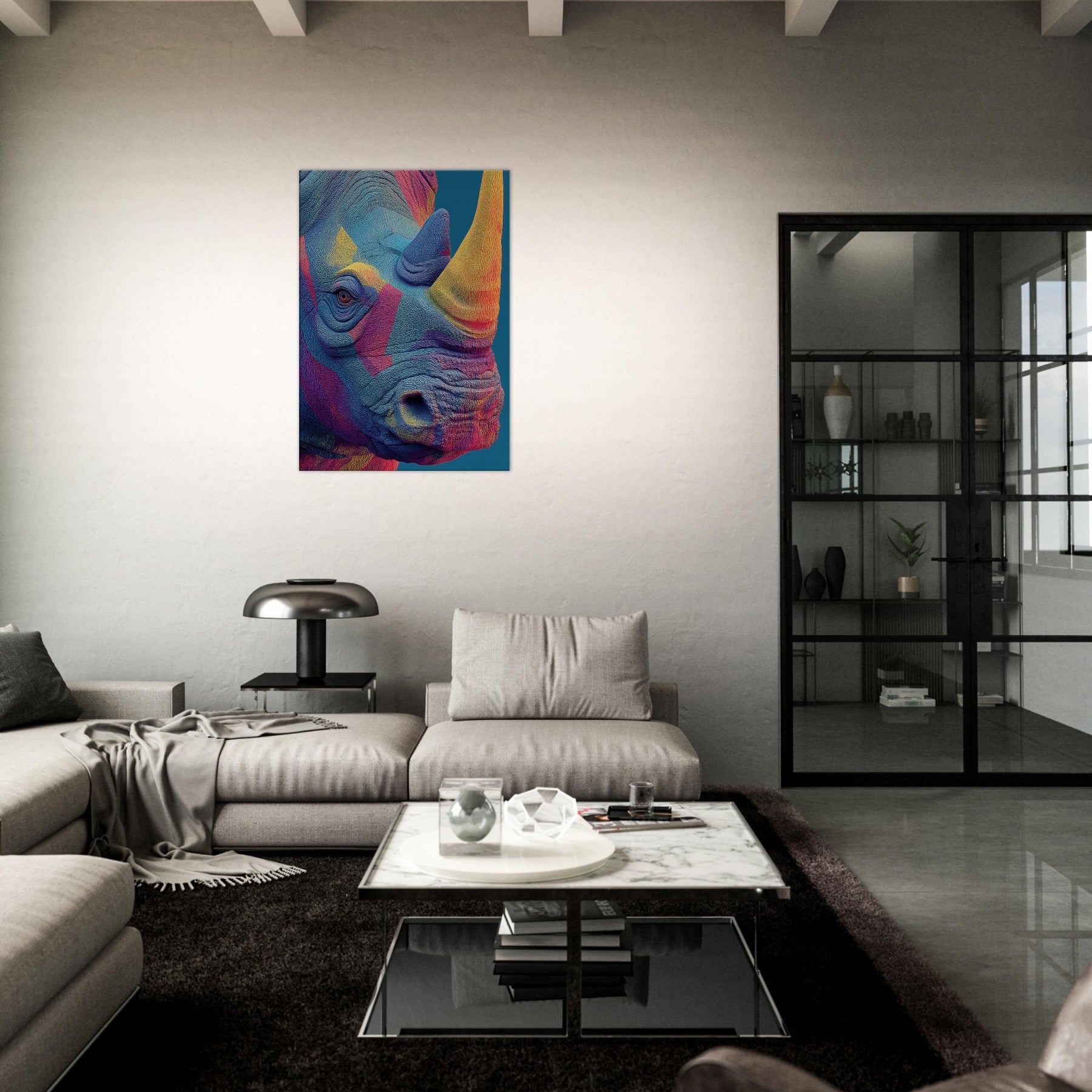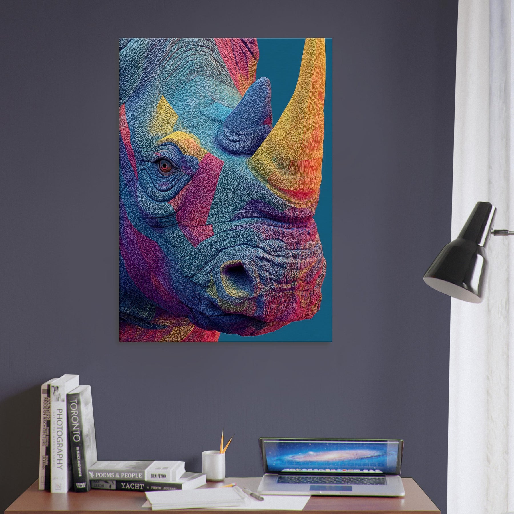 In this energized composition, the Rhinoceros steps forward as a sculpted presence rendered in luminous swirls and blocks of color. The textured surface invites touch with the imagination, while the deep teal and electric magenta cast a mood of dusk dawn theater bold, warm, and unexpectedly serene. Hang it to anchor a living room or study, where the rhythm of color and form sparks conversation and makes the space feel alive, intimate, and artfully fearless.