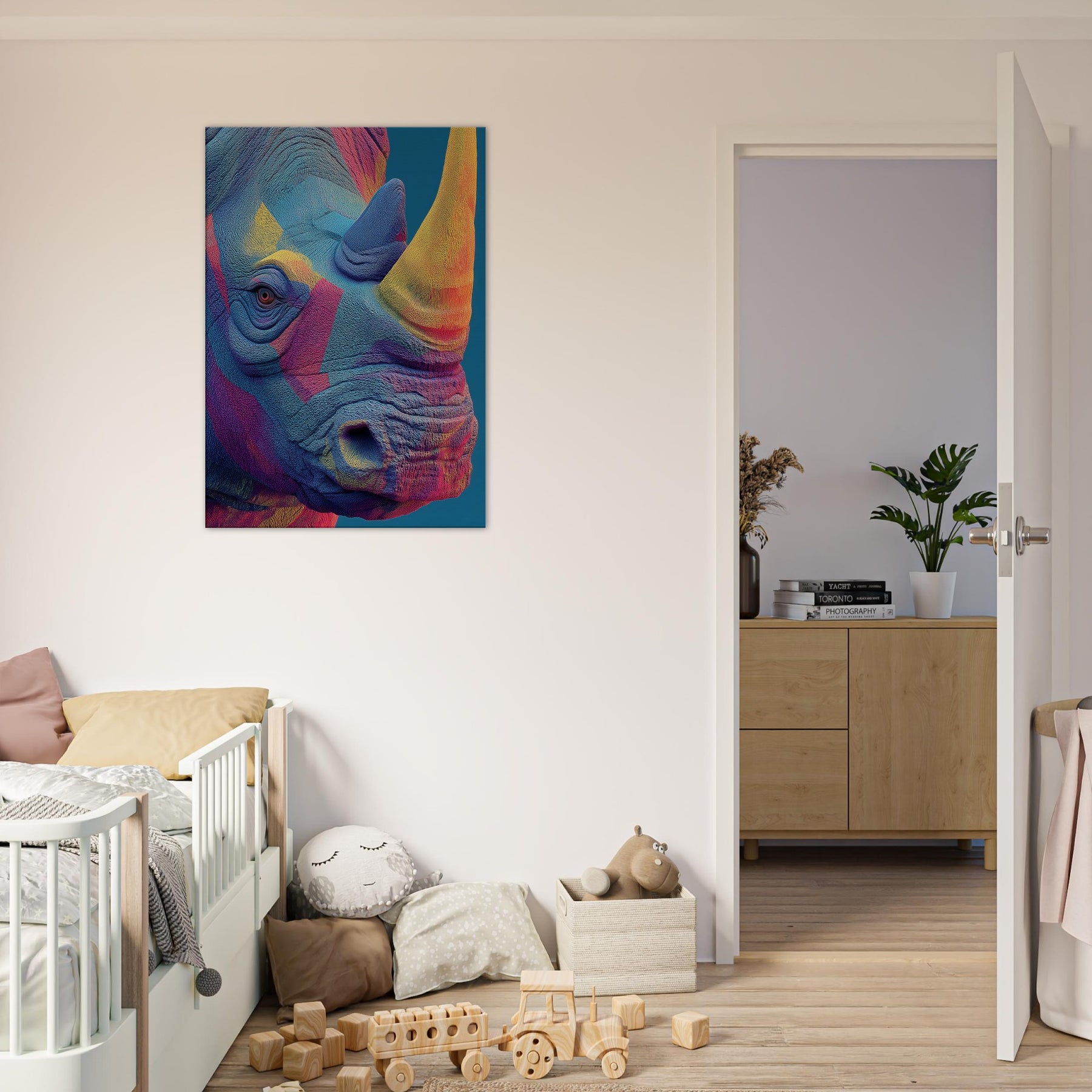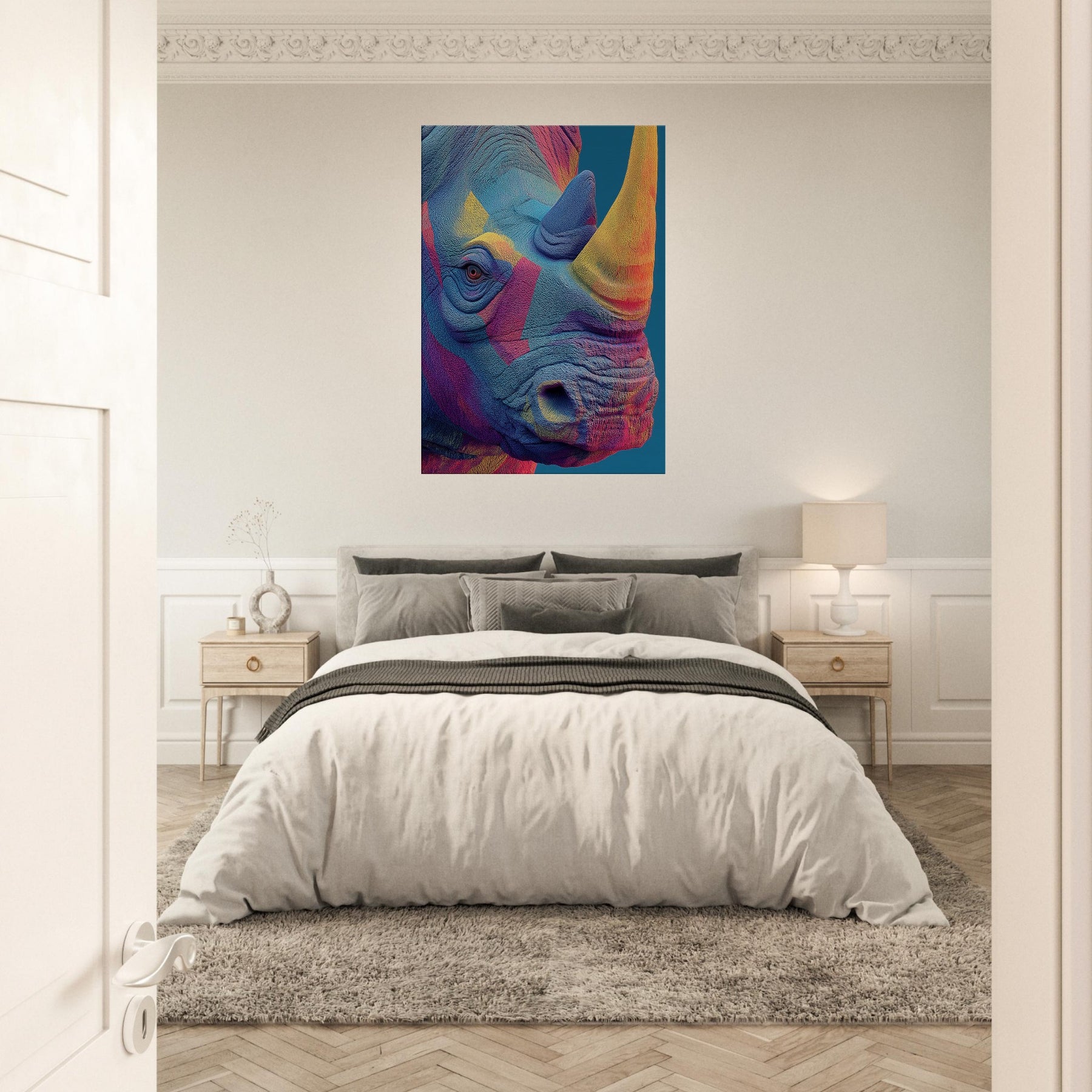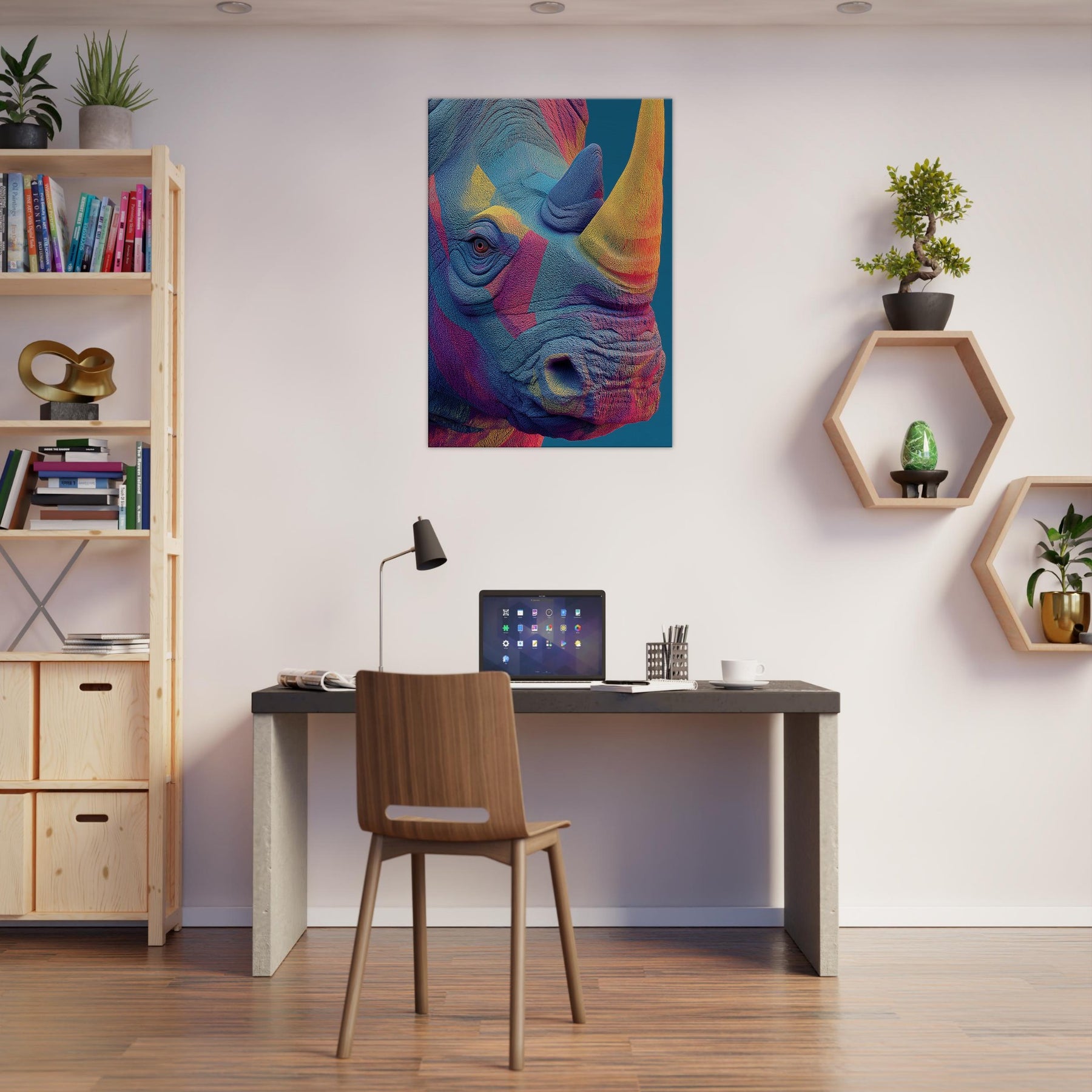In this energized composition, the Rhinoceros steps forward as a sculpted presence rendered in luminous swirls and blocks of color. The textured surface invites touch with the imagination, while the deep teal and electric magenta cast a mood of dusk dawn theater bold, warm, and unexpectedly serene. Hang it to anchor a living room or study, where the rhythm of color and form sparks conversation and makes the space feel alive, intimate, and artfully fearless.