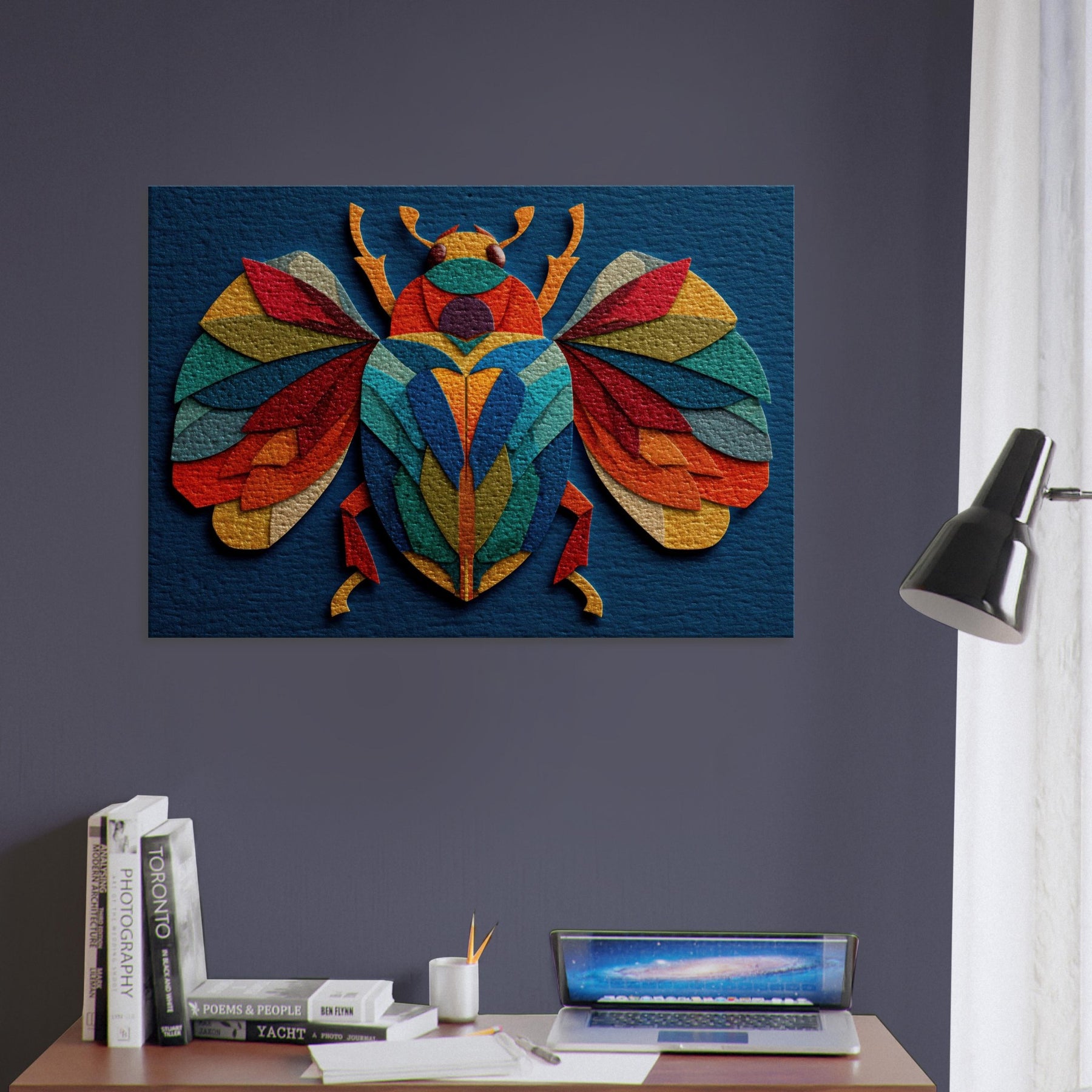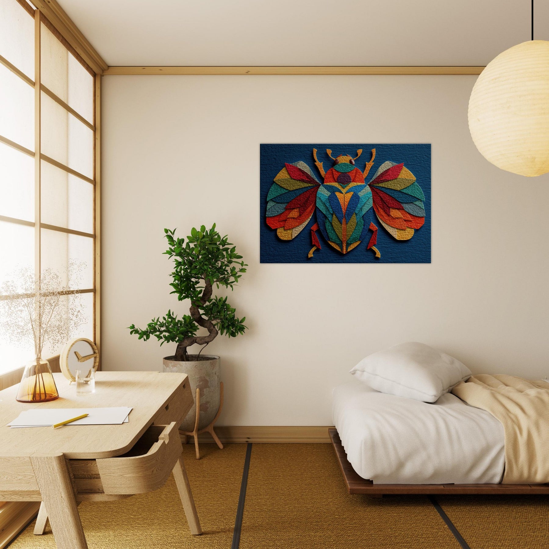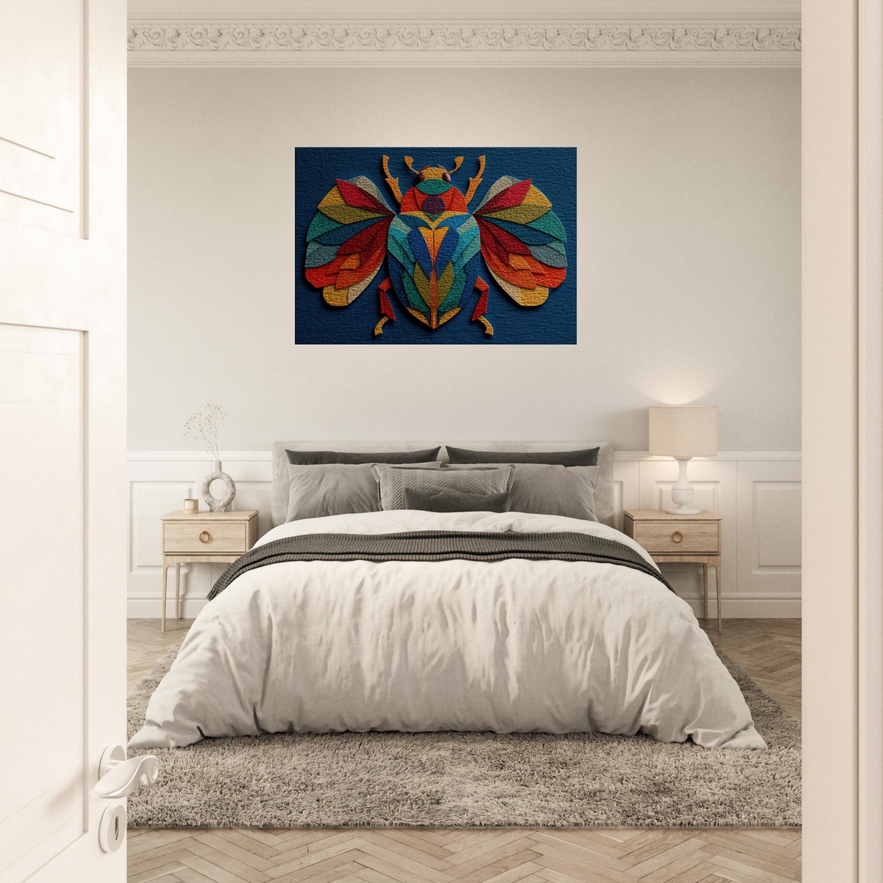 Centered on the Scarab, this vibrant, mosaic inspired piece breathes ancient mystery into a modern living space. Its kaleidoscopic surfaces catch light and reflect memory, marrying fiery reds with cool blues in a fluid, abstract rhythm. The mystical energy of the subject infuses walls with a sense of transformation, turning any room into a sanctuary of color and calm. Ideal for a lounge or bedroom, it invites quiet contemplation and sparks conversations about art, light, and the stories we choose to live with.