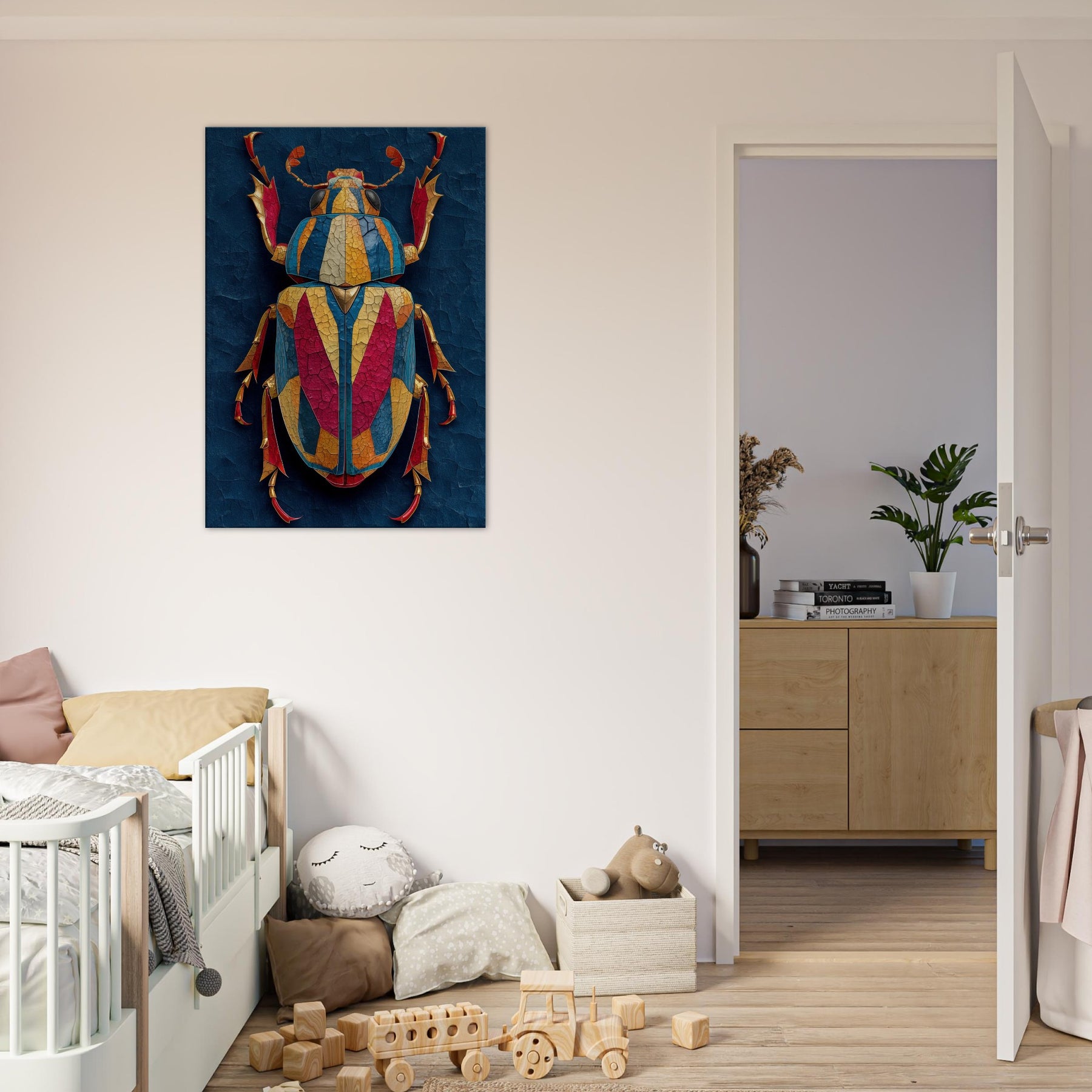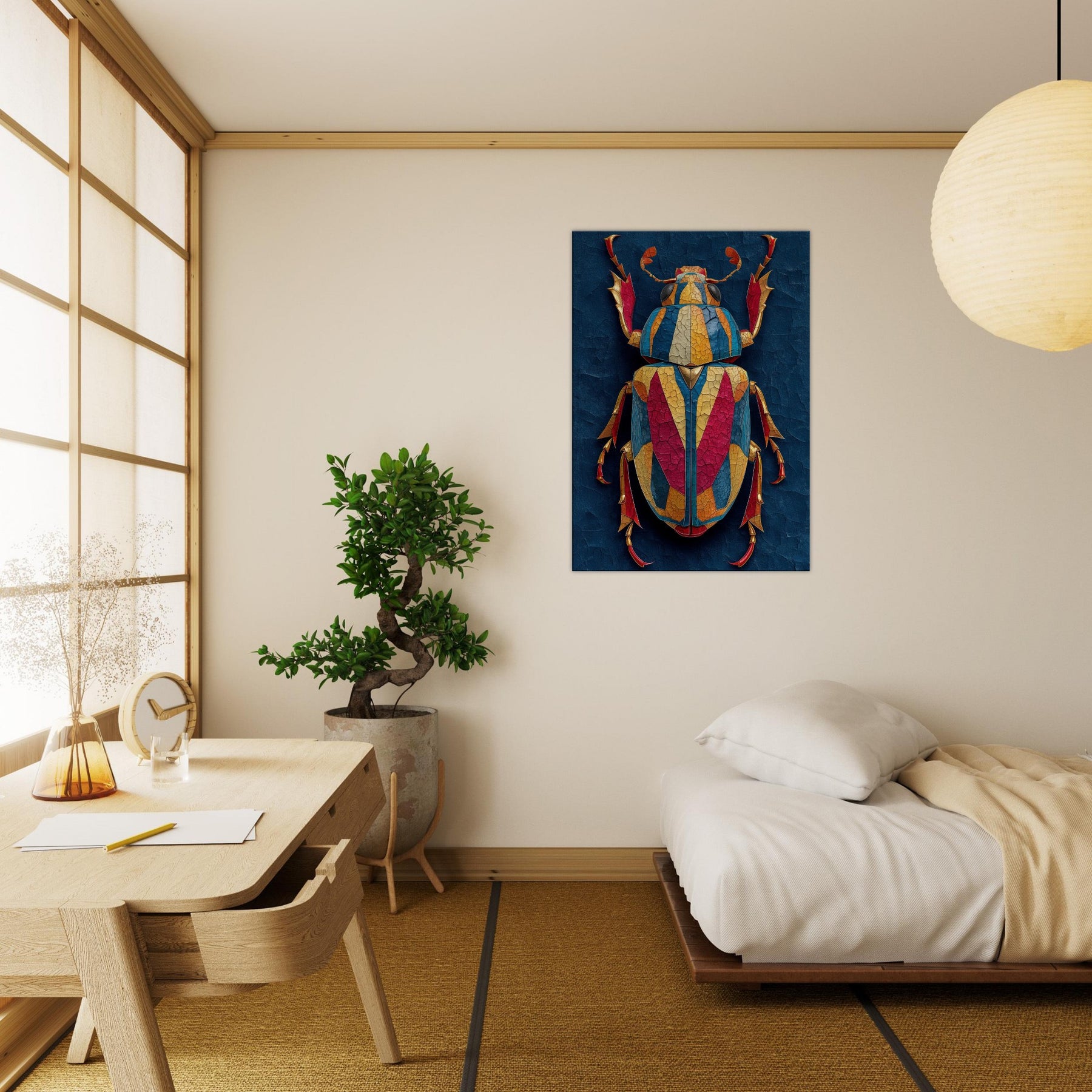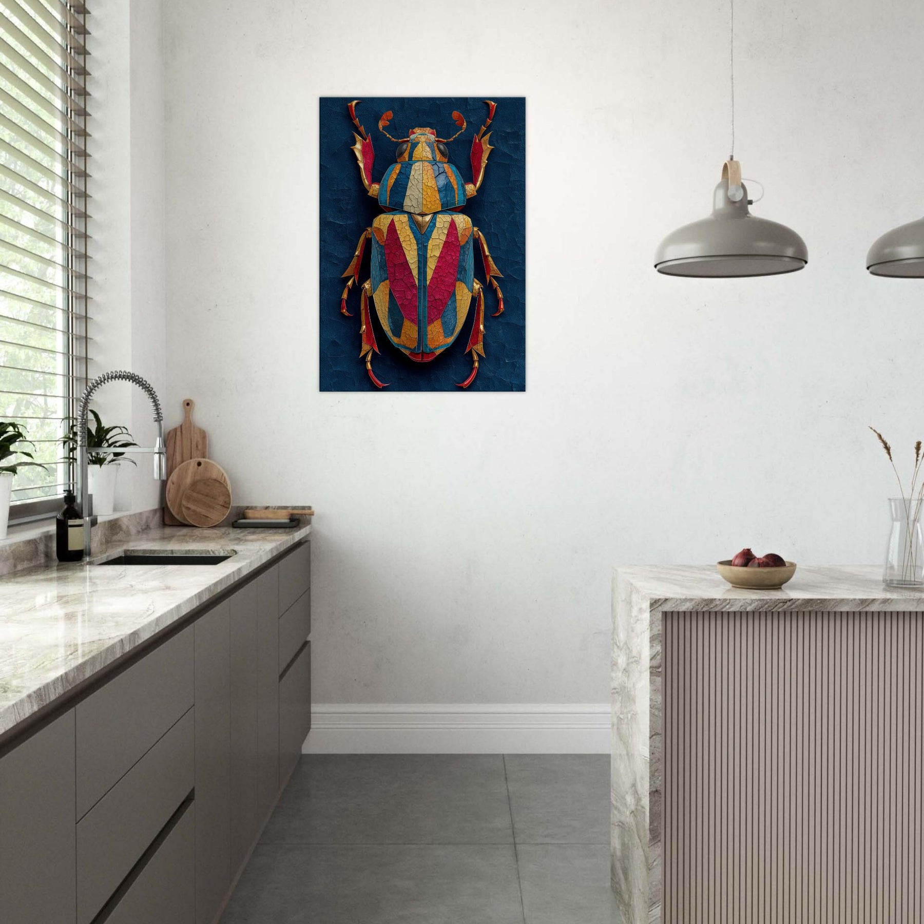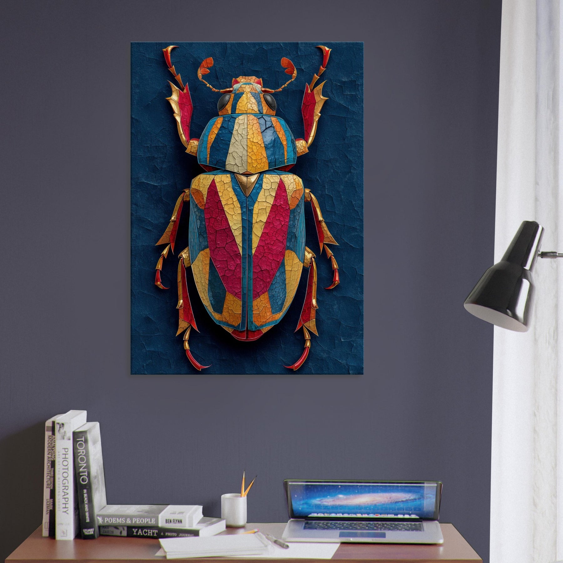 This Scarab commands the room with a mystical, mosaic bravado. The abstract composition unfurls in radiant panels of teal, amber, cobalt, and rose, catching light and shifting mood as if the wall itself breathes. A sense of ancient wisdom and forward motion mingles in its glossy cracks, inviting quiet reflection or bold conversations. Hang it where sunlight wakes the space, and let the Scarab's luminous presence choreograph your living area into a serene, cinematic atmosphere.