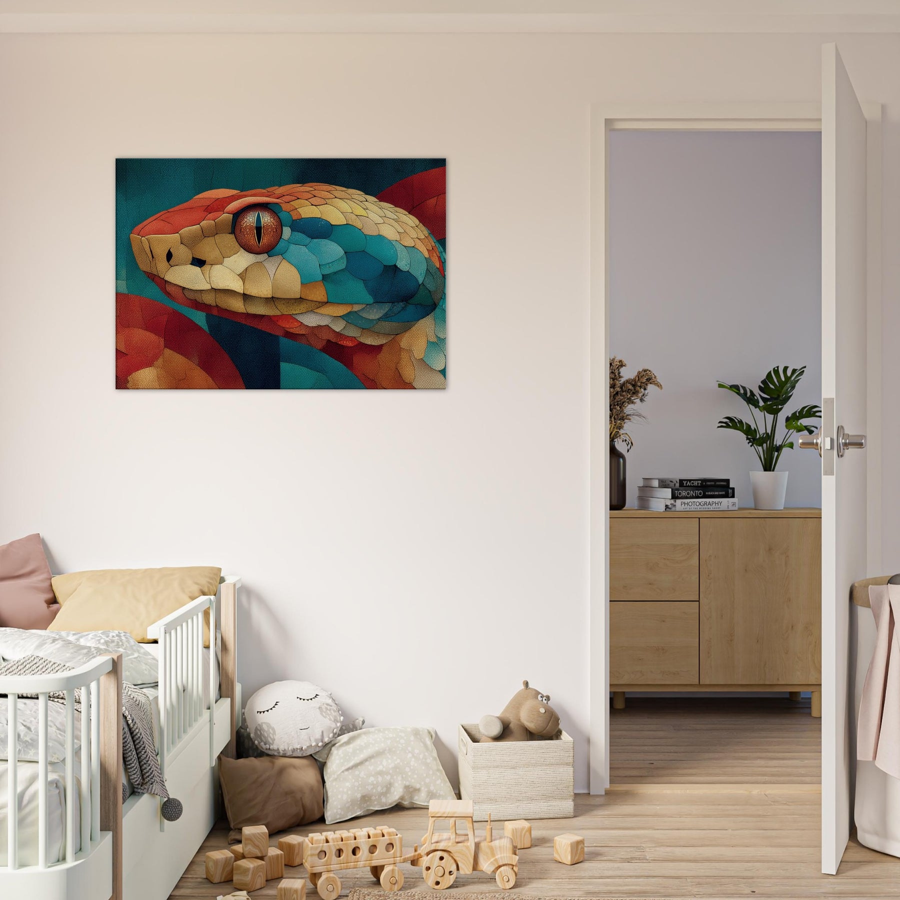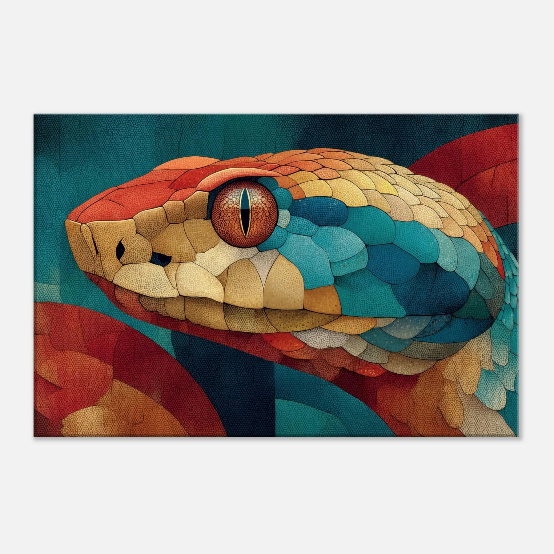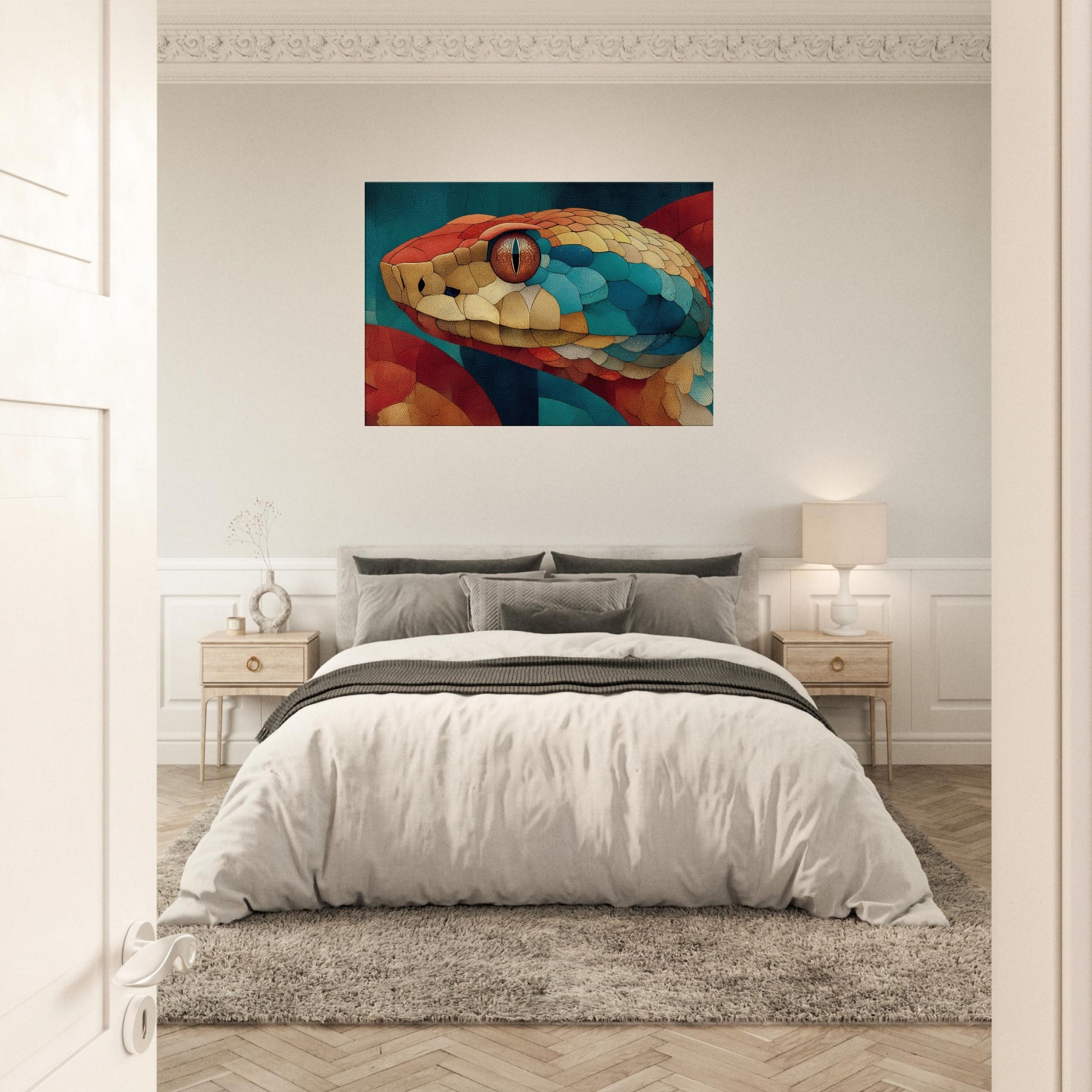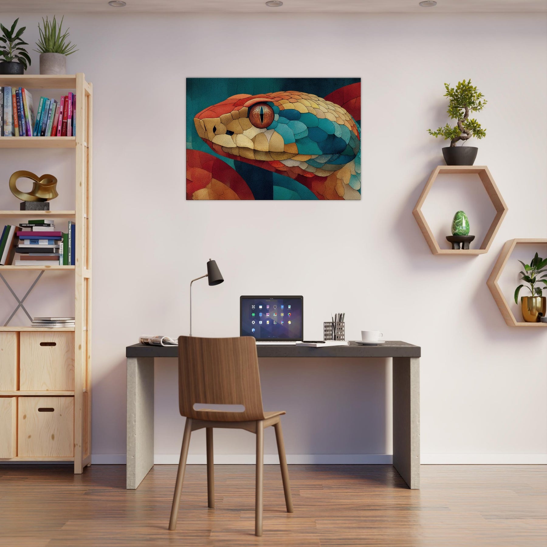 An odyssey of color and form, this abstract mosaic turns a wall into motion and mood. The Snake coils with luminous teal, coral, gold, and lapis textures, inviting quiet contemplation from every angle. Light dances across its faceted scales, washing the room in warmth and subtle contrast. It adds a sensual, kinetic energy to living spaces, pairing well with minimalist furnishings or bold textures alike. A refined focal point that elevates atmosphere without shouting, it invites pause and wonder.