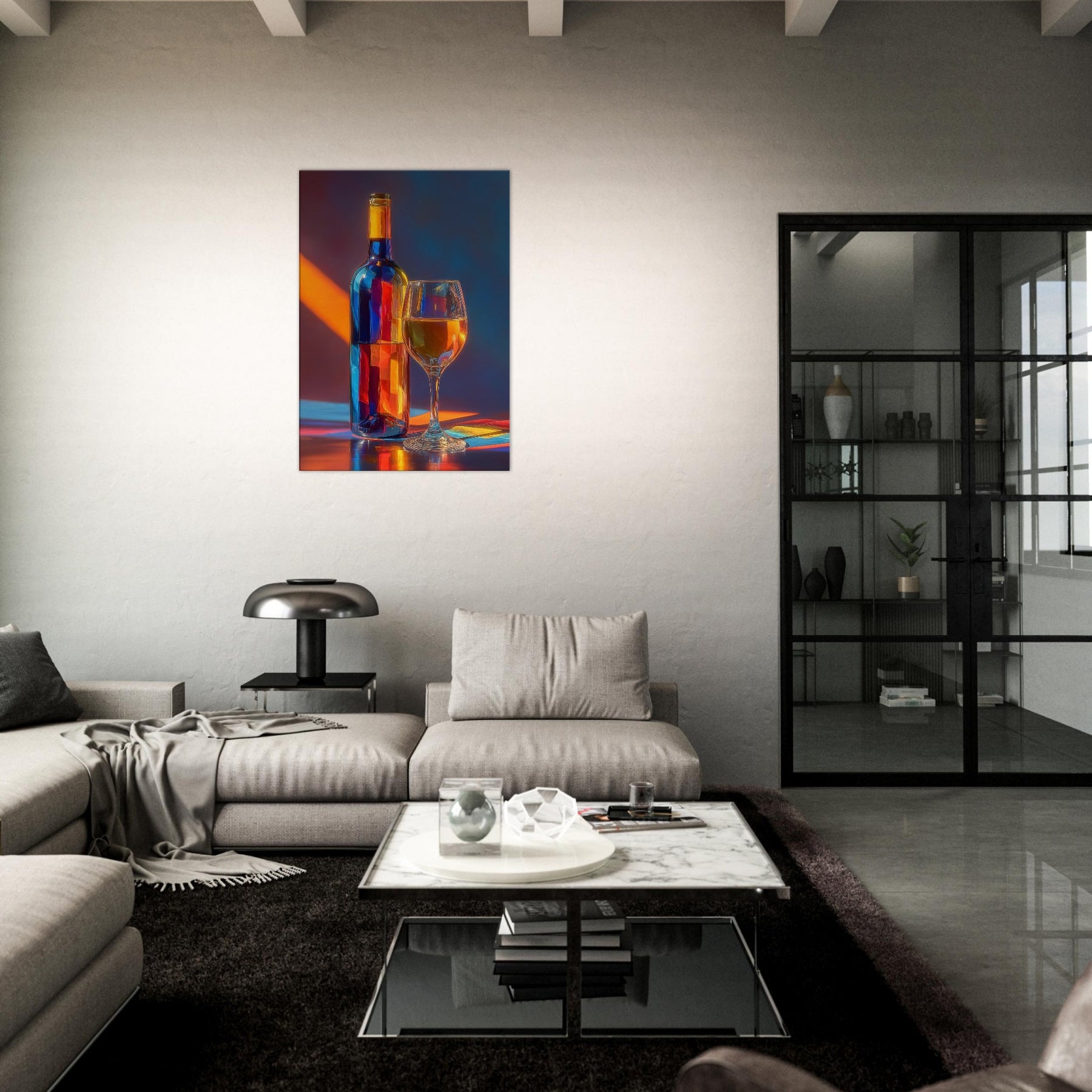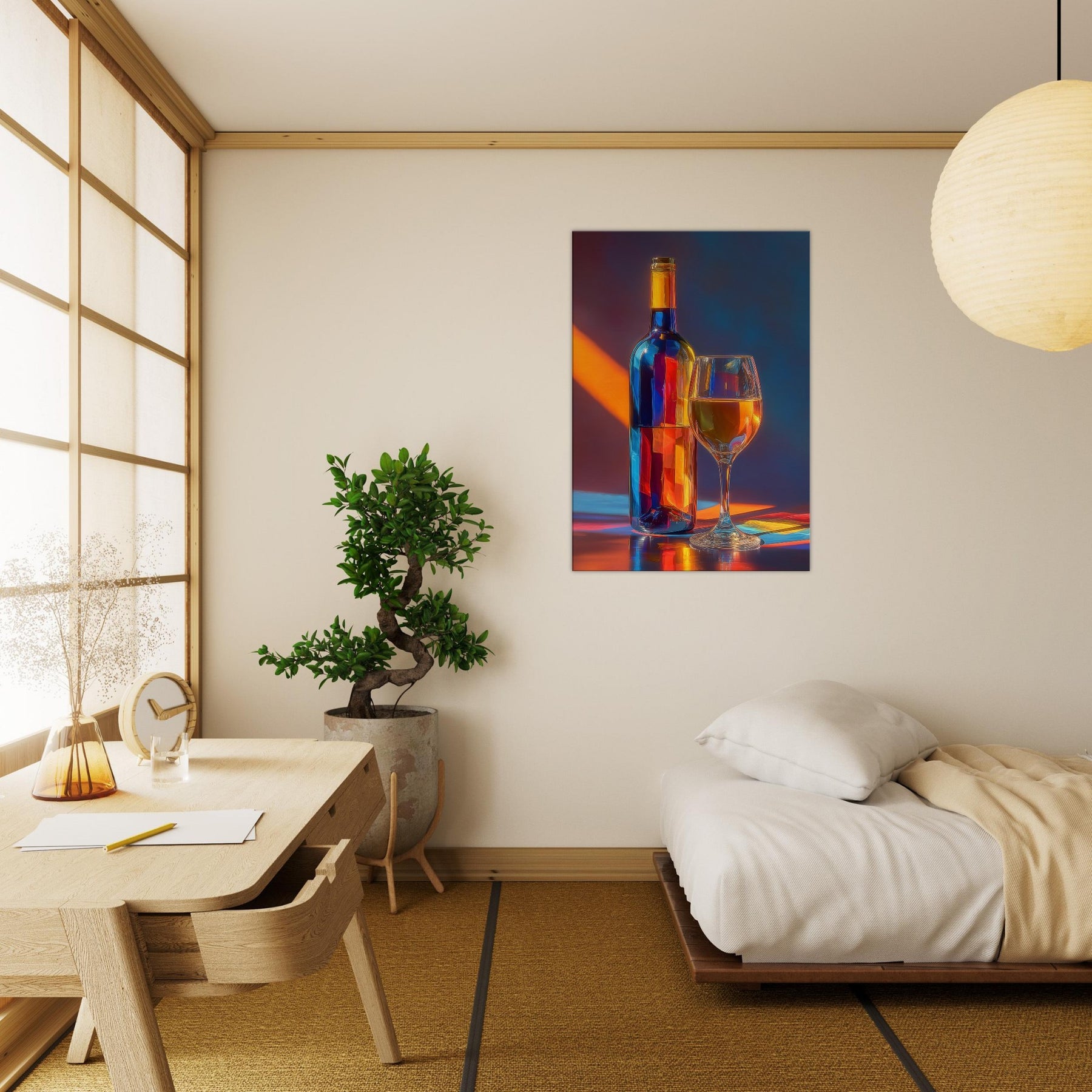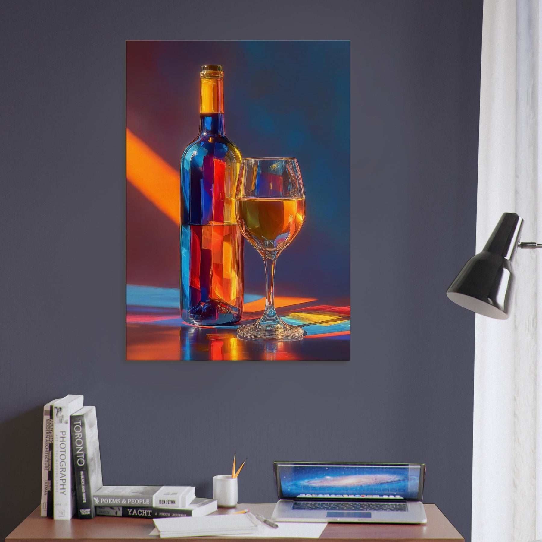 Wine Bottle and Glass glows with a kinetic warmth, turning a simple still life into a chorus of color. The abstract facets refract amber, cobalt, and ruby into a soft, inviting radiance that lingers on walls and surfaces. This piece invites quiet contemplation, while its luminous edges energize a dining nook, living room, or entry hall. Let the scene conjure intimate gatherings and effortless sophistication, as if a toast could be shared across space and time within the frame.