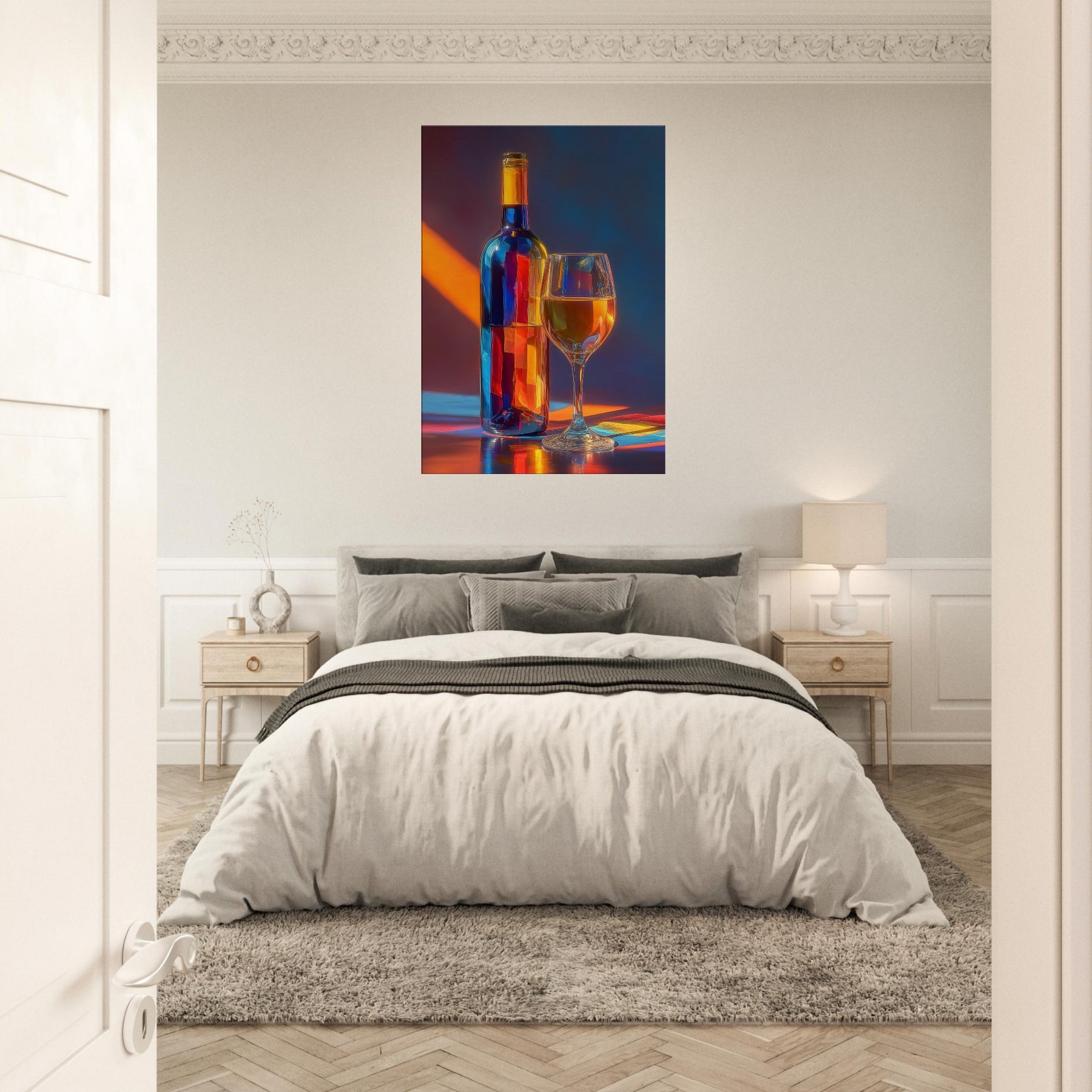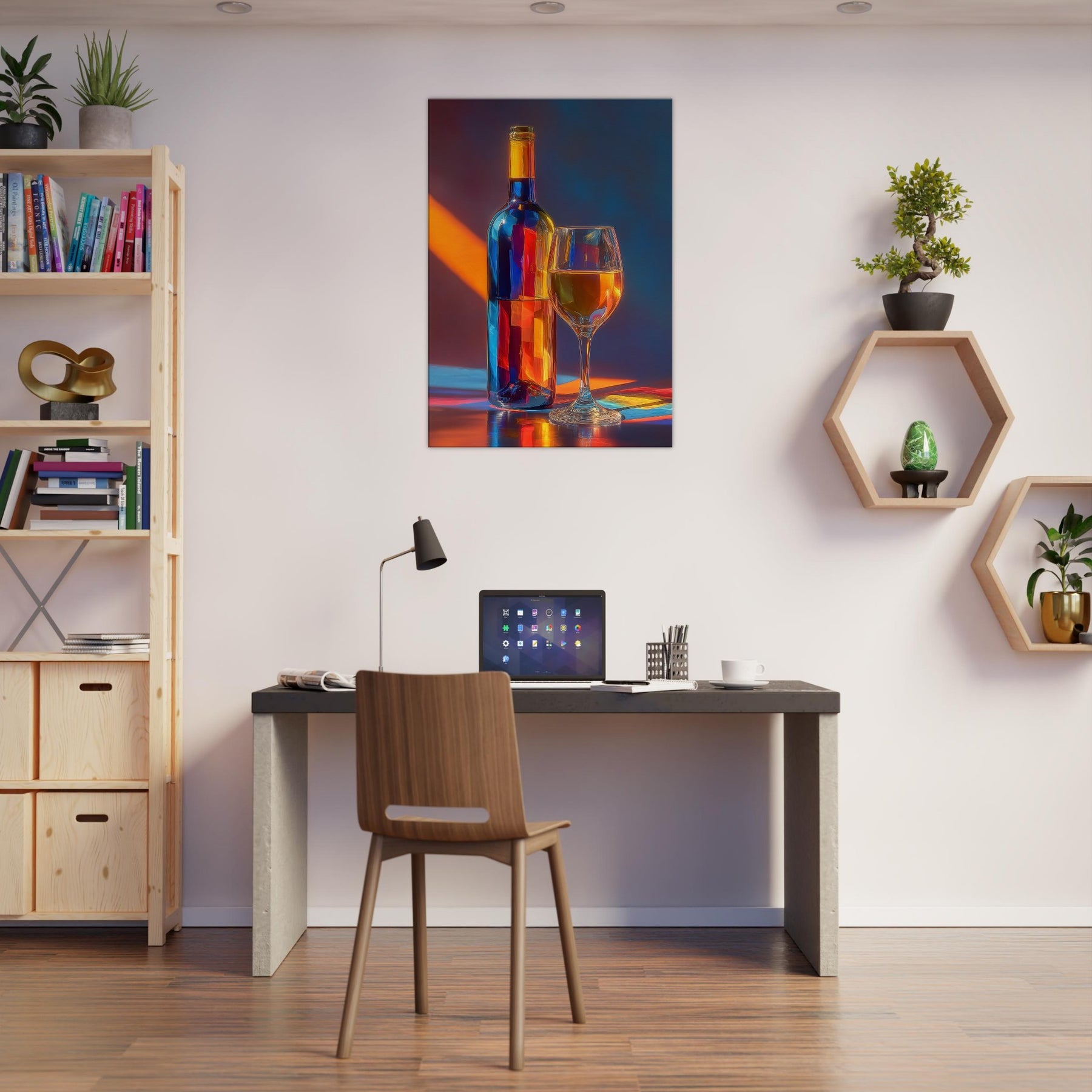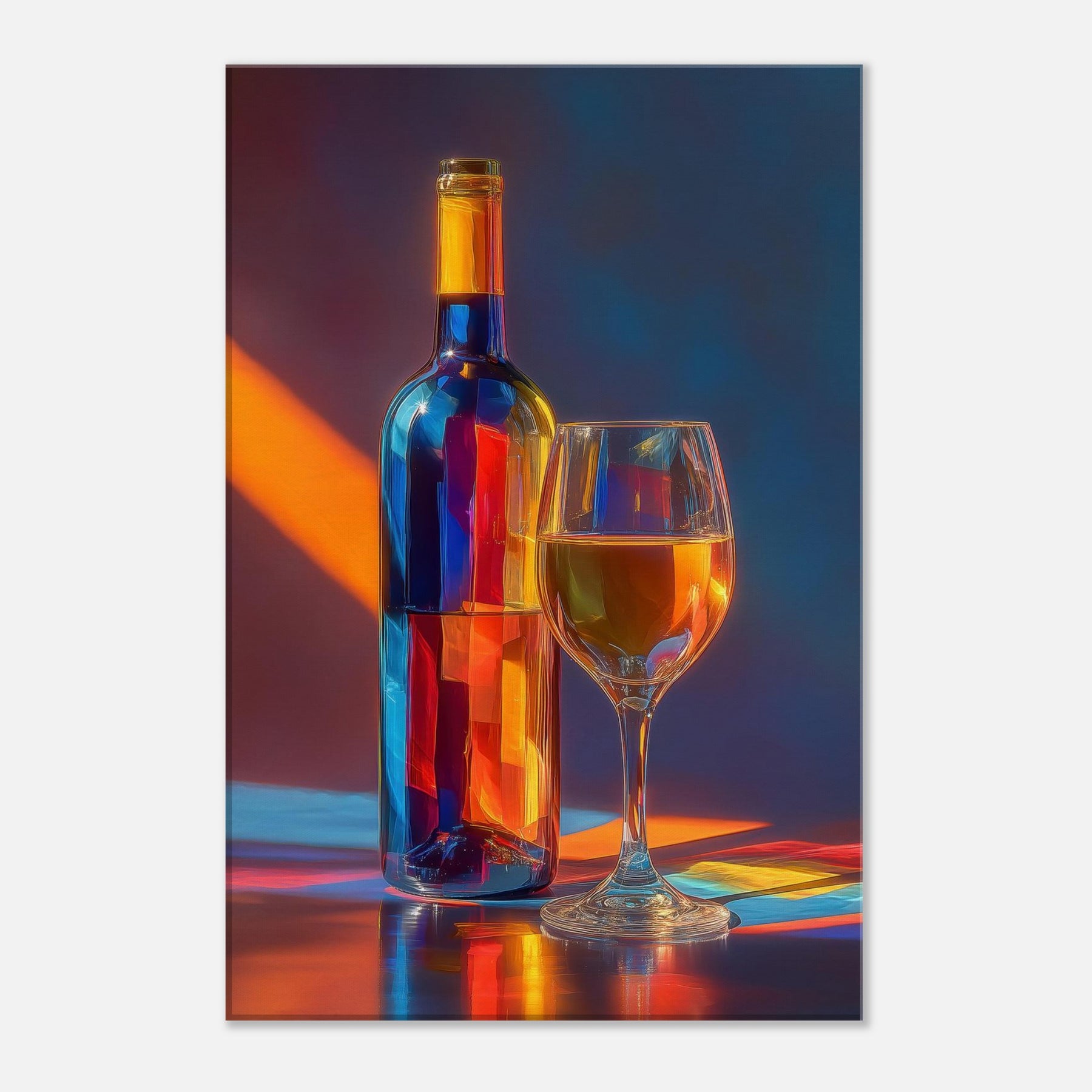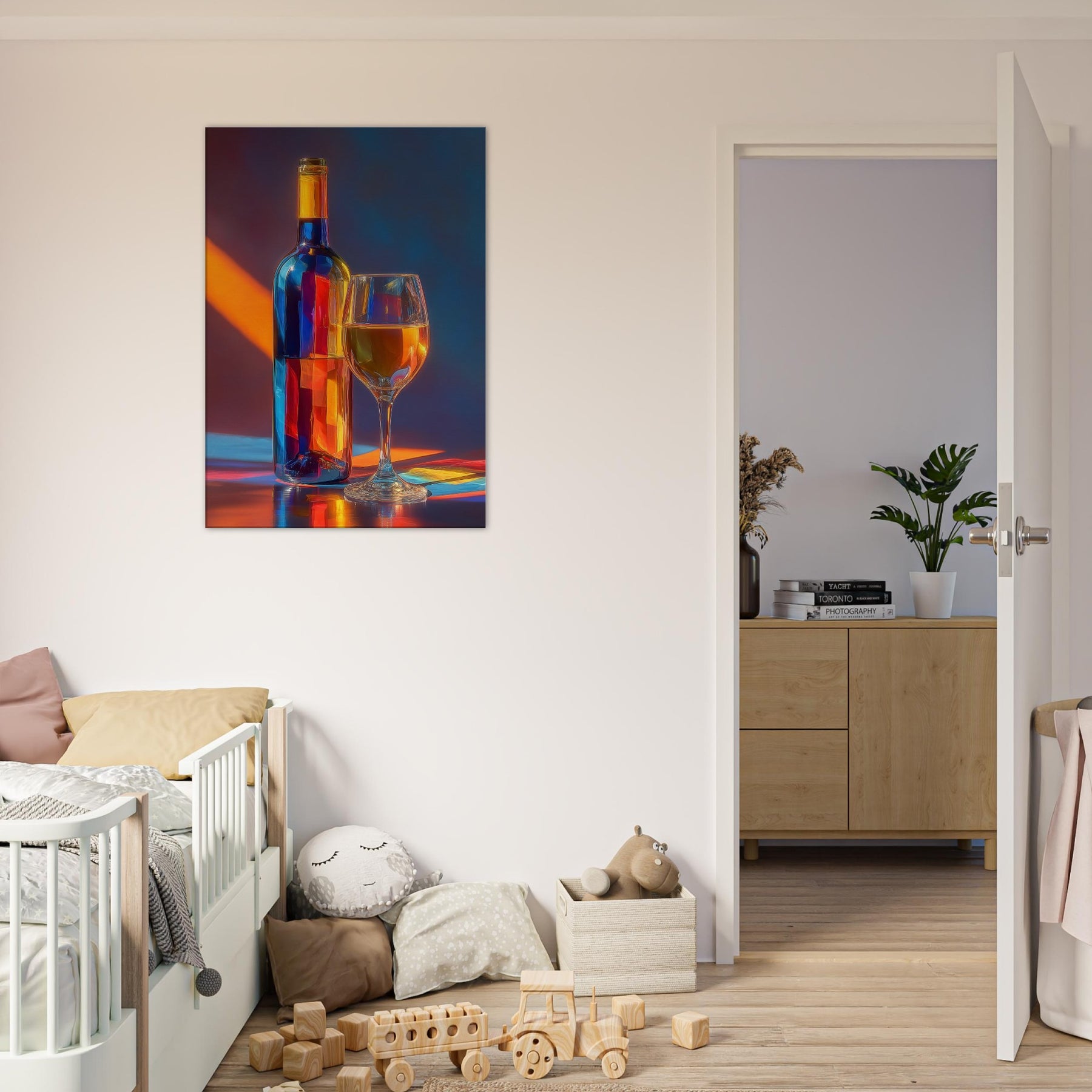 Wine Bottle and Glass glows with a kinetic warmth, turning a simple still life into a chorus of color. The abstract facets refract amber, cobalt, and ruby into a soft, inviting radiance that lingers on walls and surfaces. This piece invites quiet contemplation, while its luminous edges energize a dining nook, living room, or entry hall. Let the scene conjure intimate gatherings and effortless sophistication, as if a toast could be shared across space and time within the frame.