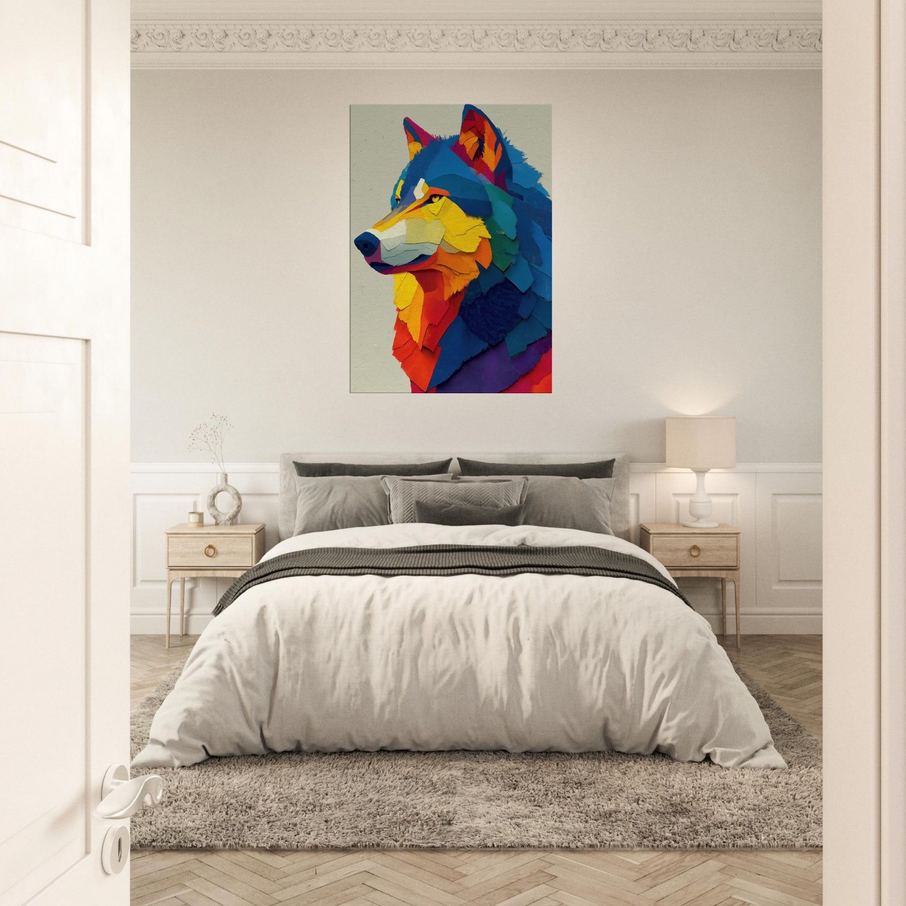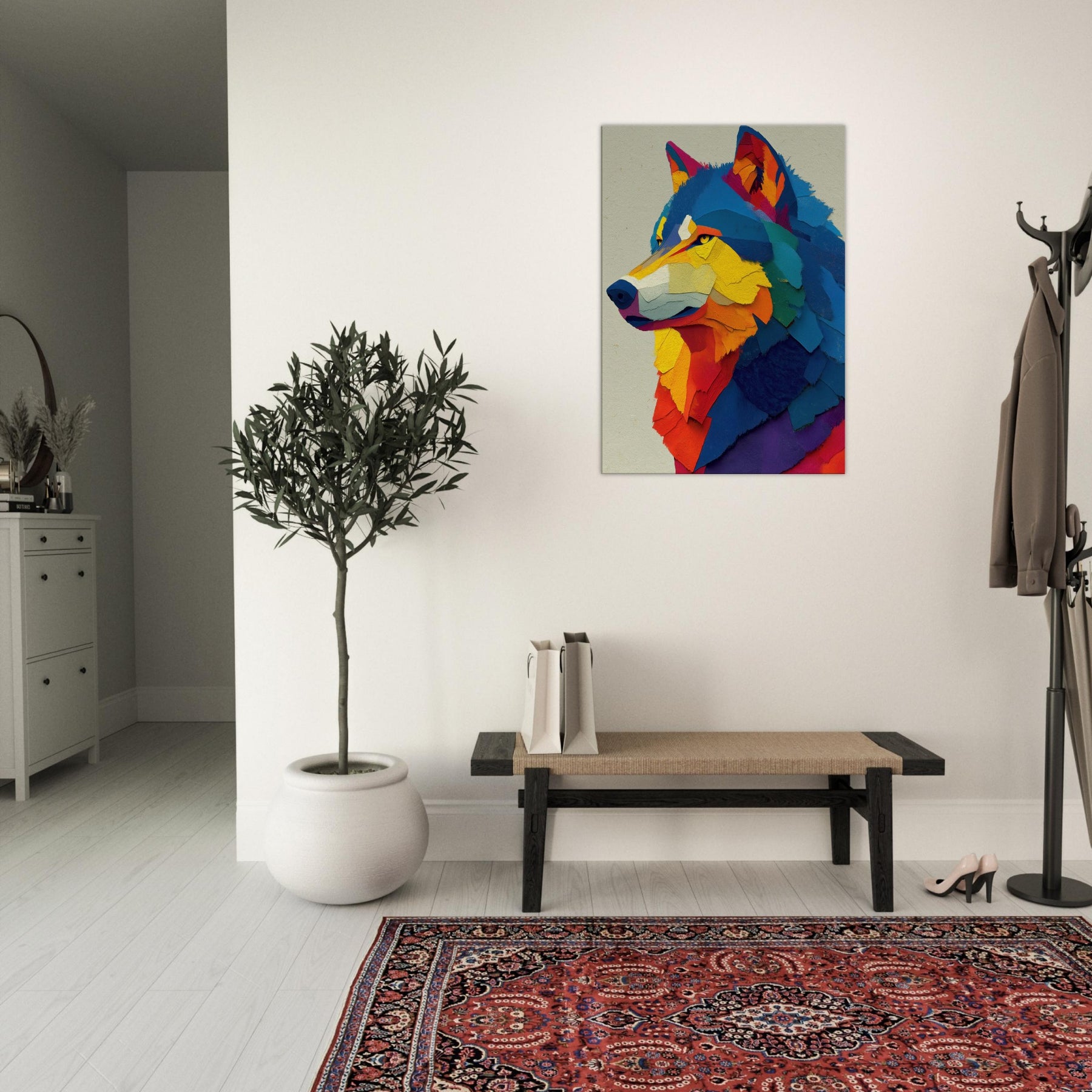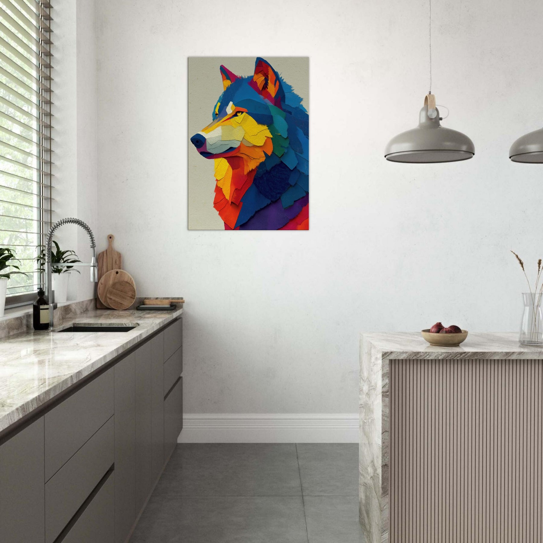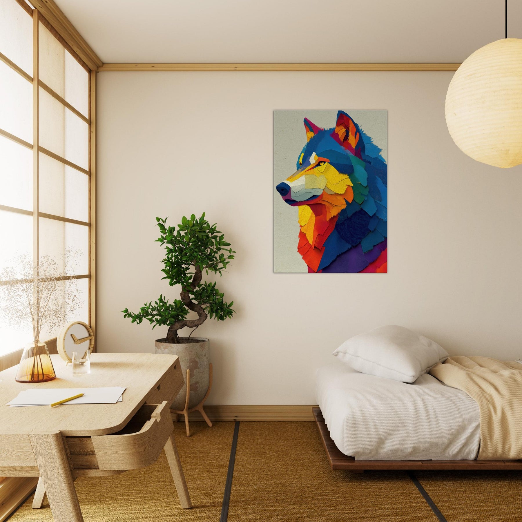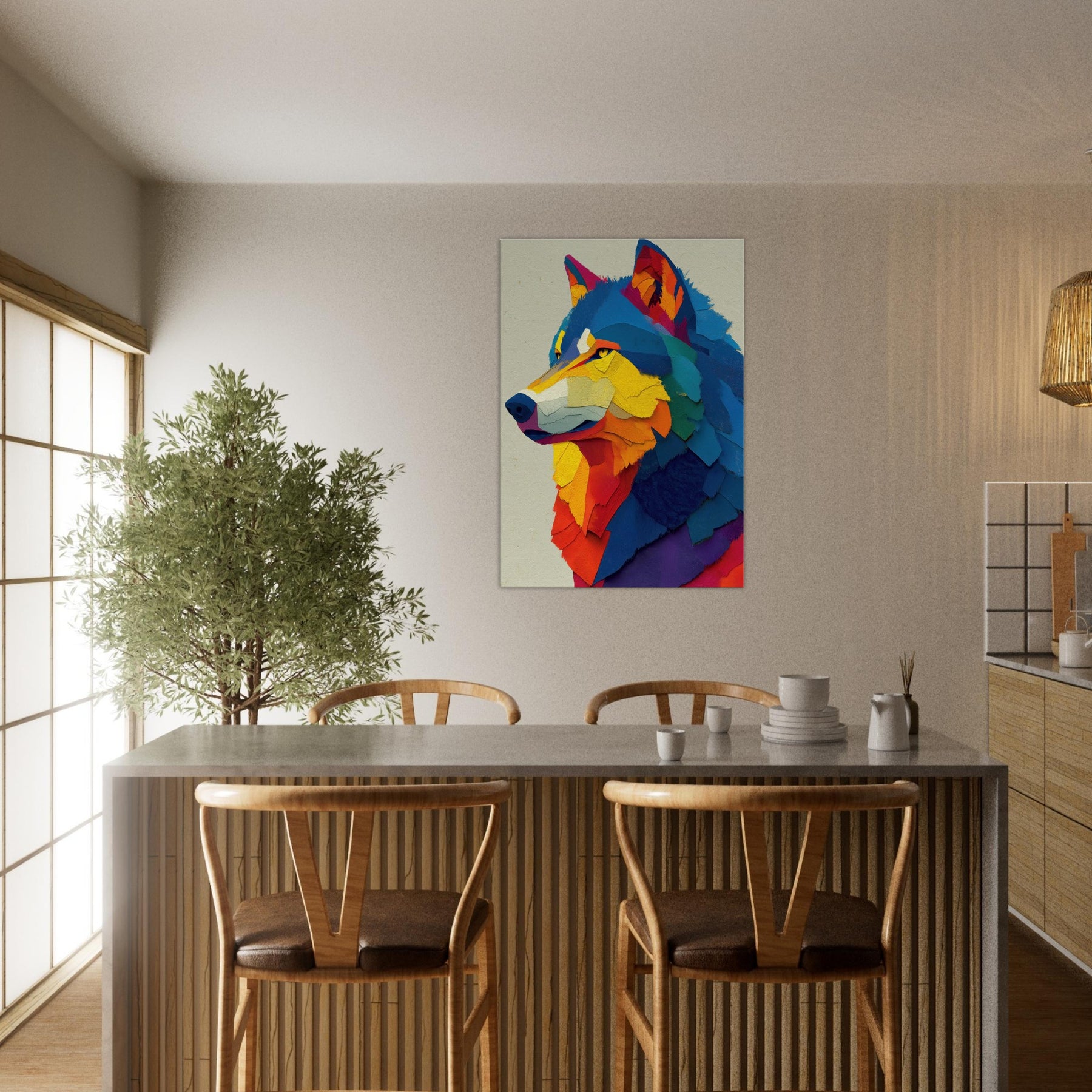 As the Primary Subject, the Wolf emerges in shards of color, a kinetic constellation that invites the eye to wander and the breath to slow. This abstract interpretation coats the room in a glow of warmth and edge sunlit yellows, electric blues, fiery oranges evoking a wild, nocturnal grace. Hang it where you wish to spark conversation or anchor a quiet corner; its layered texture and luminous palette transform walls into a living , a reminder of instinct, courage, and grace.
