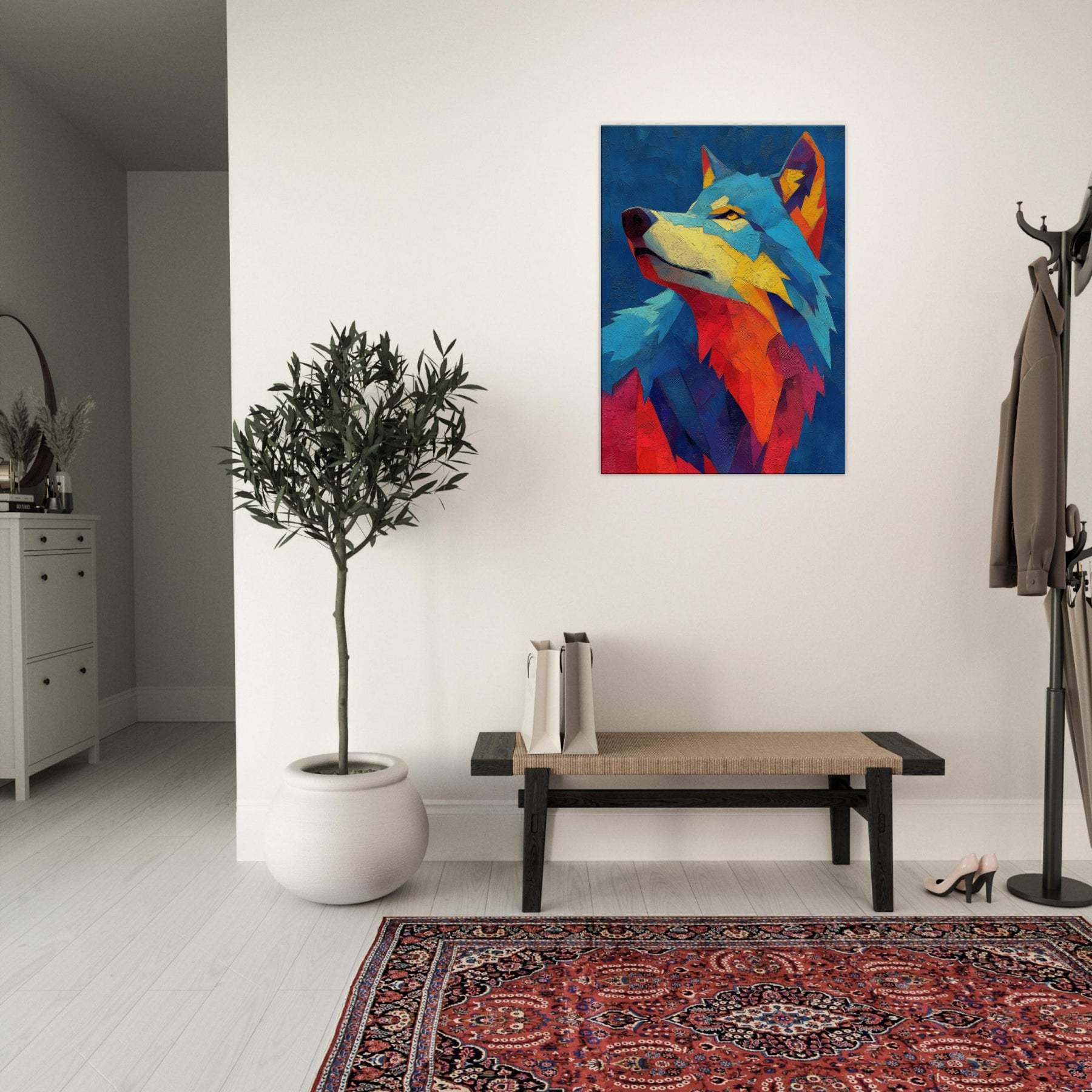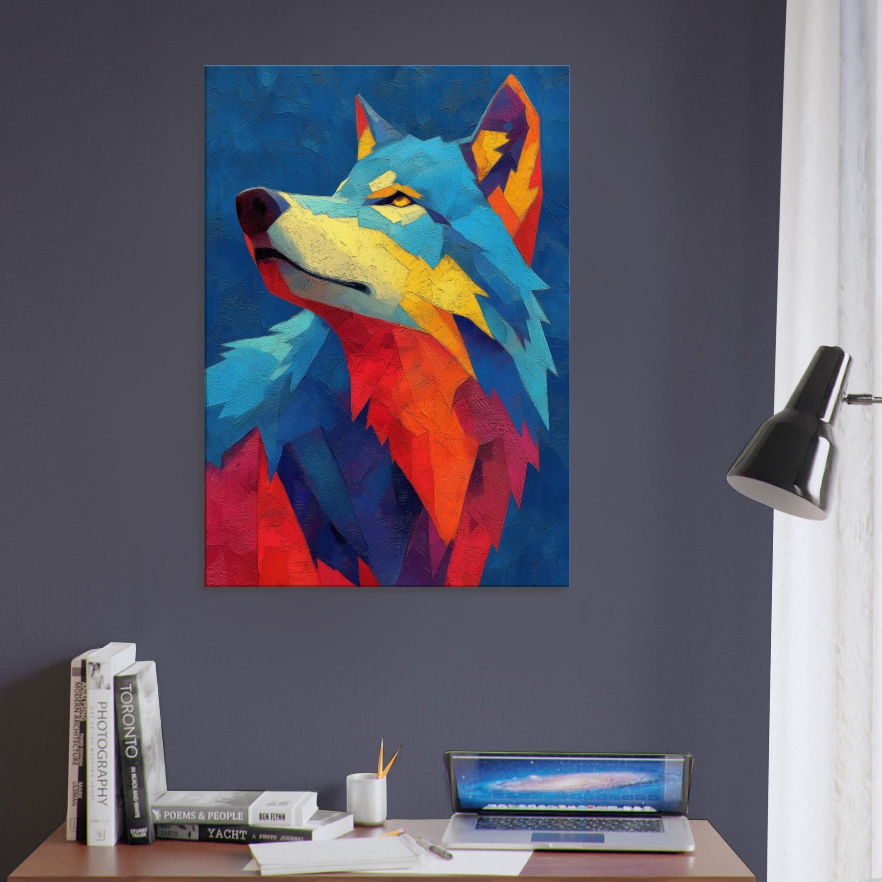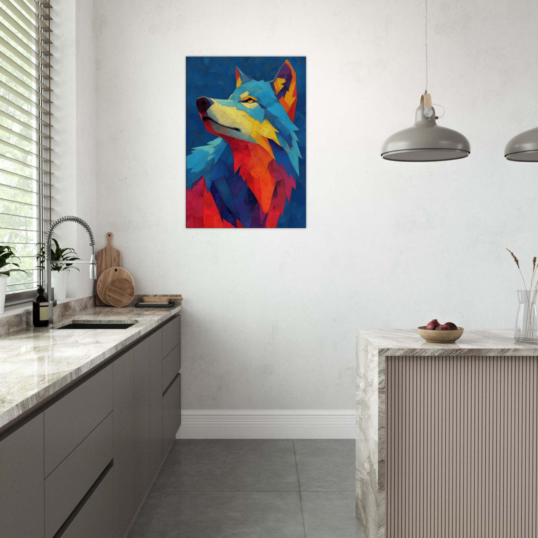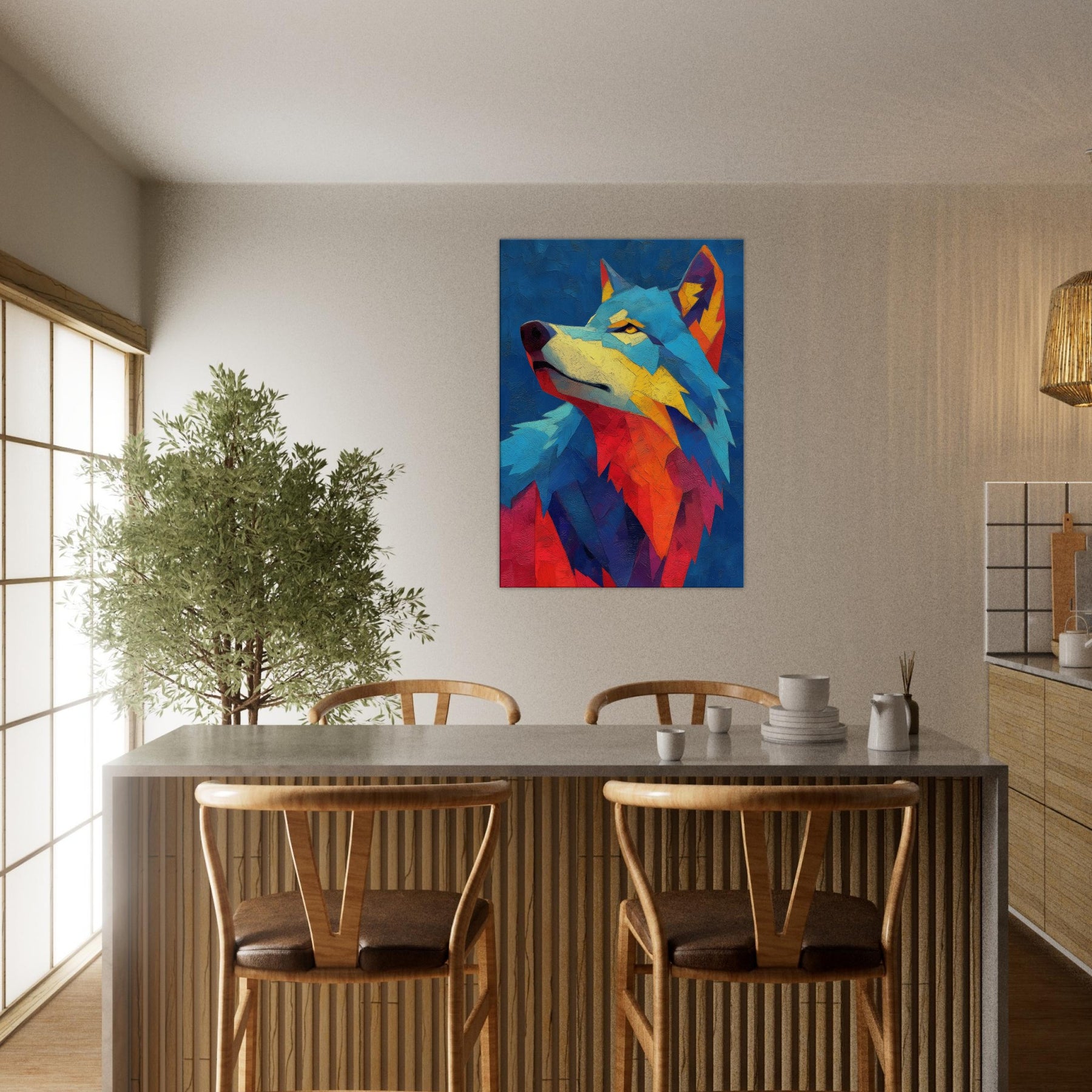 Embrace a living space with the Wolf as a beacon of motion and memory. This abstract rendering layers vibrant shards of teal, gold, orange, and cobalt into a powerful, crown like silhouette that seems to shift with the candlelight. The Wolf's amber eye holds a patient, knowing gaze, inviting quiet reflection as textures mimic frost and fire in equal measure. Perfect for a contemporary hallway or lounge, it adds atmosphere, warmth, and a fearless focal point that both soothes and inspires.
