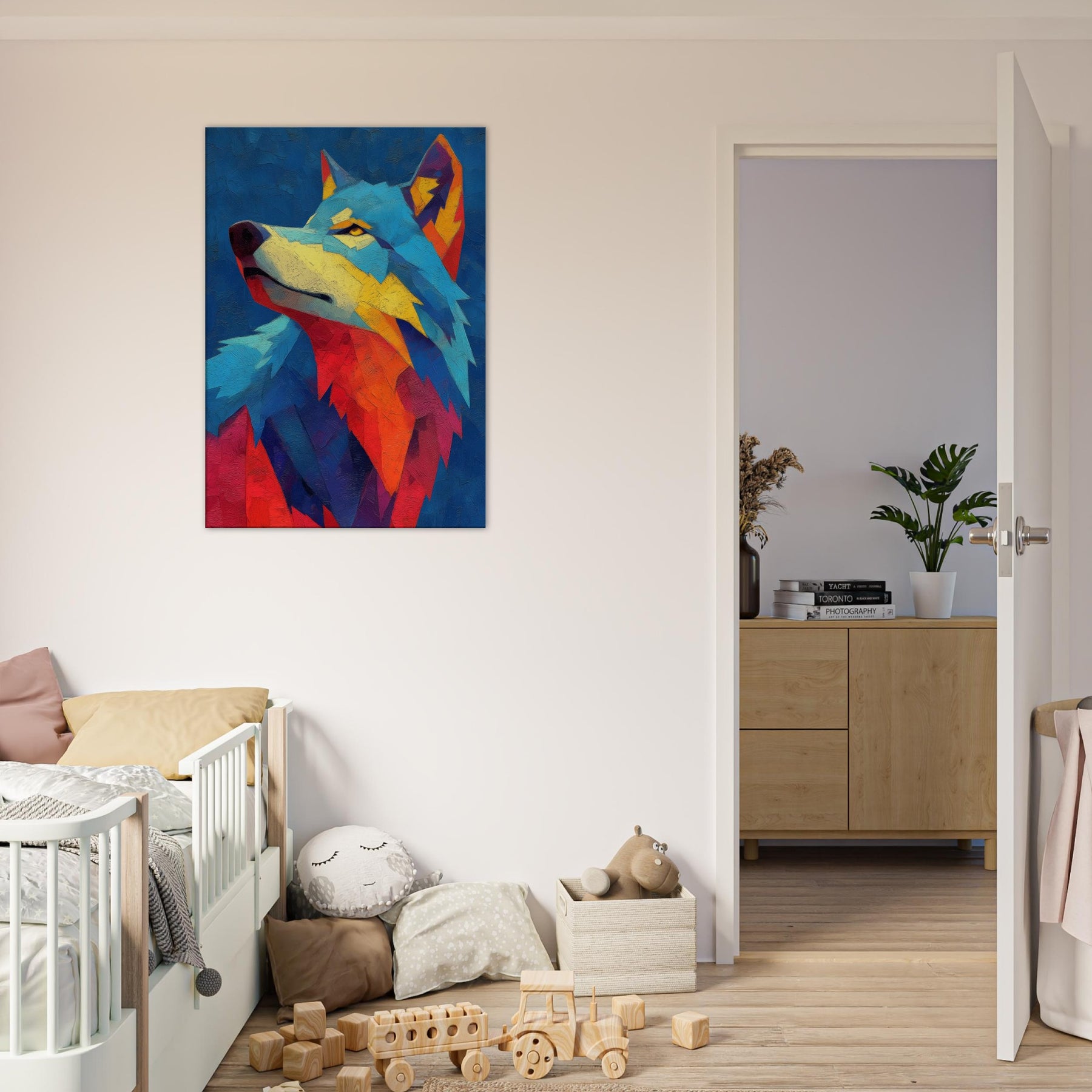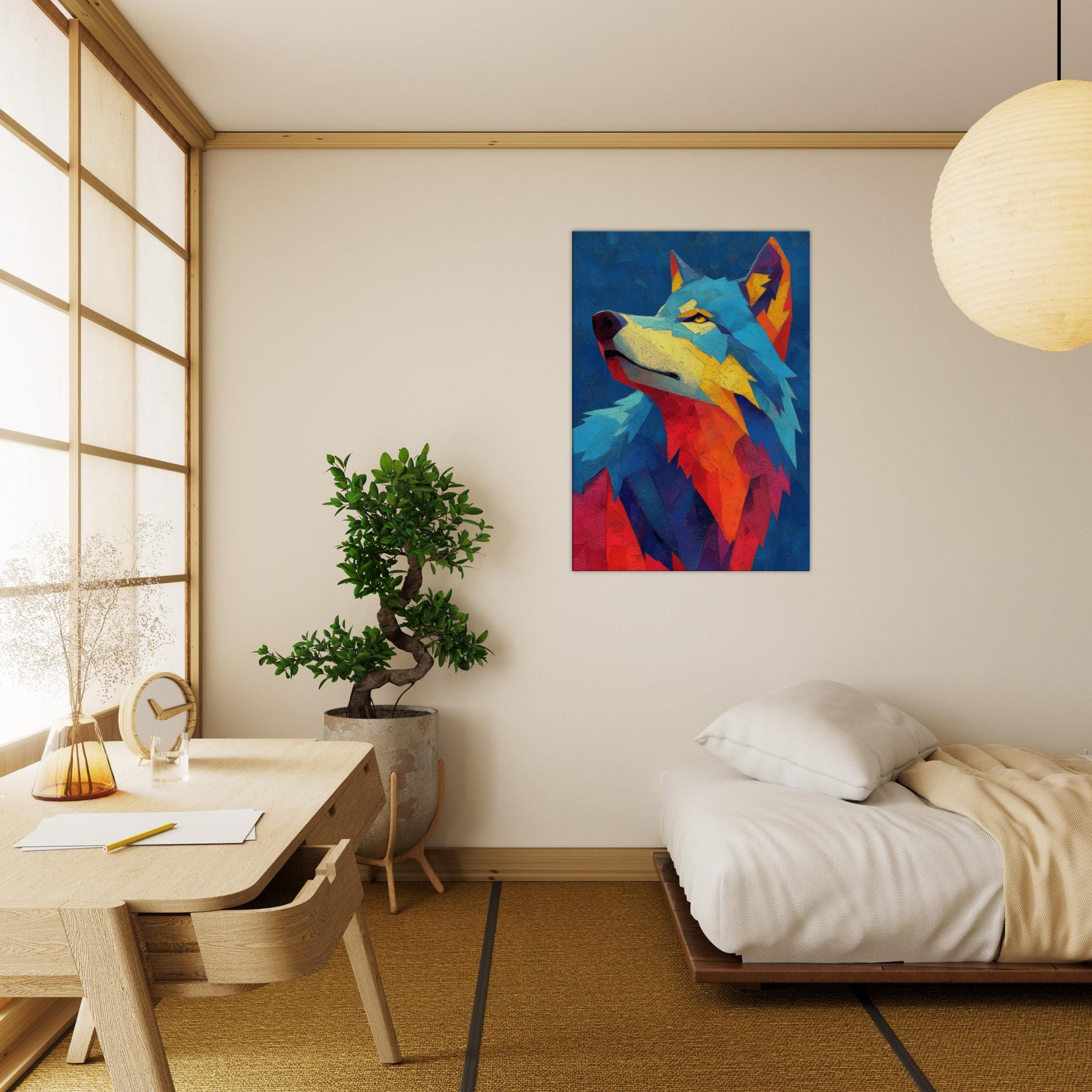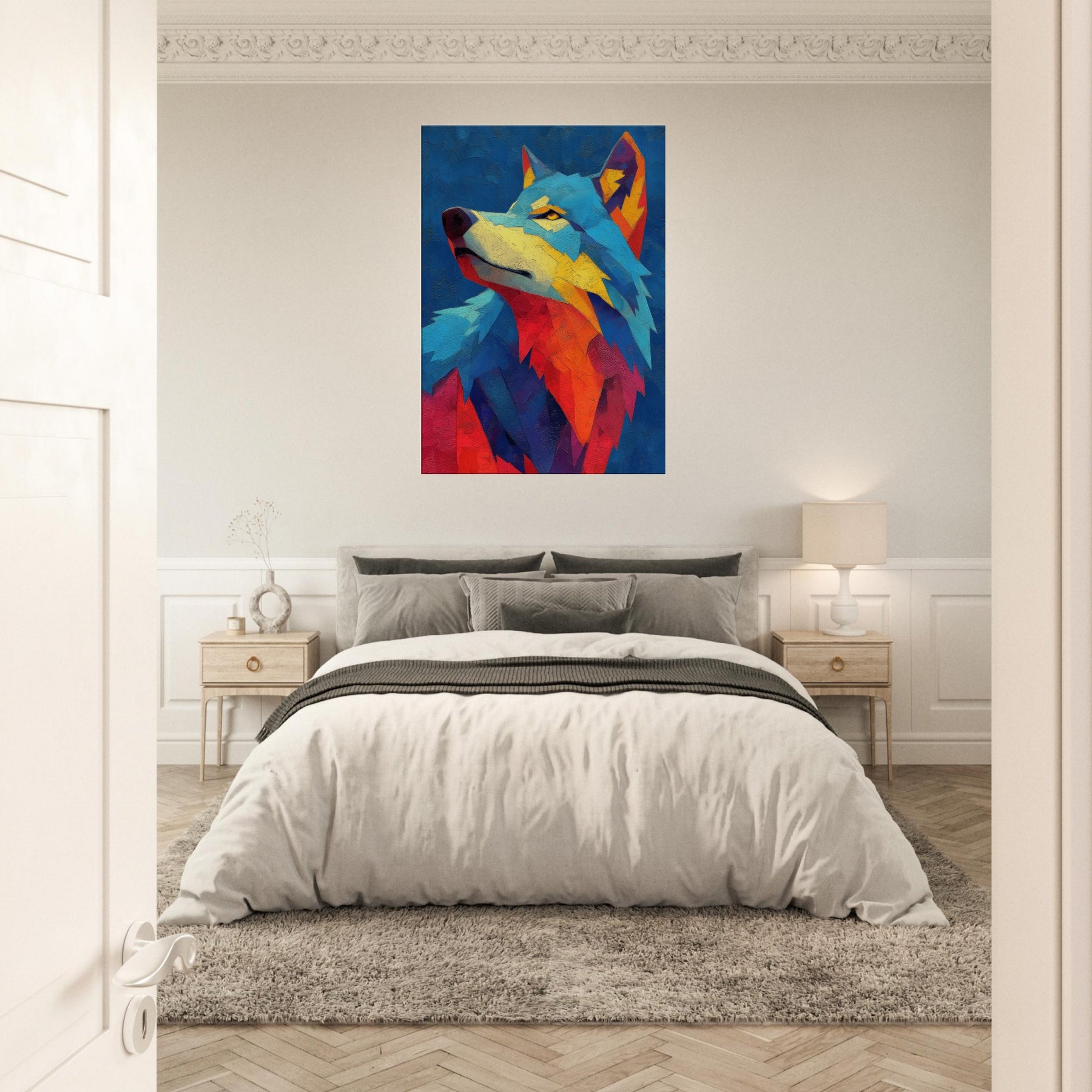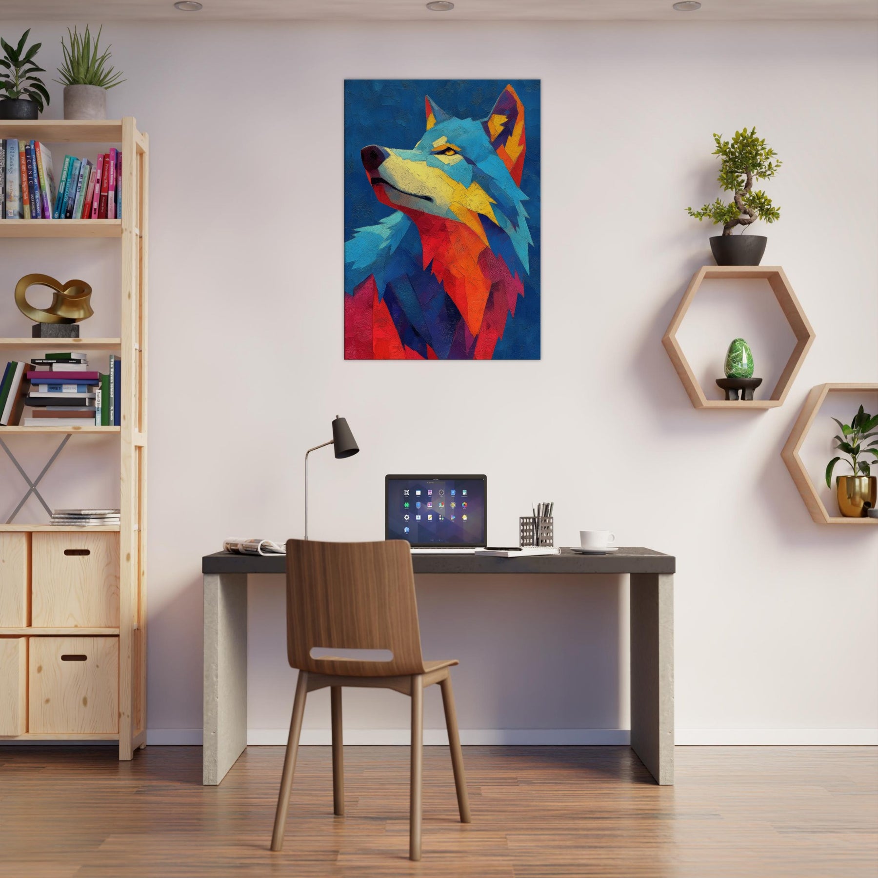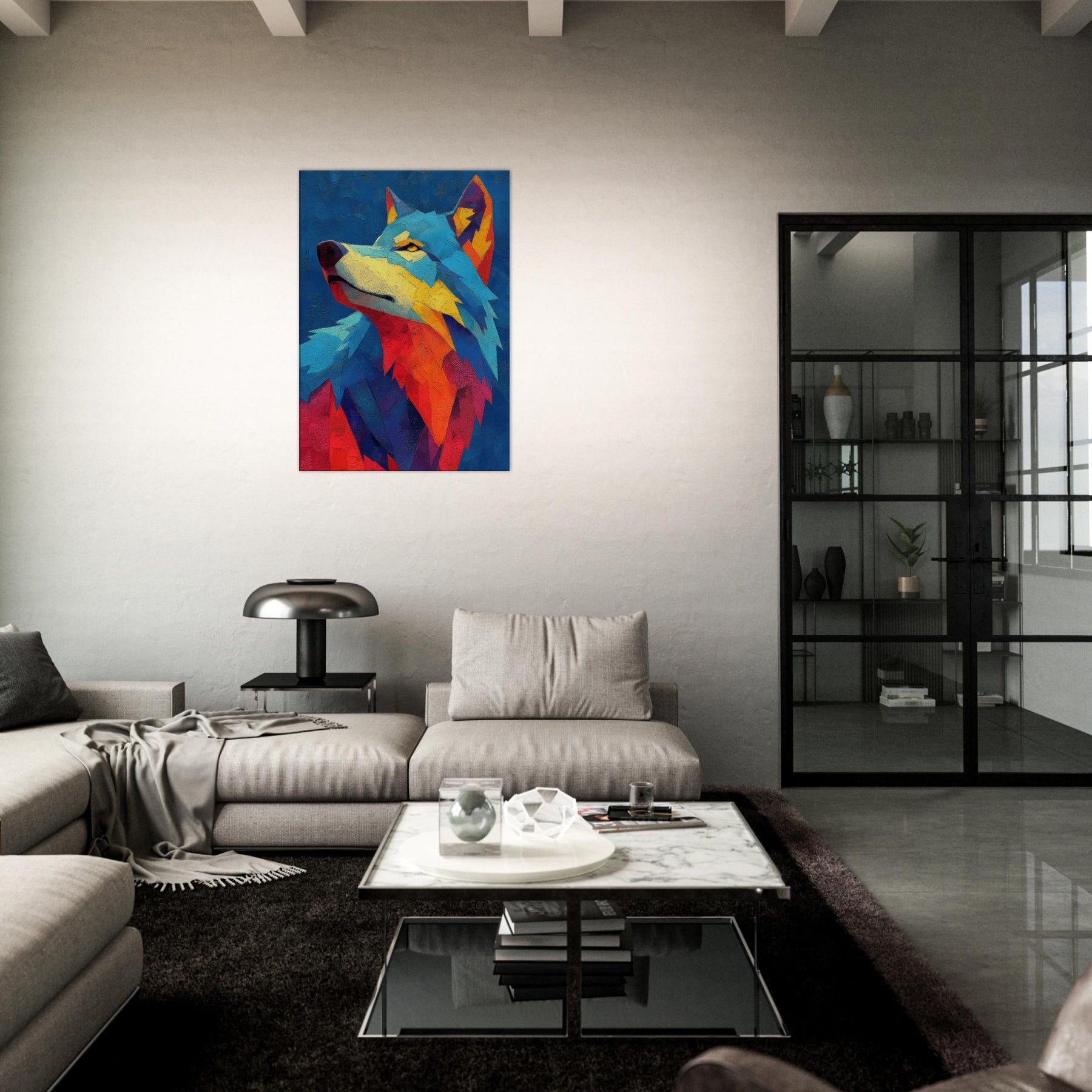 Embrace a living space with the Wolf as a beacon of motion and memory. This abstract rendering layers vibrant shards of teal, gold, orange, and cobalt into a powerful, crown like silhouette that seems to shift with the candlelight. The Wolf's amber eye holds a patient, knowing gaze, inviting quiet reflection as textures mimic frost and fire in equal measure. Perfect for a contemporary hallway or lounge, it adds atmosphere, warmth, and a fearless focal point that both soothes and inspires.
