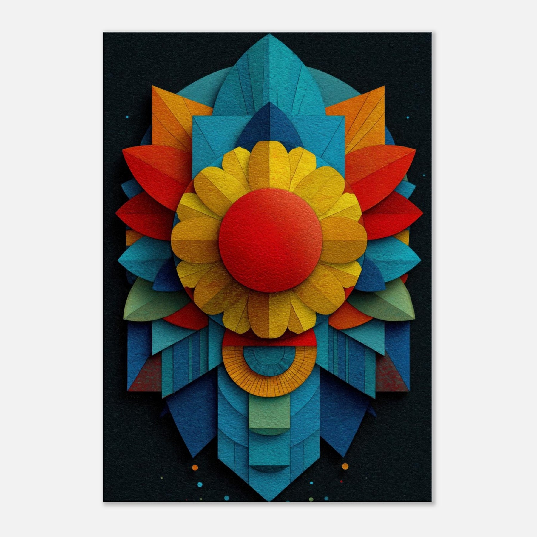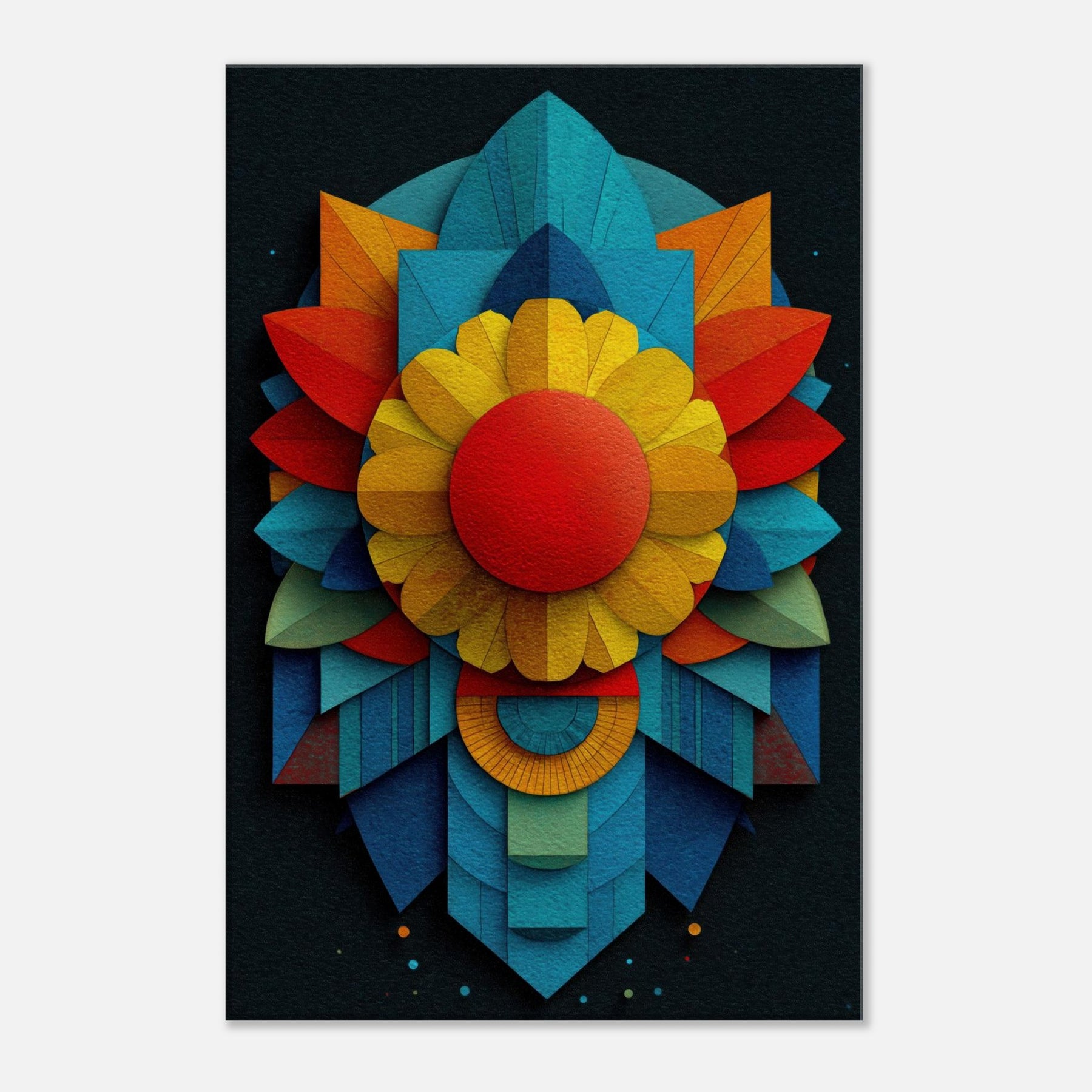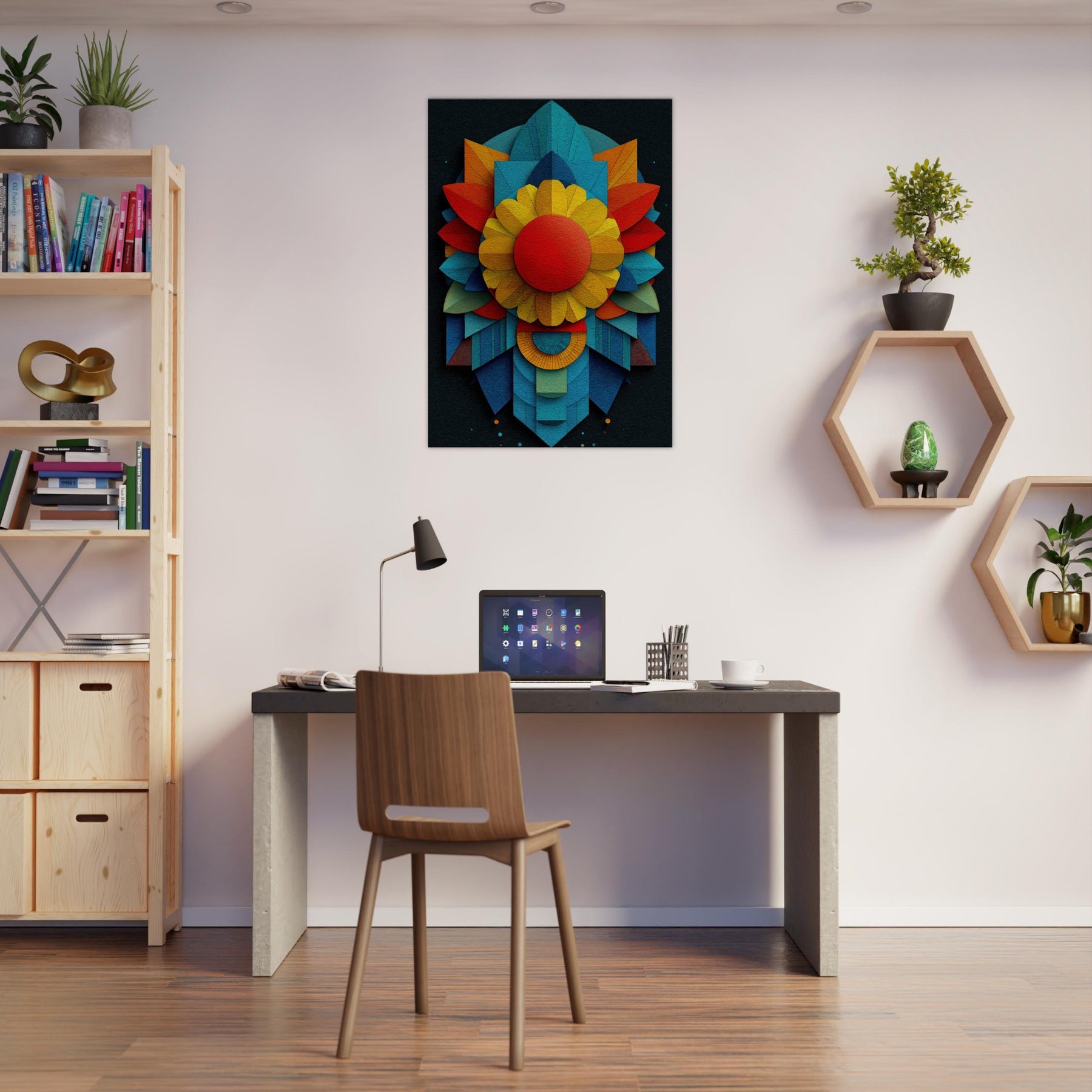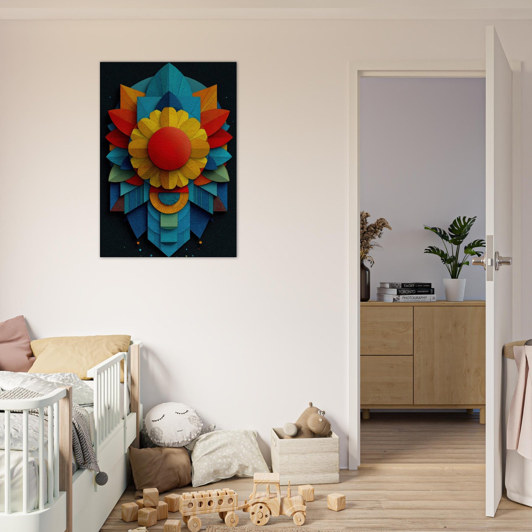 Let the Fruit of Life bloom at the heart of your space. This abstract composition unfurls in turquoise, saffron, and crimson, layering petals and geometric shards into a radiant halo. It exudes a soft, temple like glow that quiets conversations and invites quiet reflection. A mystical centerpiece for any living room, bedroom, or study, it reframes walls into a sanctuary of color and breath an energizing, comforting presence that elevates mood and imagination.