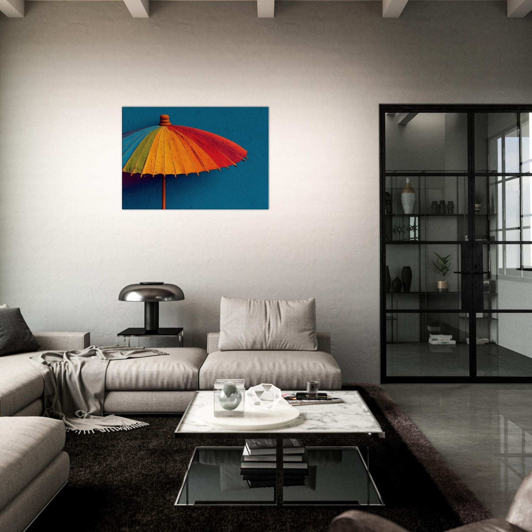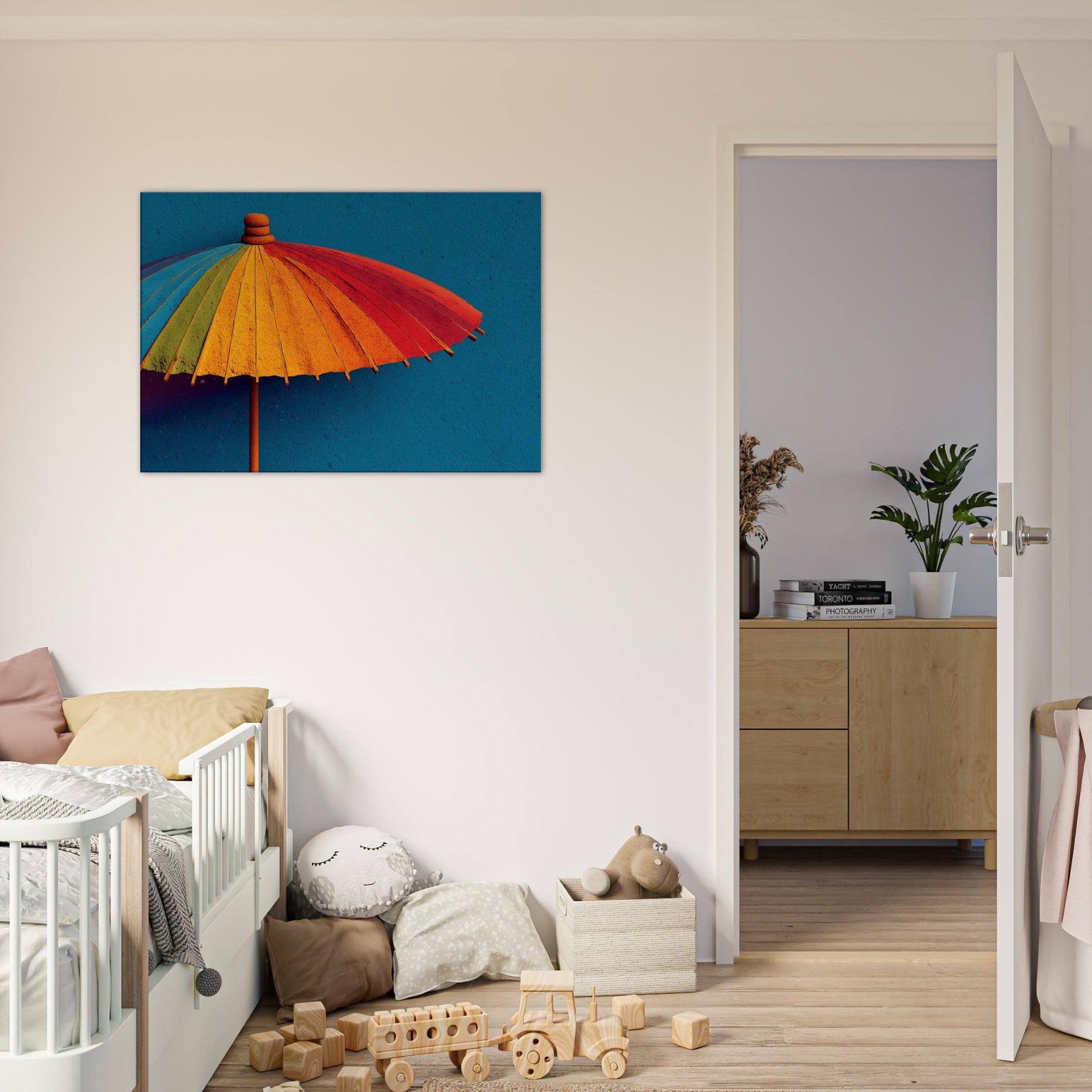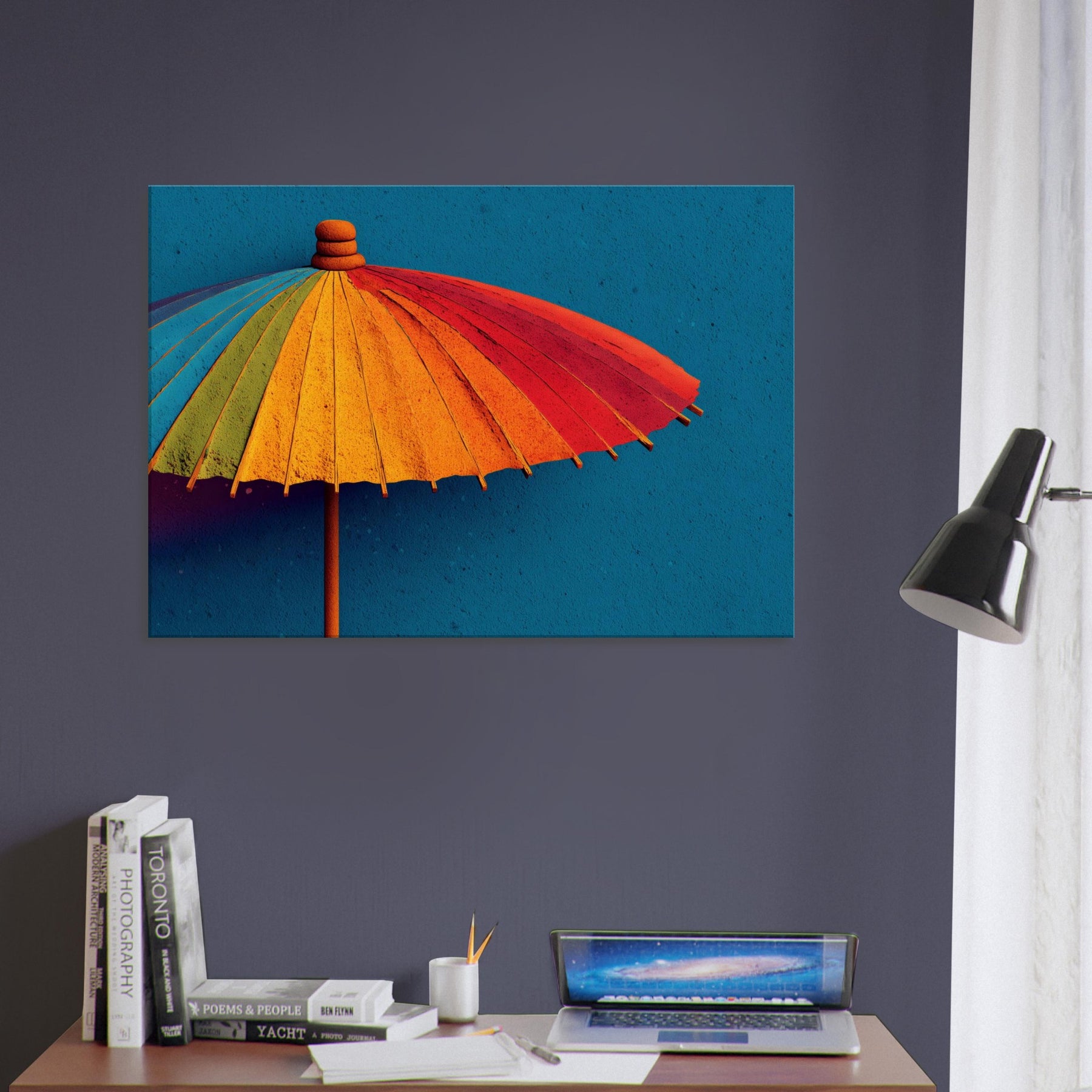 Let your space breathe with this Paper Umbrella, a playful study in color, light, and form. The piece unfurls a spectrum across the panel like a sunlit canopy, inviting the eye to drift from lime to tangerine, then rest on a deep cerulean backdrop. It feels both joyful and serene a compact mood booster that pairs with white walls or warm wood. Hang it in a living room, corridor, or bedroom to spark conversation and cast a gentle, colorful glow throughout the room.