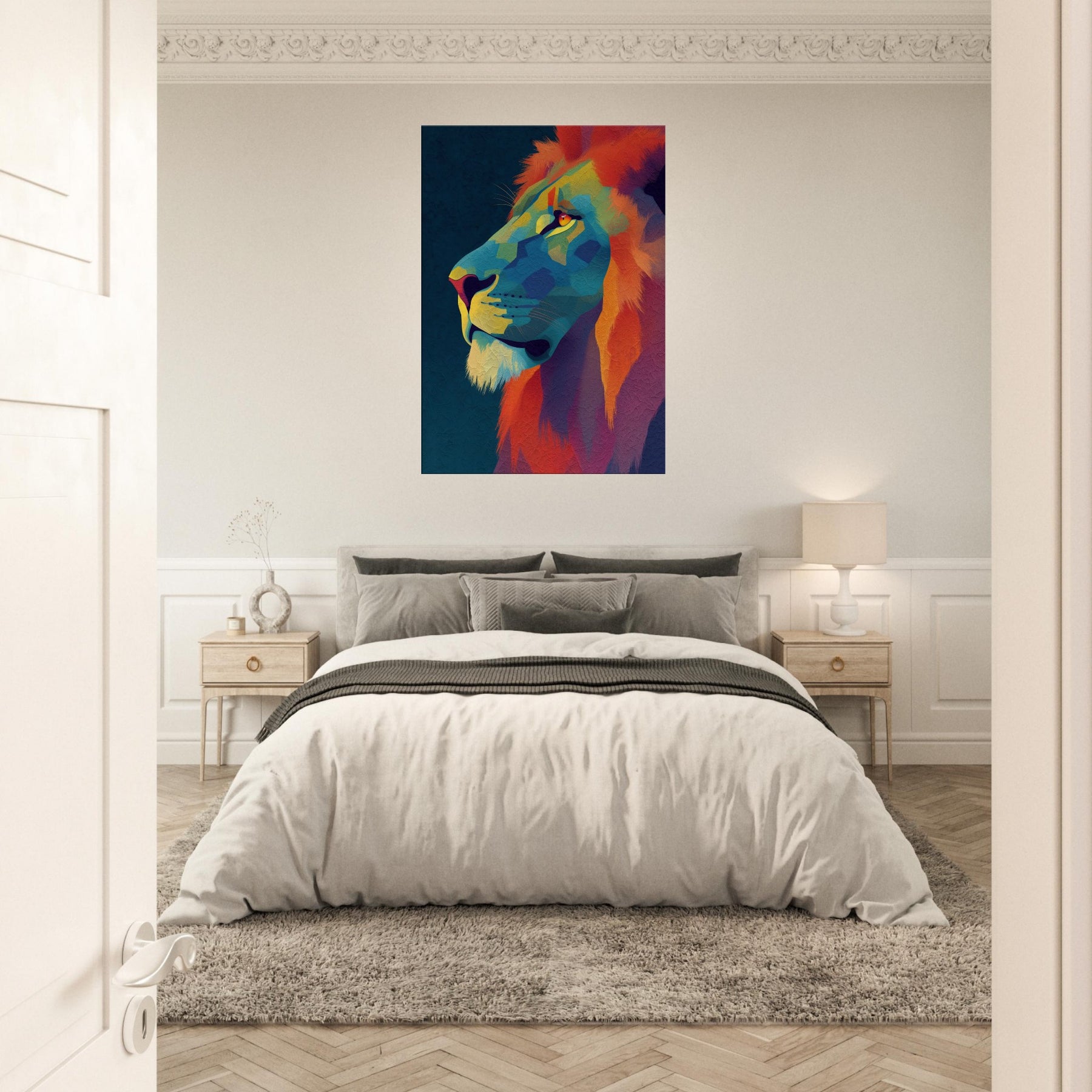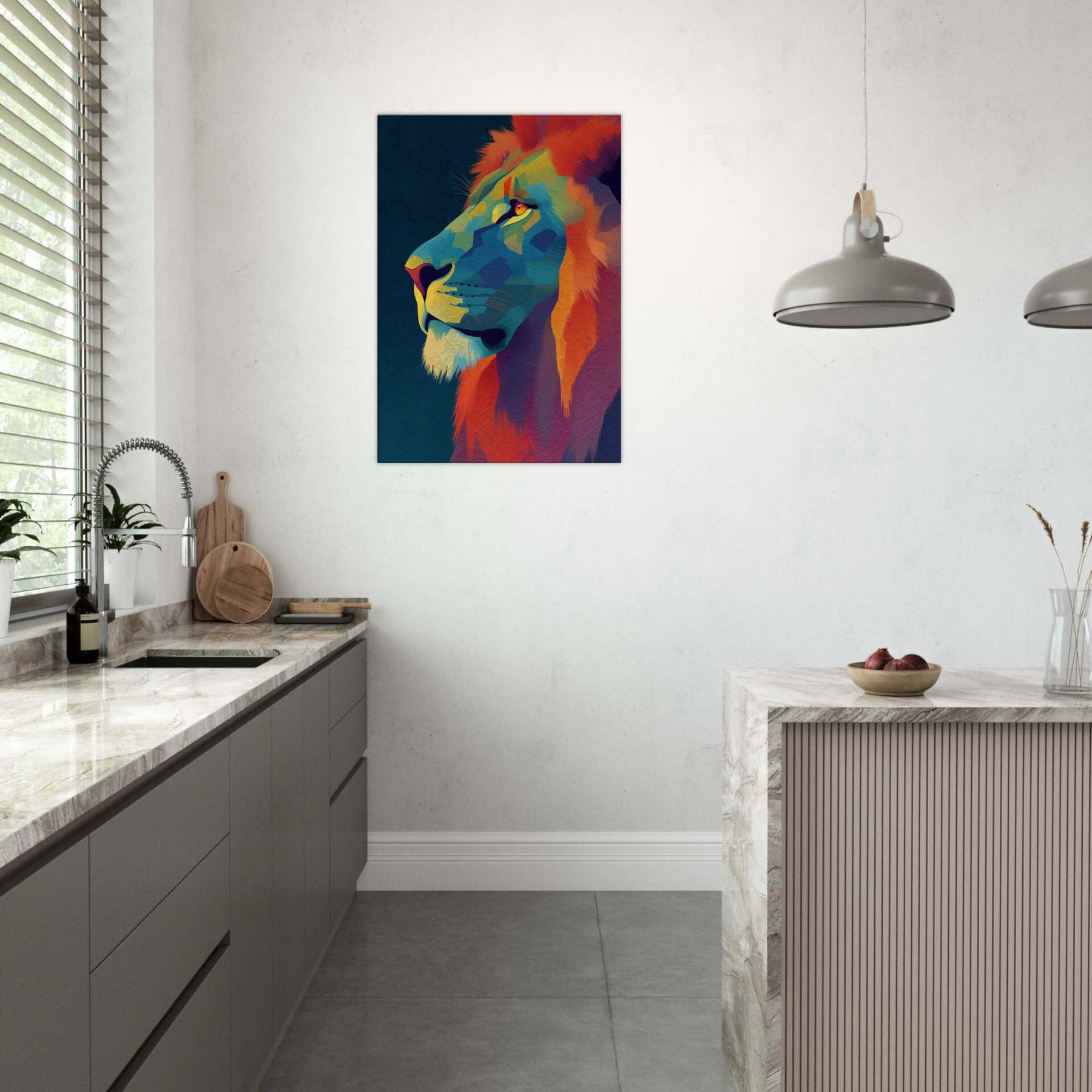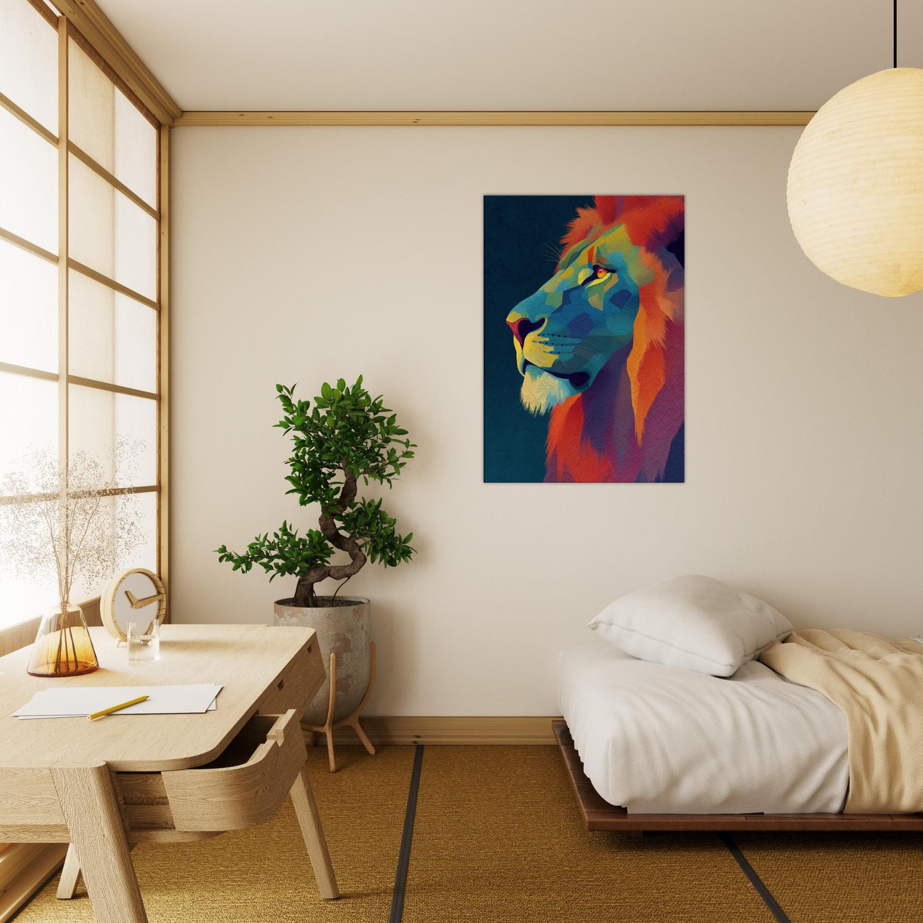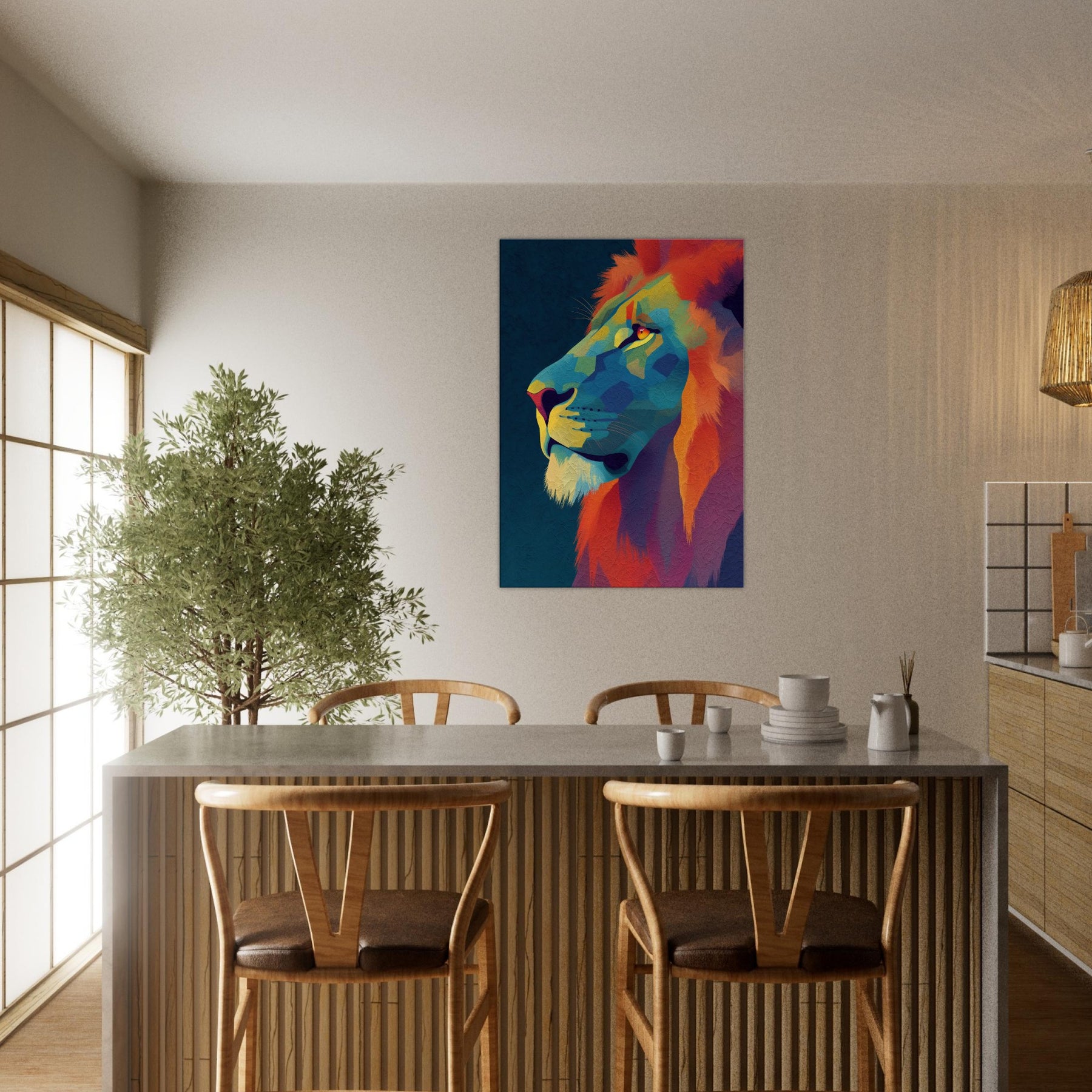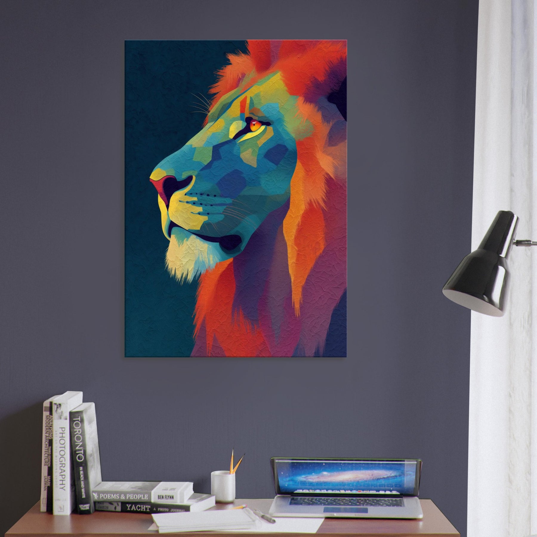 Let the Lion breathe life into your space with this vibrant abstract . A symphony of emeralds, tangerine, teal, and gold flows across the canvas, capturing the quiet regality of a king in motion. The textured facets invite the eye to wander, from the noble gaze to the sunlit mane, turning walls into a mood bold, warm, and unmistakably alive. Perfect above a sofa or in a hallway, it elevates daily moments into a cinematic moment of color and calm.