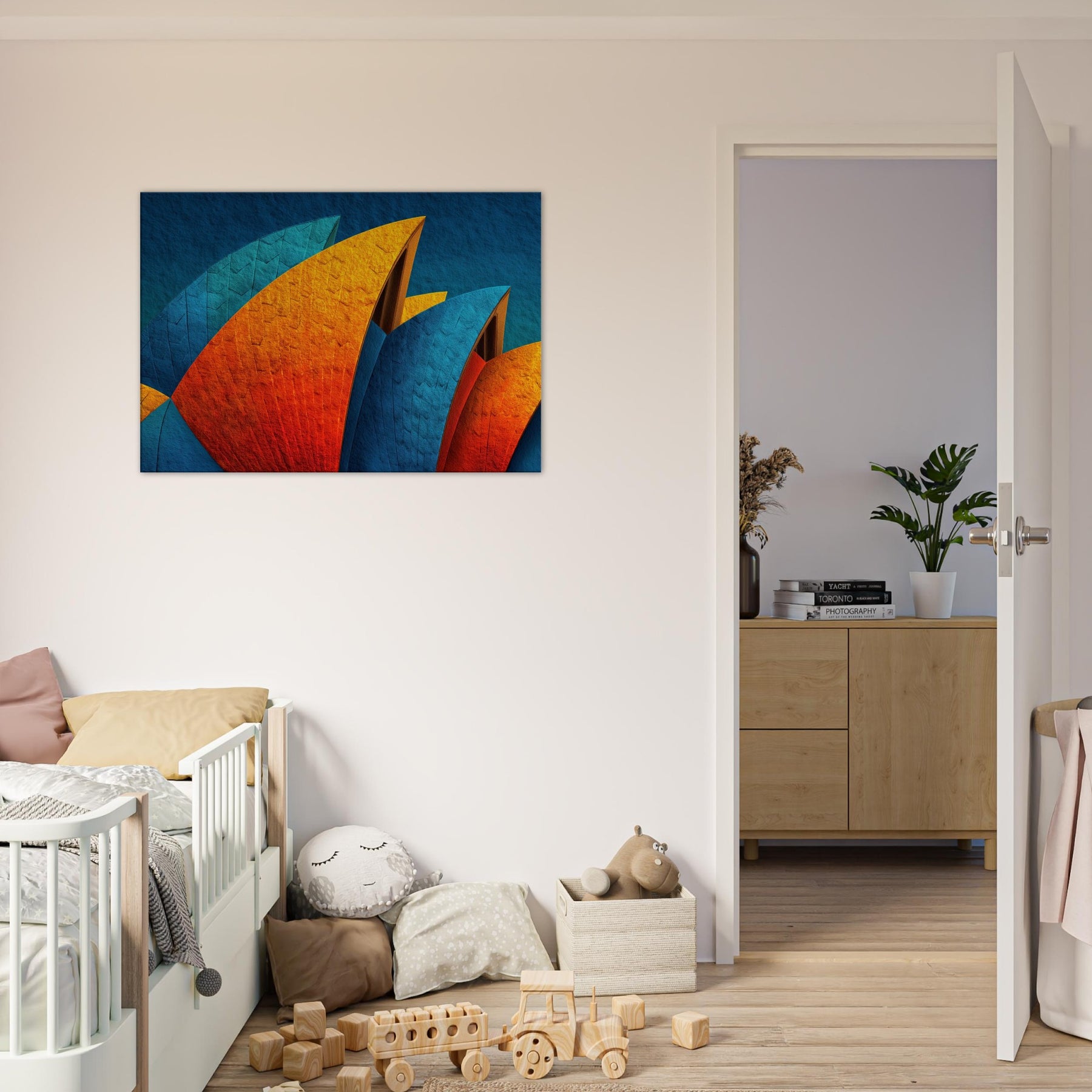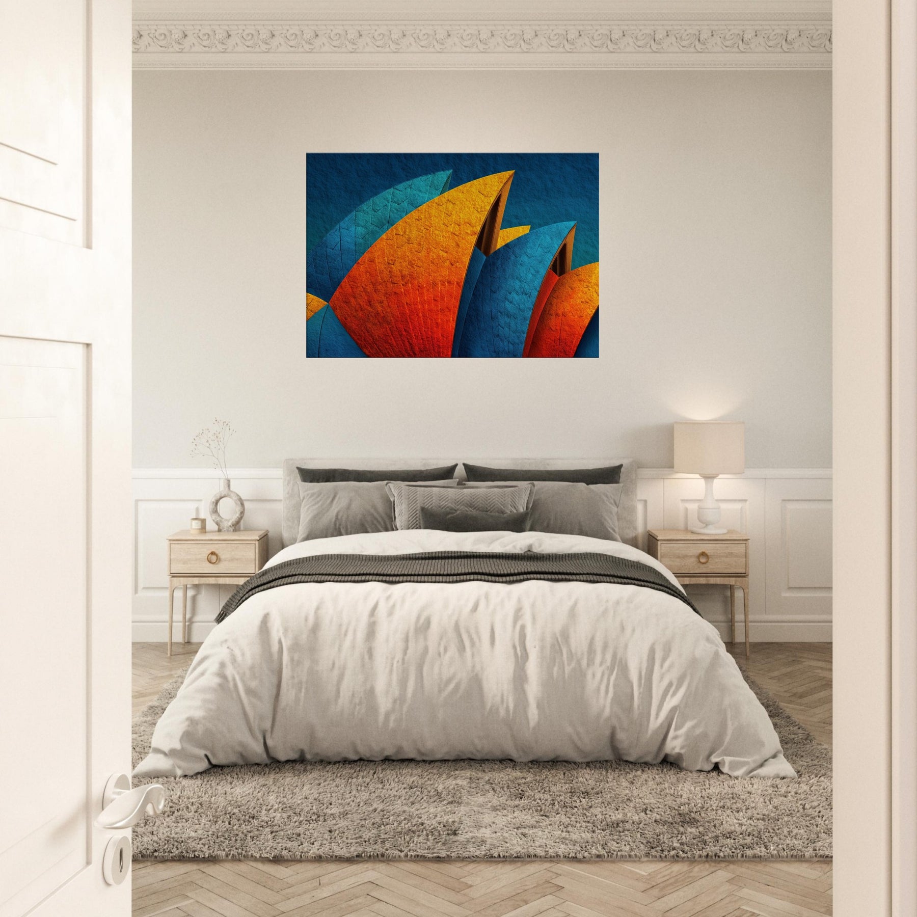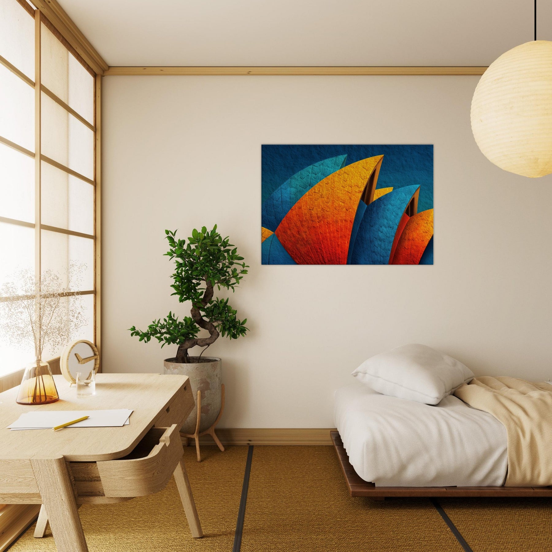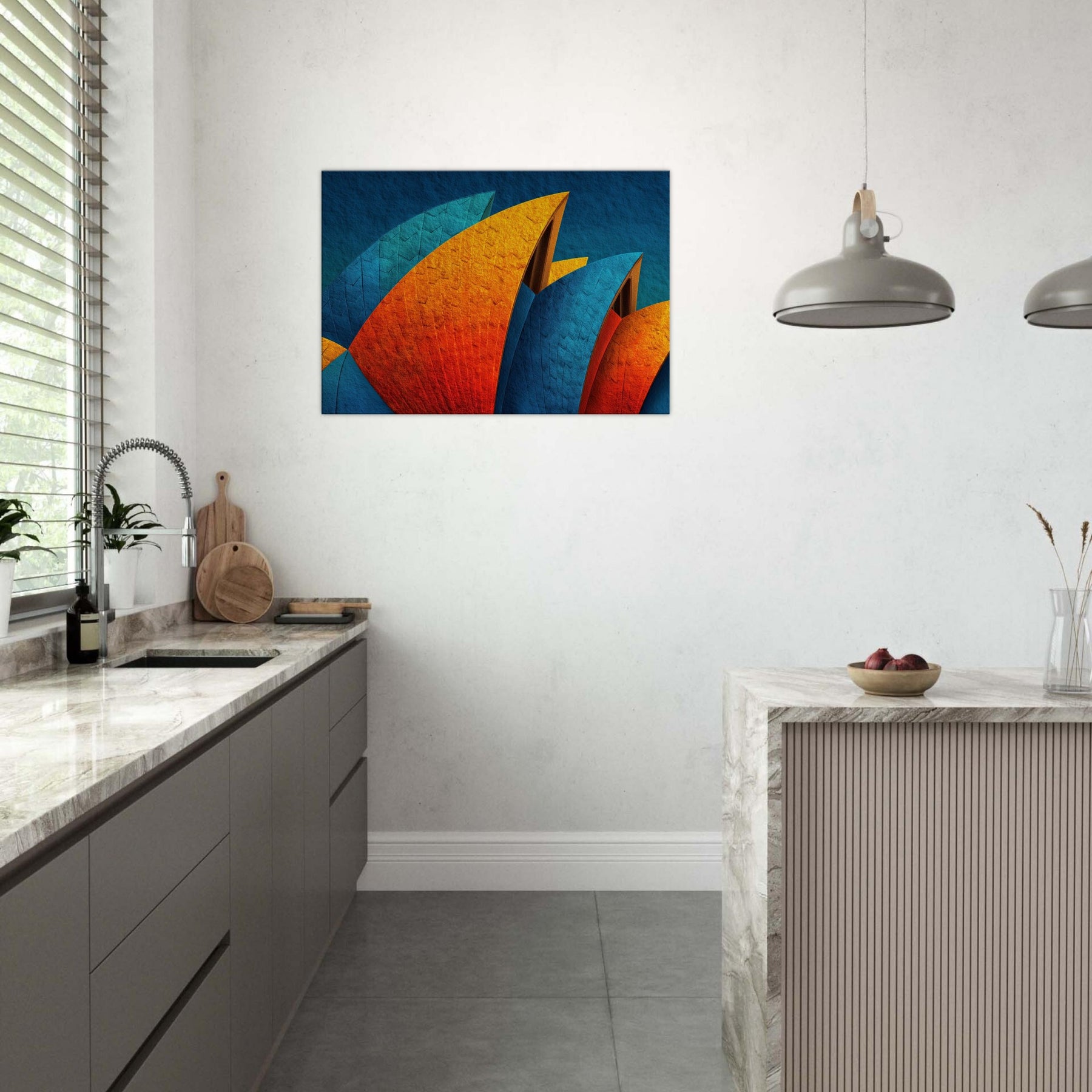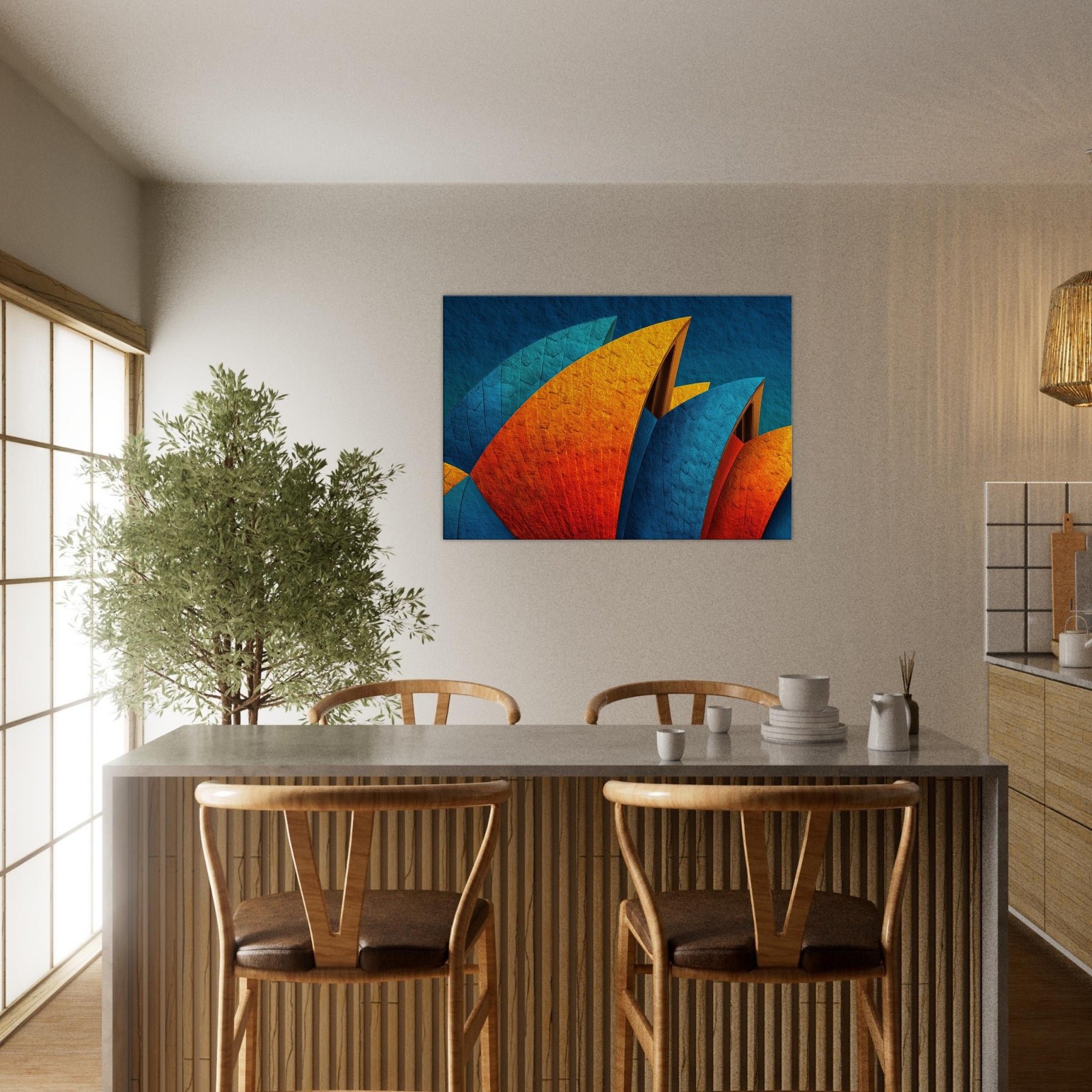 Let the Sydney Opera House take center stage in your room, reimagined as an abstract chorus of color and rhythm. This wall art dissolves familiar silhouettes into sweeping sails of teal, cobalt, and coral, their textured surfaces catching the light and inviting a closer glance. It breathes energy into a living space, turning walls into a horizon where sea and architecture meet. Perfect for a salon, study, or hallway, it pairs bold color with quiet elegance, inspiring conversation and a serene, imaginative mood.