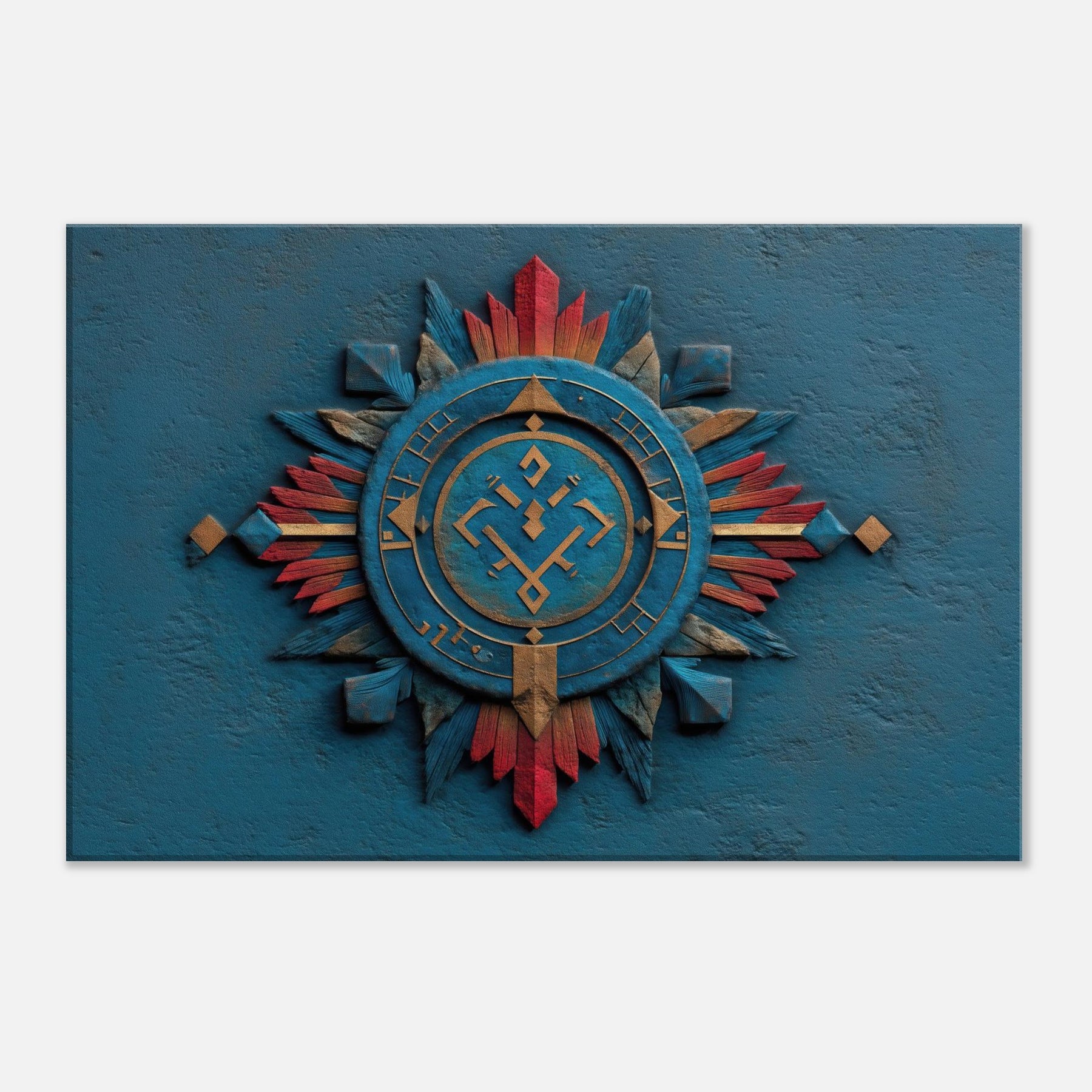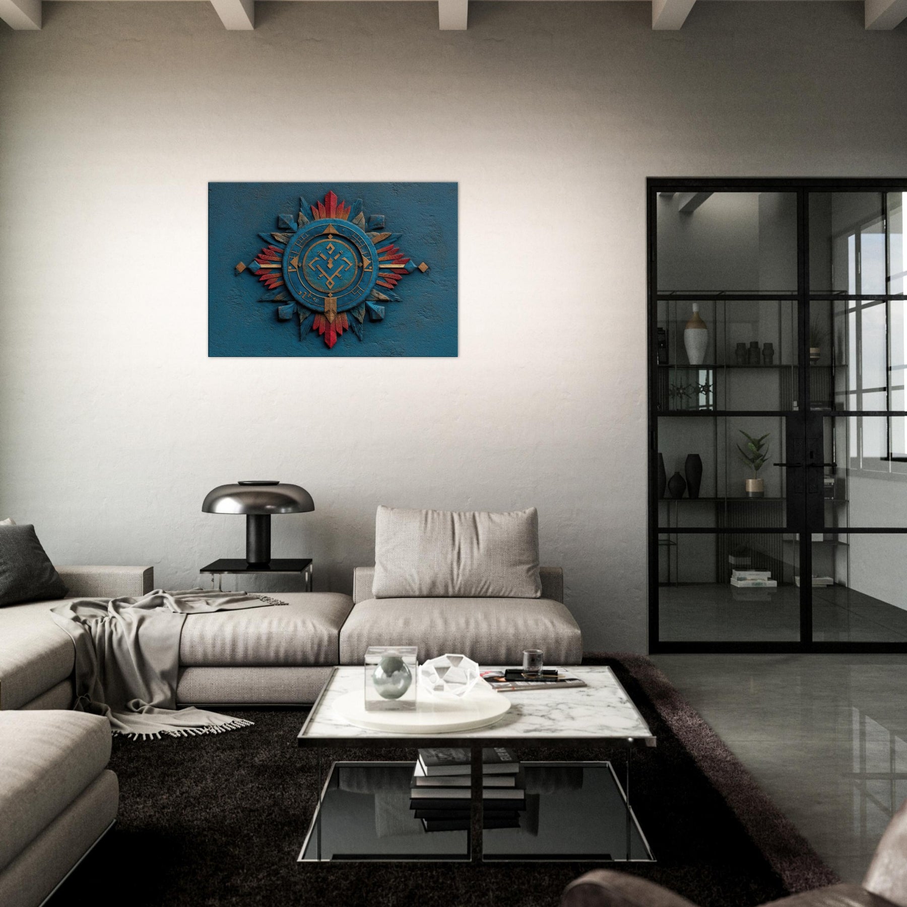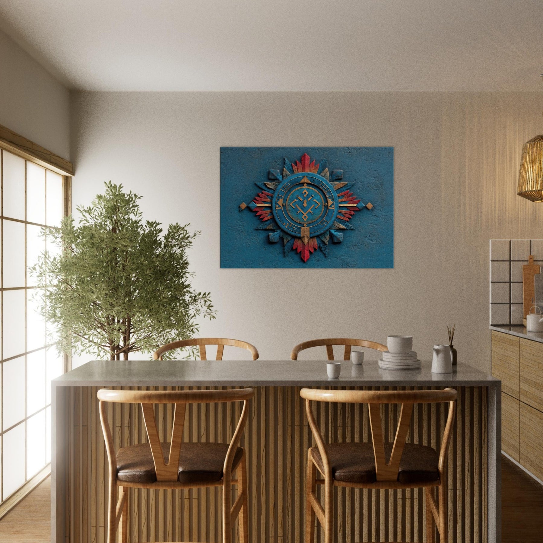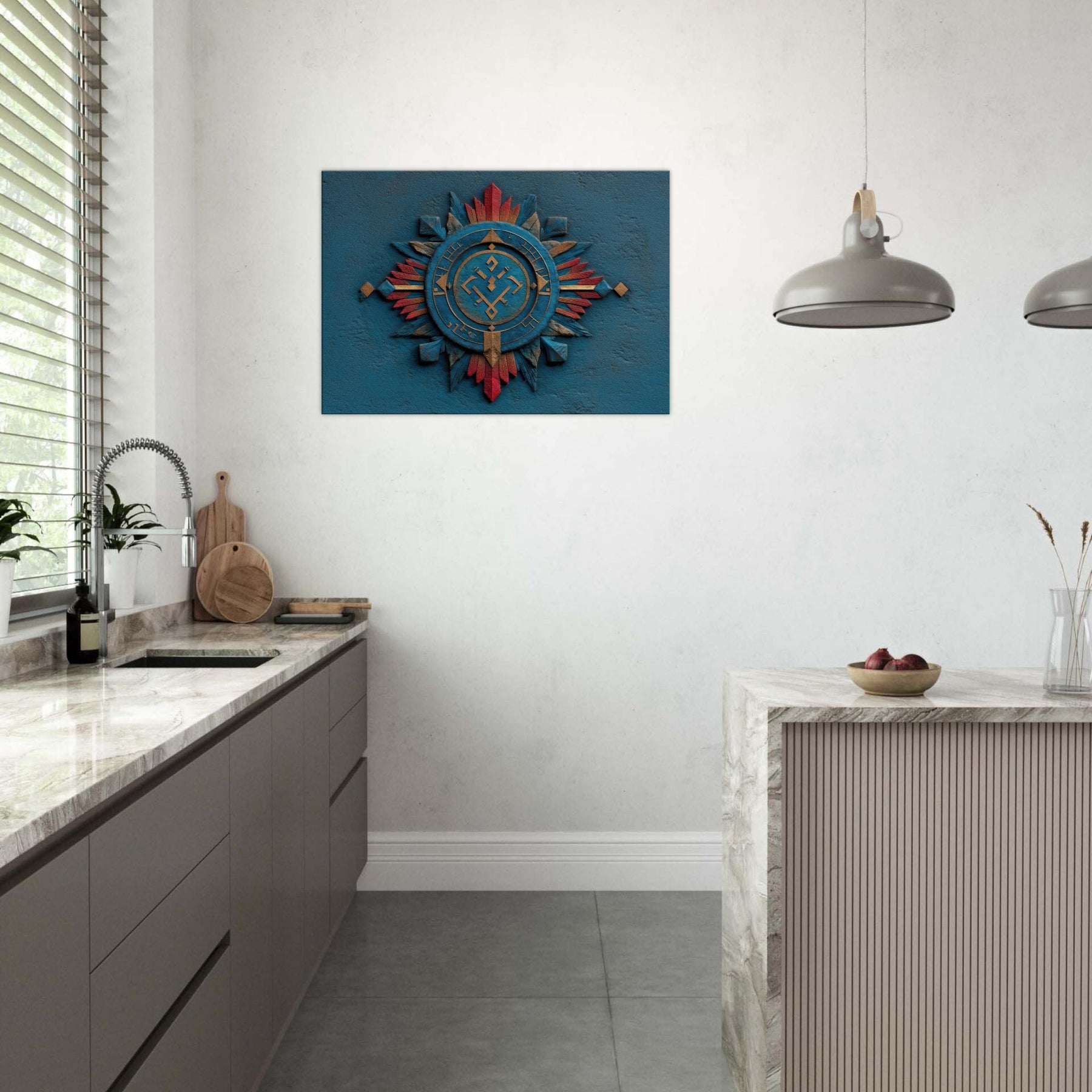 An abstract meditation on transformation, this piece centers on Alchemy Symbols the Salt, Sulfur, and Mercury refracted into a luminous circle of color. The arrangement radiates like a mystical sun, with coppery accents and cobalt blues that invite the eye to wander. The tactile relief and weathered patina evoke ancient codices, while the soft glow of the hues creates a contemplative mood. Hang it where light can drift across the surface, and let the space breathe with quiet, enigmatic energy. The central subject is Alchemy Symbols (Salt, Sulfur, Mercury).