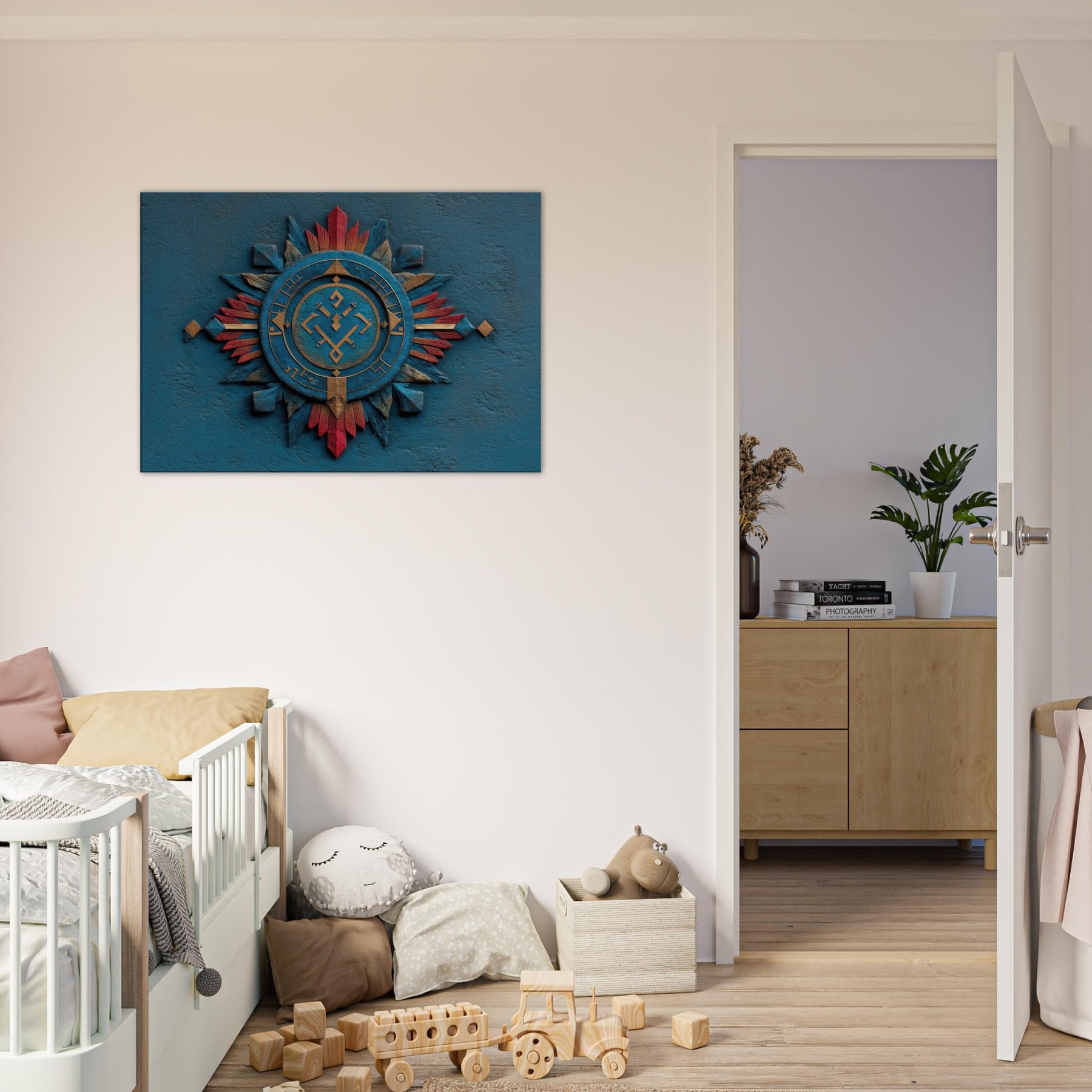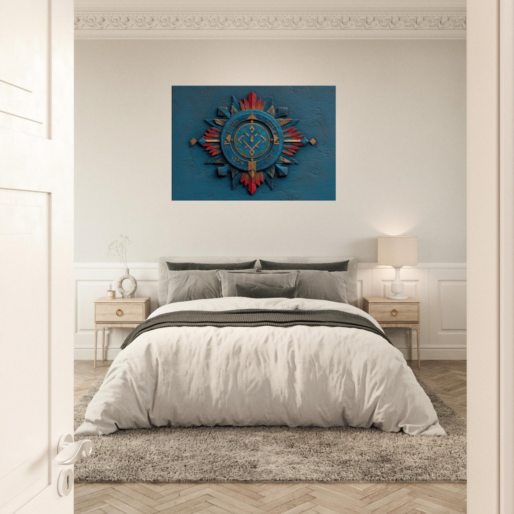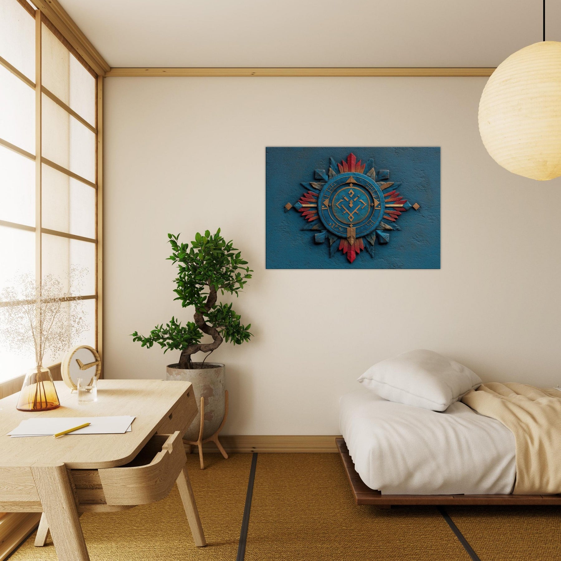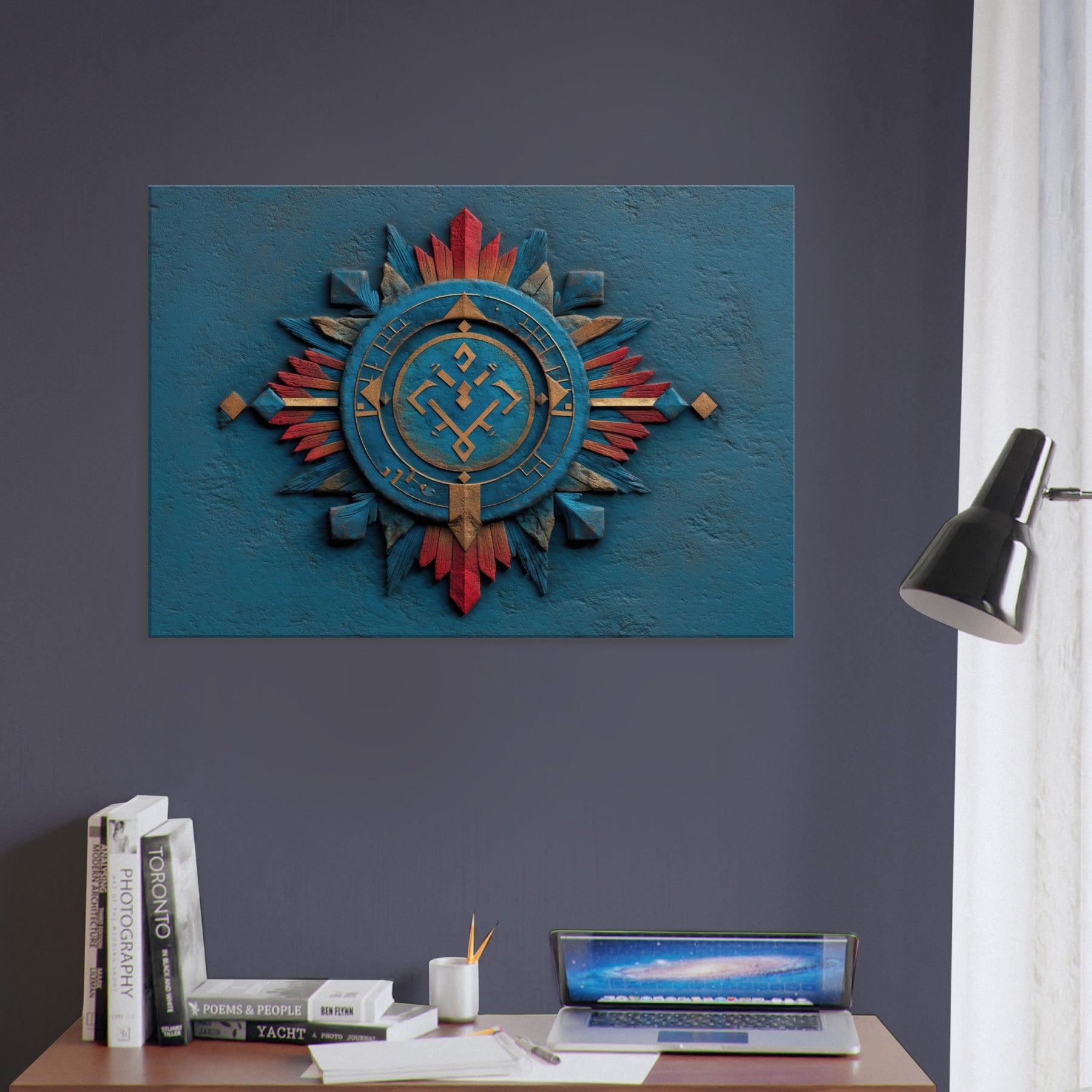 An abstract meditation on transformation, this piece centers on Alchemy Symbols the Salt, Sulfur, and Mercury refracted into a luminous circle of color. The arrangement radiates like a mystical sun, with coppery accents and cobalt blues that invite the eye to wander. The tactile relief and weathered patina evoke ancient codices, while the soft glow of the hues creates a contemplative mood. Hang it where light can drift across the surface, and let the space breathe with quiet, enigmatic energy. The central subject is Alchemy Symbols (Salt, Sulfur, Mercury).