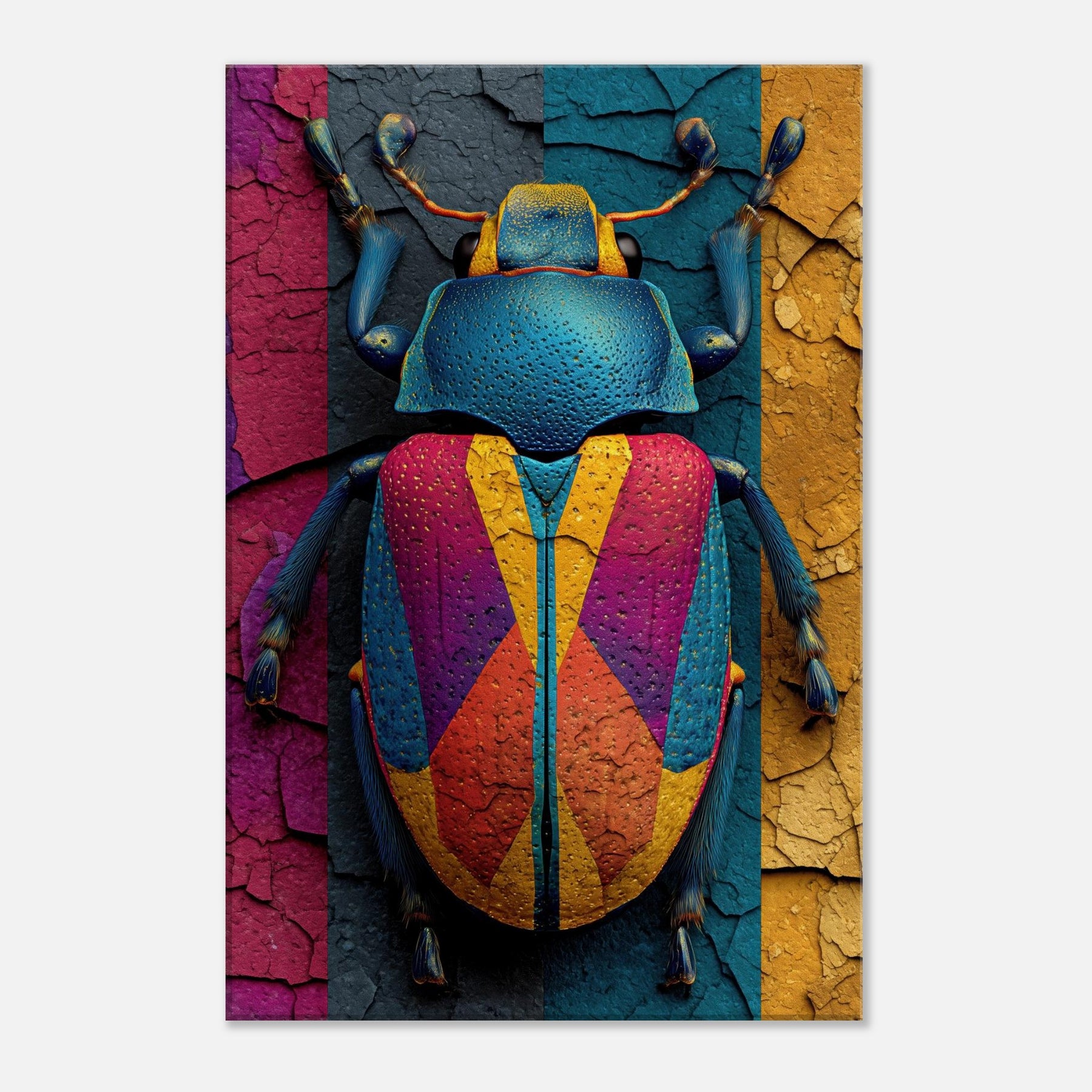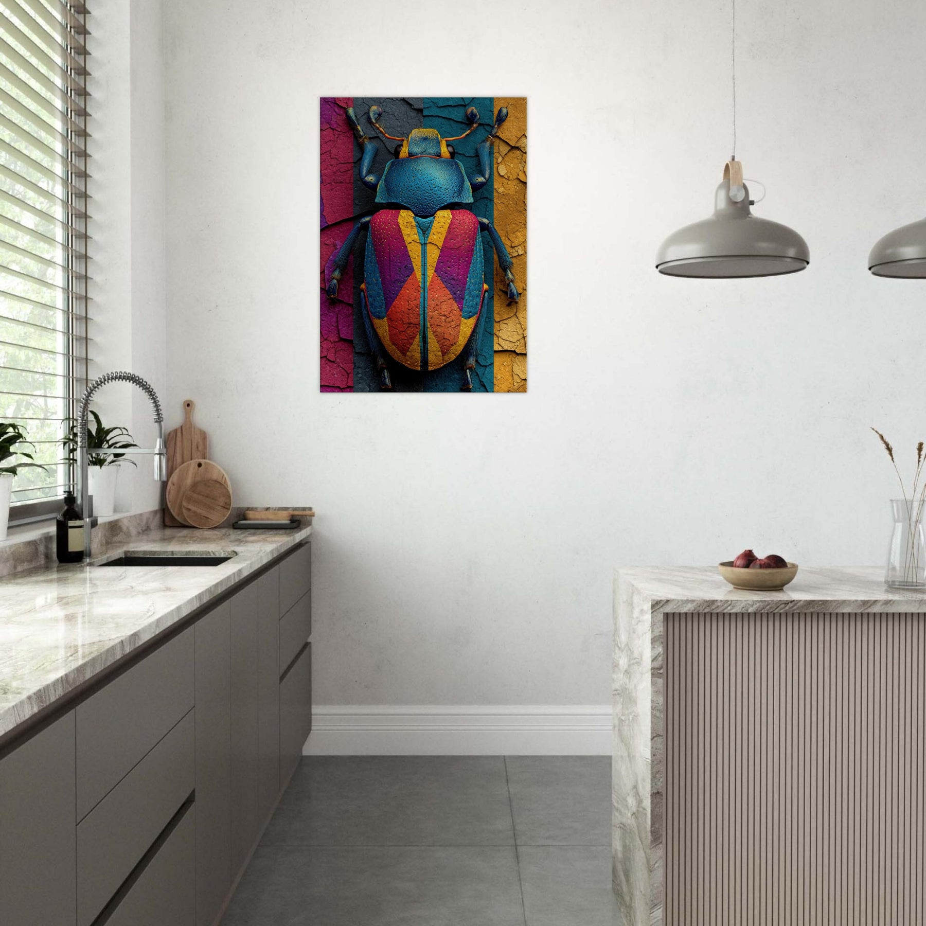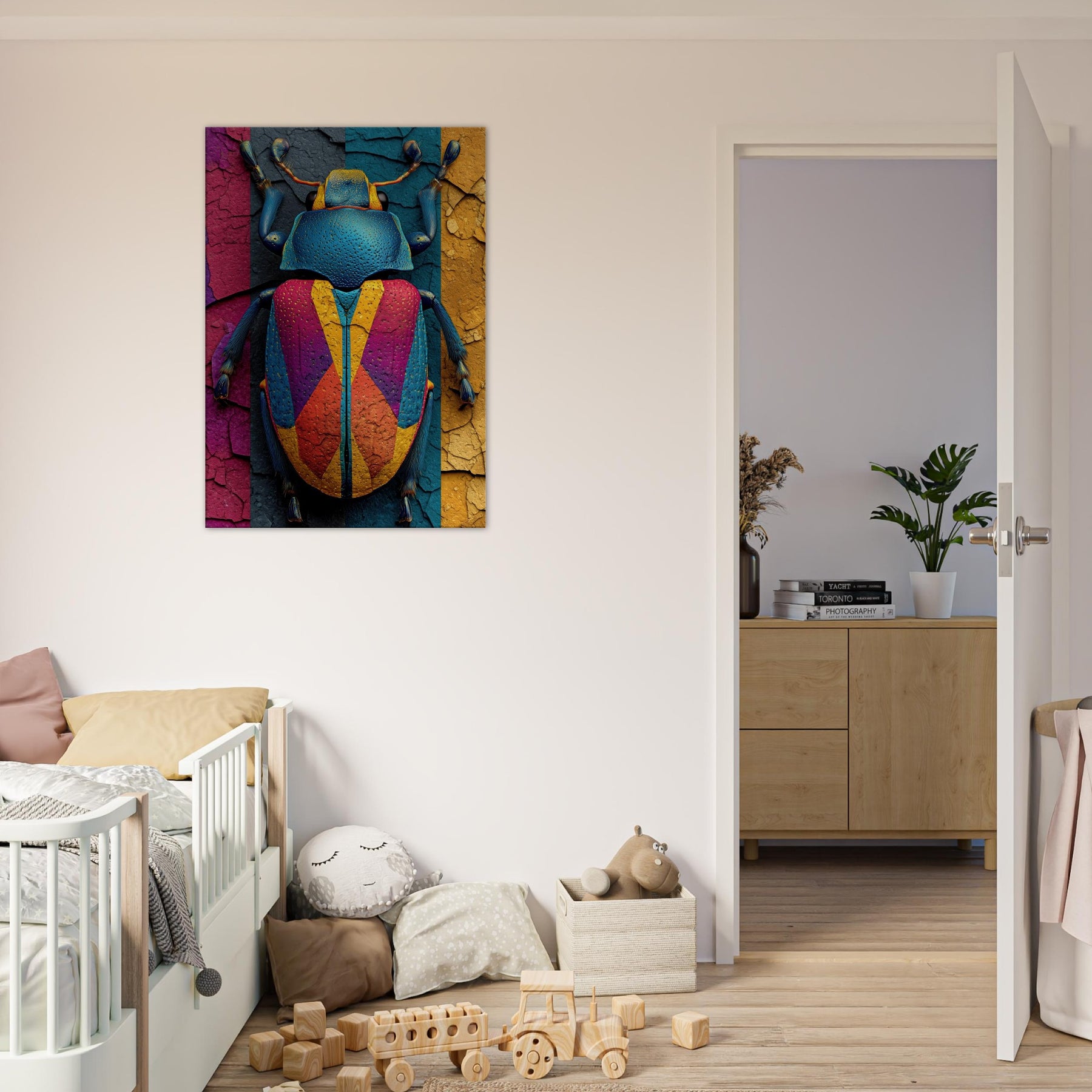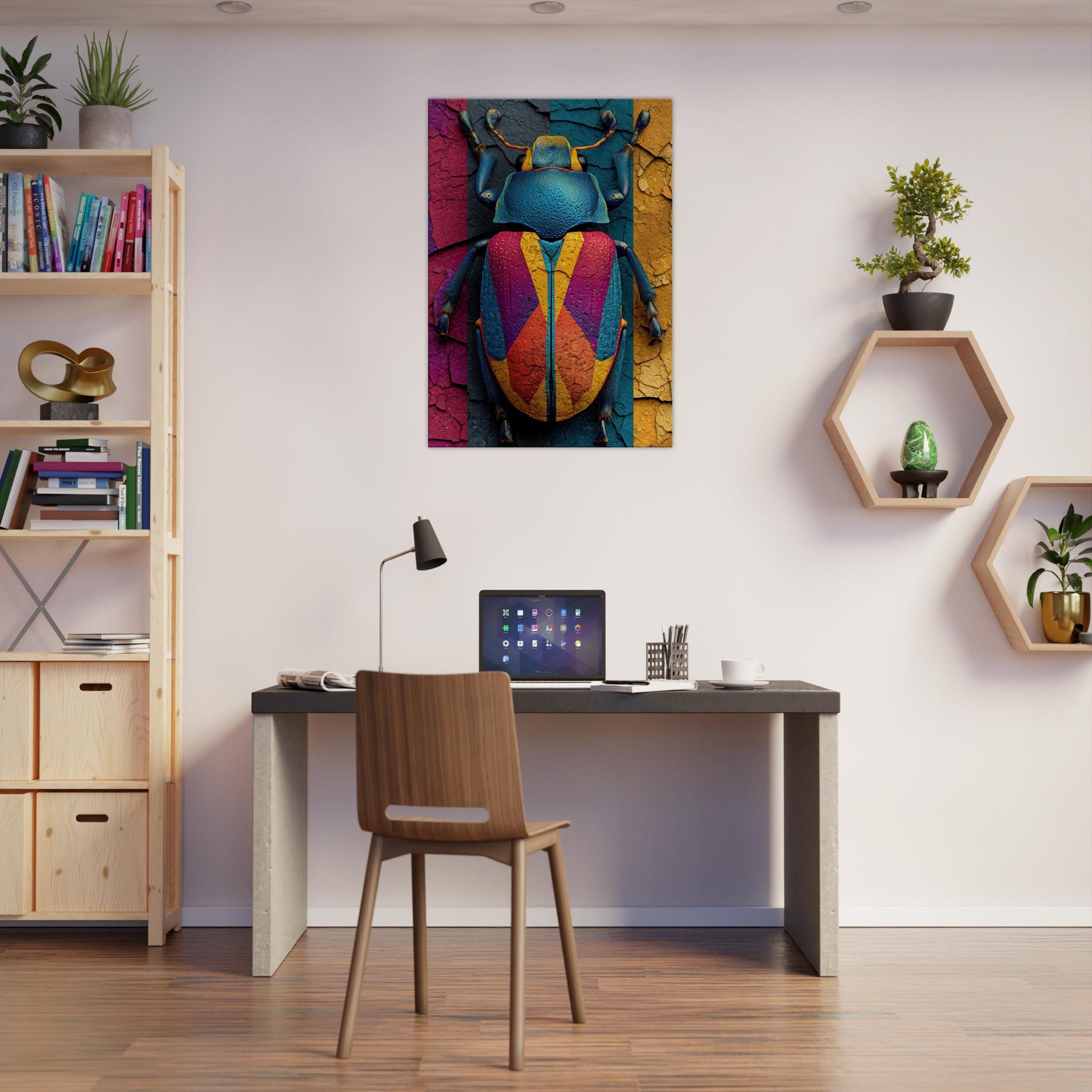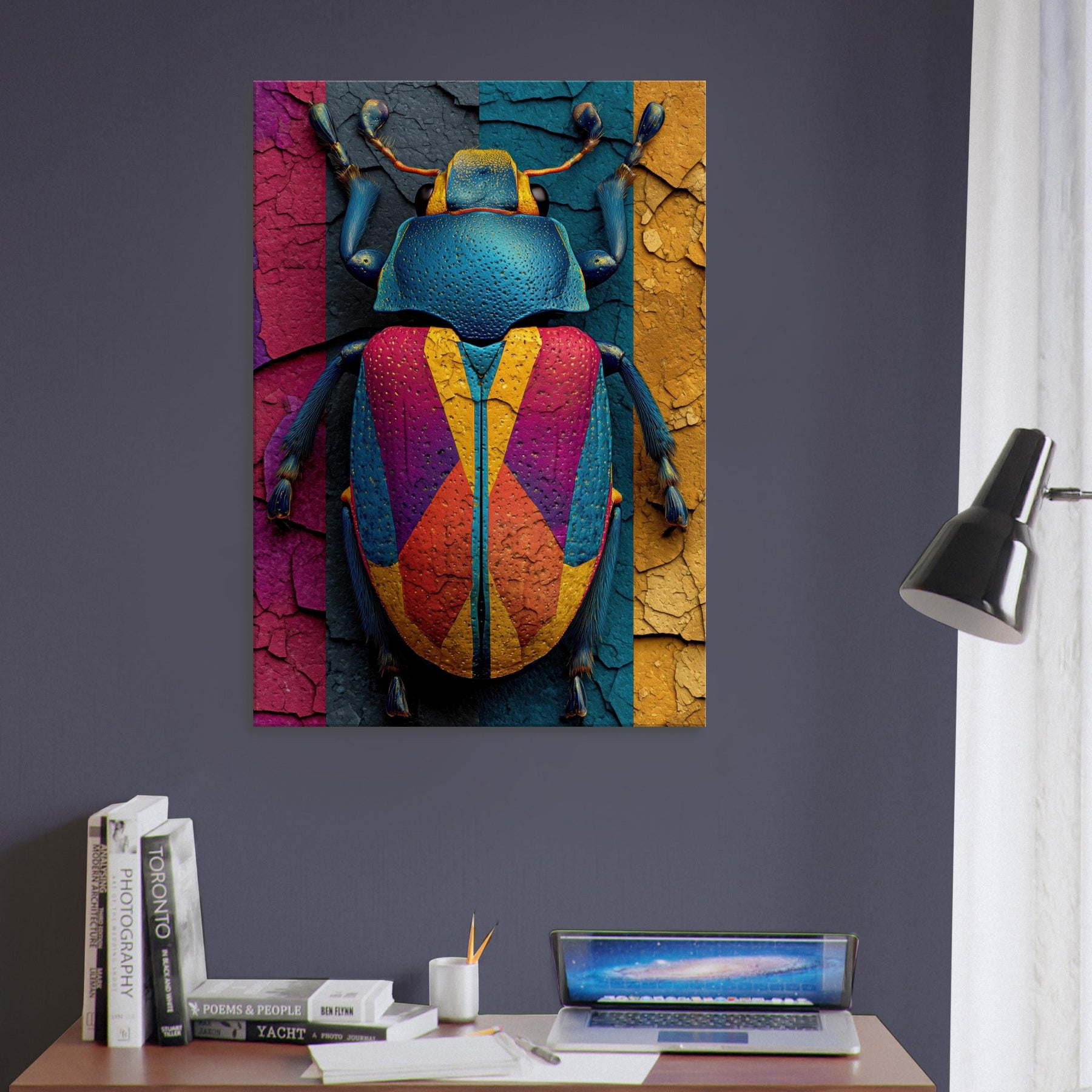 Let the scarab the symbol of renewal glow at the center of your room. This abstract piece unfurls color like a sunrise: cobalt carapace, ember edges, and panels of magenta, gold, and teal that catch the light and invite the eye to wander. The textured surface recalls ancient stone and living motion, turning a space into a sanctuary of wonder. Hang it where you savor morning calm or evening conversation; the mystical scarab elevates mood, sparks imagination, and softens every edge with luminous warmth.