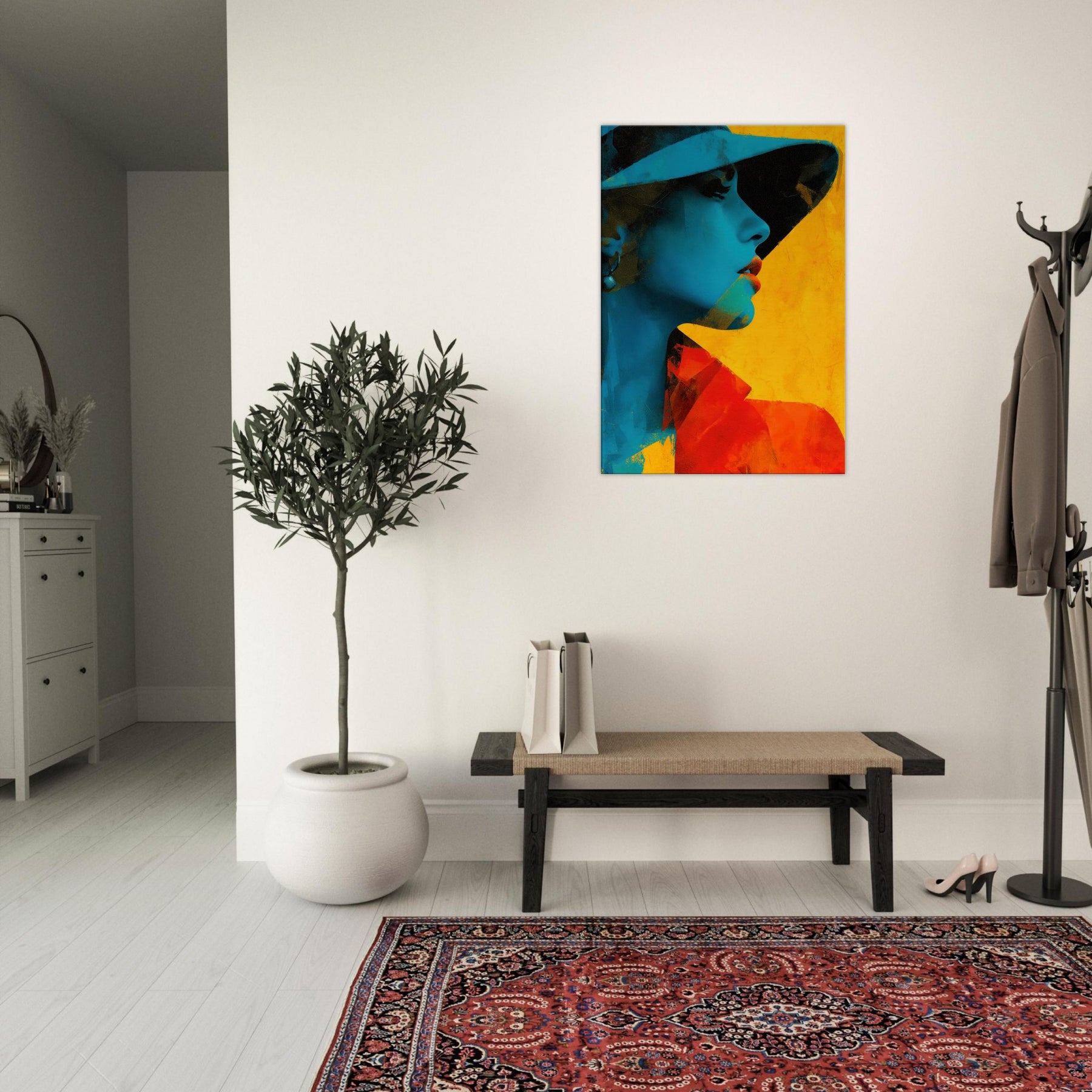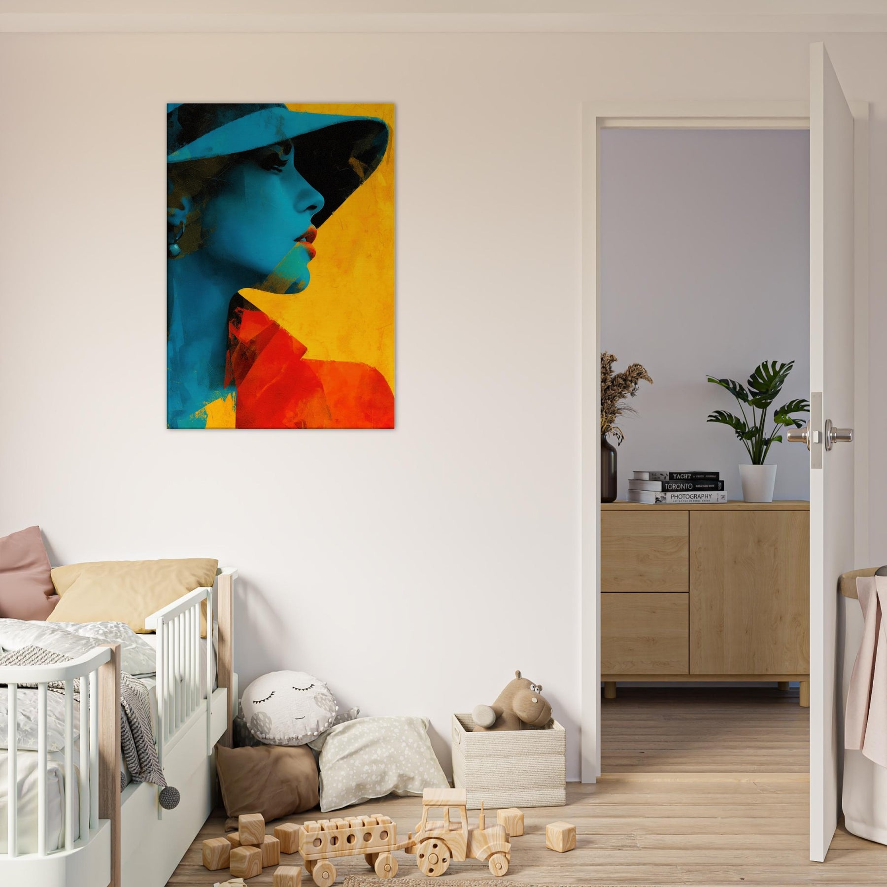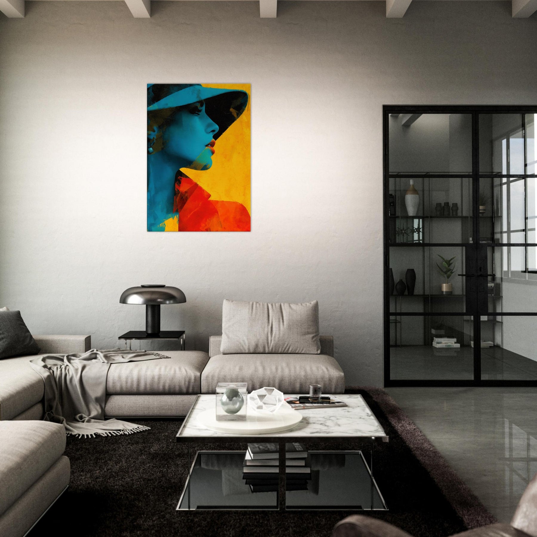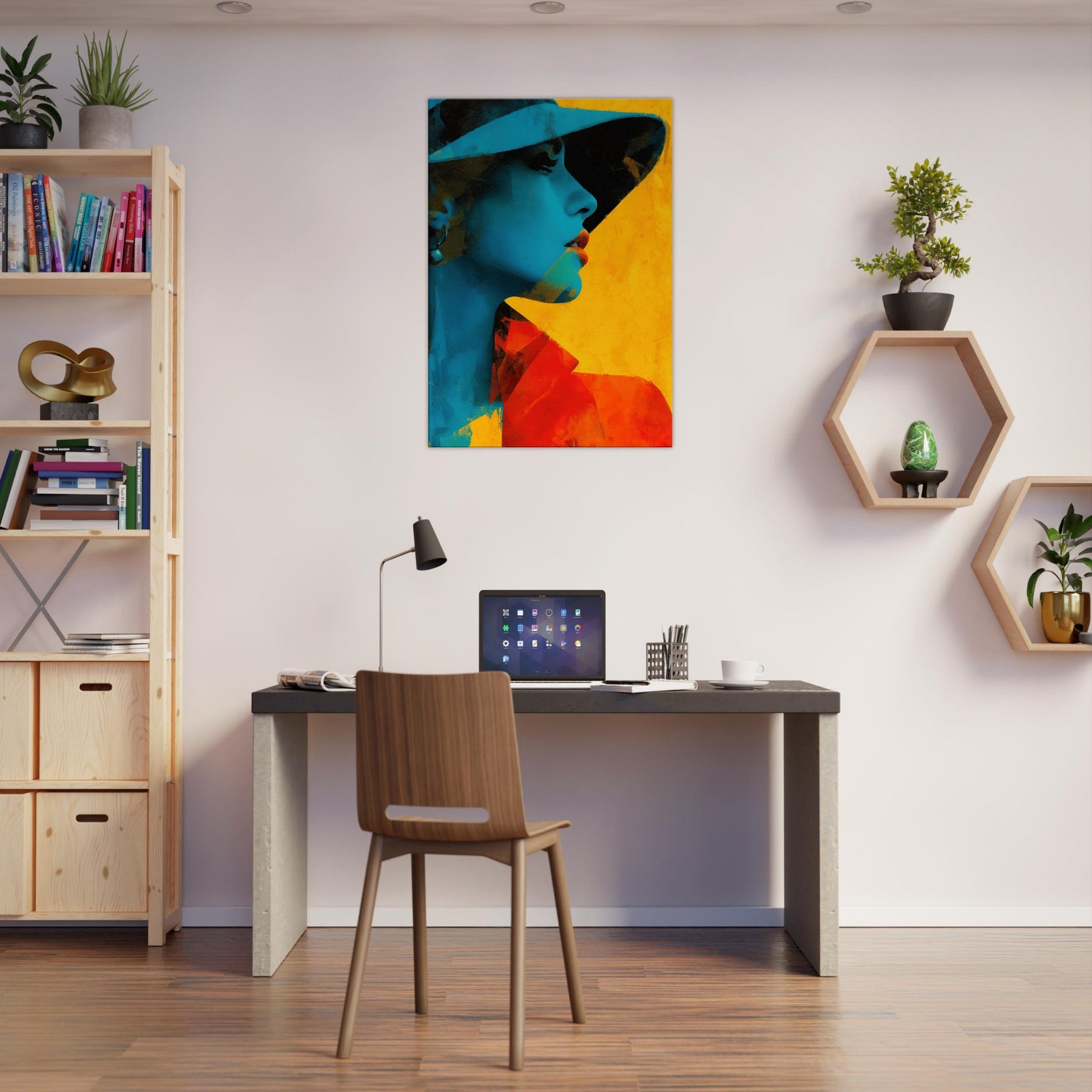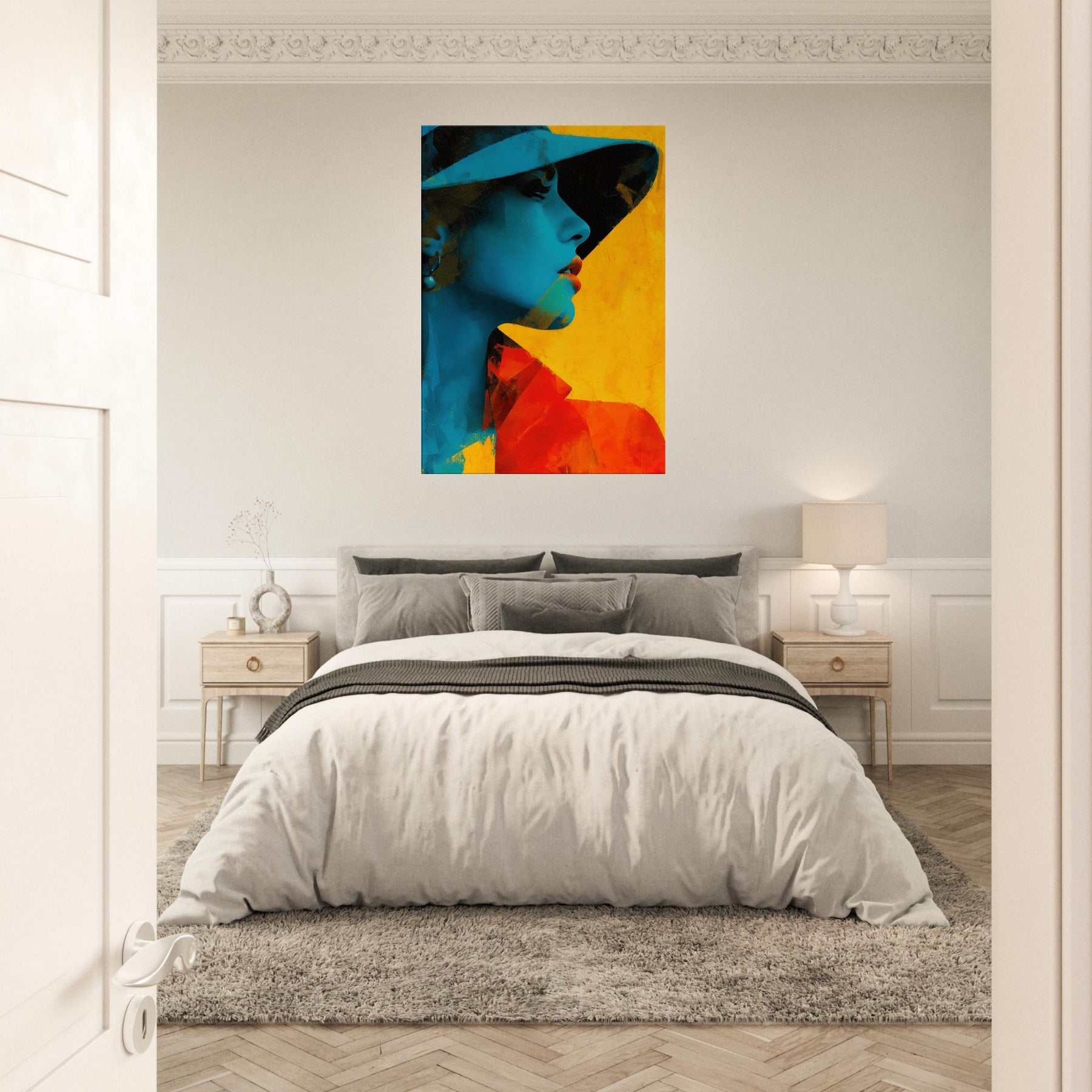 Step into a room where light bends and color sings. This piece presents a Woman with Hat in an arresting fusion of cyan shadows and warm yellow glow, captured in an abstract rhythm. The image breathes with quiet mystery, inviting you to linger at the edge of perception. It elevates a living space with sculptural presence and mood soft yet bold, intimate yet expansive. Hang it where conversations flow, and let the hat shadowed profile become a focal point of calm and curiosity.