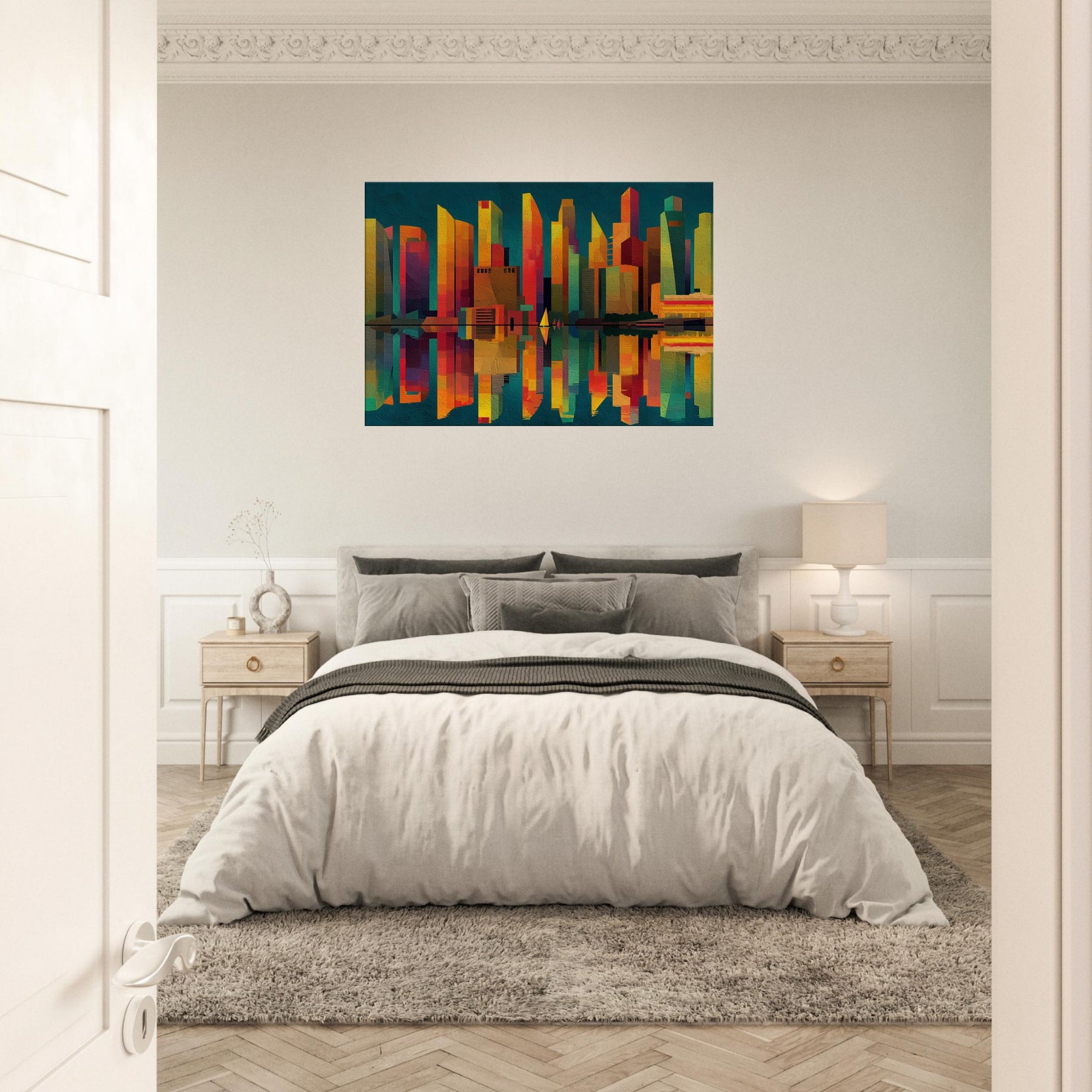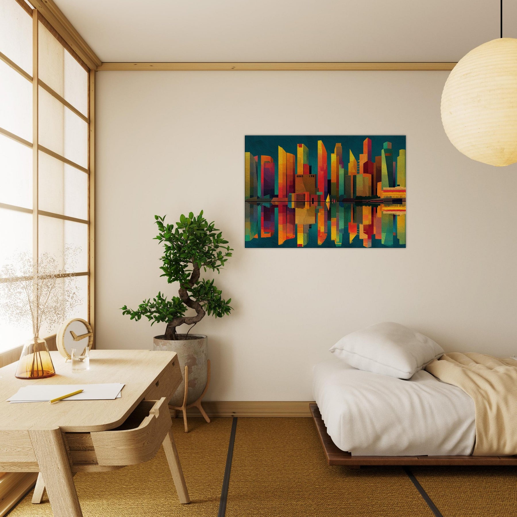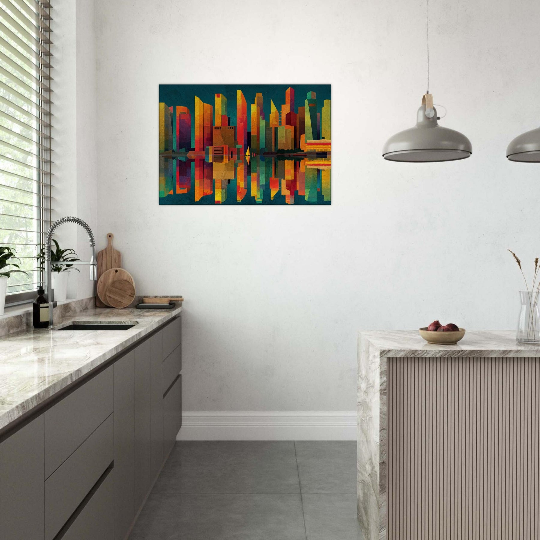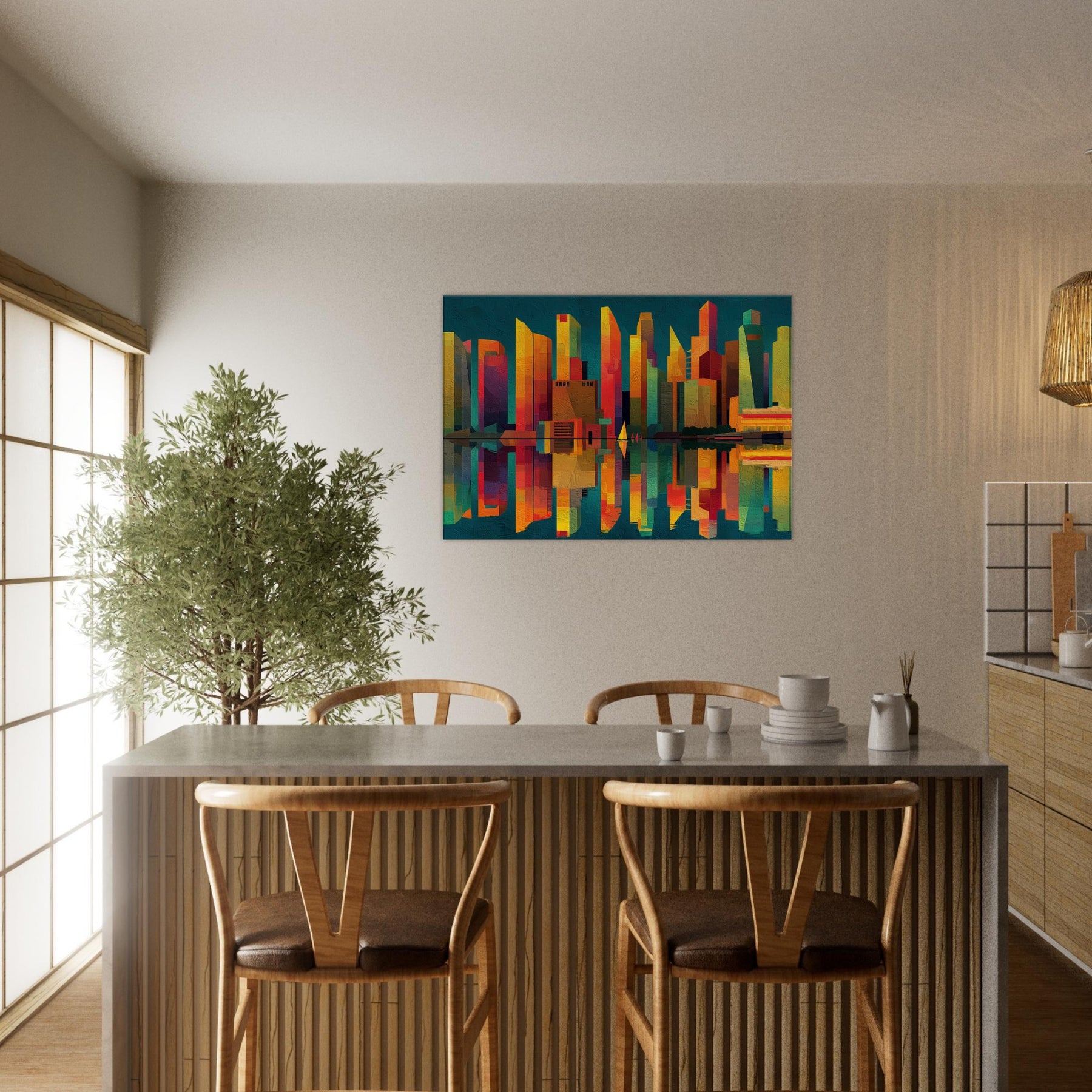 Singapore rises across your wall in a chorus of color and light. This abstract cityscape dissolves towering cranes of color into radiant blocks, a shimmering horizon mirrored in waterlike reflections. Feel the heartbeat of the shore and the hum of evening streets, as the skyline blends with room lighting to warm living spaces. The work invites quiet contemplation, adds depth and energy, and becomes a sophisticated focal point that pairs with neutrals or bold textures. A modern homage to Singapore's urban poetry.