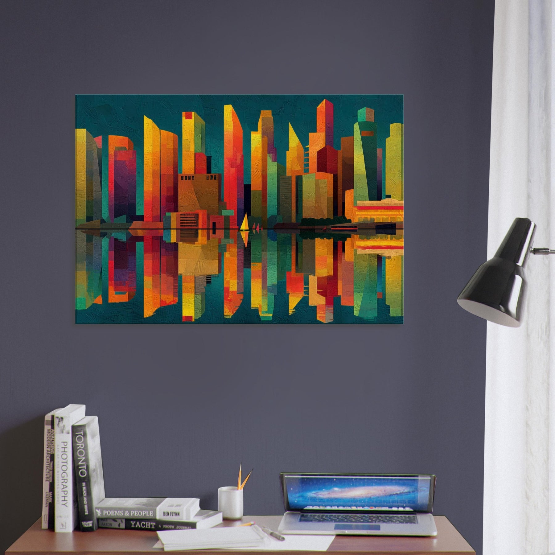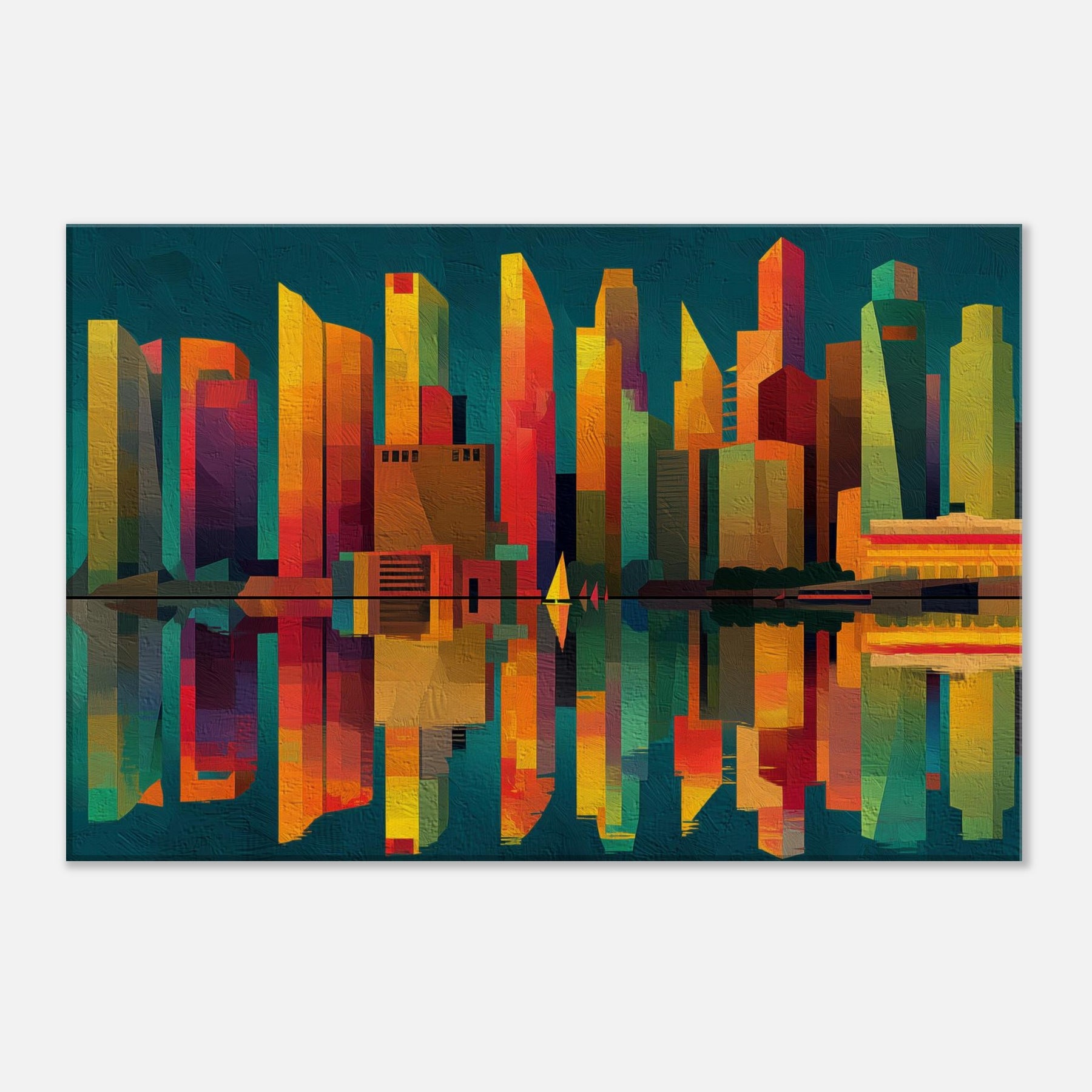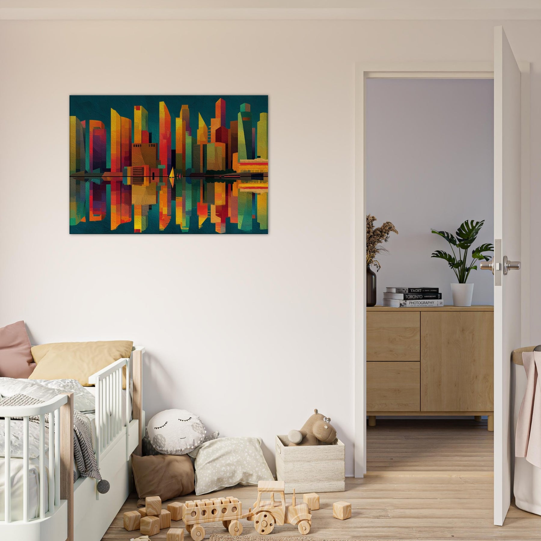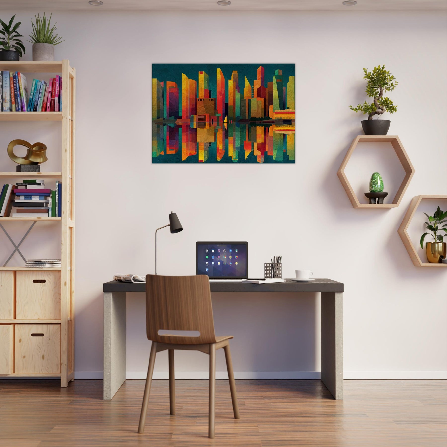 Singapore rises across your wall in a chorus of color and light. This abstract cityscape dissolves towering cranes of color into radiant blocks, a shimmering horizon mirrored in waterlike reflections. Feel the heartbeat of the shore and the hum of evening streets, as the skyline blends with room lighting to warm living spaces. The work invites quiet contemplation, adds depth and energy, and becomes a sophisticated focal point that pairs with neutrals or bold textures. A modern homage to Singapore's urban poetry.