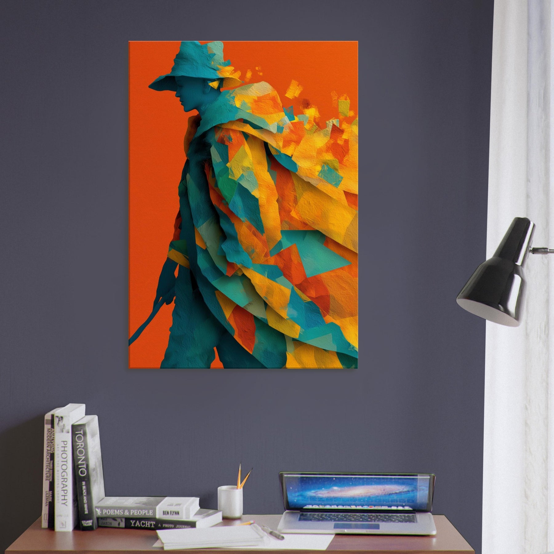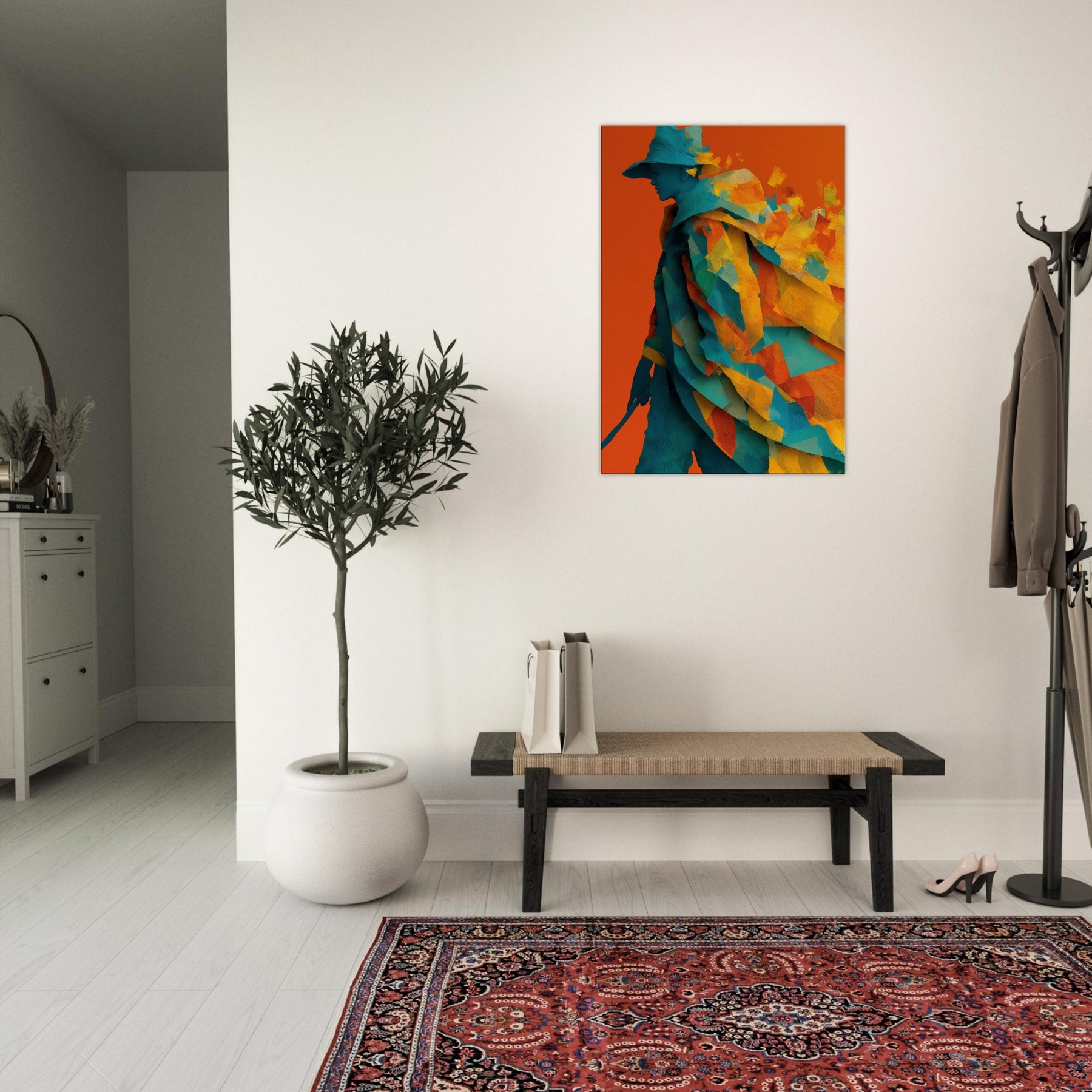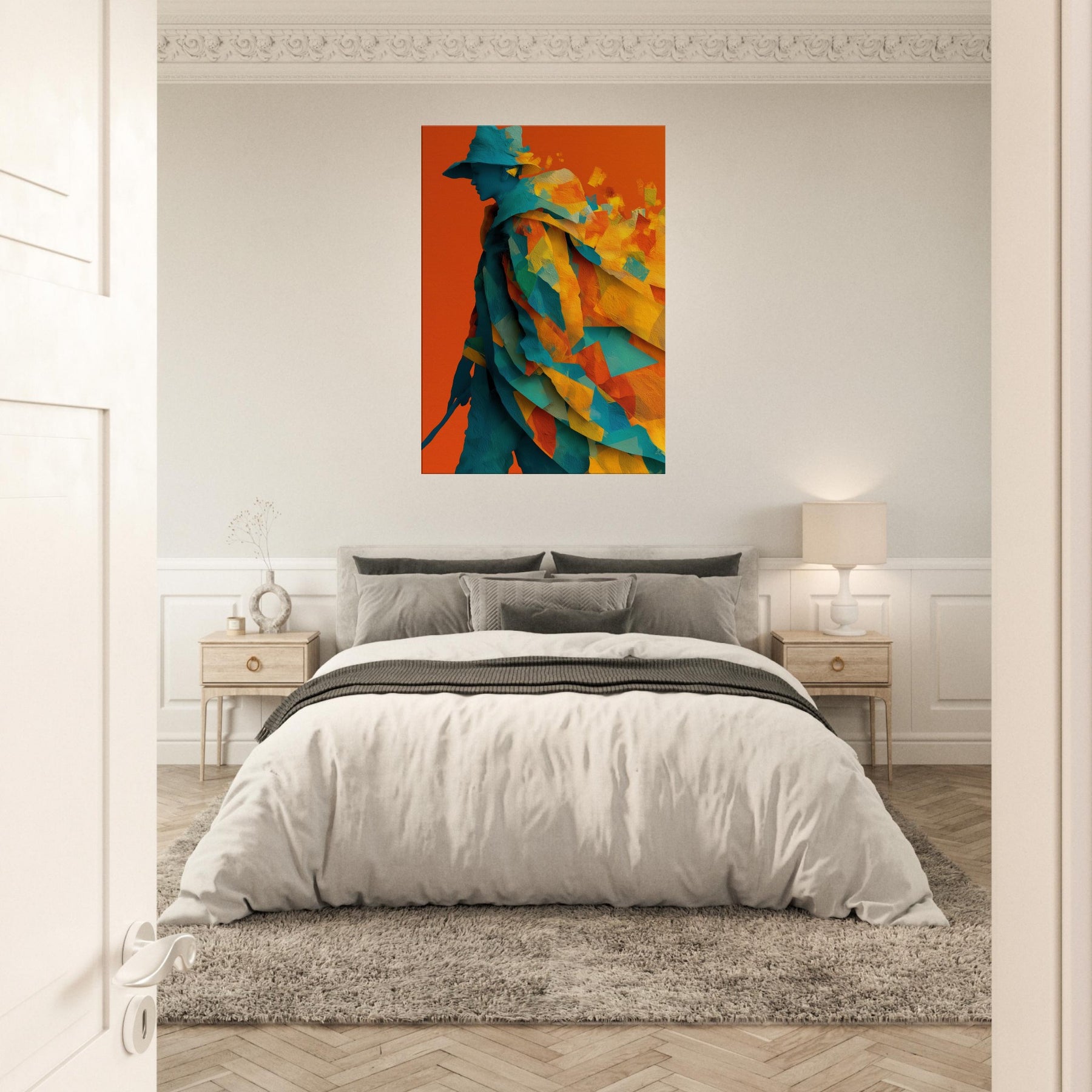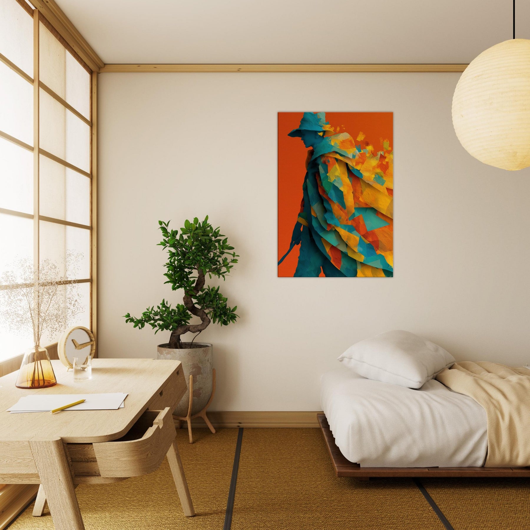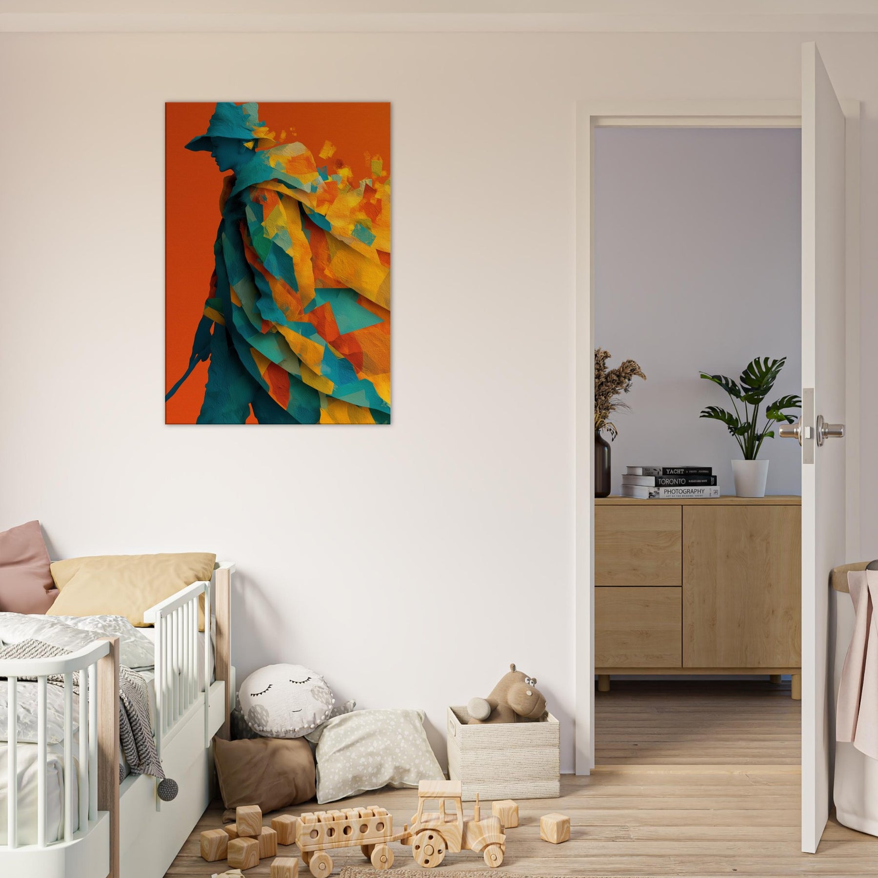 An ambient ode to mystery, this abstract study centers a Wizard whose presence dissolves into a cascade of color and light. Layered fragments swirl like parchment caught in a passing wind, rendering a living myth that feels both ancient and contemporary. The bold orange backdrop burns with energy, while turquoise and sunlit yellows whisper movement and possibility. It invites a room to breathe: a sanctuary of imagination, curiosity, and quiet magic. Perfect for a lounge or gallery wall craving atmosphere and narrative.