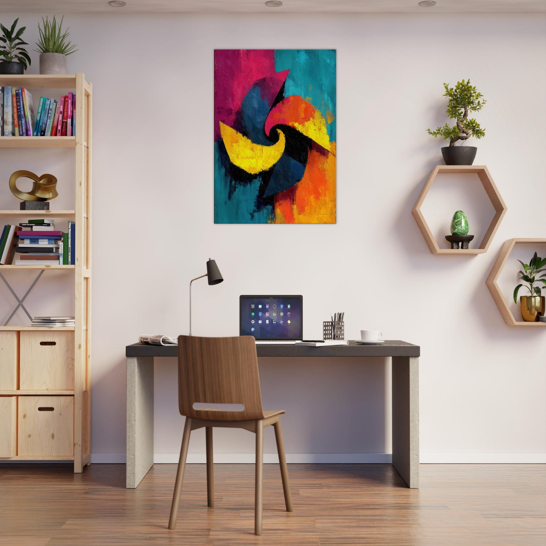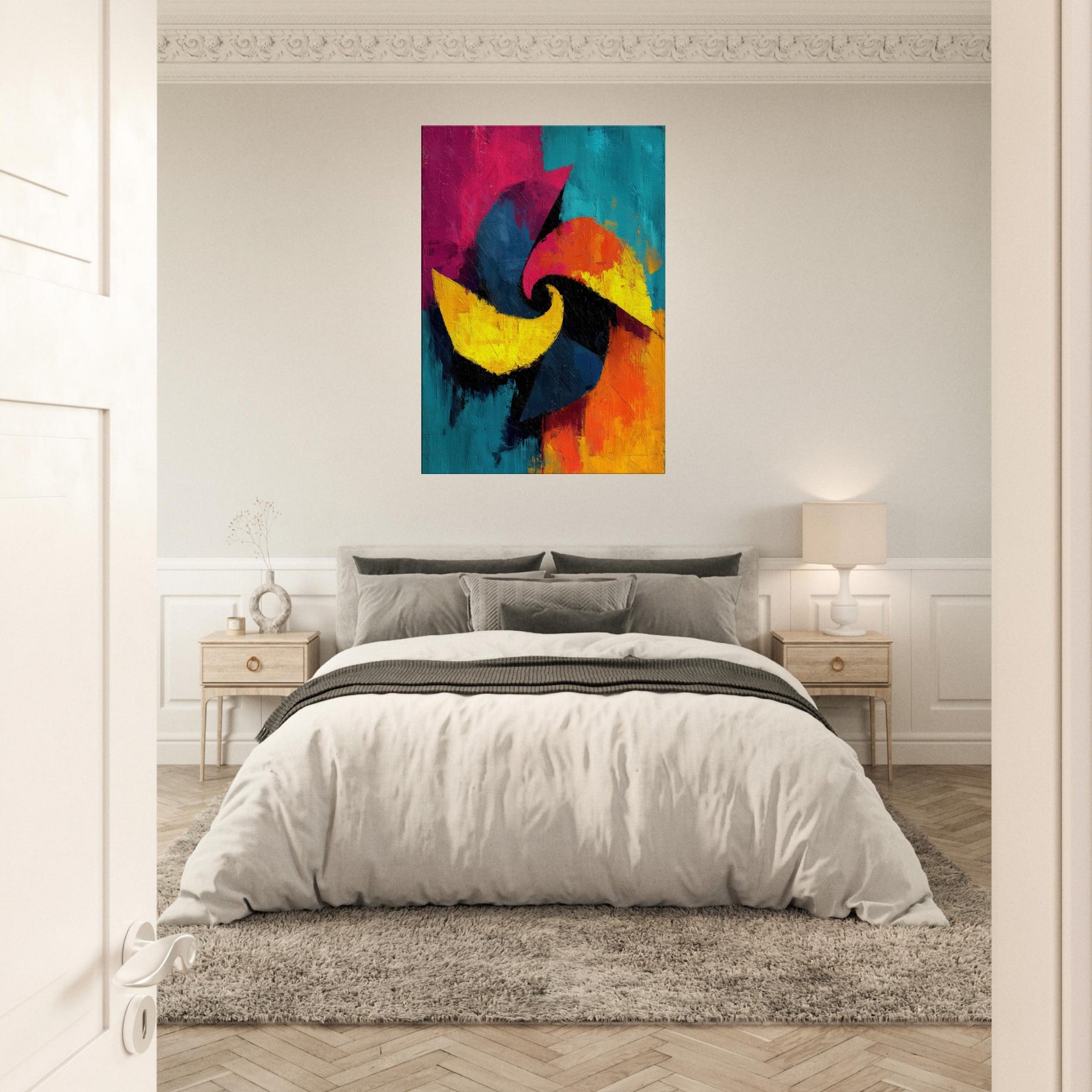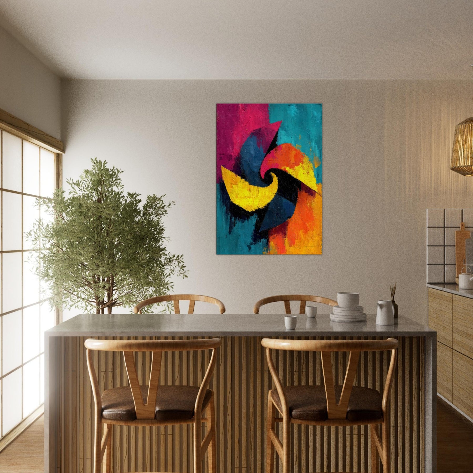 The Triskelion takes center stage in this electric abstract composition, a study in rhythm and motion. Swirls of magenta, turquoise, and sunlit yellow collide and converge into a luminous spiral, inviting soft reflections and meditation. The piece radiates energy without shouting, turning a living room into a sanctuary of balance and curiosity. Its textured layers catch light, revealing new facets from every angle, perfect for a modern space seeking mystical depth and a subtle, grounding heartbeat.