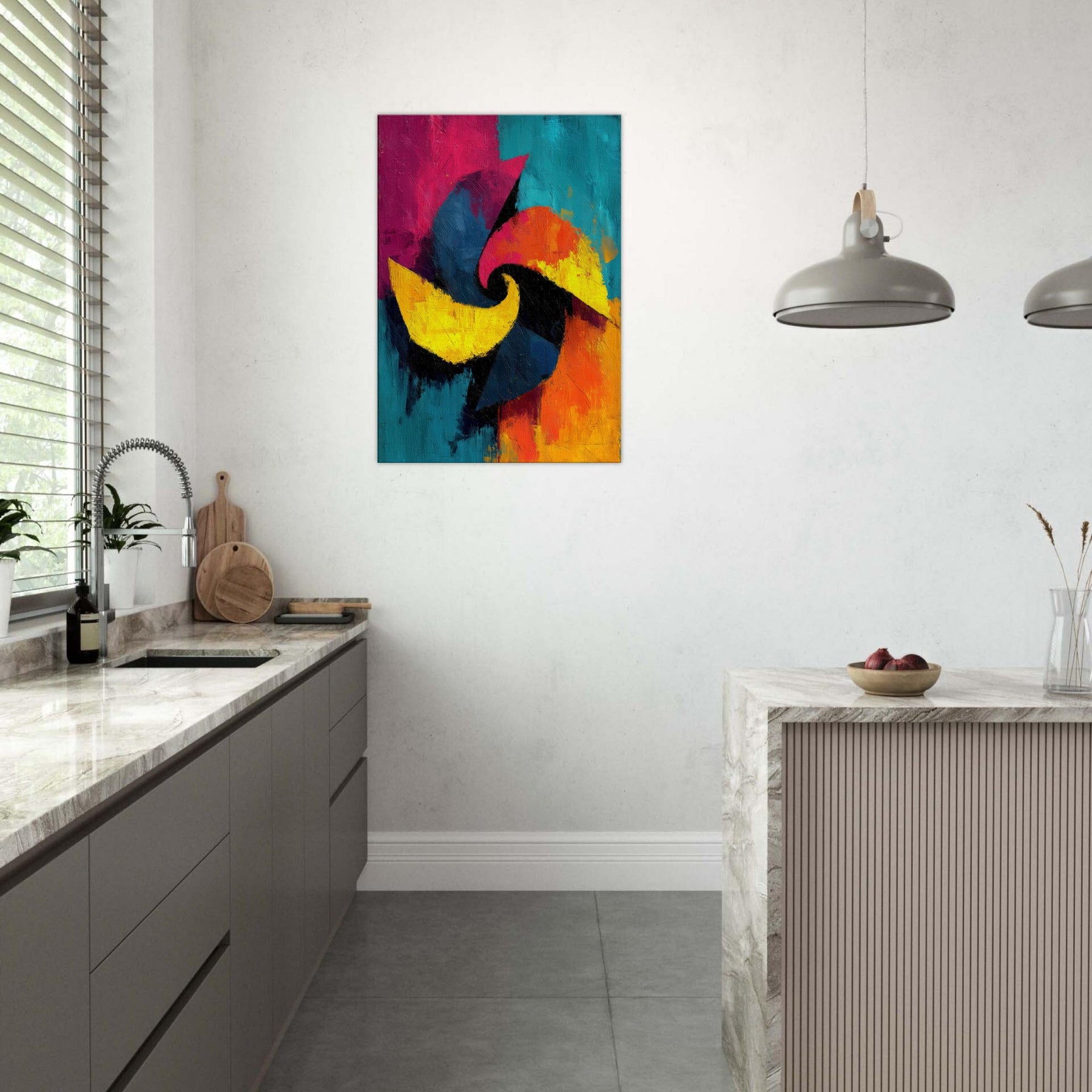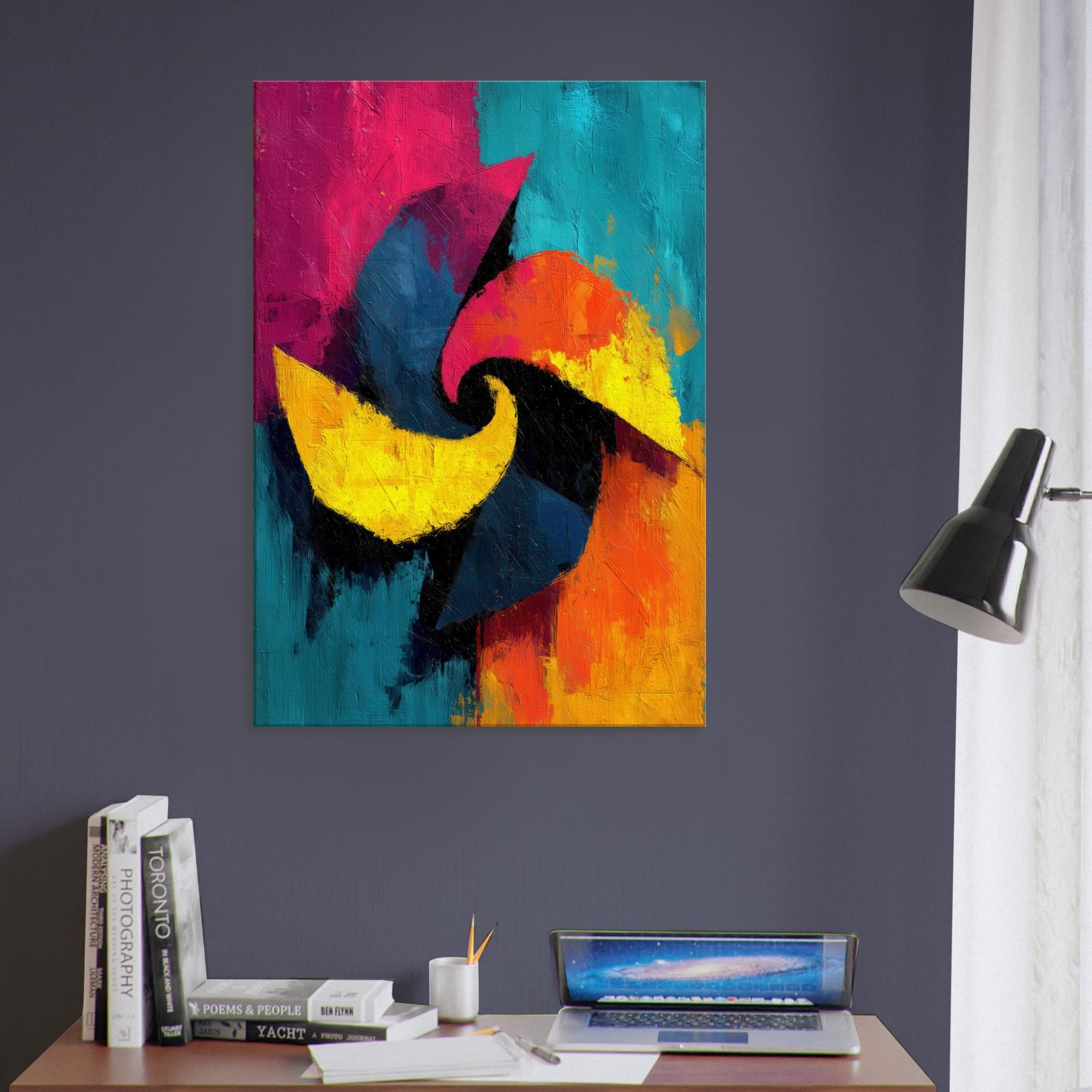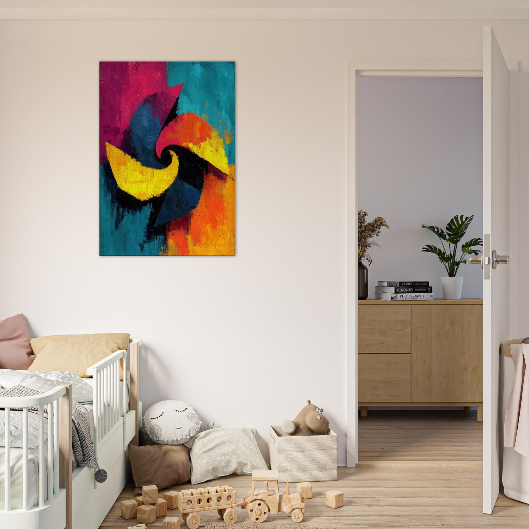 The Triskelion takes center stage in this electric abstract composition, a study in rhythm and motion. Swirls of magenta, turquoise, and sunlit yellow collide and converge into a luminous spiral, inviting soft reflections and meditation. The piece radiates energy without shouting, turning a living room into a sanctuary of balance and curiosity. Its textured layers catch light, revealing new facets from every angle, perfect for a modern space seeking mystical depth and a subtle, grounding heartbeat.