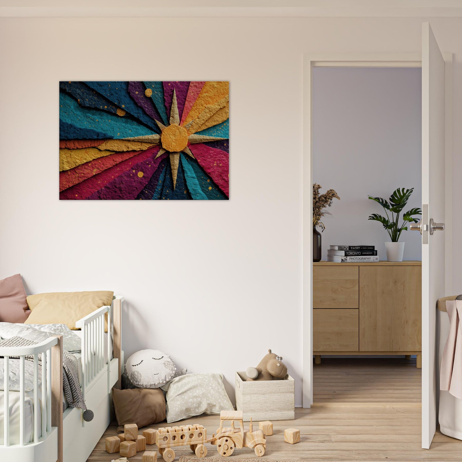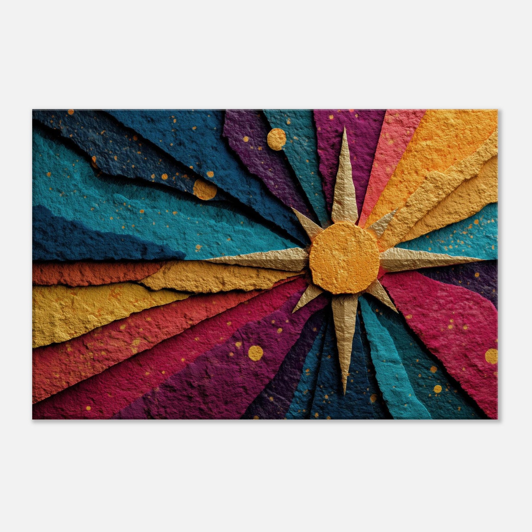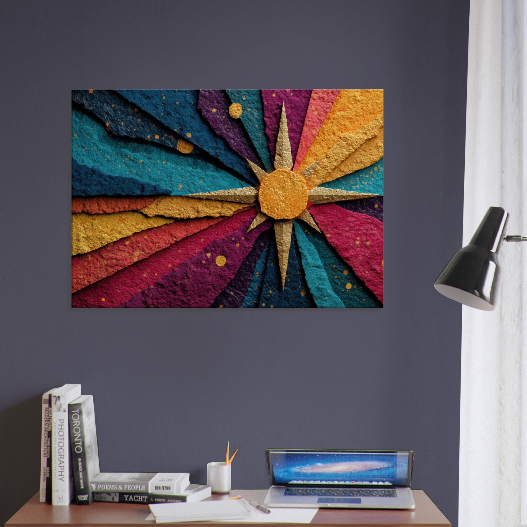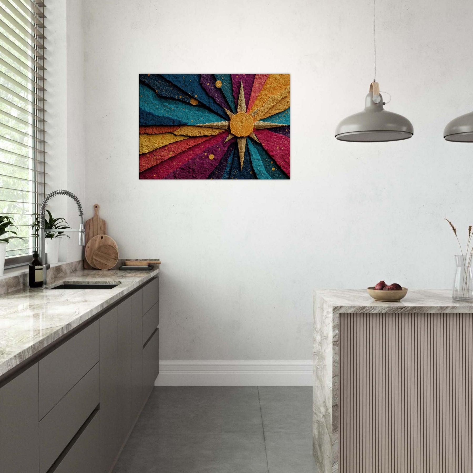 In this abstract meditation, Constellations drift across a velvet horizon of color, radiant fragments weaving a nocturnal tapestry. The artwork hums with galaxy bright hues lapis, amber, magenta and a sun like center that anchors the motion. It invites quiet awe, turning a living room into a contemplative observatory. Light shifts with every angle, revealing depth and memory. Displayed in a softly lit corner, it nourishes conversation, mood, and a mystical sense of belonging to the universe.