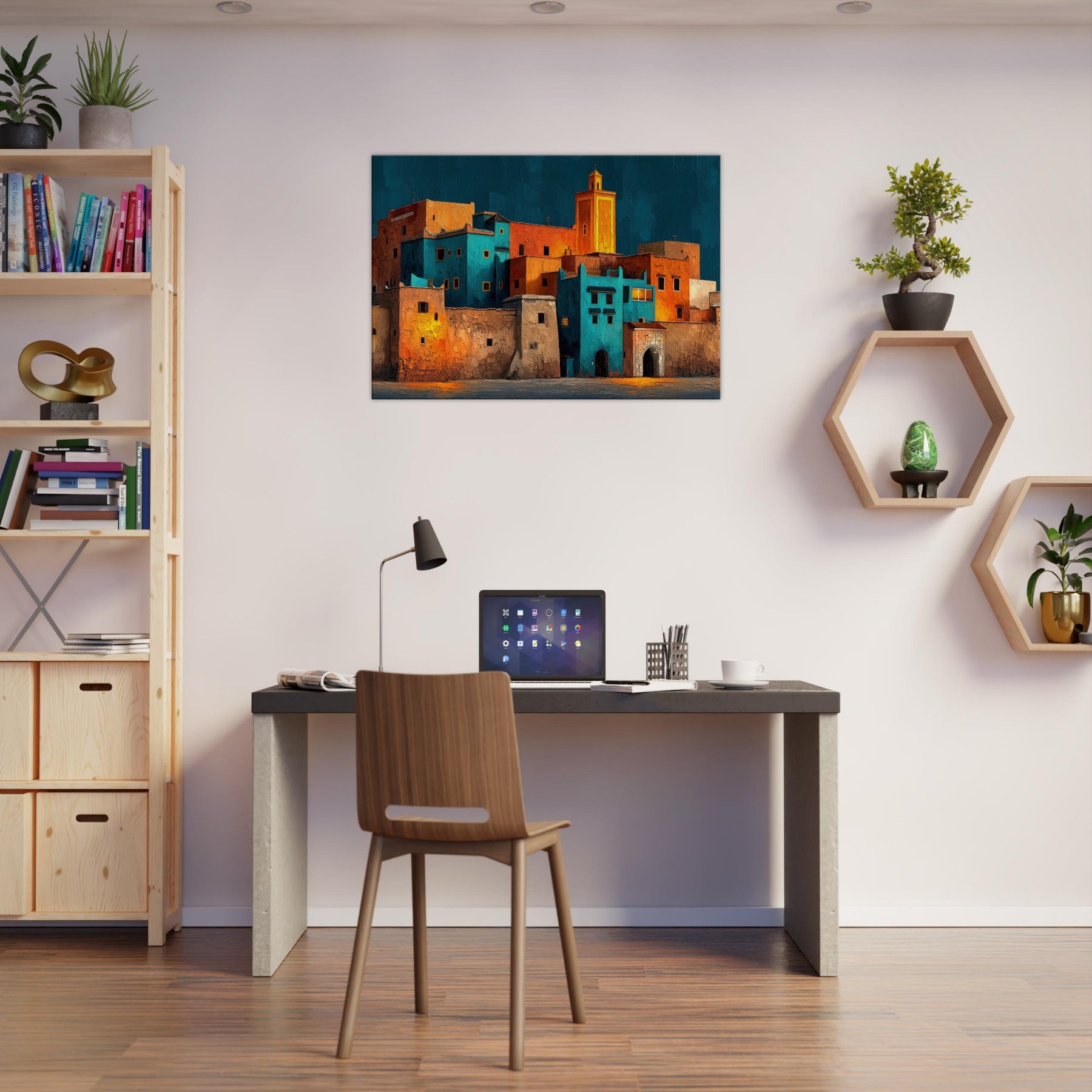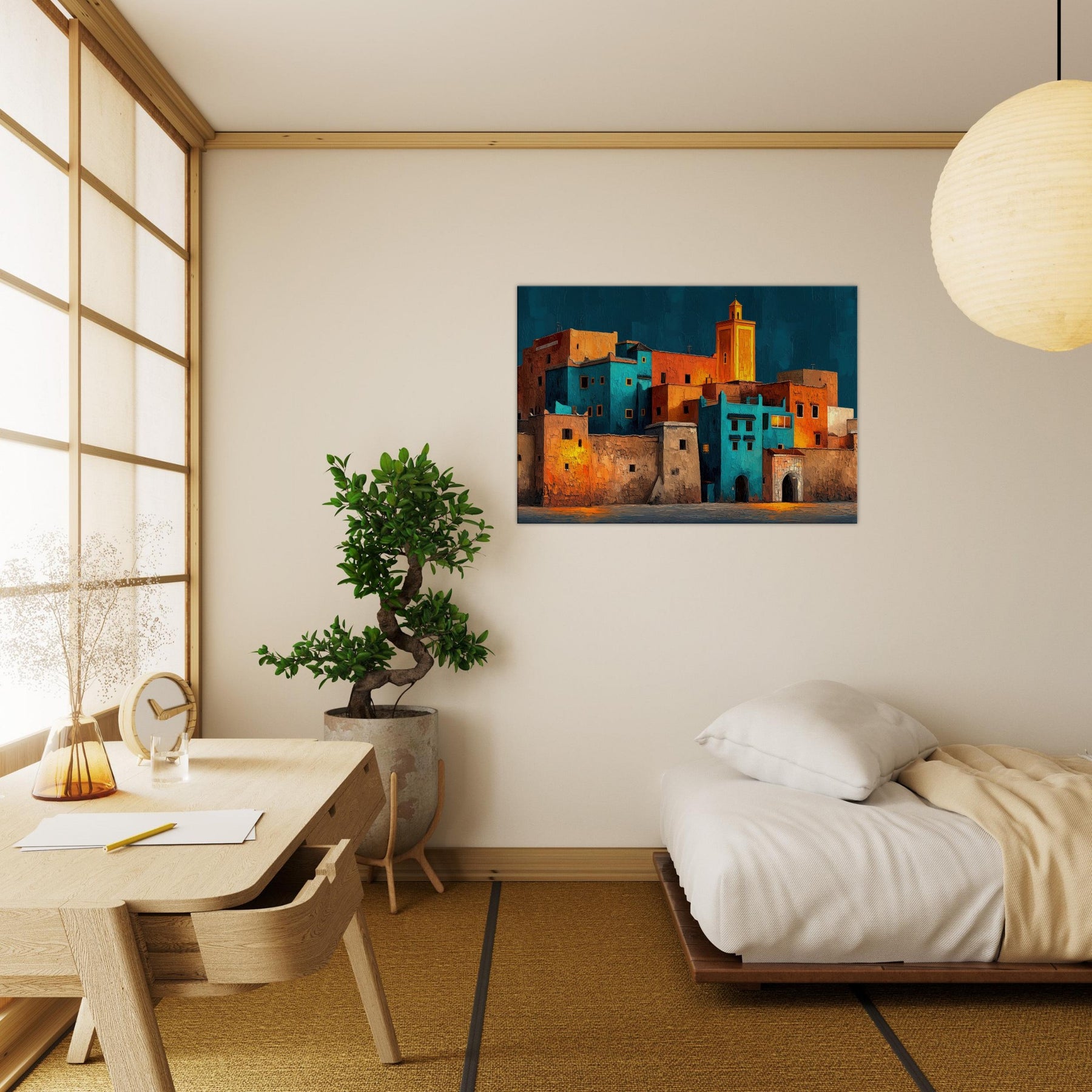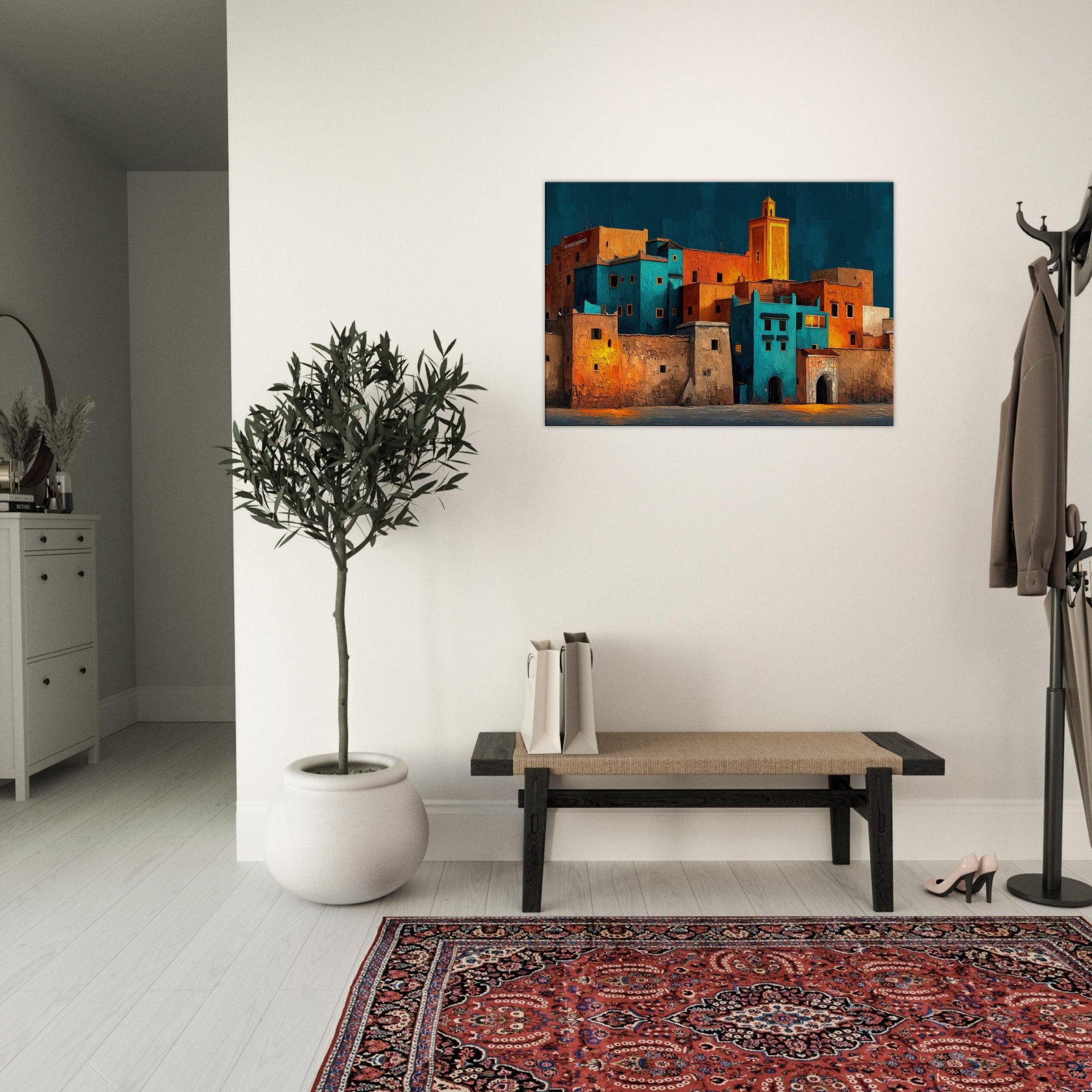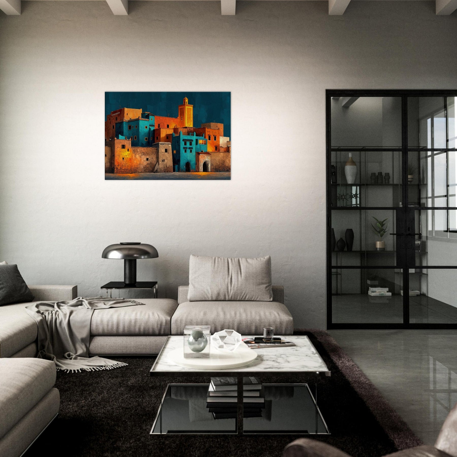 Immerse your room in the glow of Marrakech, where sun washed walls and tangled alleyways become a living abstract skyline. This piece distills the city’s warmth into bold blocks of ochre, turquoise, and ember, inviting a slow breath and a sense of wander. The layered textures evoke sandstone courtyards and twilight shadows, turning any space into a cinematic courtyard. Perfect above a sofa or dining nook, it adds atmosphere, energy, and a gentle rhythm that makes rooms feel expansive and alive.