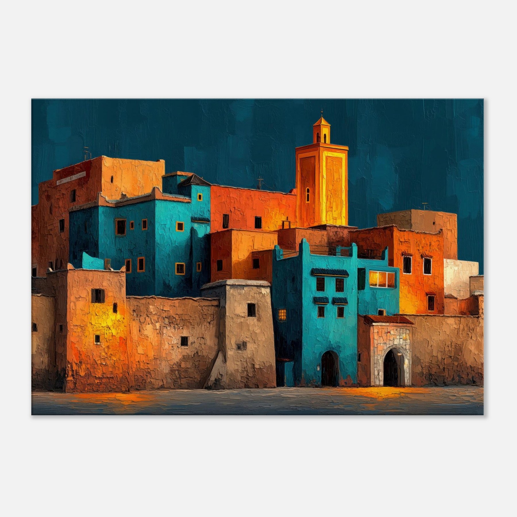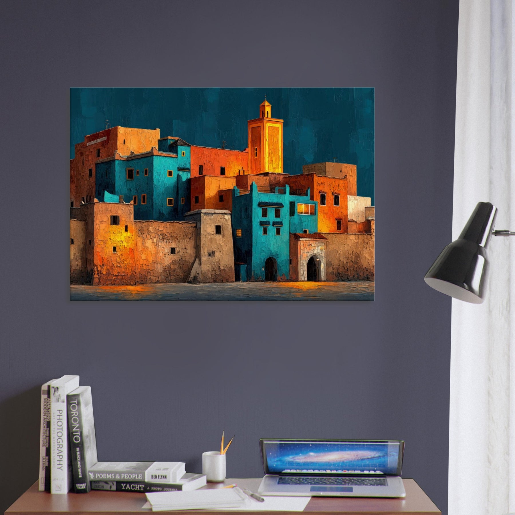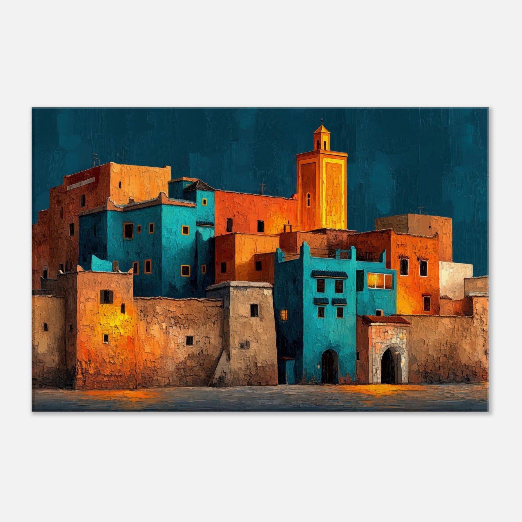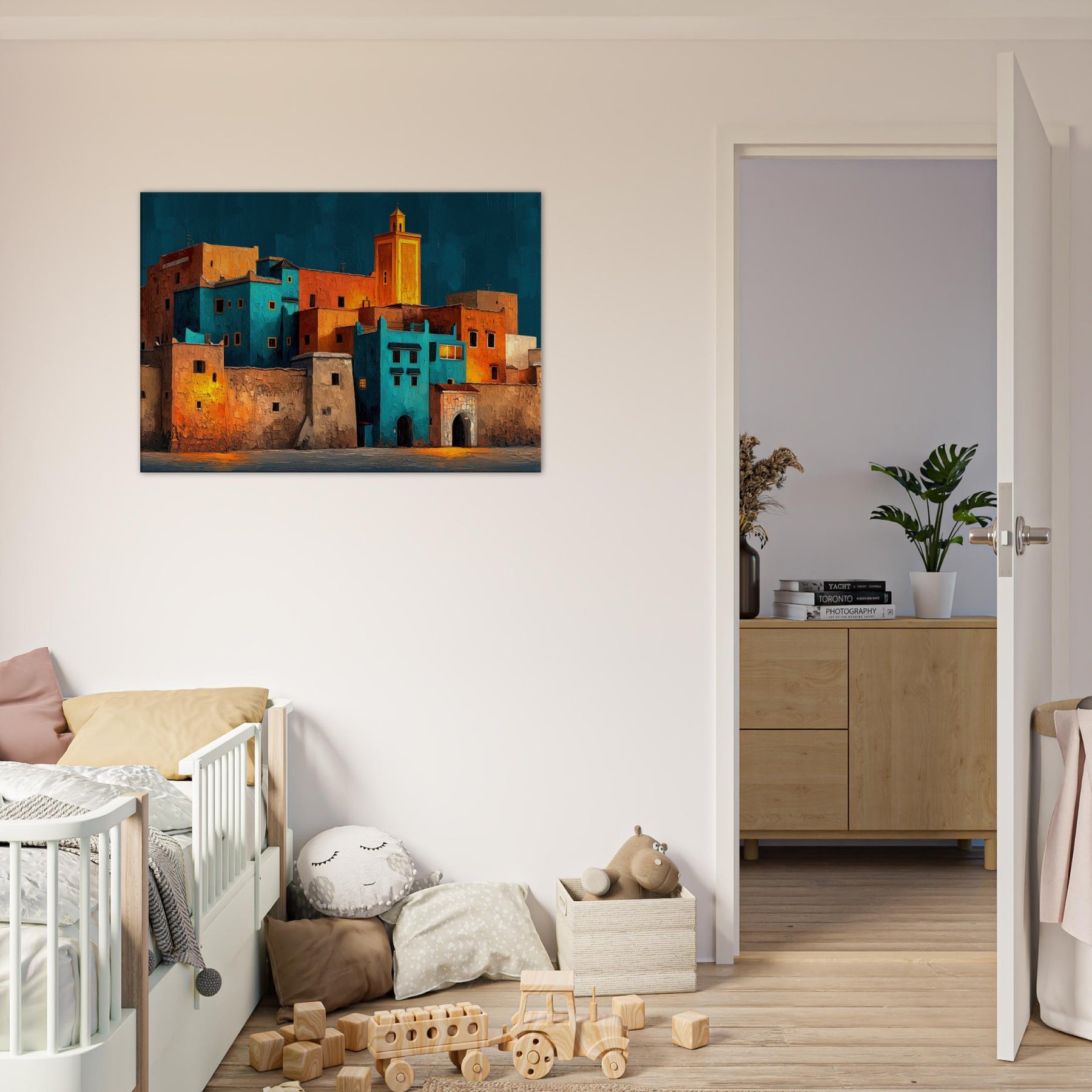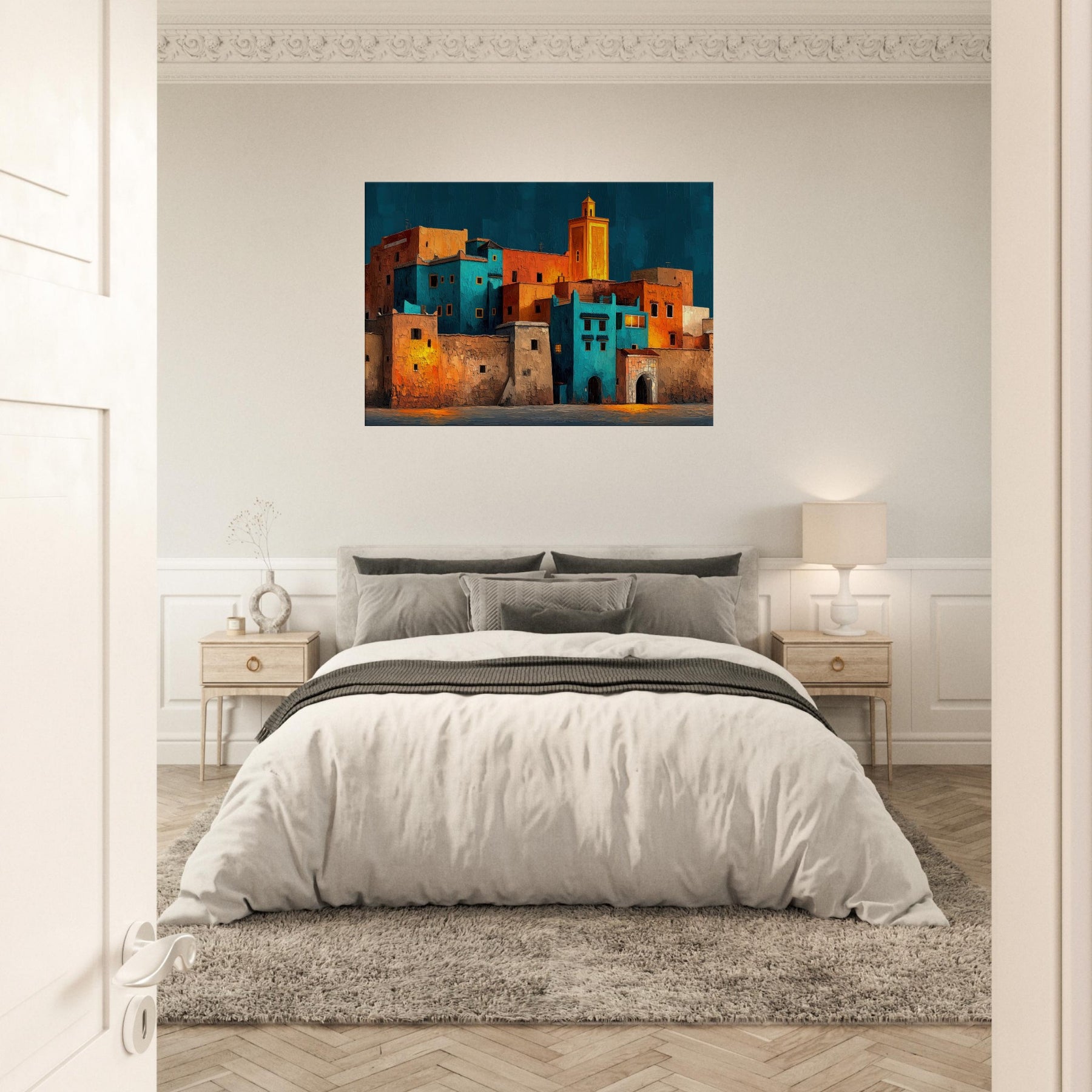 Immerse your room in the glow of Marrakech, where sun washed walls and tangled alleyways become a living abstract skyline. This piece distills the city’s warmth into bold blocks of ochre, turquoise, and ember, inviting a slow breath and a sense of wander. The layered textures evoke sandstone courtyards and twilight shadows, turning any space into a cinematic courtyard. Perfect above a sofa or dining nook, it adds atmosphere, energy, and a gentle rhythm that makes rooms feel expansive and alive.