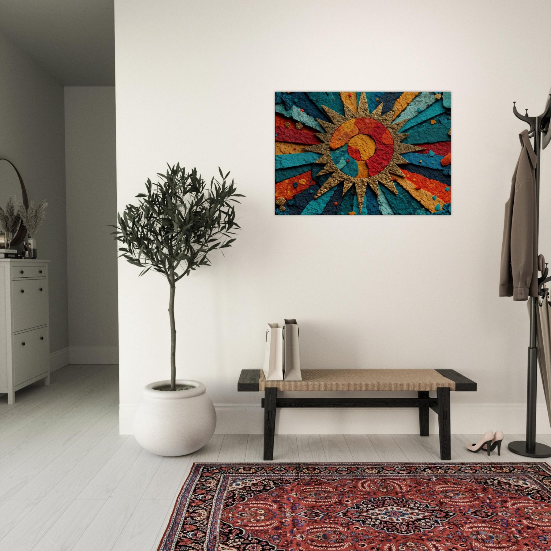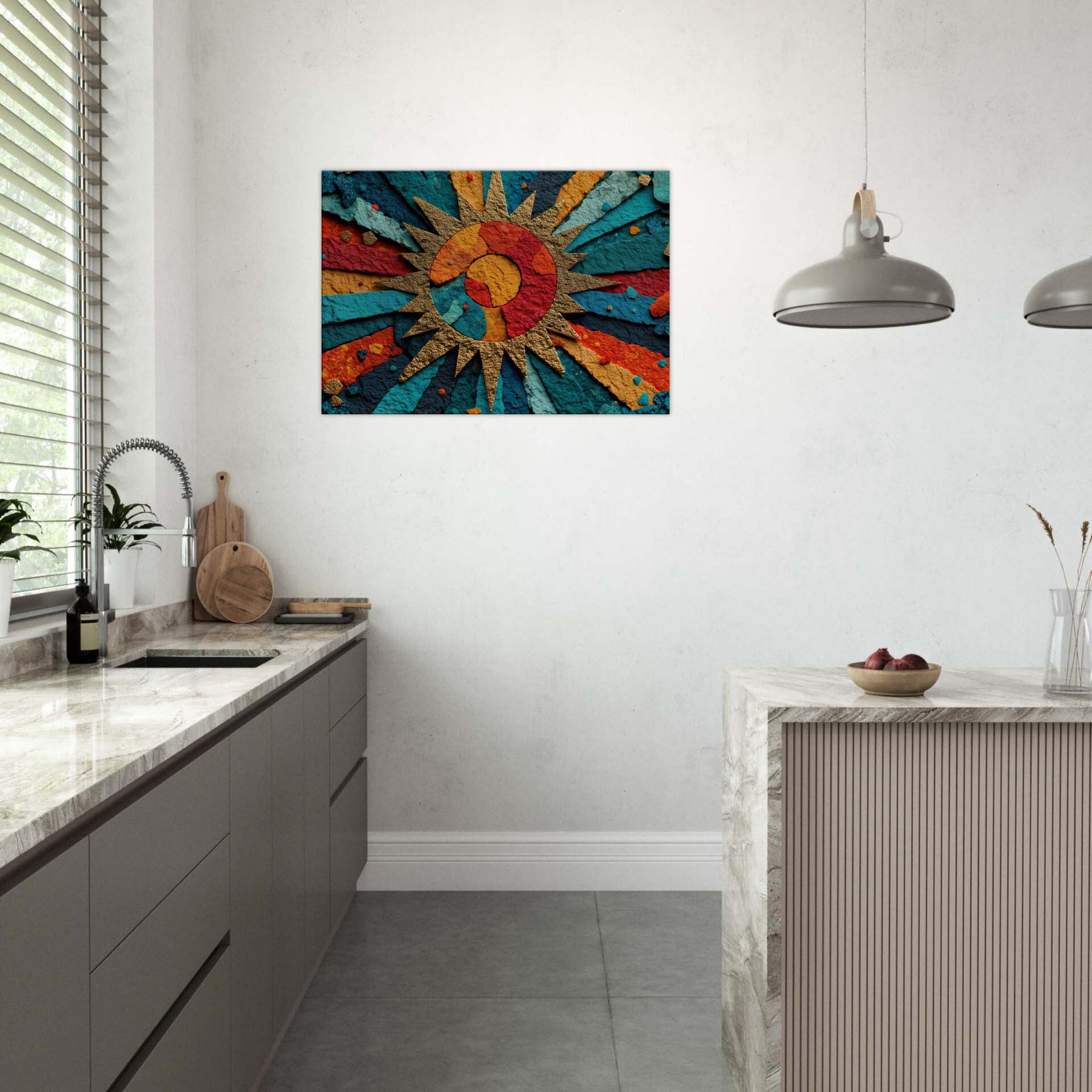 Within its radiant circle, Tarot Cards unfurls a world of meaning and memory, inviting you to pause, breathe, and dream. The abstract mosaic of saturated color and textured gold accents glows softly, turning any wall into a quiet altar. This piece cultivates a contemplative mood perfect beside a reading chair or in a serene hallway where the mystical energy of the Tarot Cards sparks curiosity, intimacy, and a sensorial cadence of light and shade.
