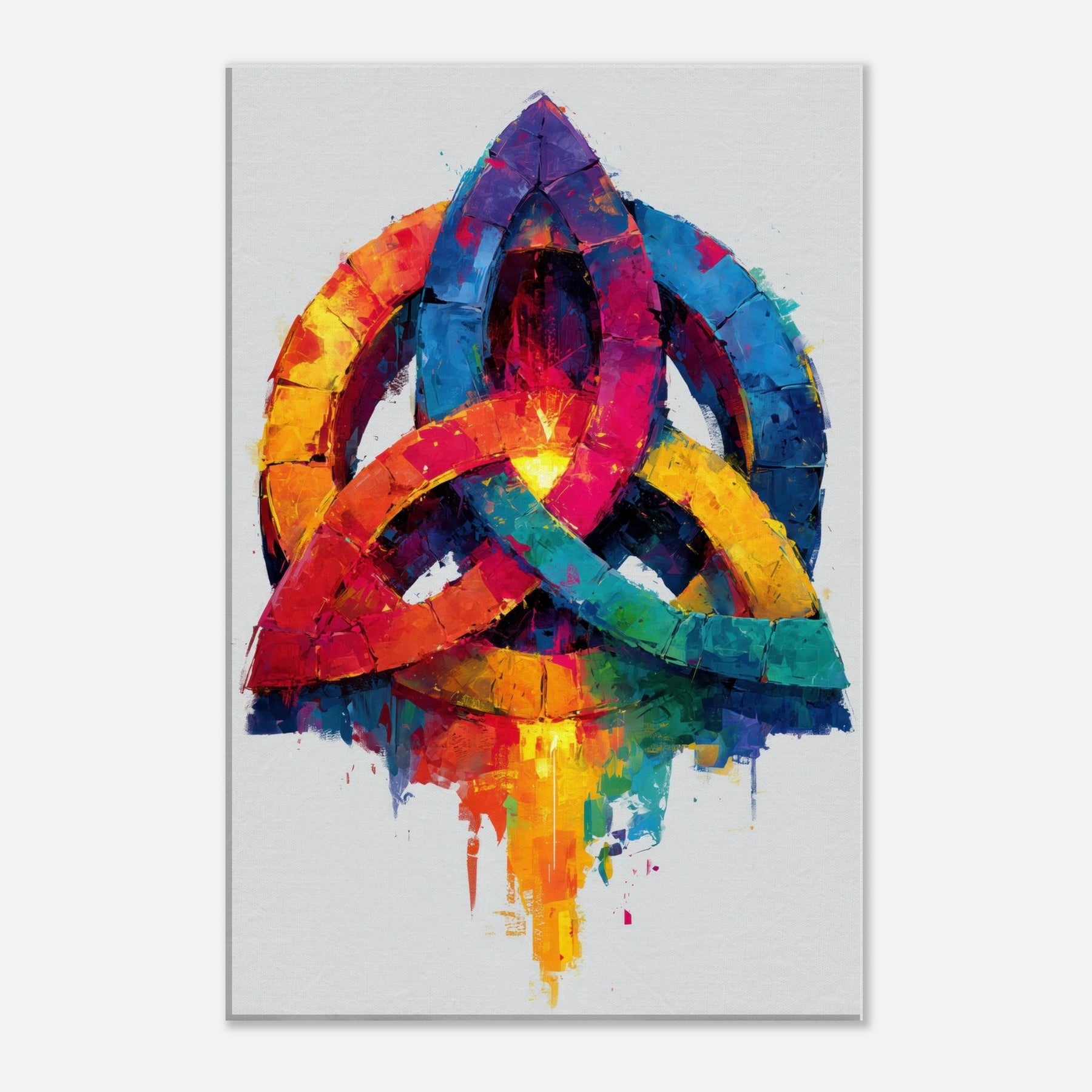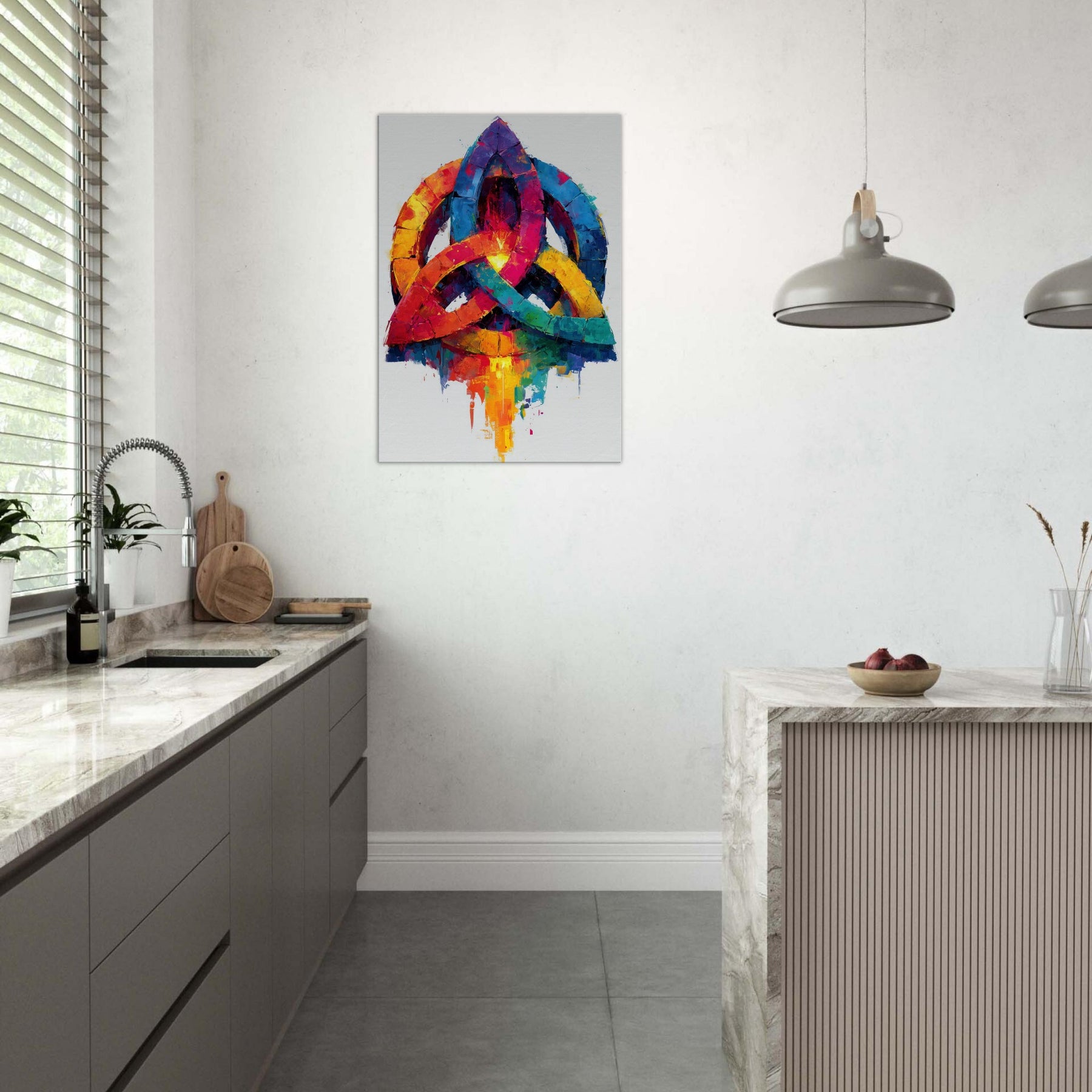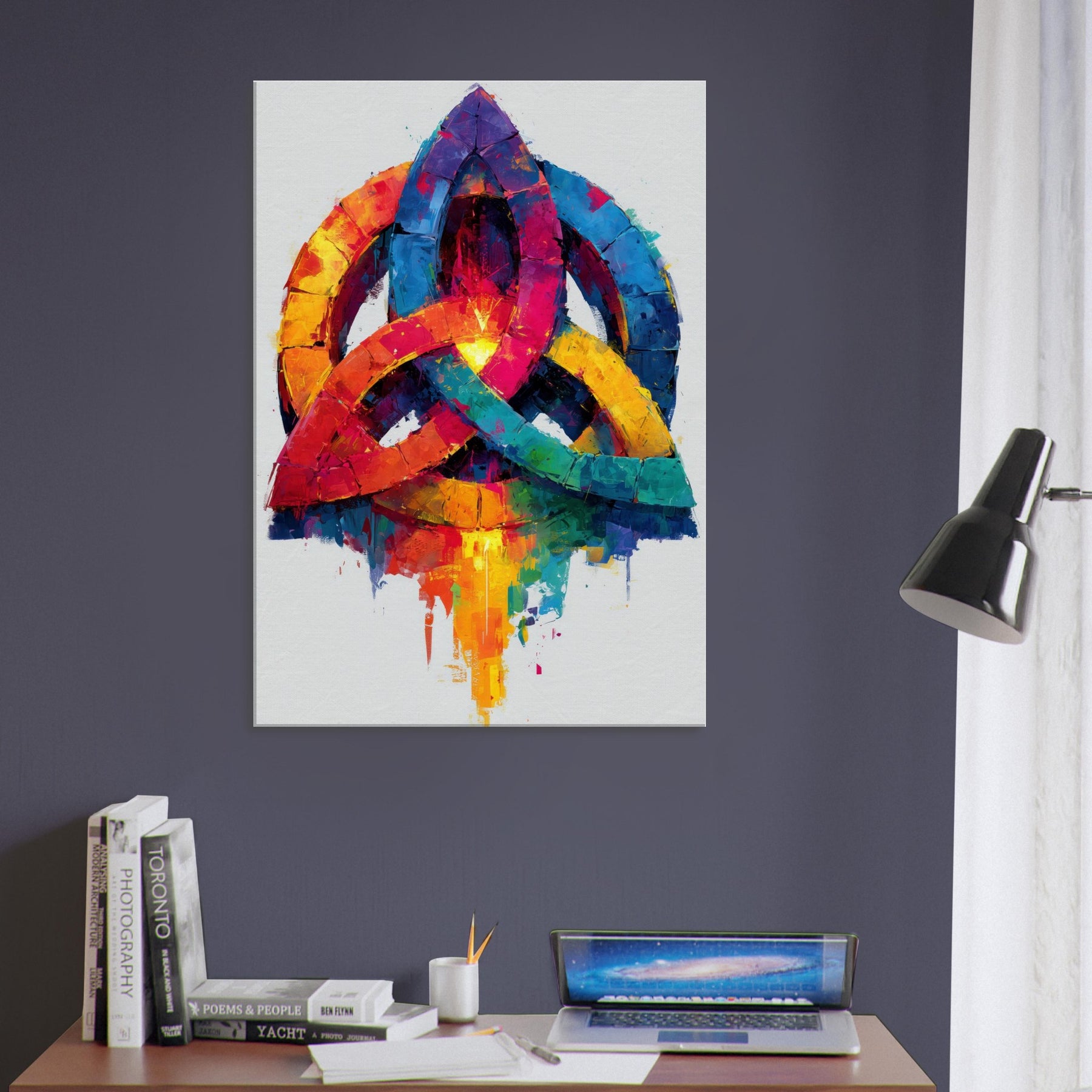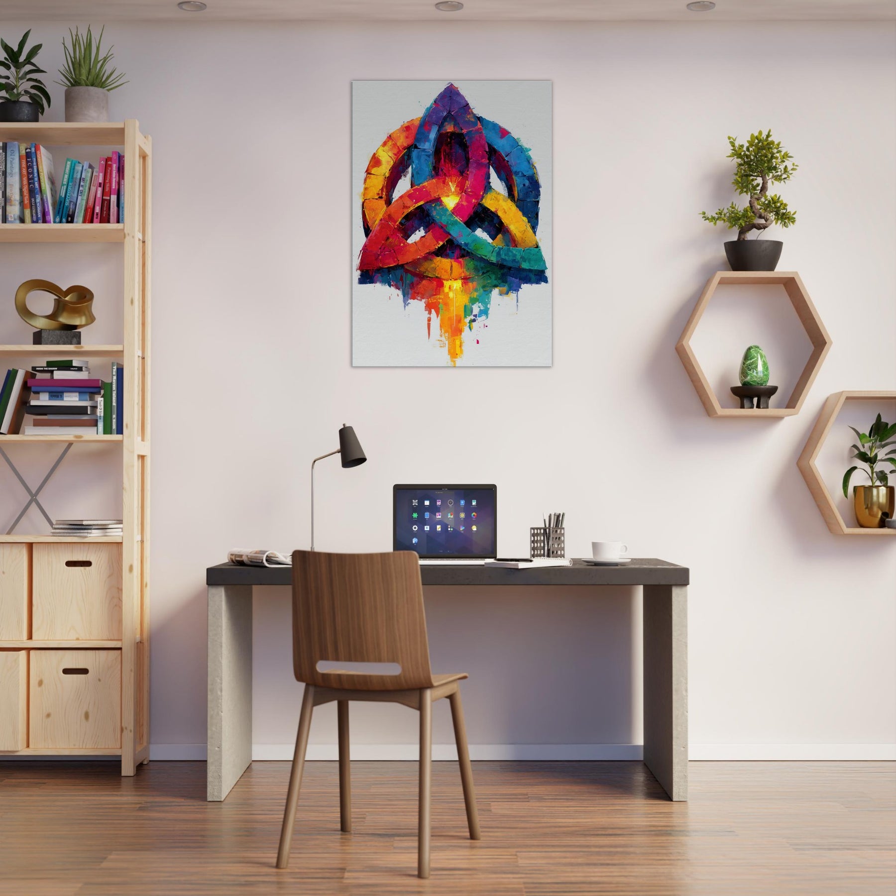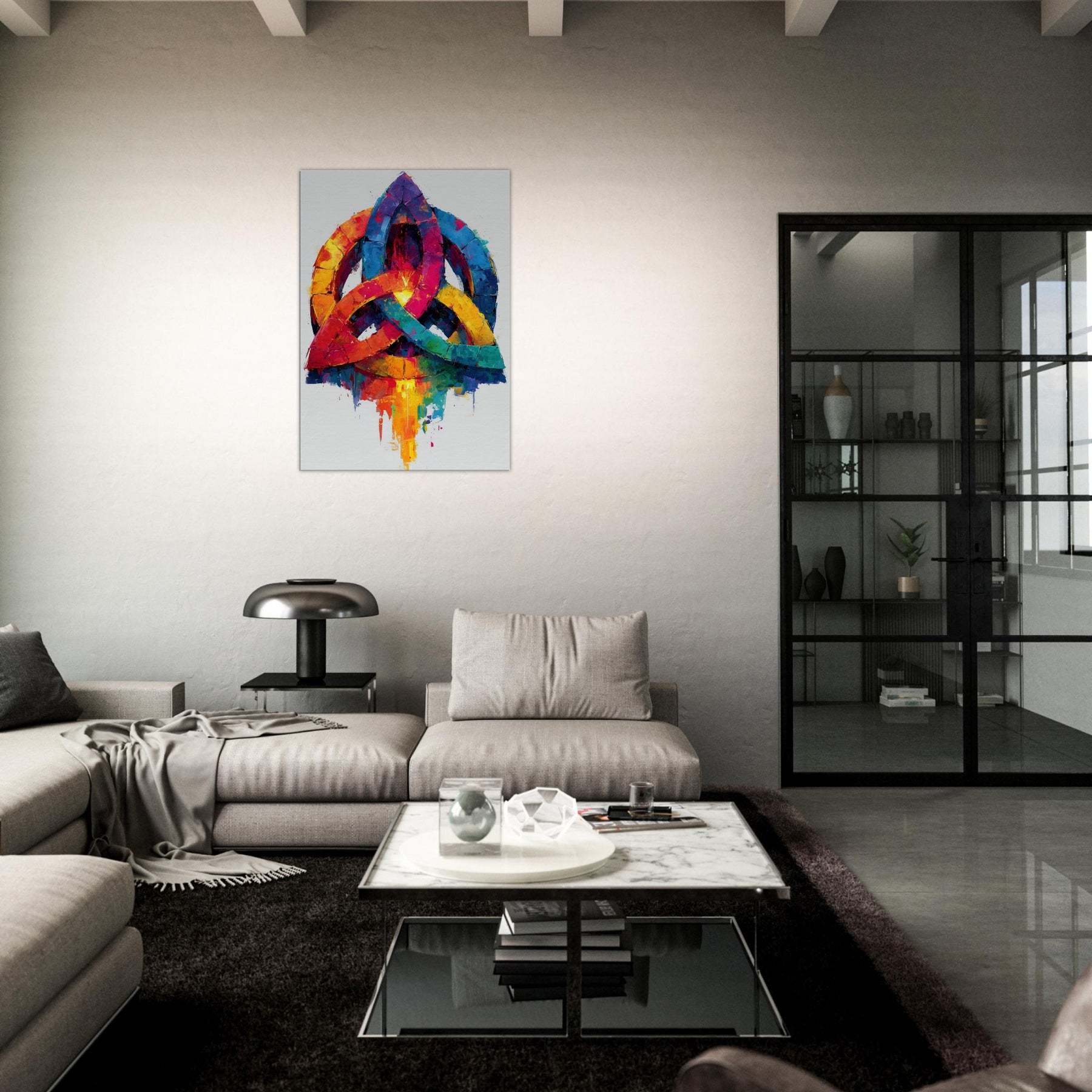 A luminous ode to timeless symbol, the Celtic Triquetra dissolves into a radiant cascade of color and light. Bold, textured strokes weave a luminous knot that seems to breathe, inviting quiet contemplation and luminous energy into any room. The interplay of crimson, gold, cobalt and emerald creates a shimmering aura that shifts with the light, turning a wall into a sanctuary of ceremony and wonder. Perfect for a living room or study, it elevates mood and sparks conversation.
