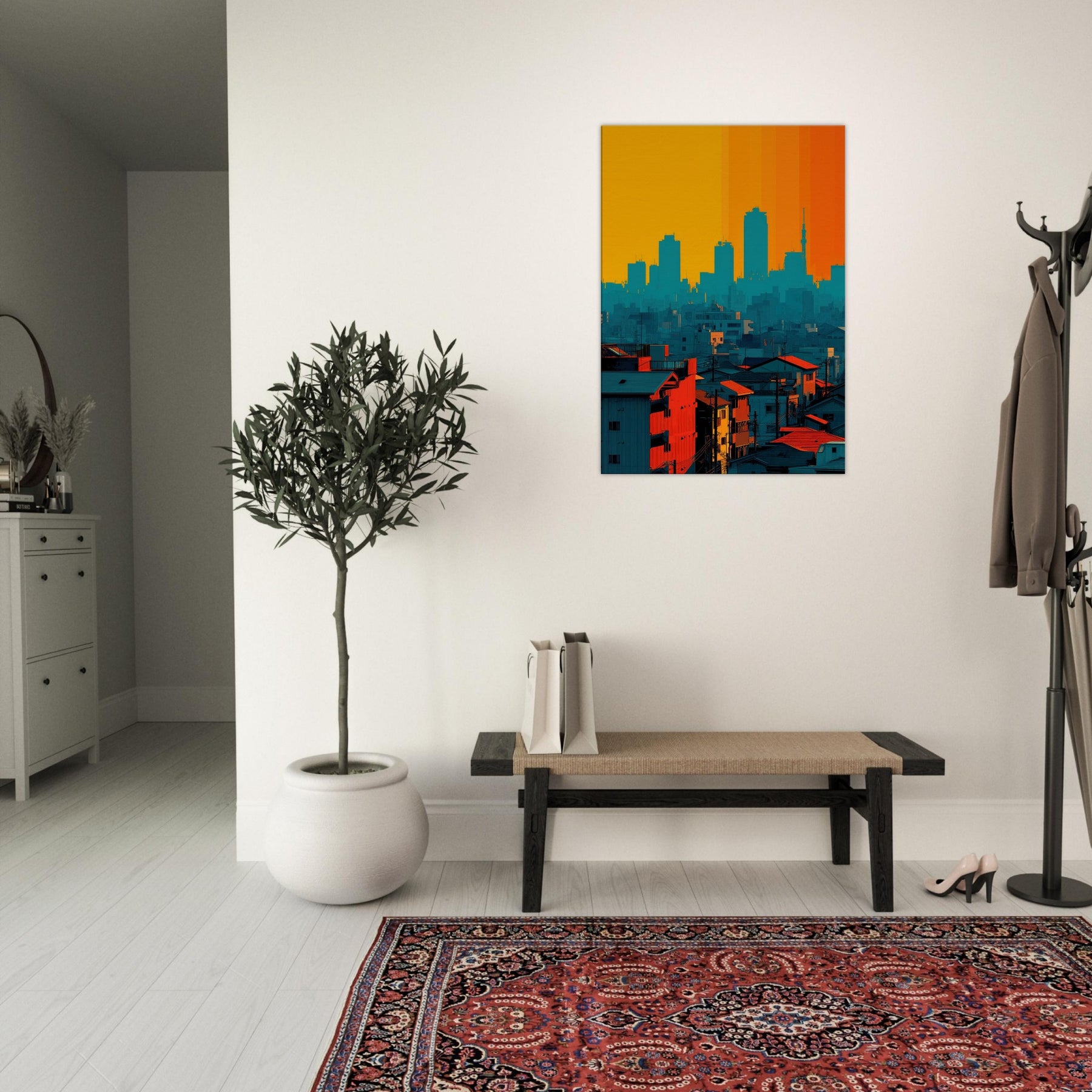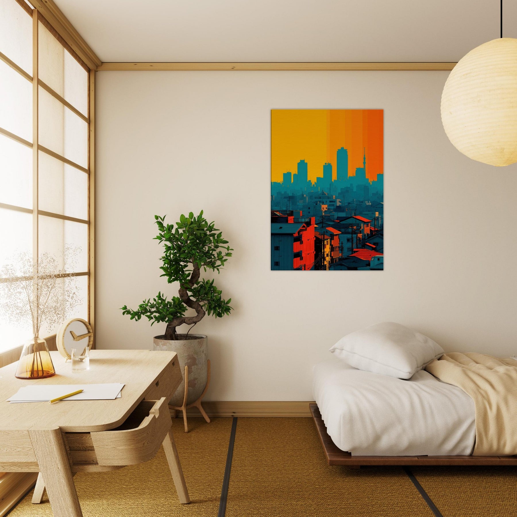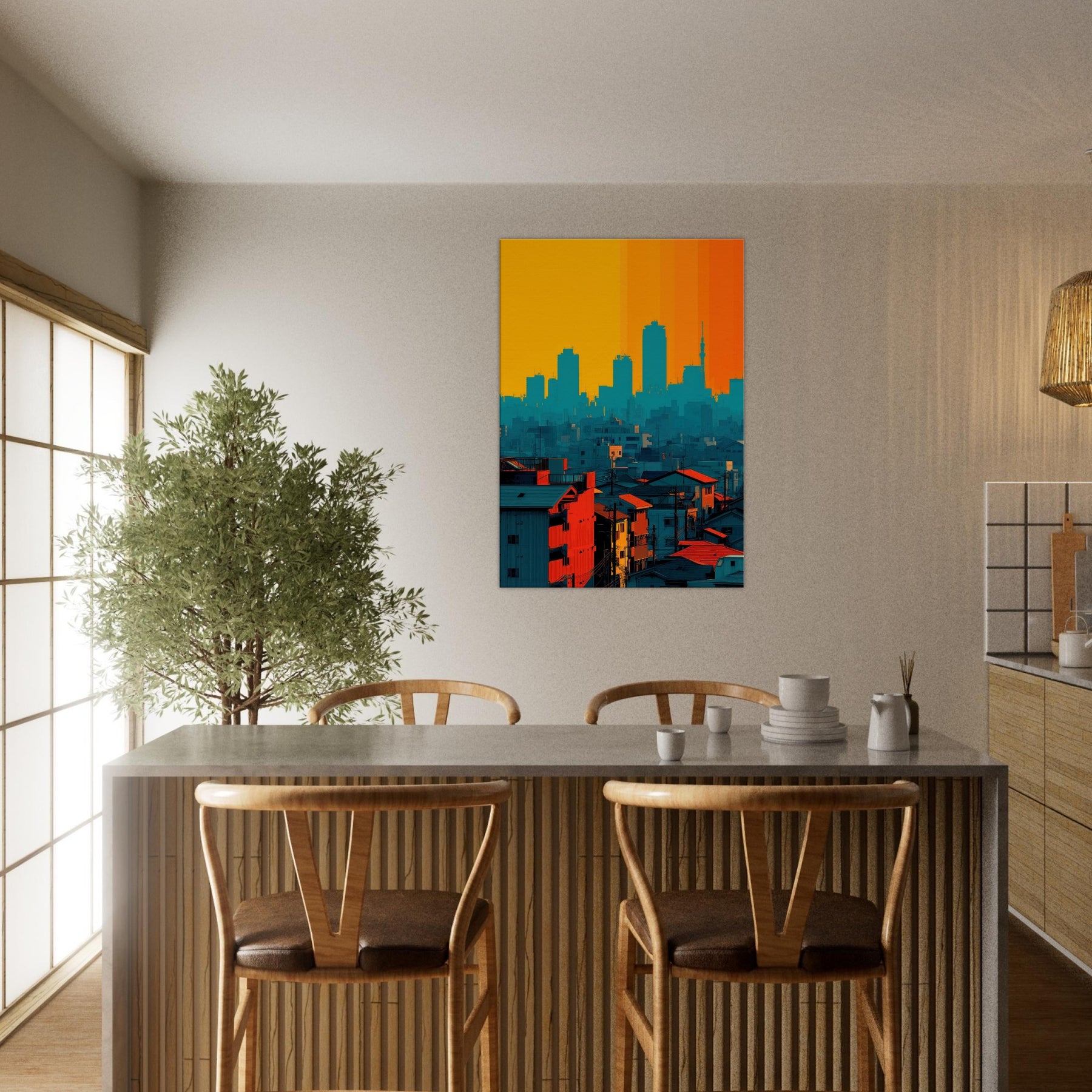 Tokyo Pulse invites the eye to drift along a horizon where the orange glow of evening bleeds into cooler, electric blues. The city’s silhouette dissolves and refines into luminous layers, letting warmth, rhythm, and distance mingle in the mind. This abstract of Tokyo evokes the hum of streets, the glow of neon, and the quiet pulse of a metropolis at dusk. Hang it to infuse your living space with urban poetry, depth, and a cinematic sense of place.