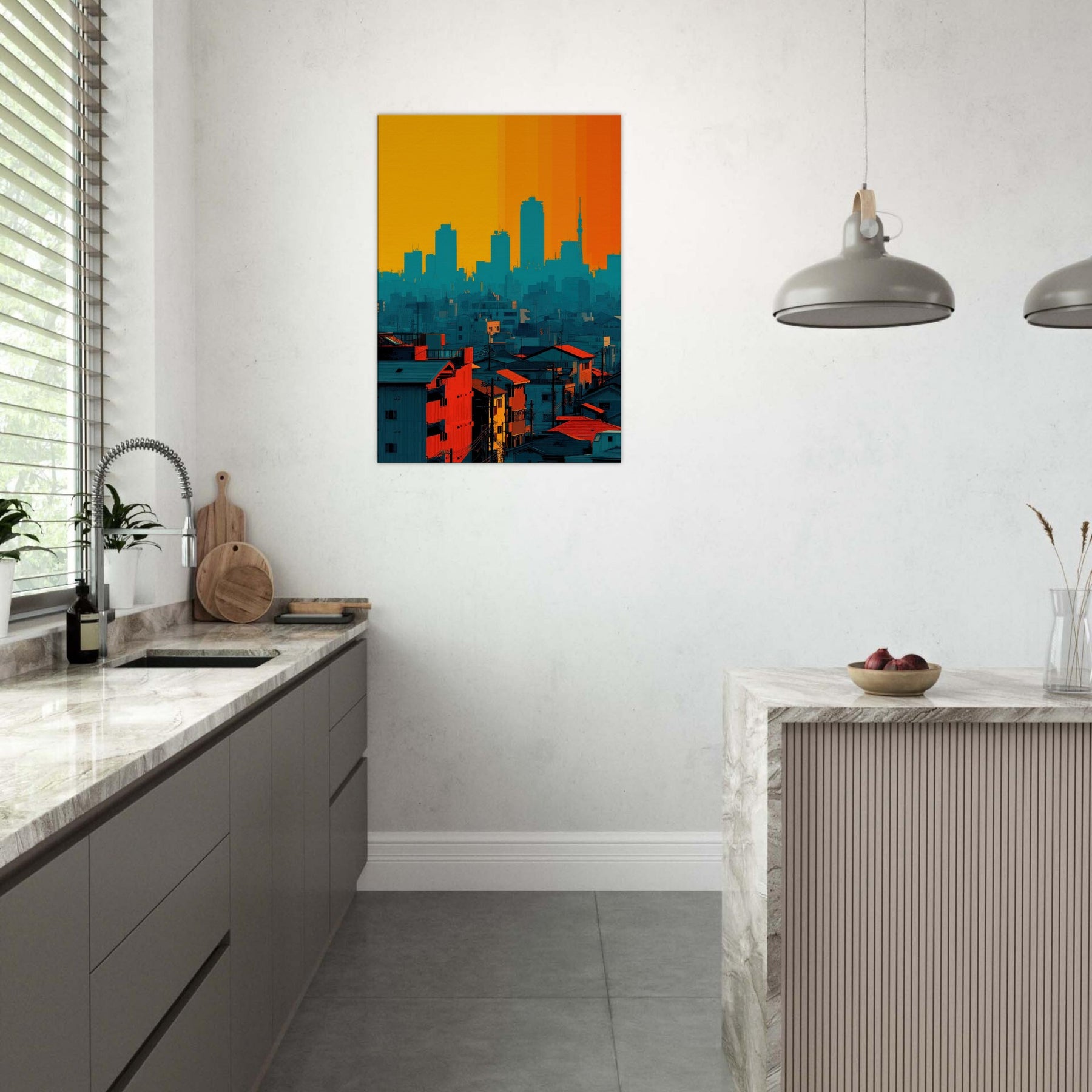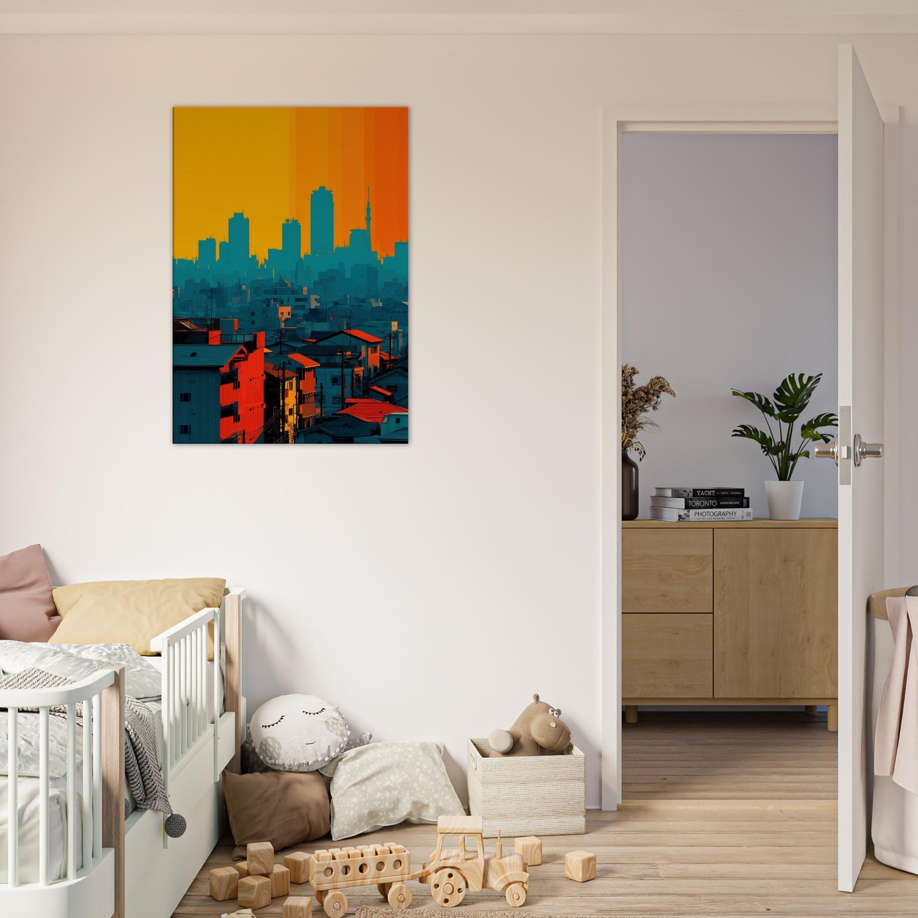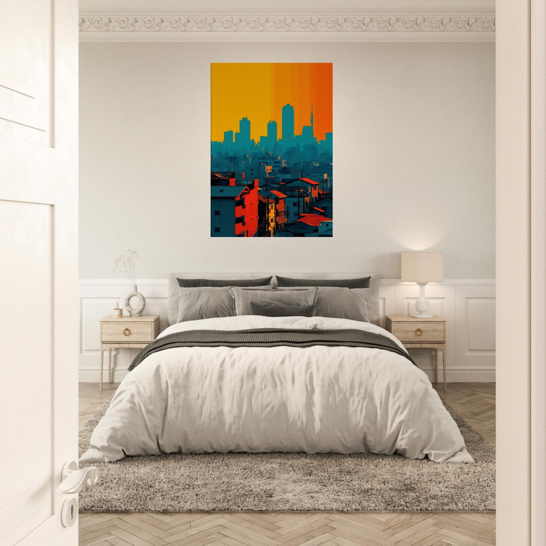 Tokyo Pulse invites the eye to drift along a horizon where the orange glow of evening bleeds into cooler, electric blues. The city’s silhouette dissolves and refines into luminous layers, letting warmth, rhythm, and distance mingle in the mind. This abstract of Tokyo evokes the hum of streets, the glow of neon, and the quiet pulse of a metropolis at dusk. Hang it to infuse your living space with urban poetry, depth, and a cinematic sense of place.