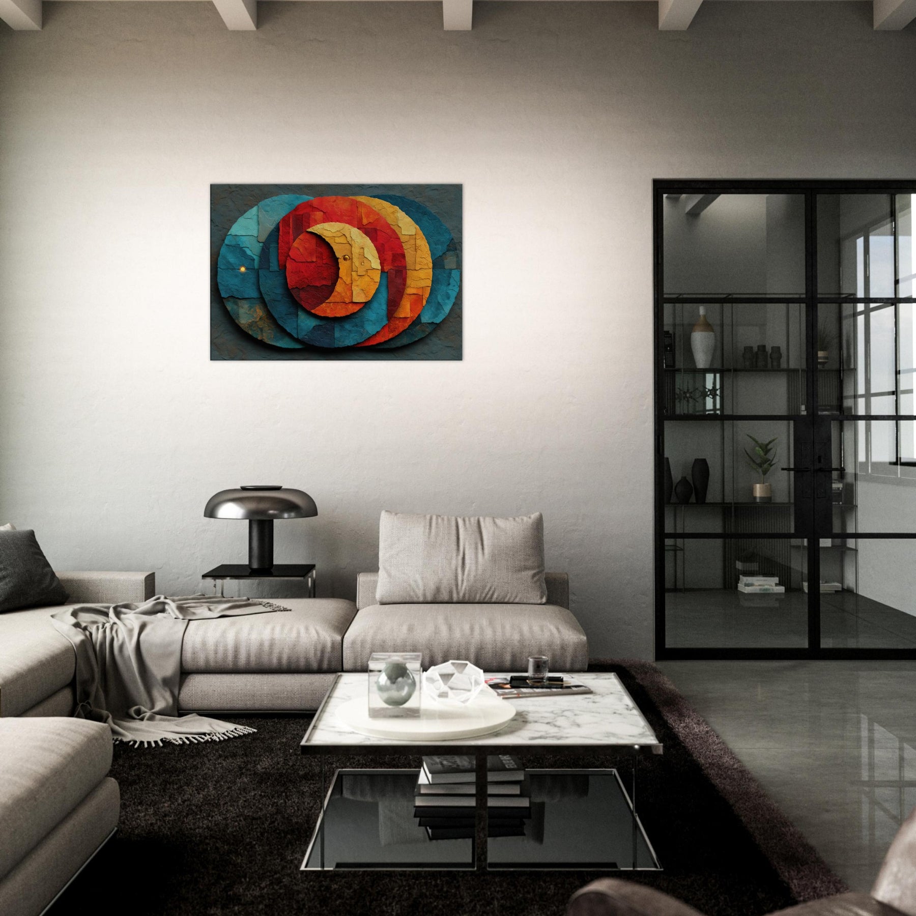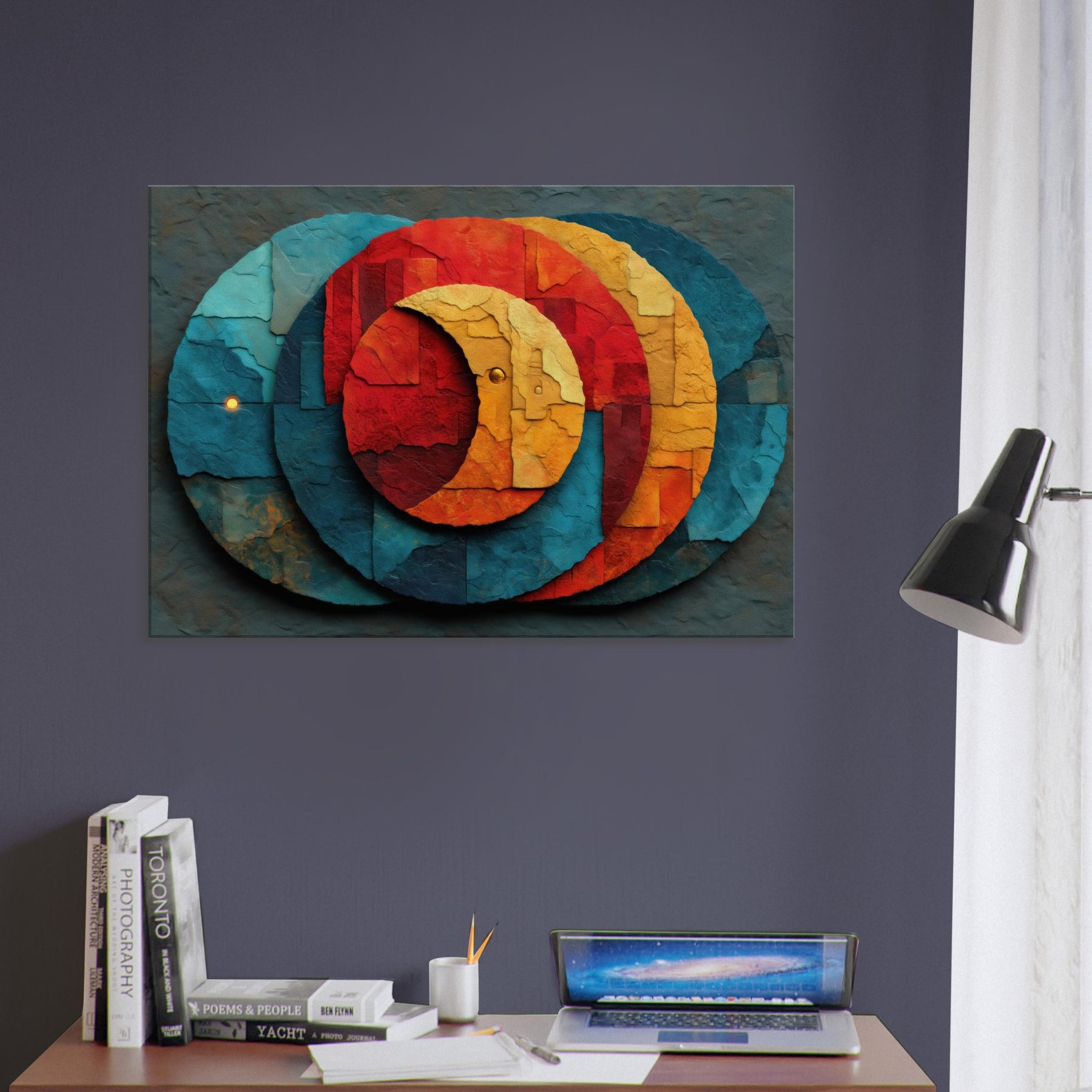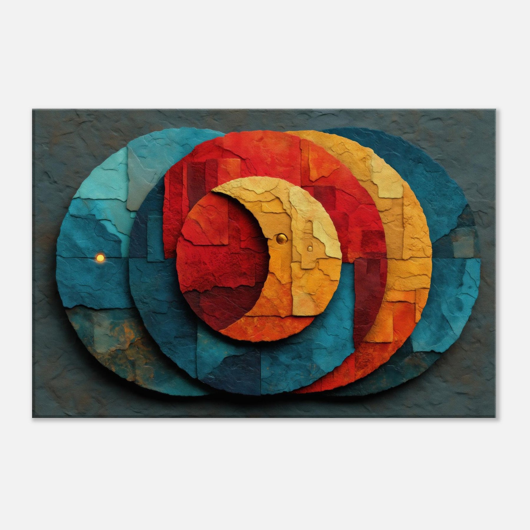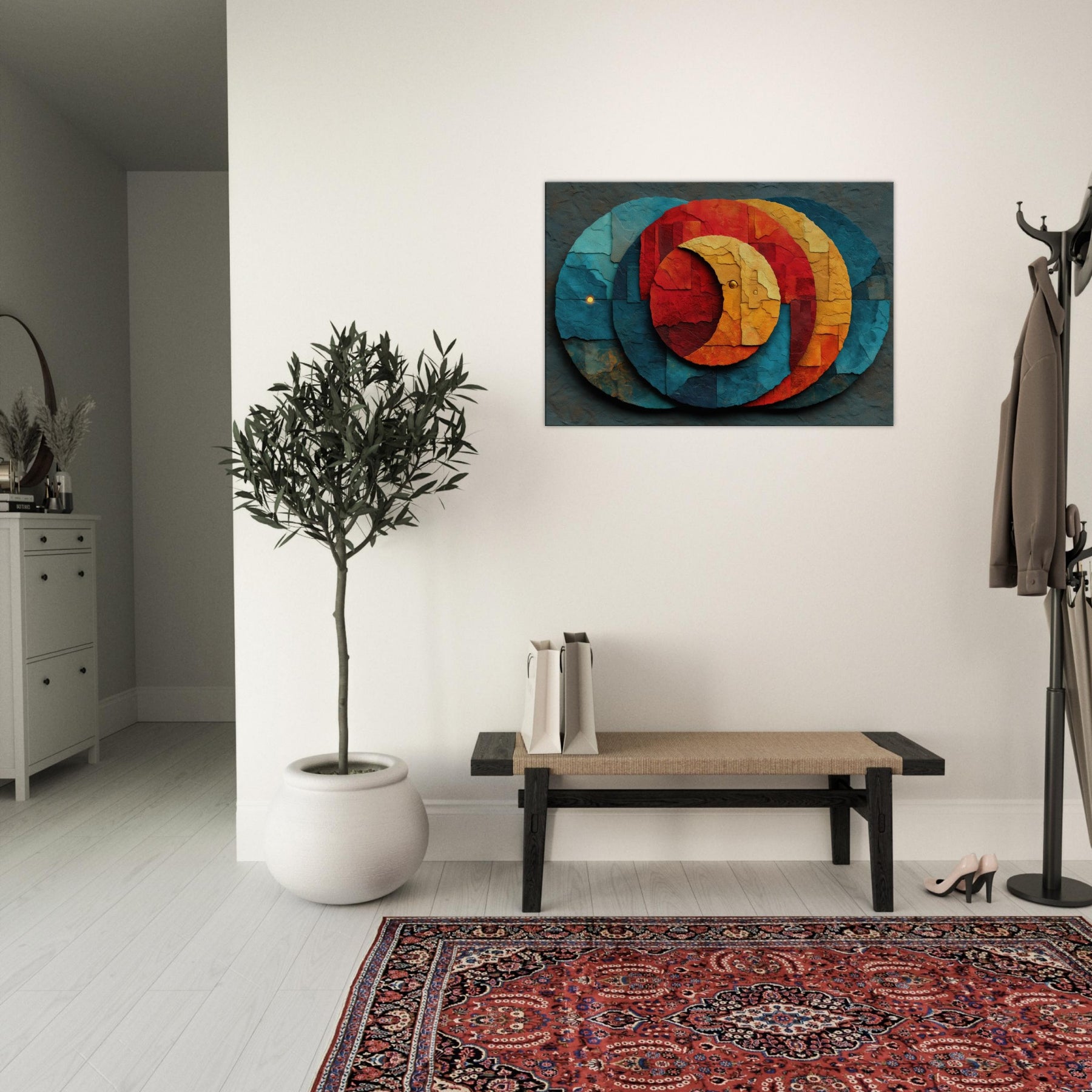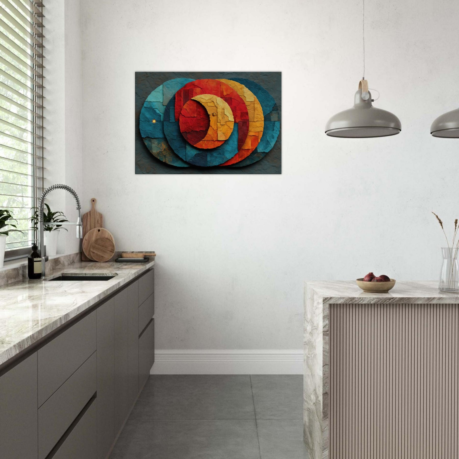 Bathed in the hush of dusk, this Triple Moon invites a contemplative breath into the room. The layered arcs unfurl in a warm spectrum of golds, deep oranges, and cooling teals, each fragment catching a pulse of light as if a secret moonlight were released. Its tactile, mosaic texture adds depth to walls and conversations alike, transforming a living space into a sanctuary of atmosphere, mystery, and quiet wonder.
