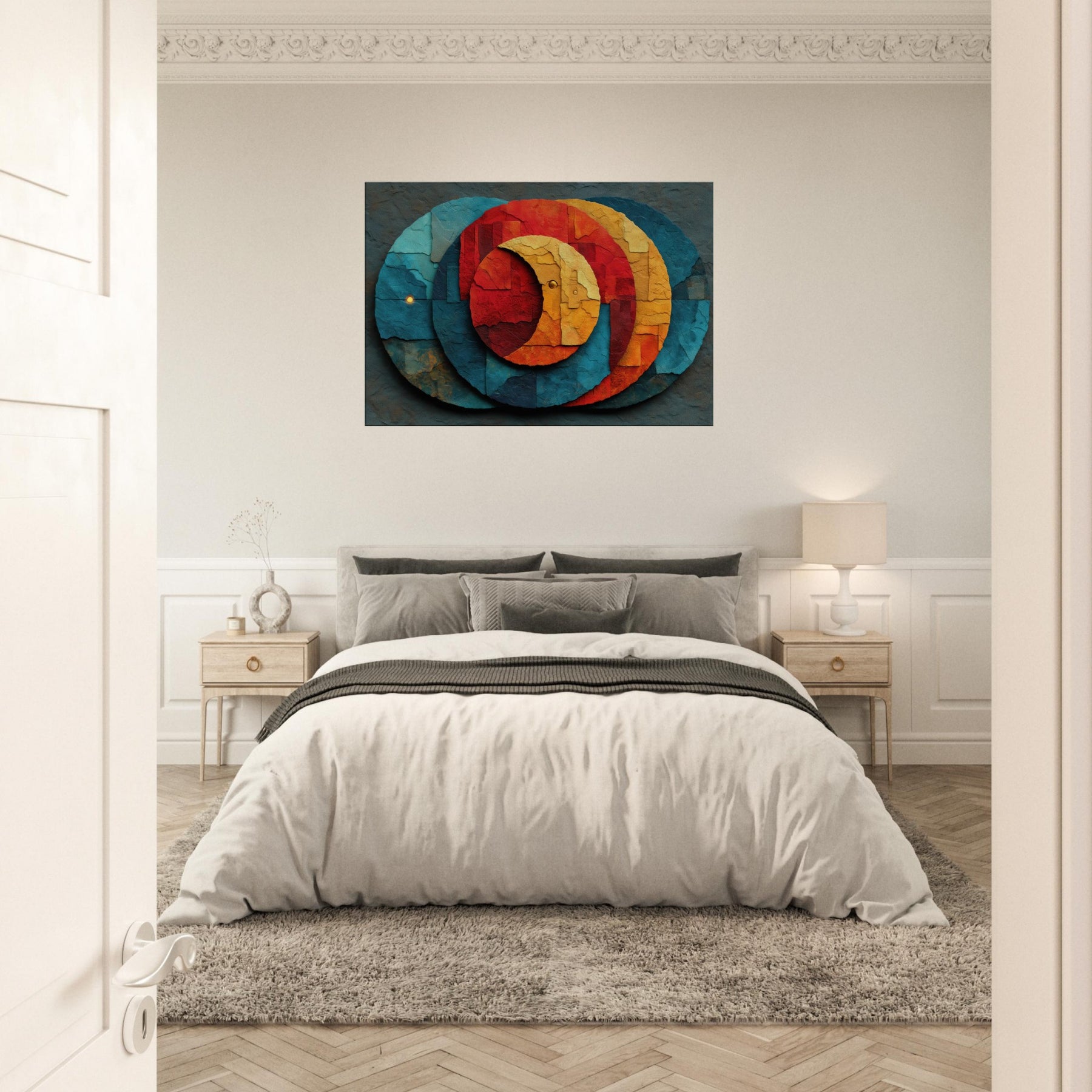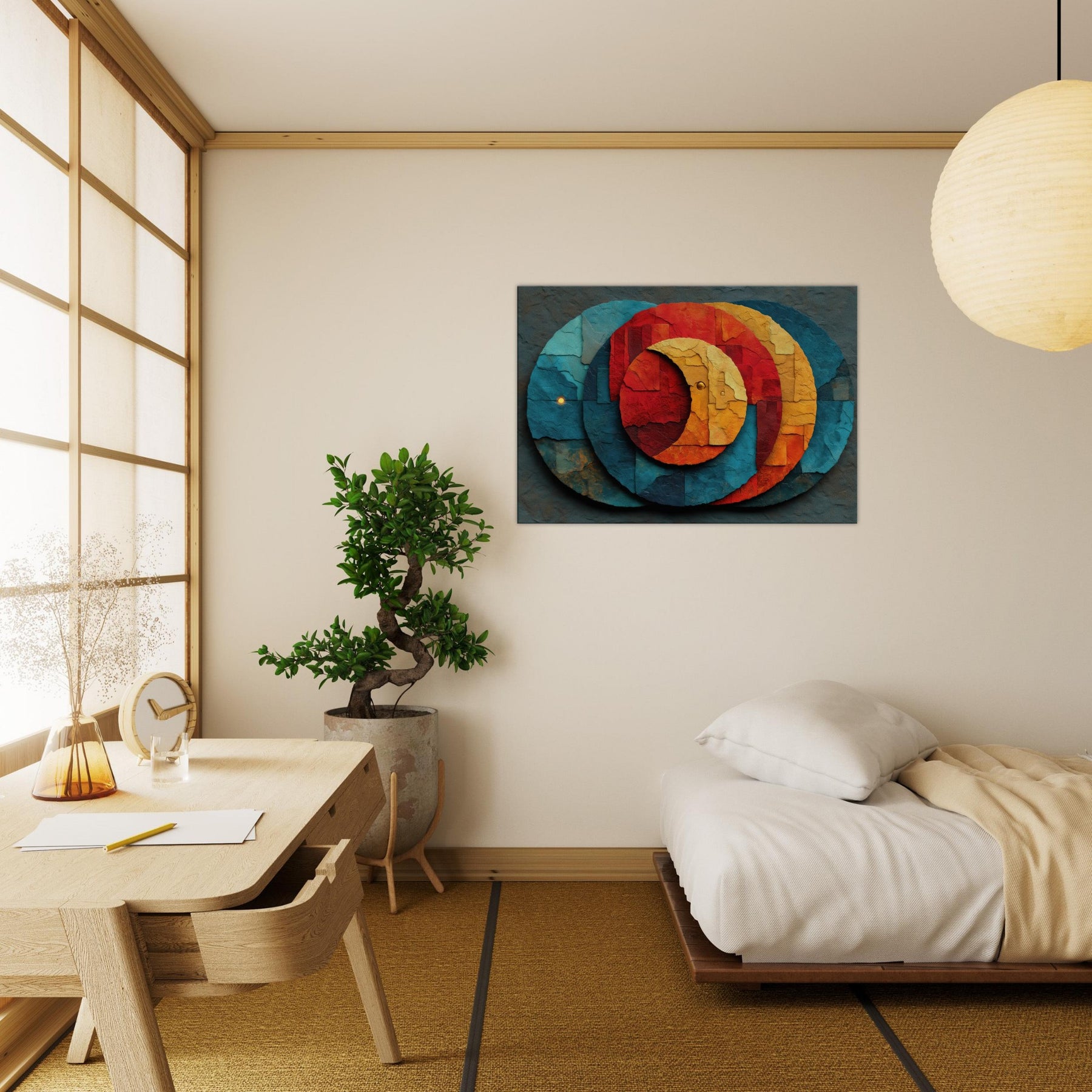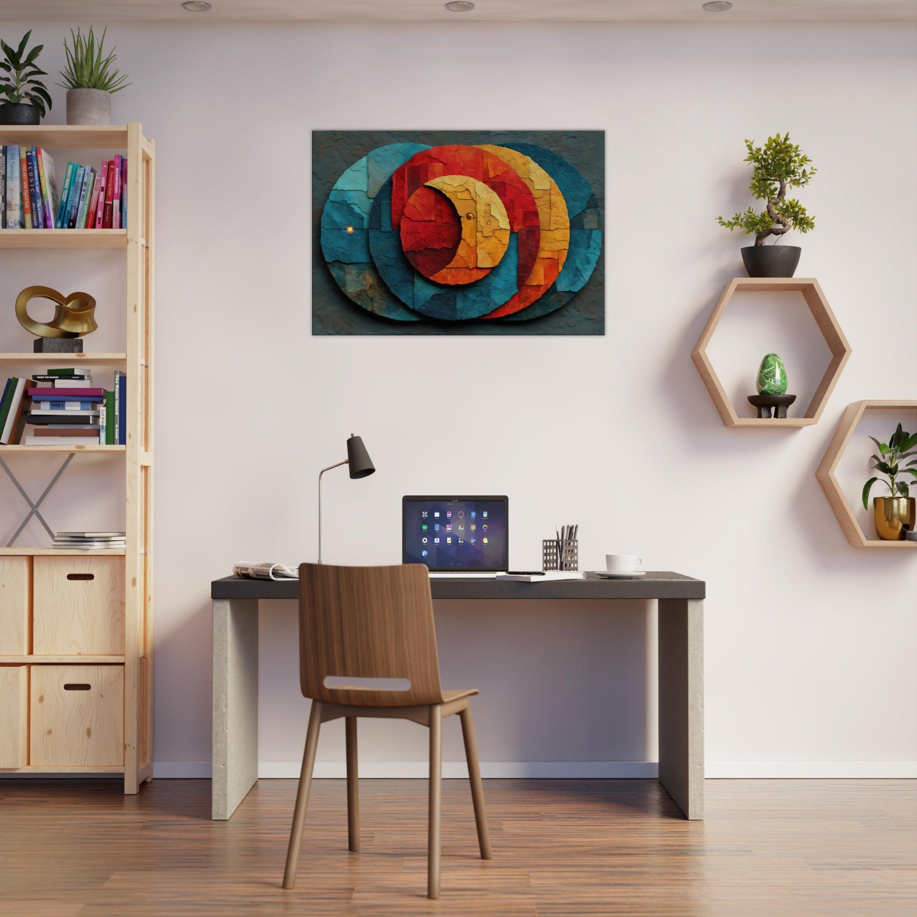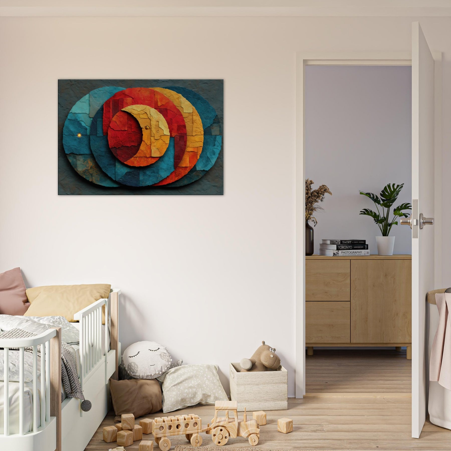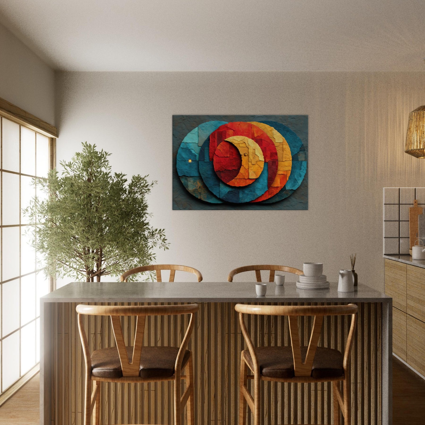 Bathed in the hush of dusk, this Triple Moon invites a contemplative breath into the room. The layered arcs unfurl in a warm spectrum of golds, deep oranges, and cooling teals, each fragment catching a pulse of light as if a secret moonlight were released. Its tactile, mosaic texture adds depth to walls and conversations alike, transforming a living space into a sanctuary of atmosphere, mystery, and quiet wonder.