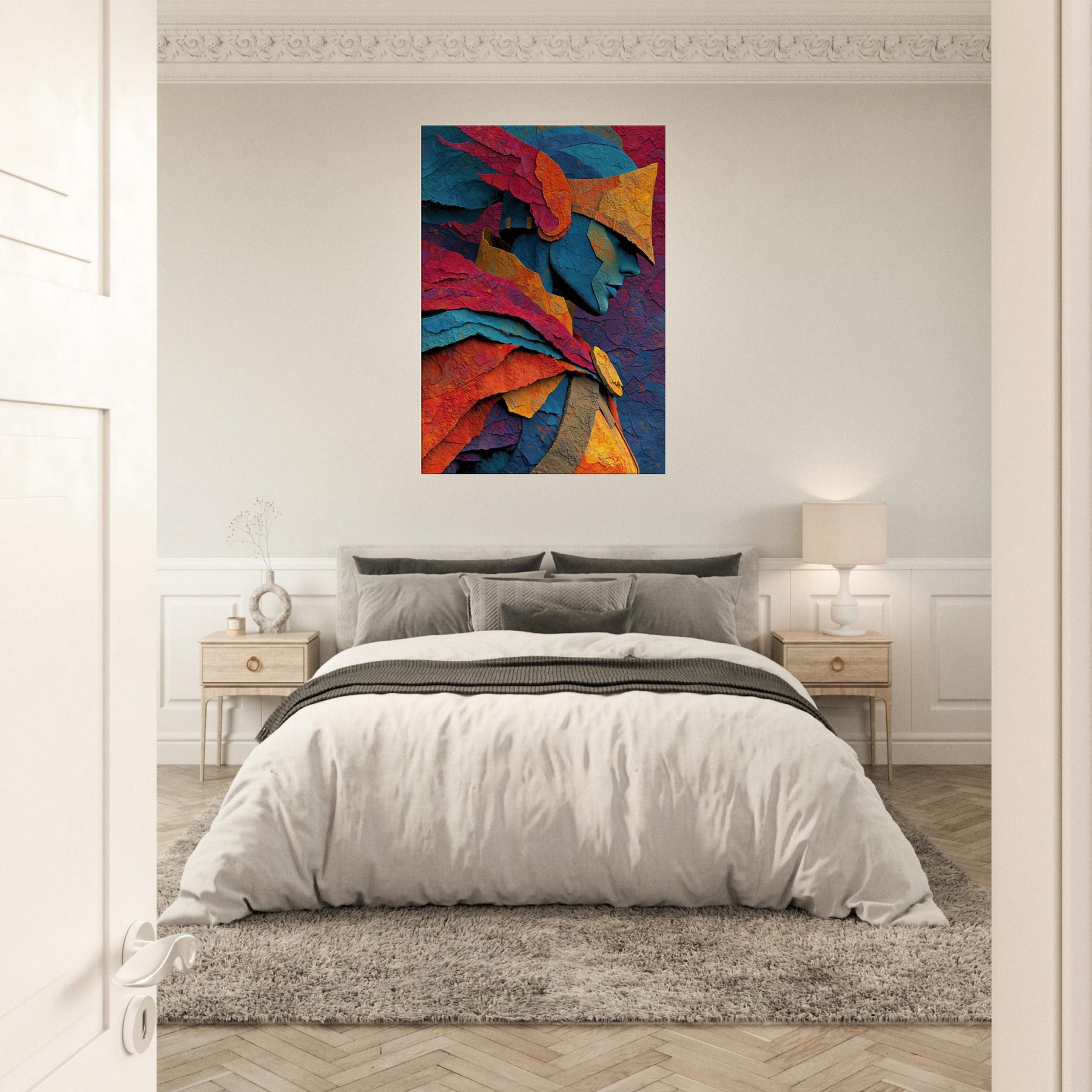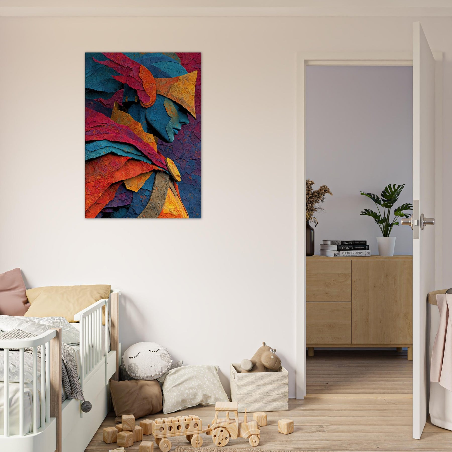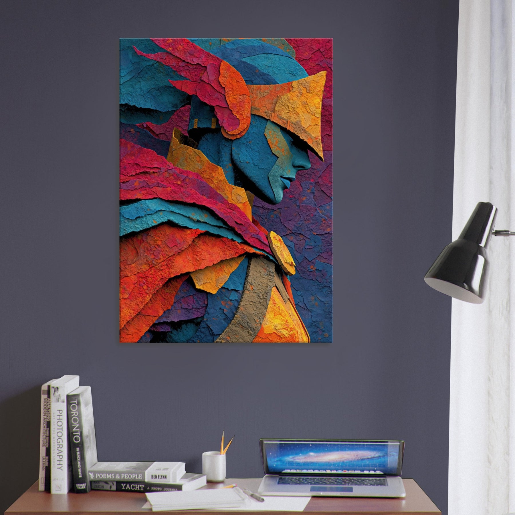 An ethereal Valkyrie emerges from a mosaic of color and texture, as if the walls themselves breathe with myth and wind. This abstract interpretation fuses storm bright yellows, cobalt blues, and molten oranges into a single, pulsating presence that feels both ancient and contemporary. Hang this piece in a living room or study to invite cinematic light, tactile depth, and a sense of heroic wonder. The Valkyrie becomes a quiet muse, guiding conversation and imagination.