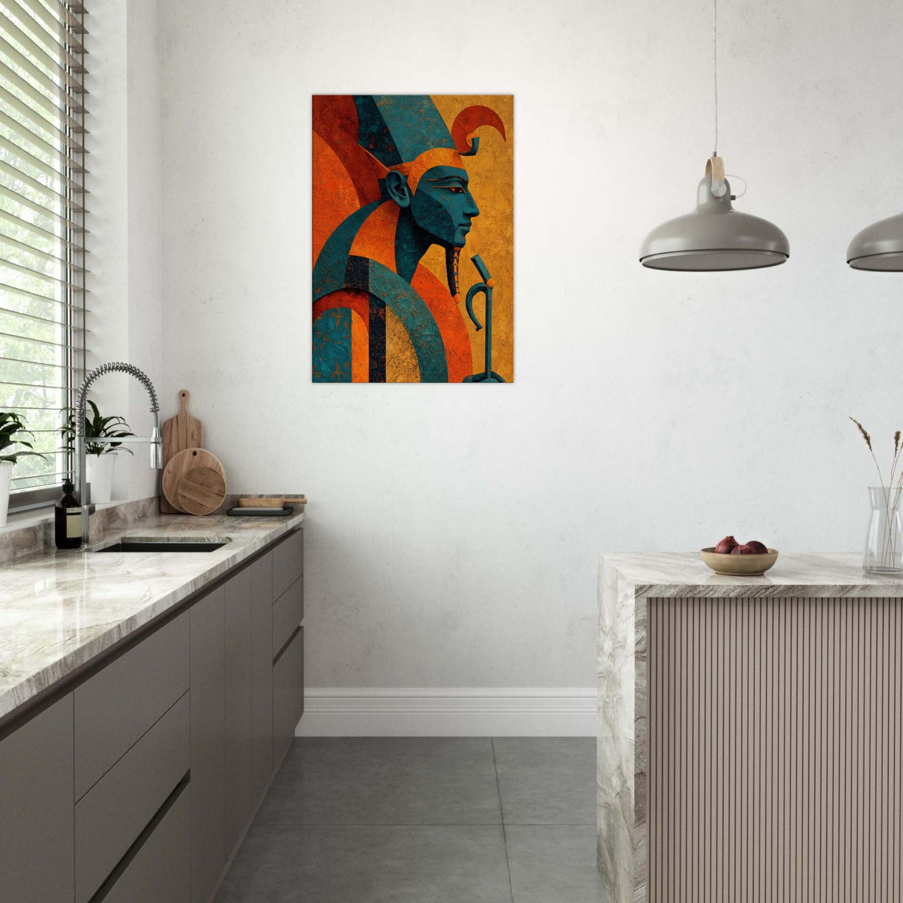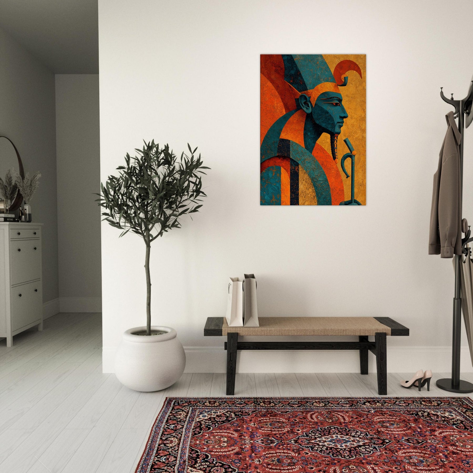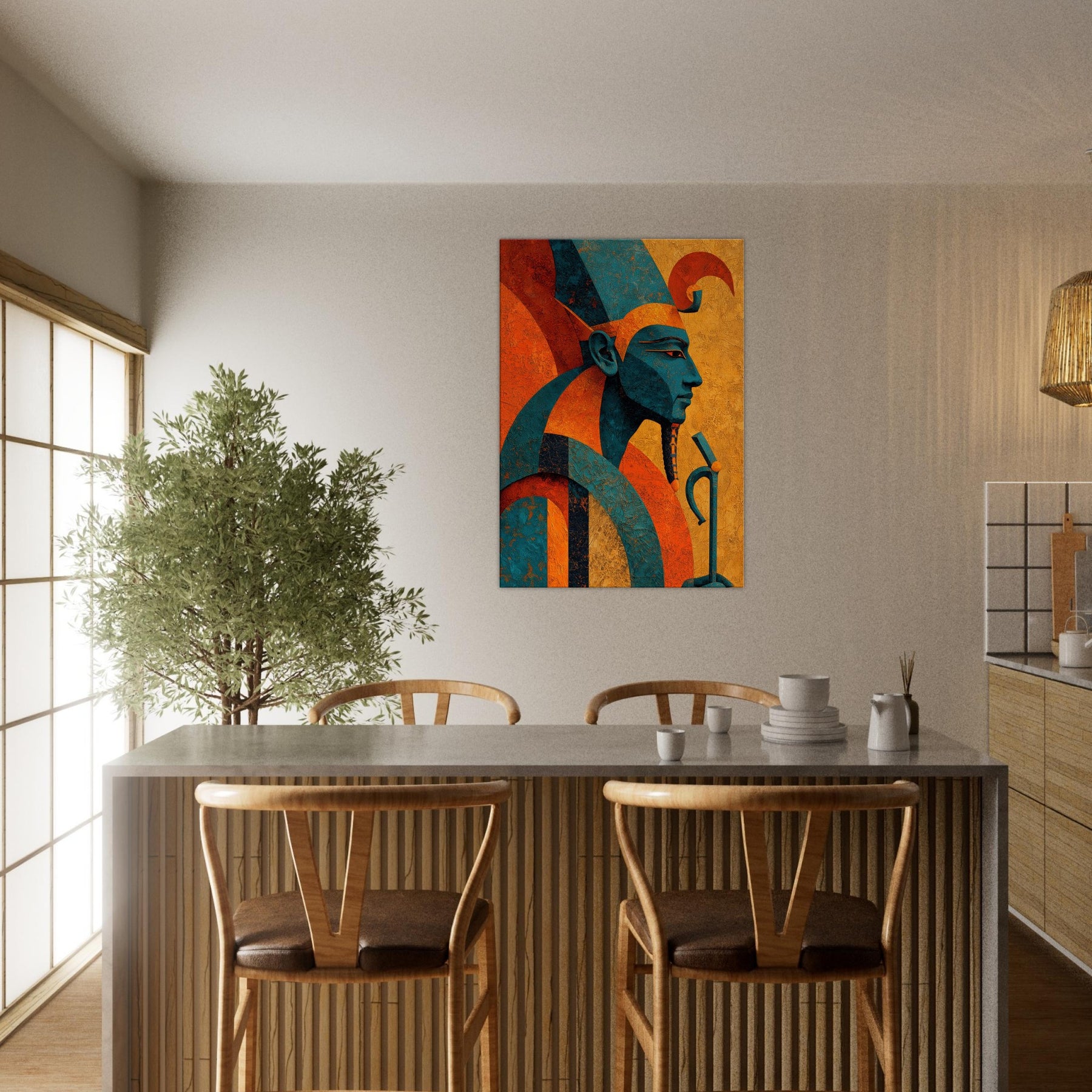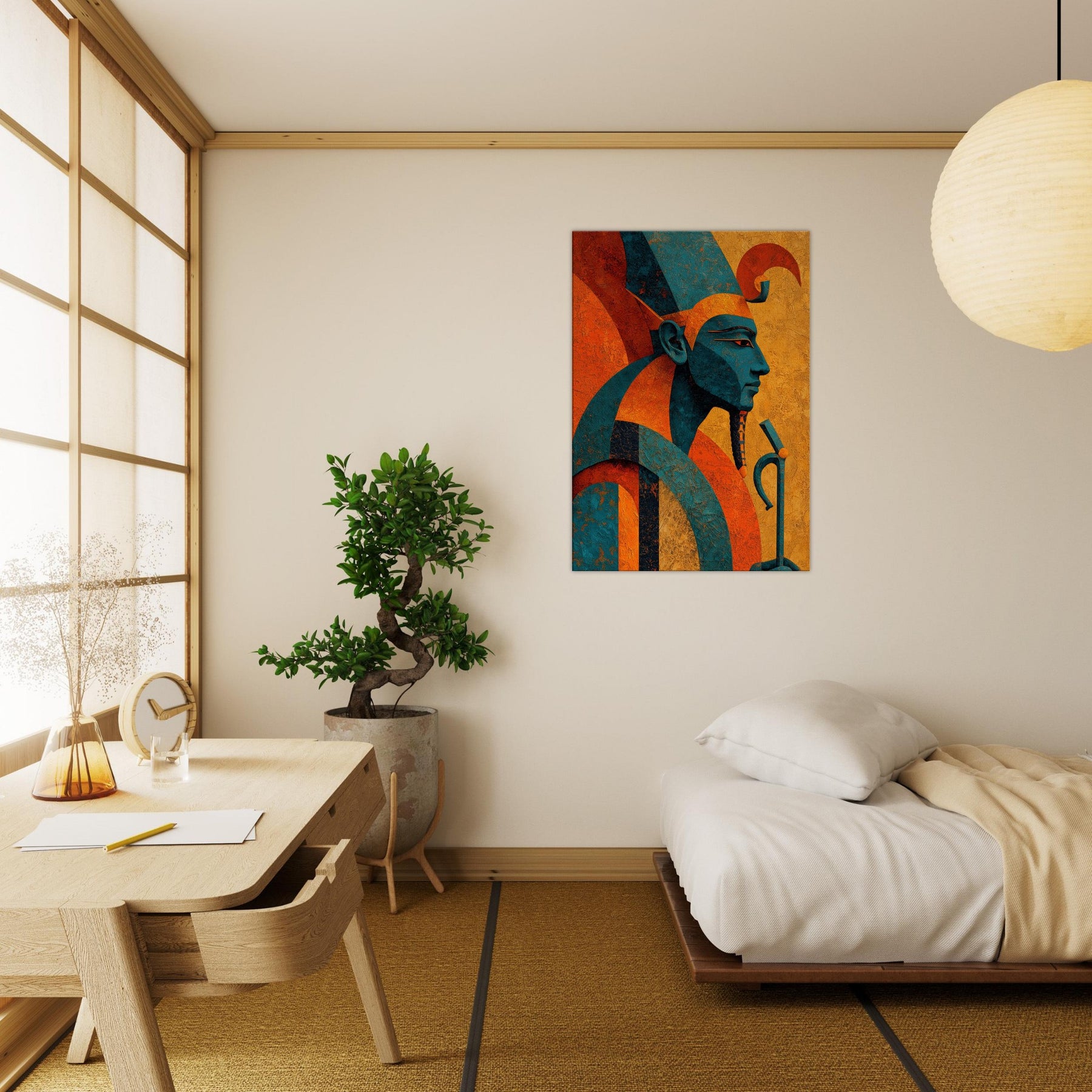 Isis emerges in luminous, fractured form, a timeless muse braided with color and shadow. This abstract fuses mythic calm with kinetic geometry, turning a room into a twilight sanctuary. Warm amber meets cool teal in sculptural lines that invite quiet reflection and conversation. Hang it where you crave a noble focal point: Isis becomes a guiding presence, anchoring your living space in imagination and grace.