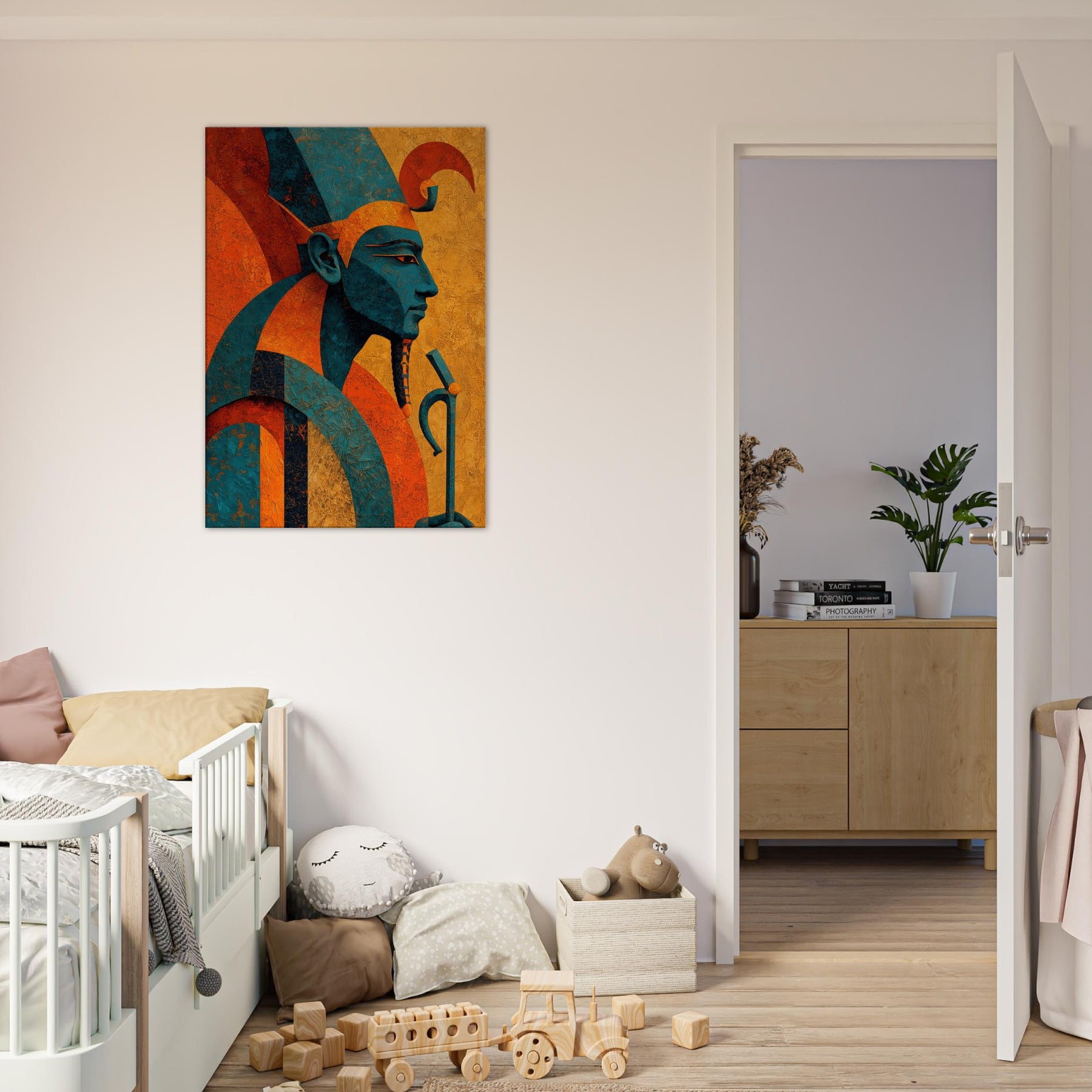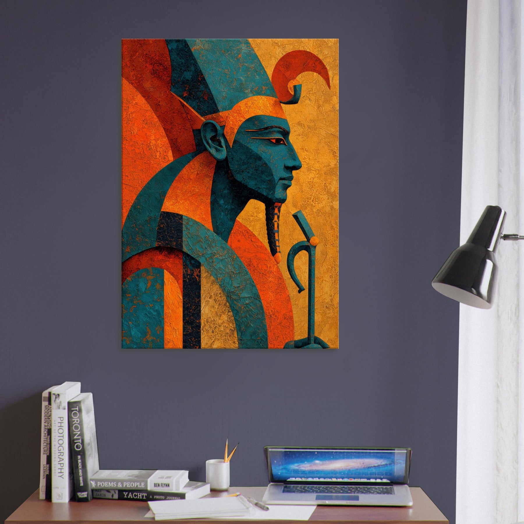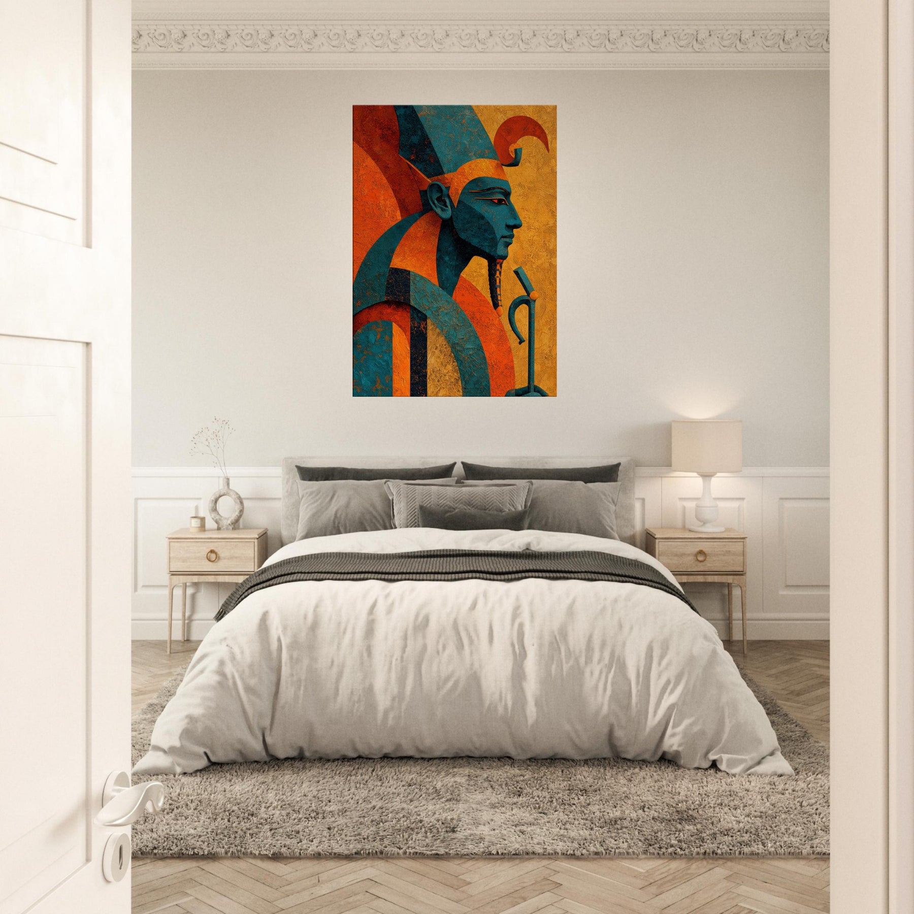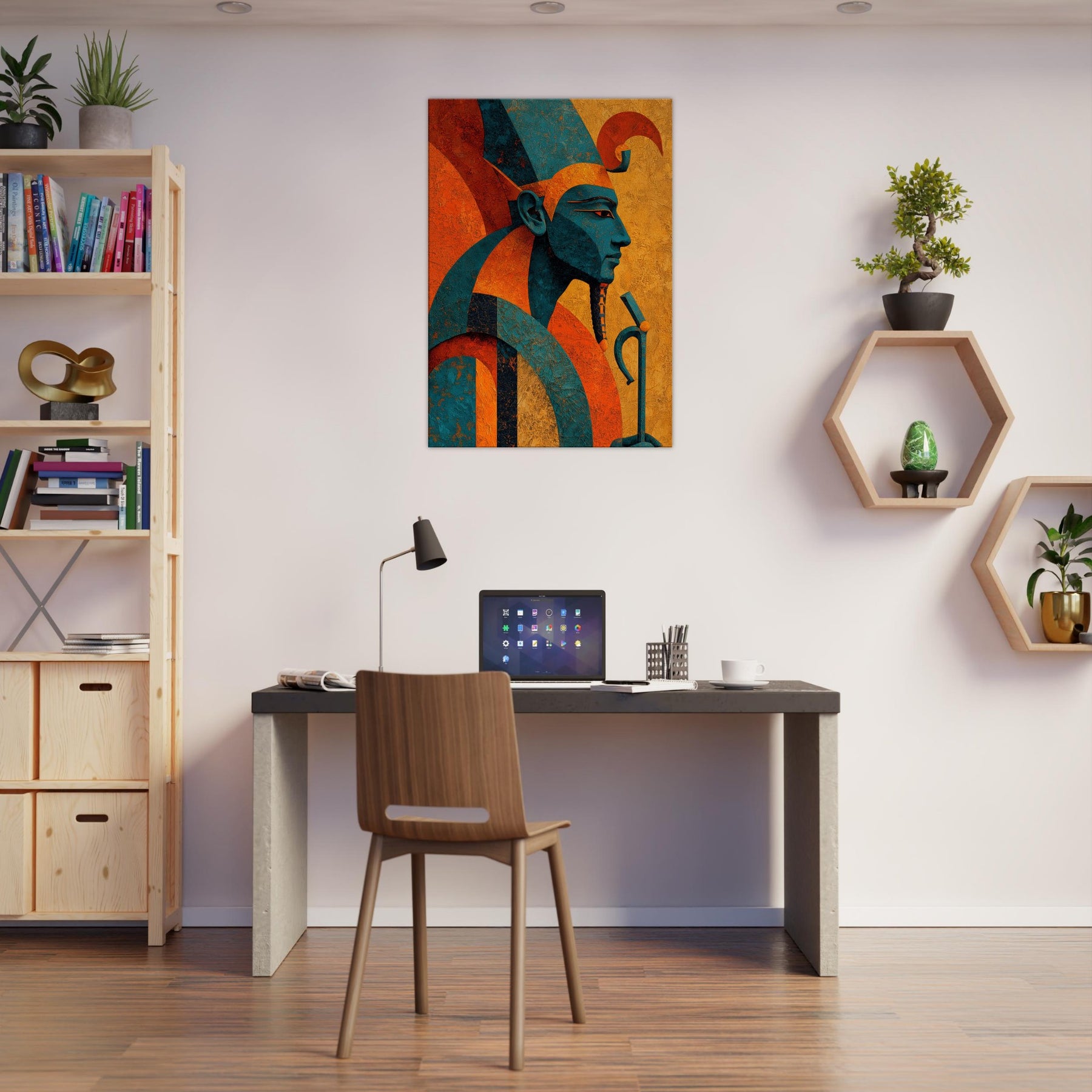 Isis emerges in luminous, fractured form, a timeless muse braided with color and shadow. This abstract fuses mythic calm with kinetic geometry, turning a room into a twilight sanctuary. Warm amber meets cool teal in sculptural lines that invite quiet reflection and conversation. Hang it where you crave a noble focal point: Isis becomes a guiding presence, anchoring your living space in imagination and grace.