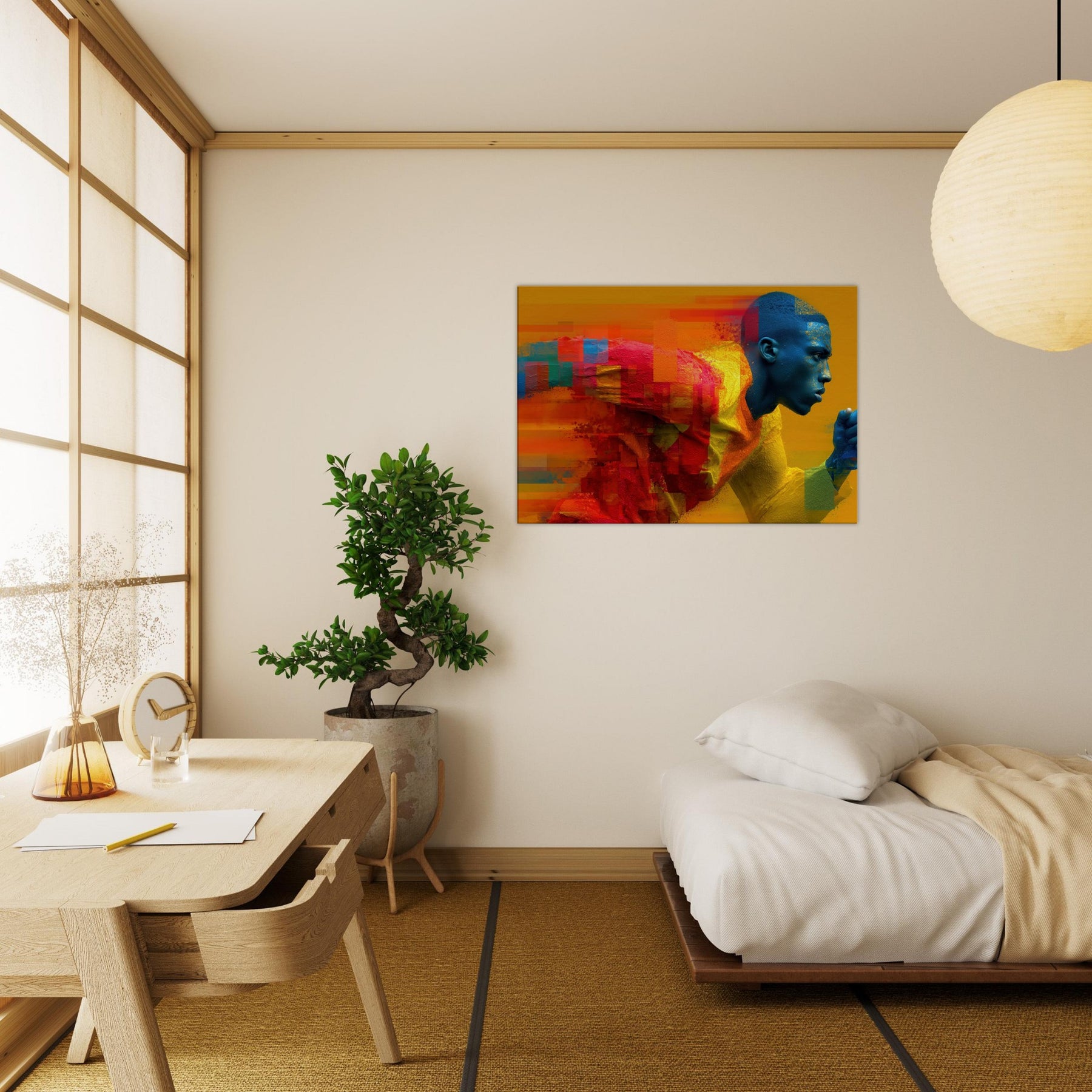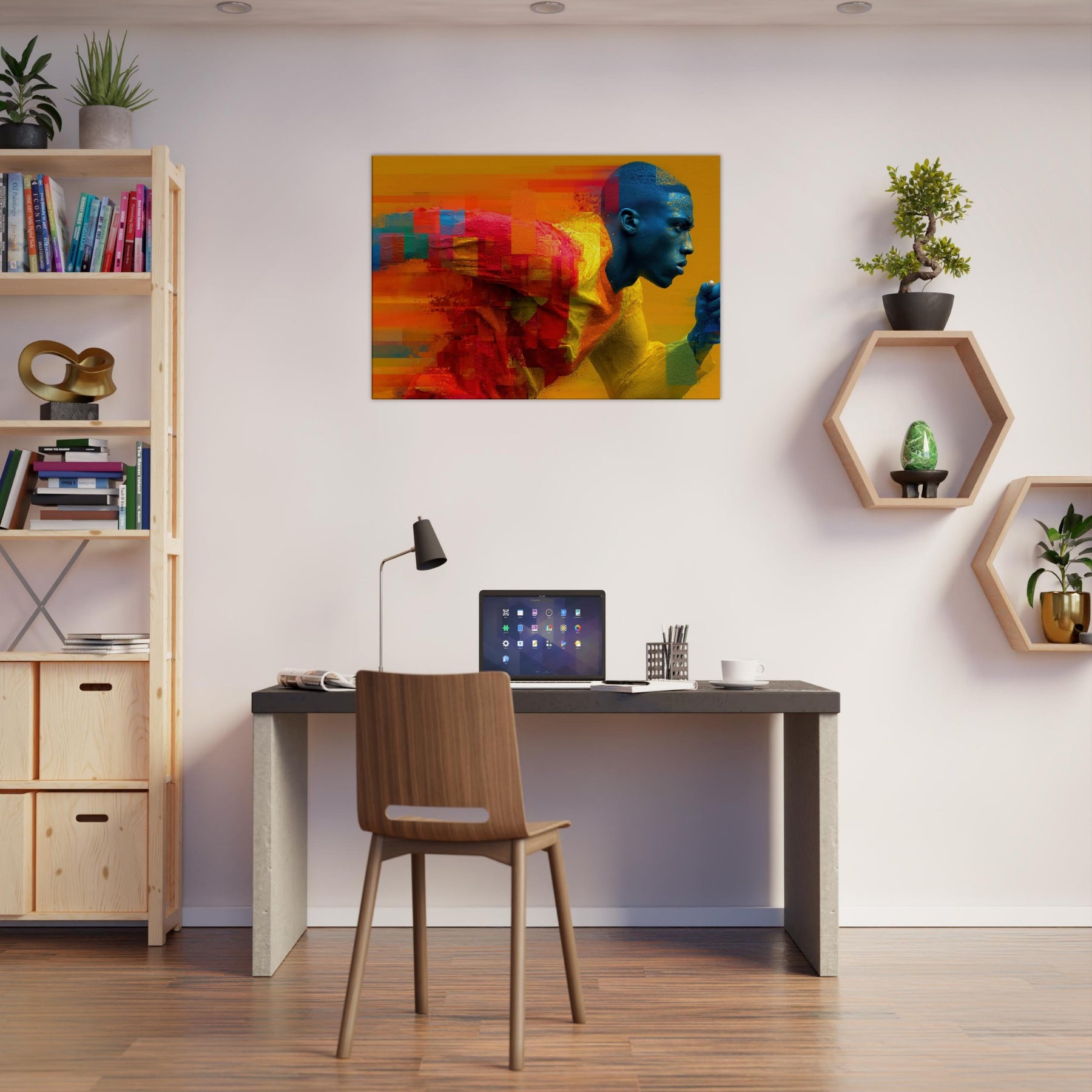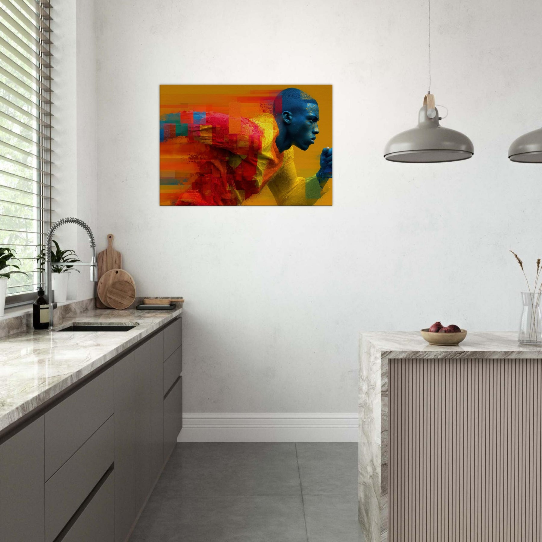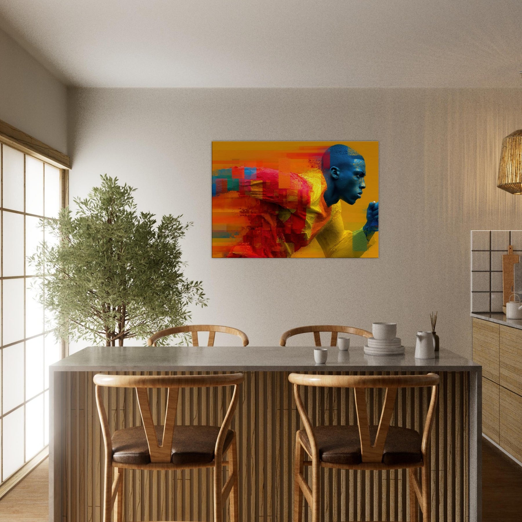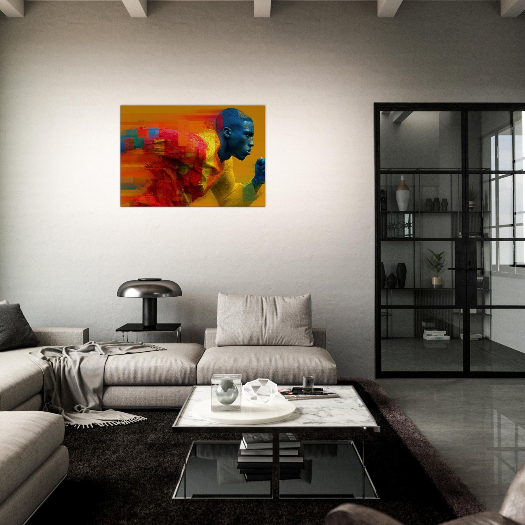 With the Runner in Motion as its pulse, this piece bathes a room in electric light and tactile texture. Abstract forms streak across the canvas like a breath of wind, while a cobalt torso anchors the composition in calm counterpoint. The composition invites you to feel movement: a sense of momentum, urgency, and focus that energizes a living space without shouting. Perfect for a contemporary living room or studio, it adds drama, depth, and a luminous, modern atmosphere.