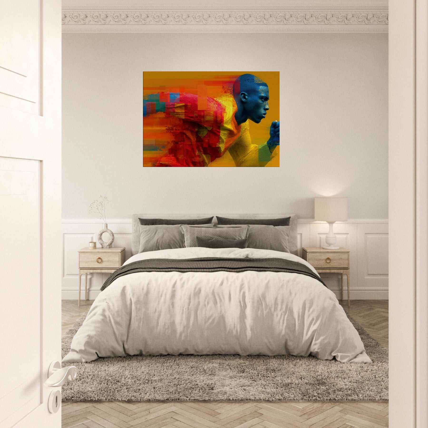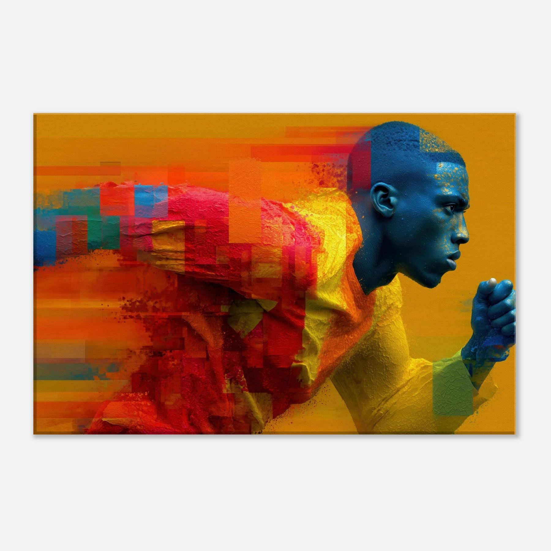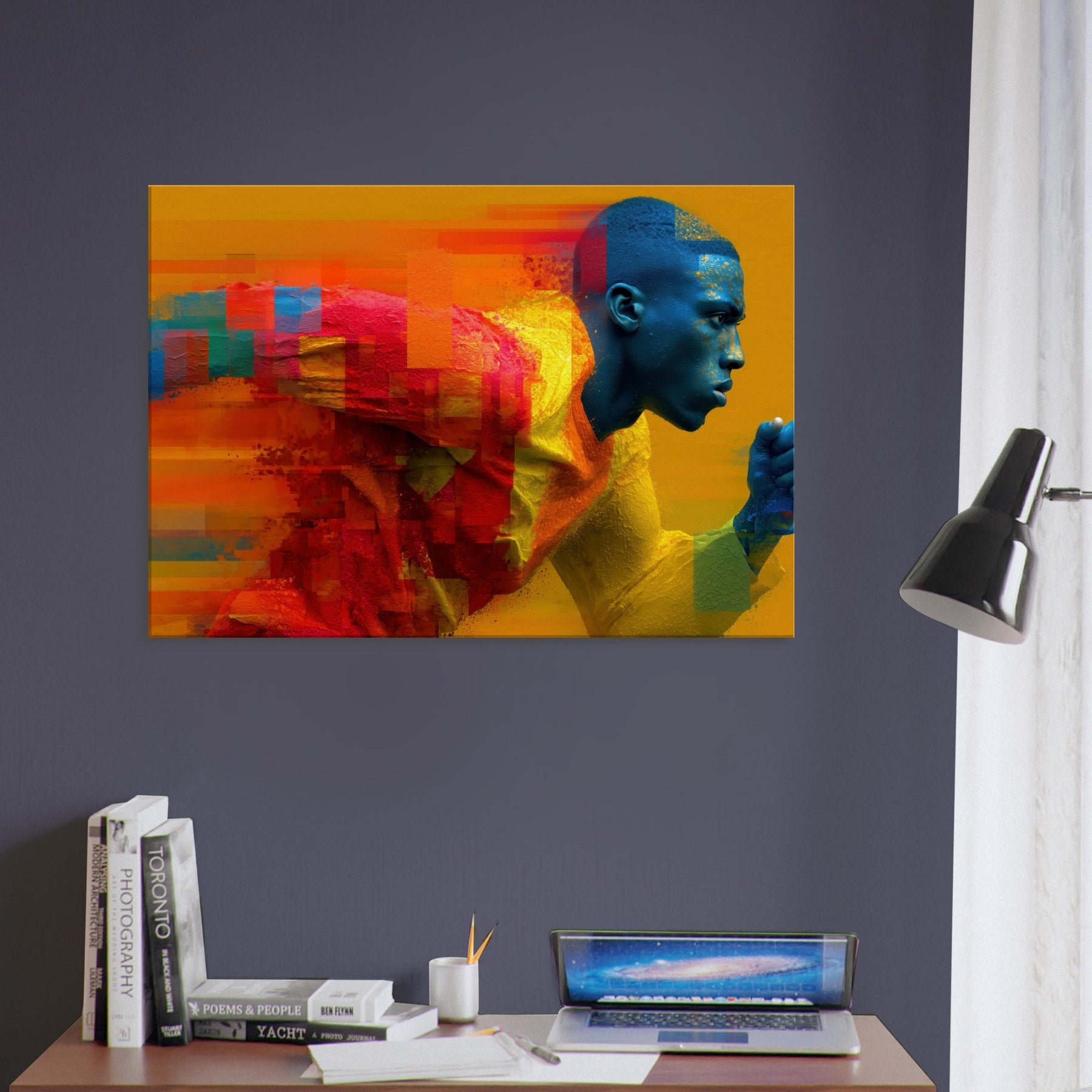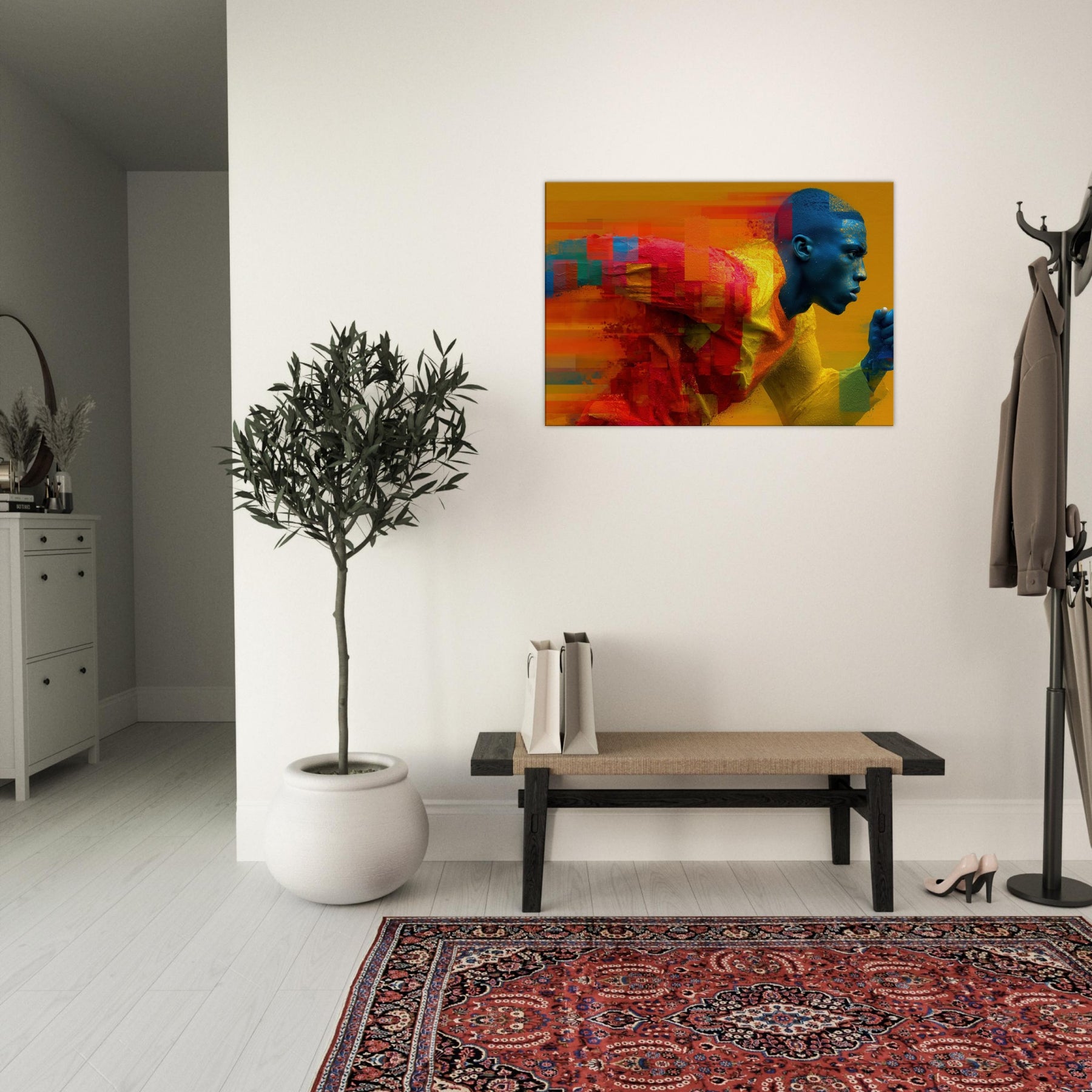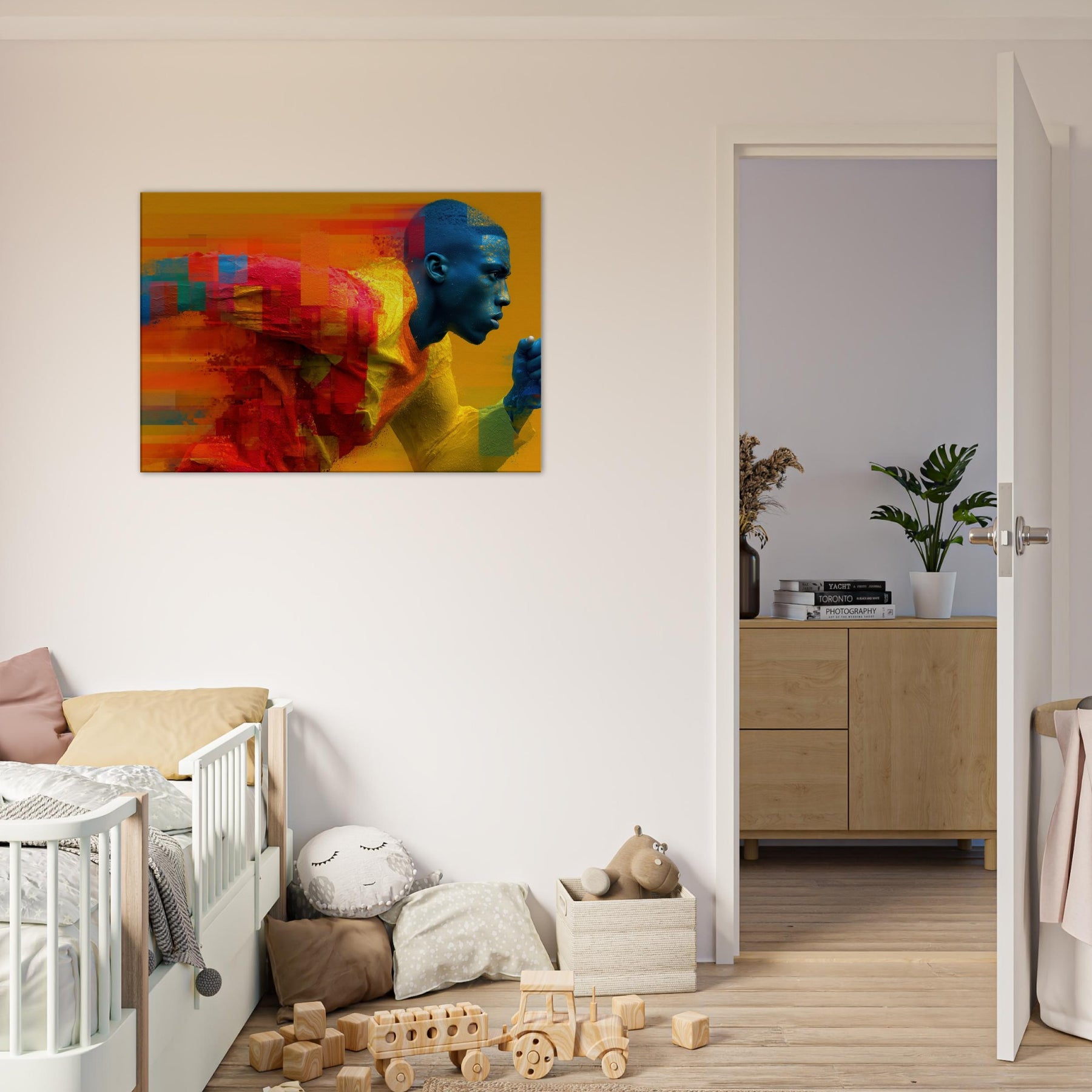With the Runner in Motion as its pulse, this piece bathes a room in electric light and tactile texture. Abstract forms streak across the canvas like a breath of wind, while a cobalt torso anchors the composition in calm counterpoint. The composition invites you to feel movement: a sense of momentum, urgency, and focus that energizes a living space without shouting. Perfect for a contemporary living room or studio, it adds drama, depth, and a luminous, modern atmosphere.