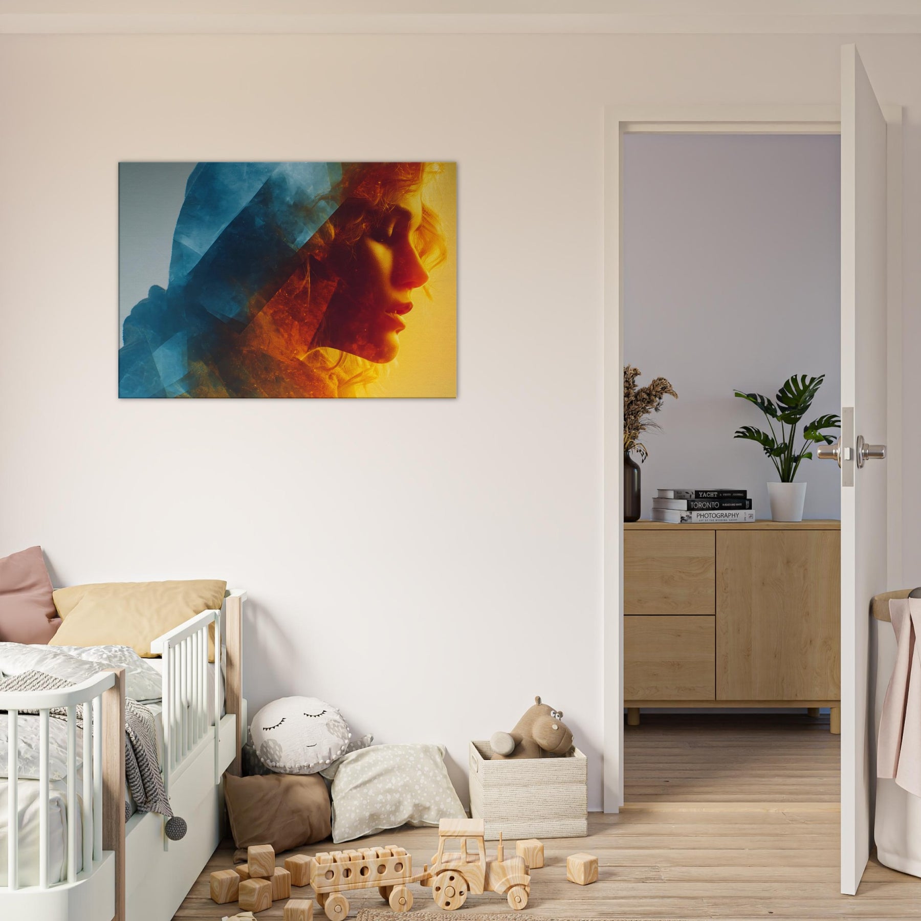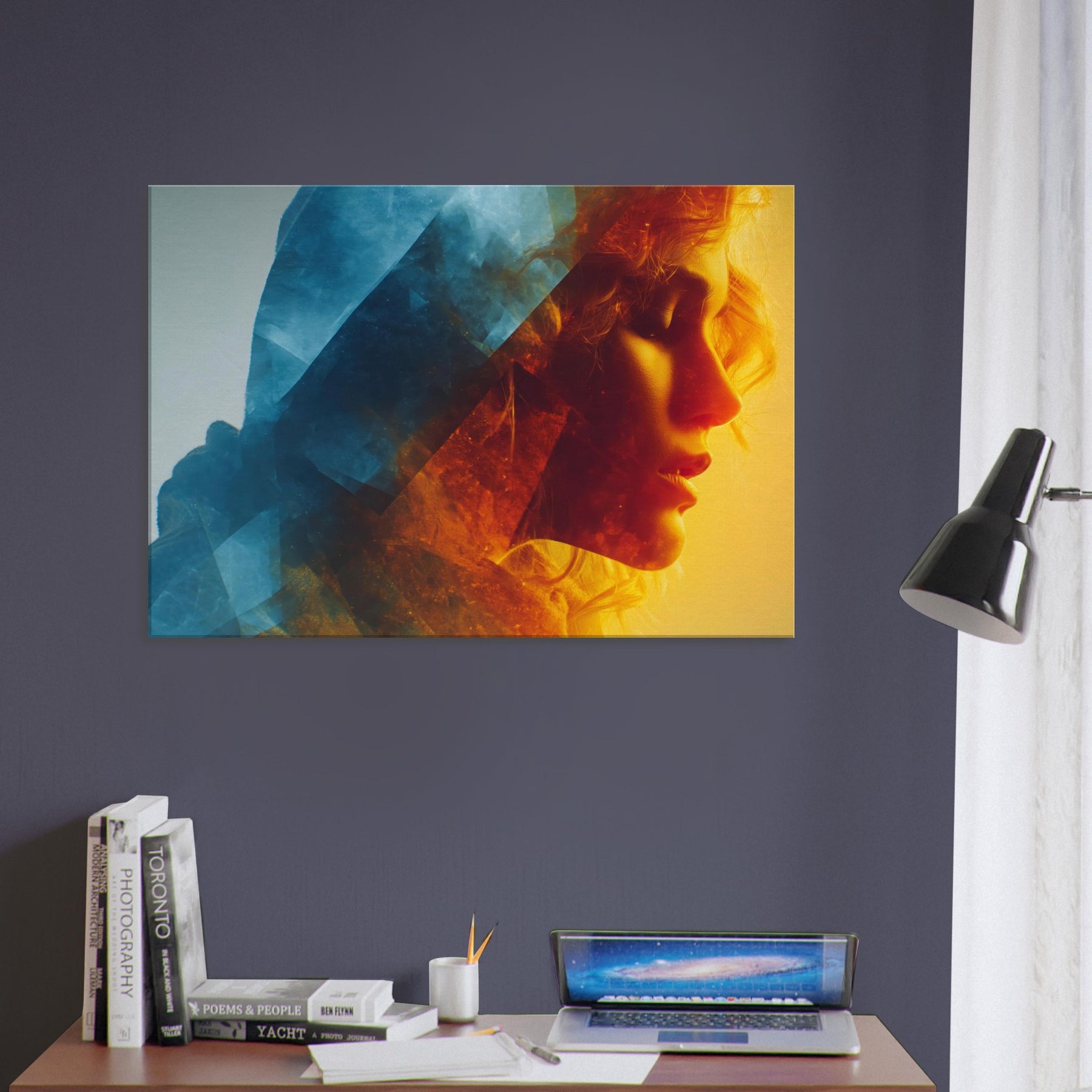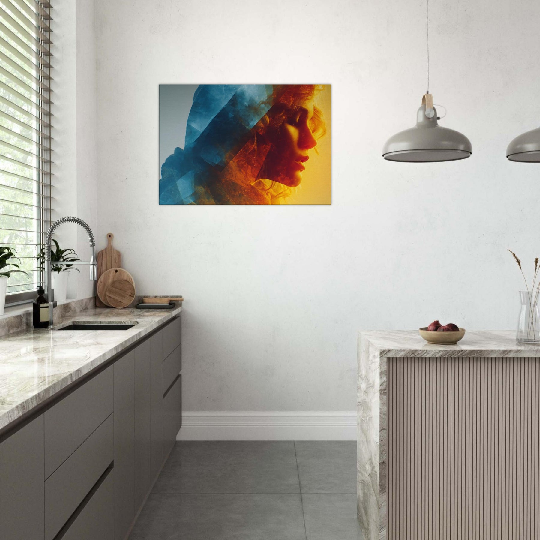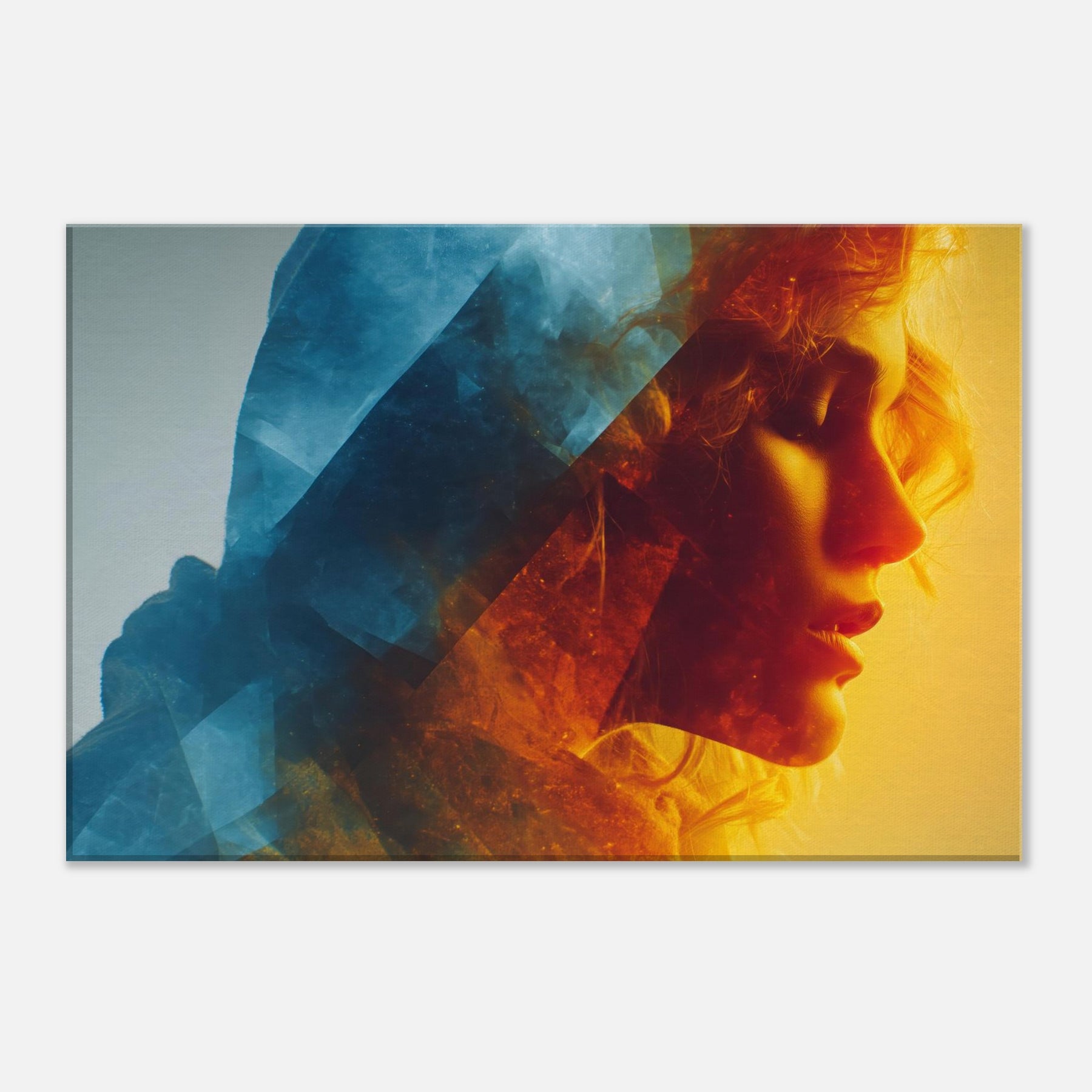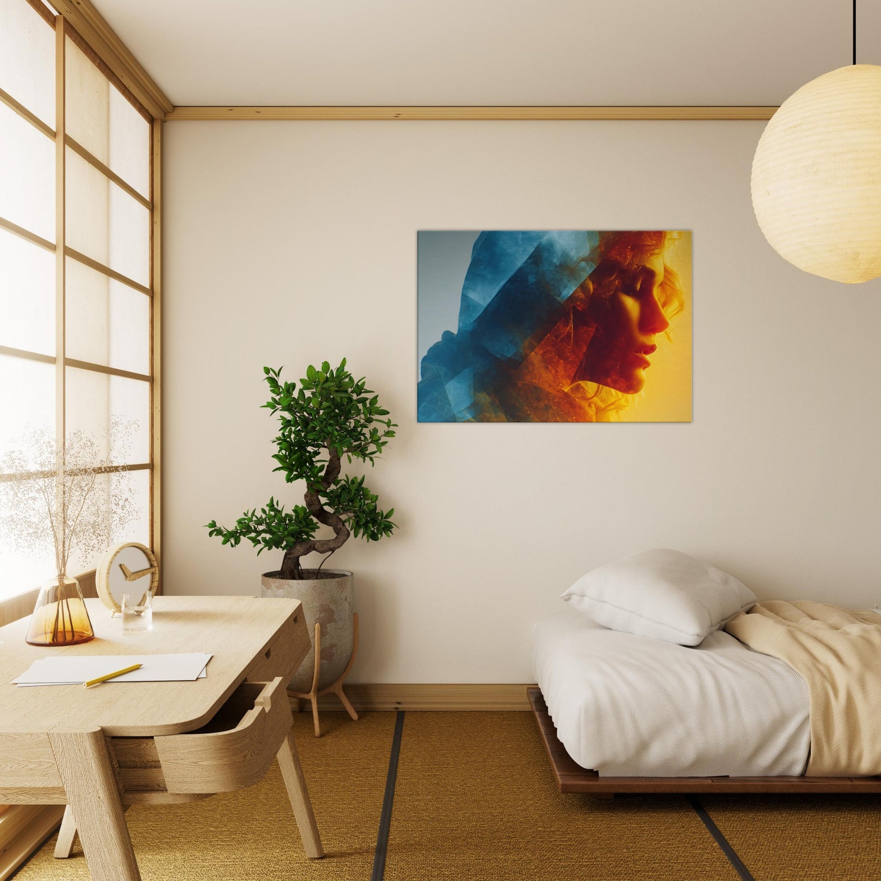 This piece centers on the Female Back, a sculpted silhouette that becomes a prism of color and memory. As blue and amber shards sweep across the image, a quiet air of introspection unfolds, inviting the room to breathe with soft light and shadow. The abstract forms cradle the skin and breath, transforming a private moment into a luminous centerpiece that elevates living spaces with mood, texture, and a whisper of motion.
