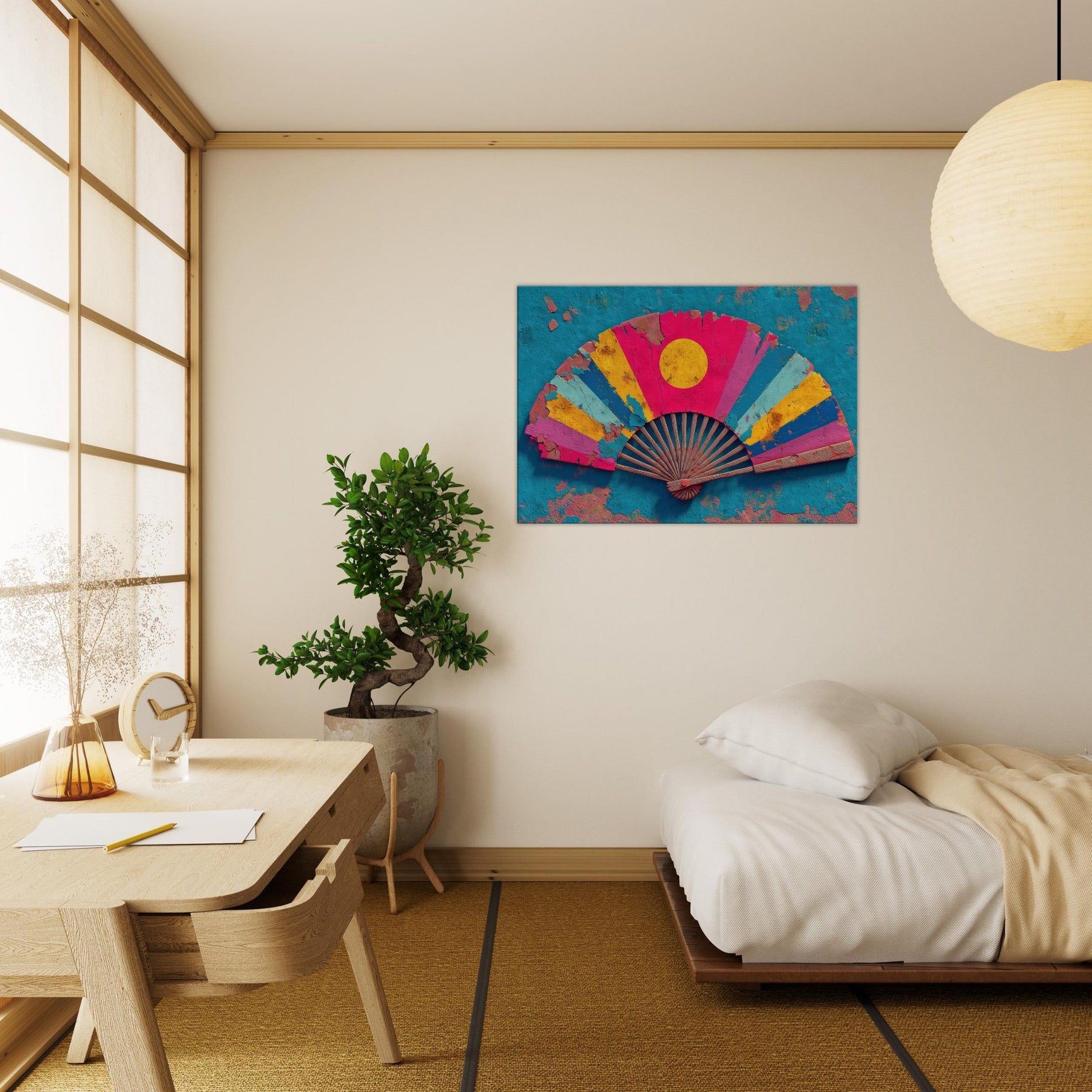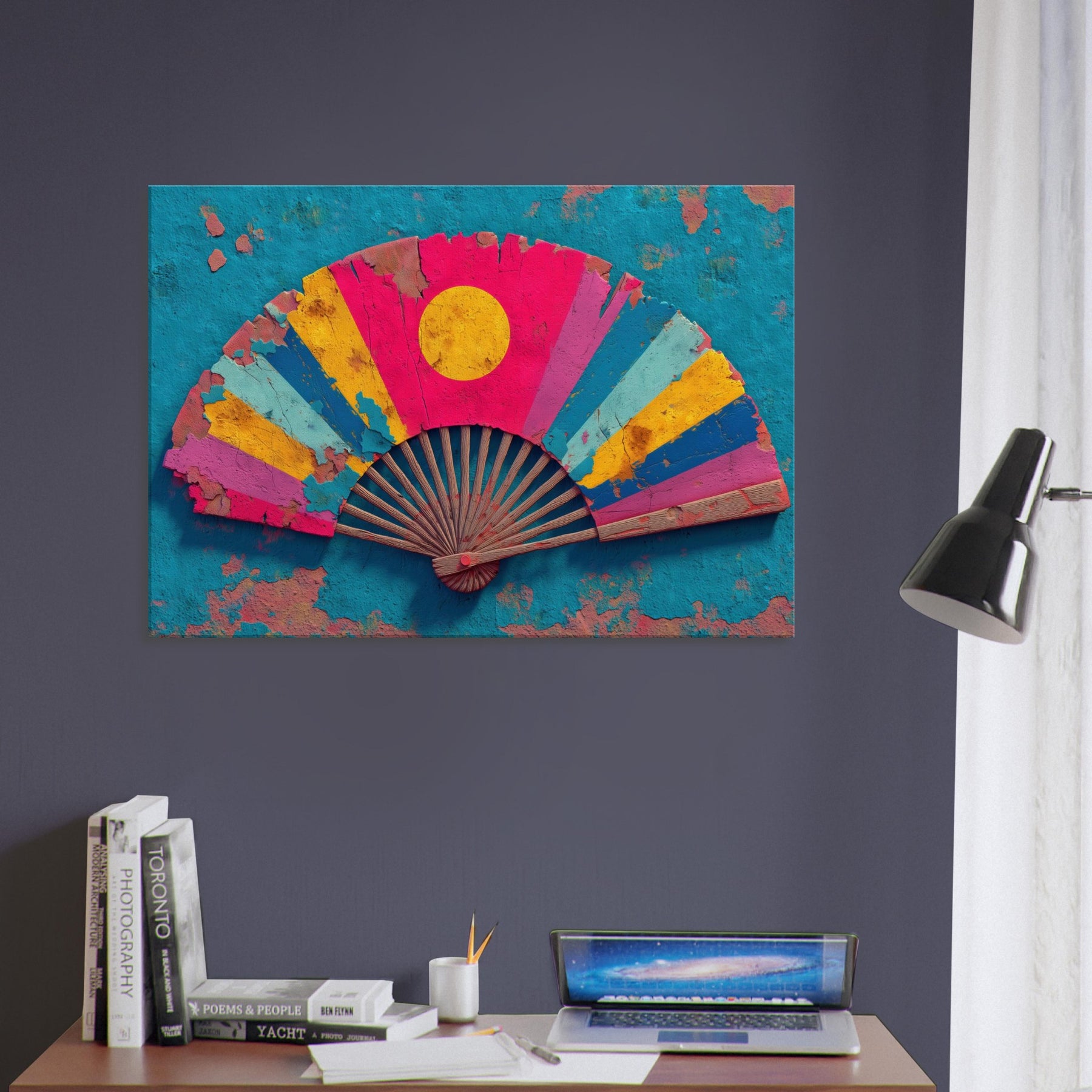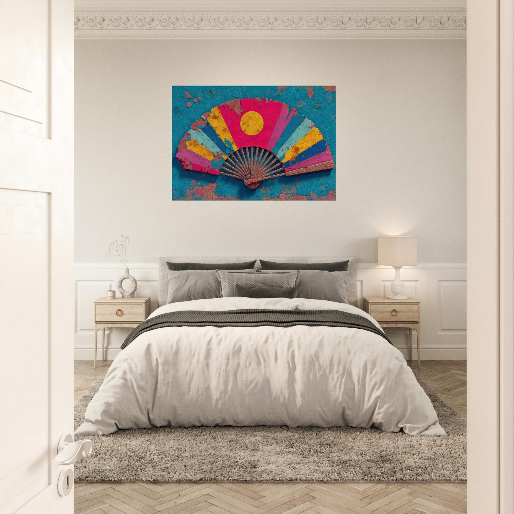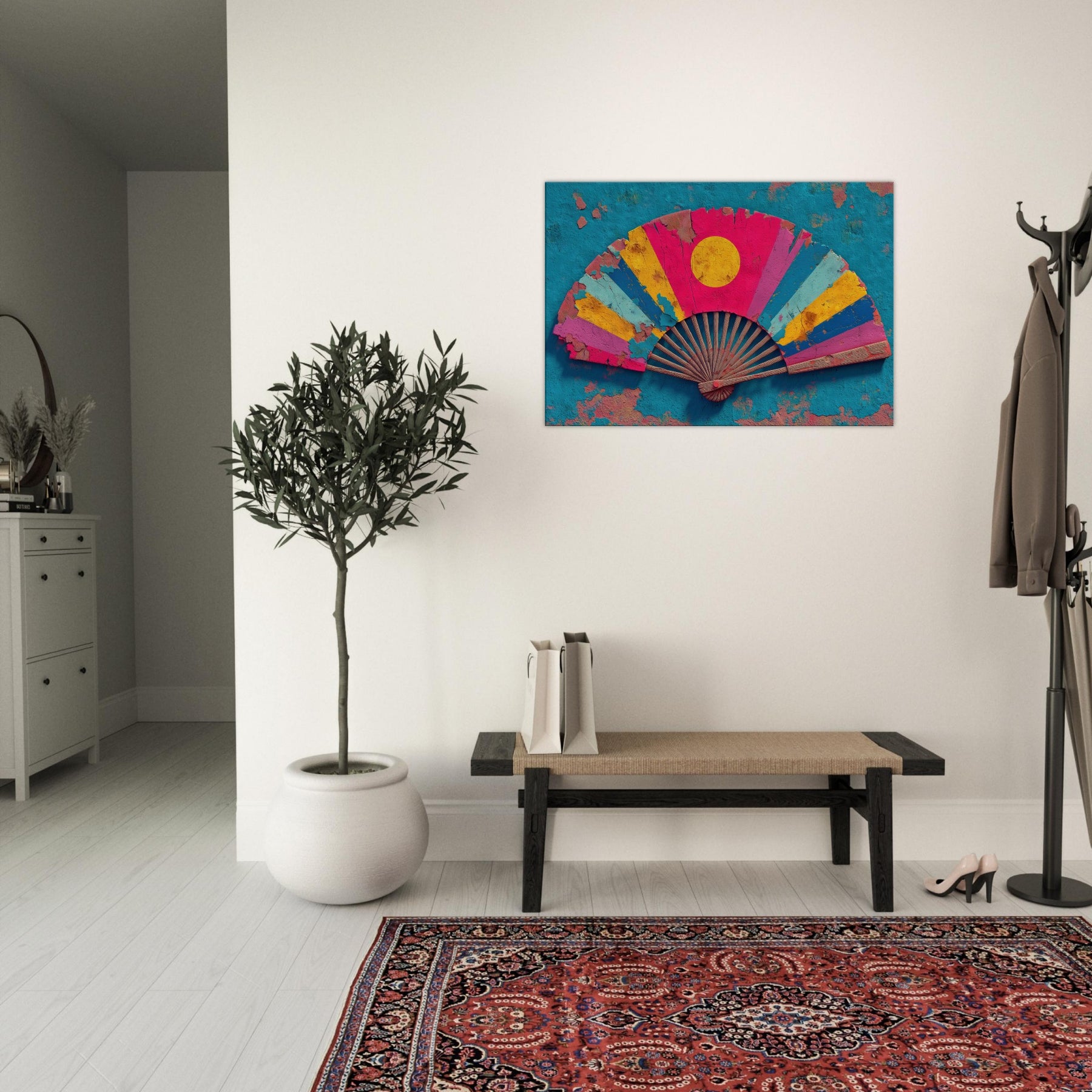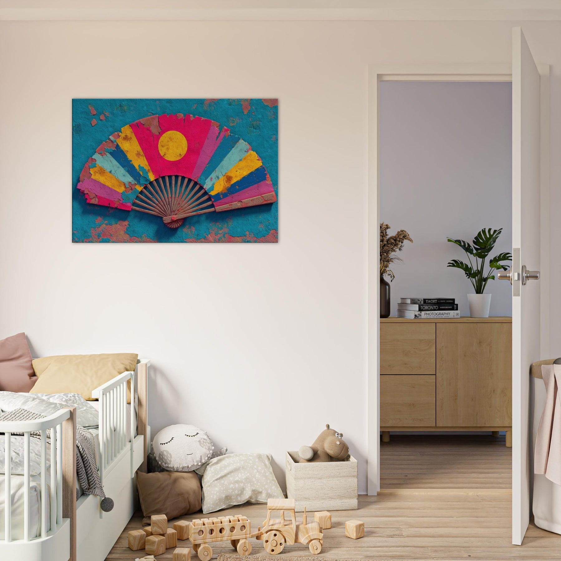 Hand Fan unfurls in a riot of color, turning a humble object into a whisper of summer wind. The abstract composition traces a circular sun and radiant segments, each strip a memory of heat, shade, and motion. This piece invites a room to breathe its textured surface catching light and inviting touch, the Hand Fan becoming a focal point that anchors a bright, contemporary mood. Hang it where conversations drift, and watch the space glow with warmth, play, and quiet drama.