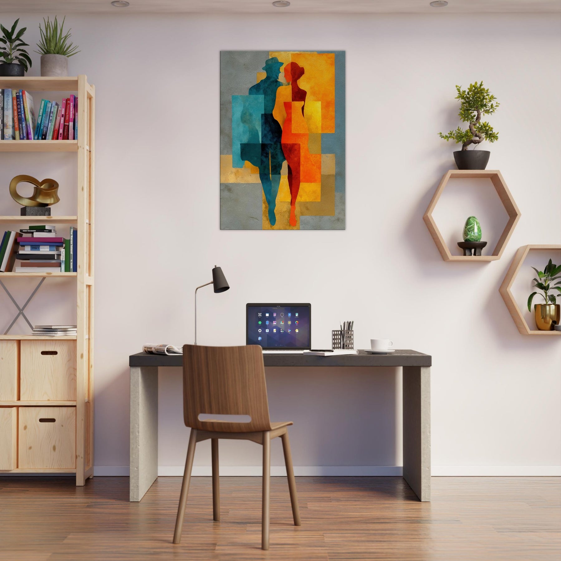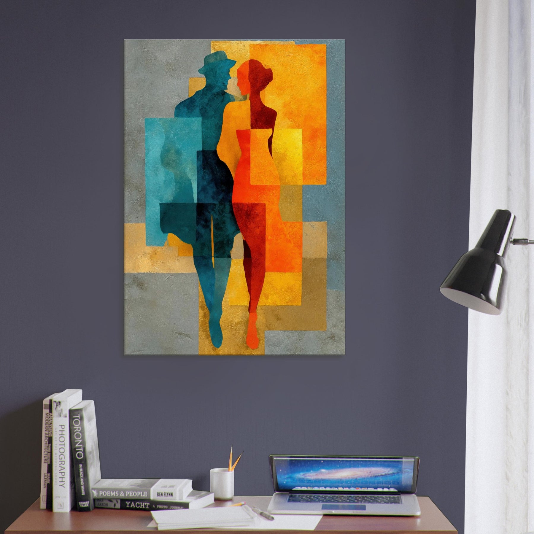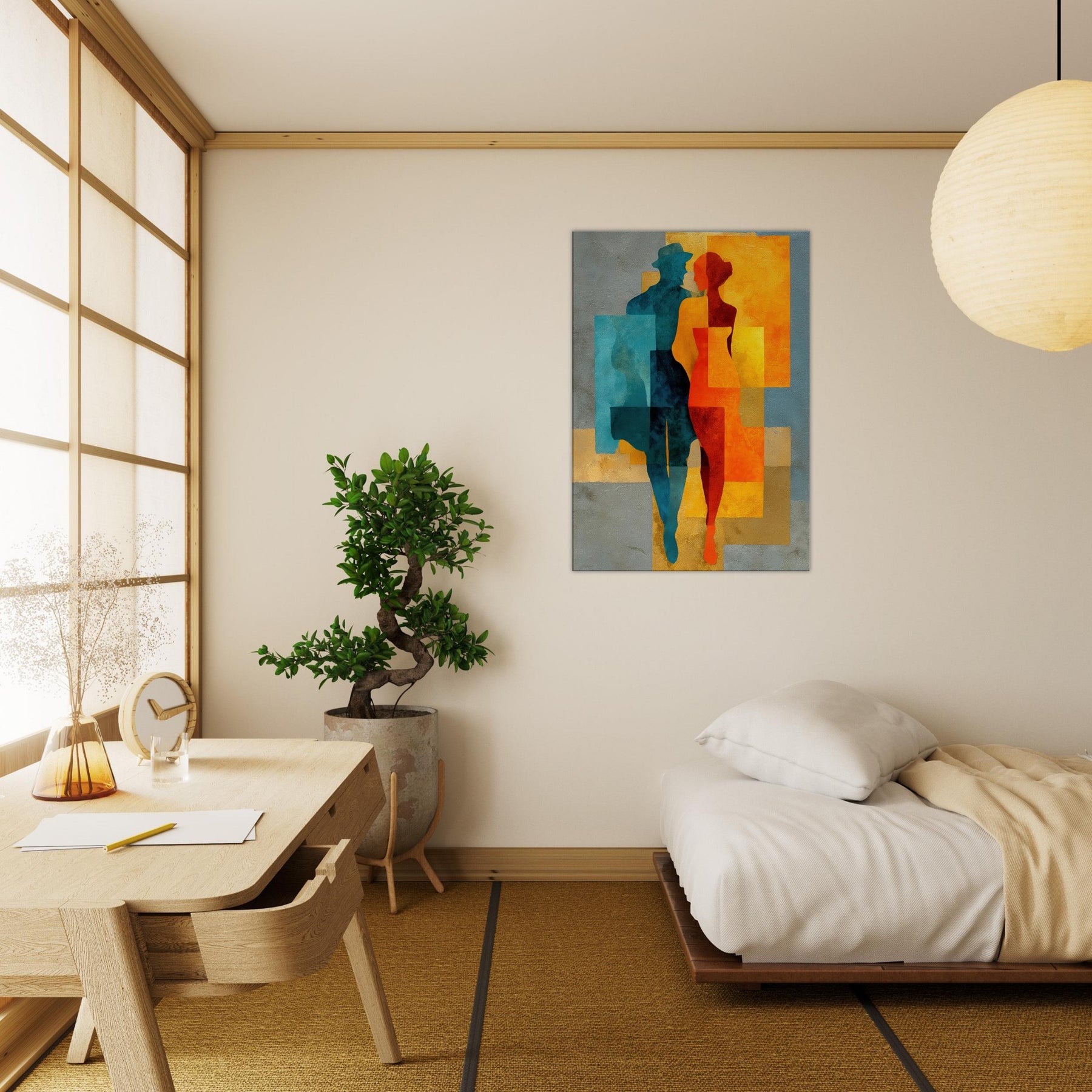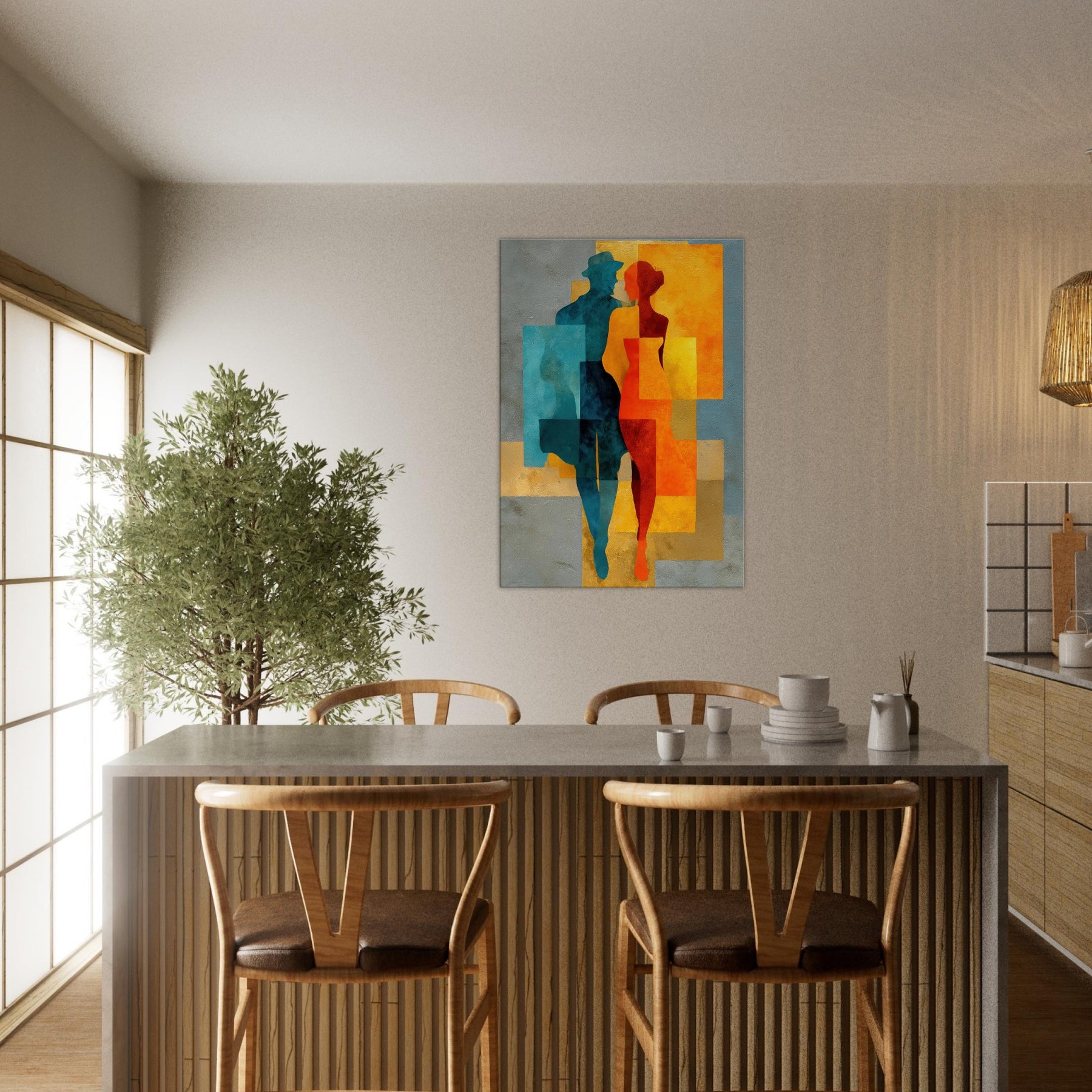 Couple Walking emerges as a luminous narrative of connection and motion. Painted in overlapping color blocks, this piece travels from cool teals to blazing oranges, inviting the eye to glide along their silhouettes. The atmosphere is both intimate and expansive, like a quiet street at sunset where footsteps echo softly on a canvas of light. Hang it in a living room or hallway to cultivate warmth, dialogue, and a sense of shared direction the kind of art that makes a space feel alive.