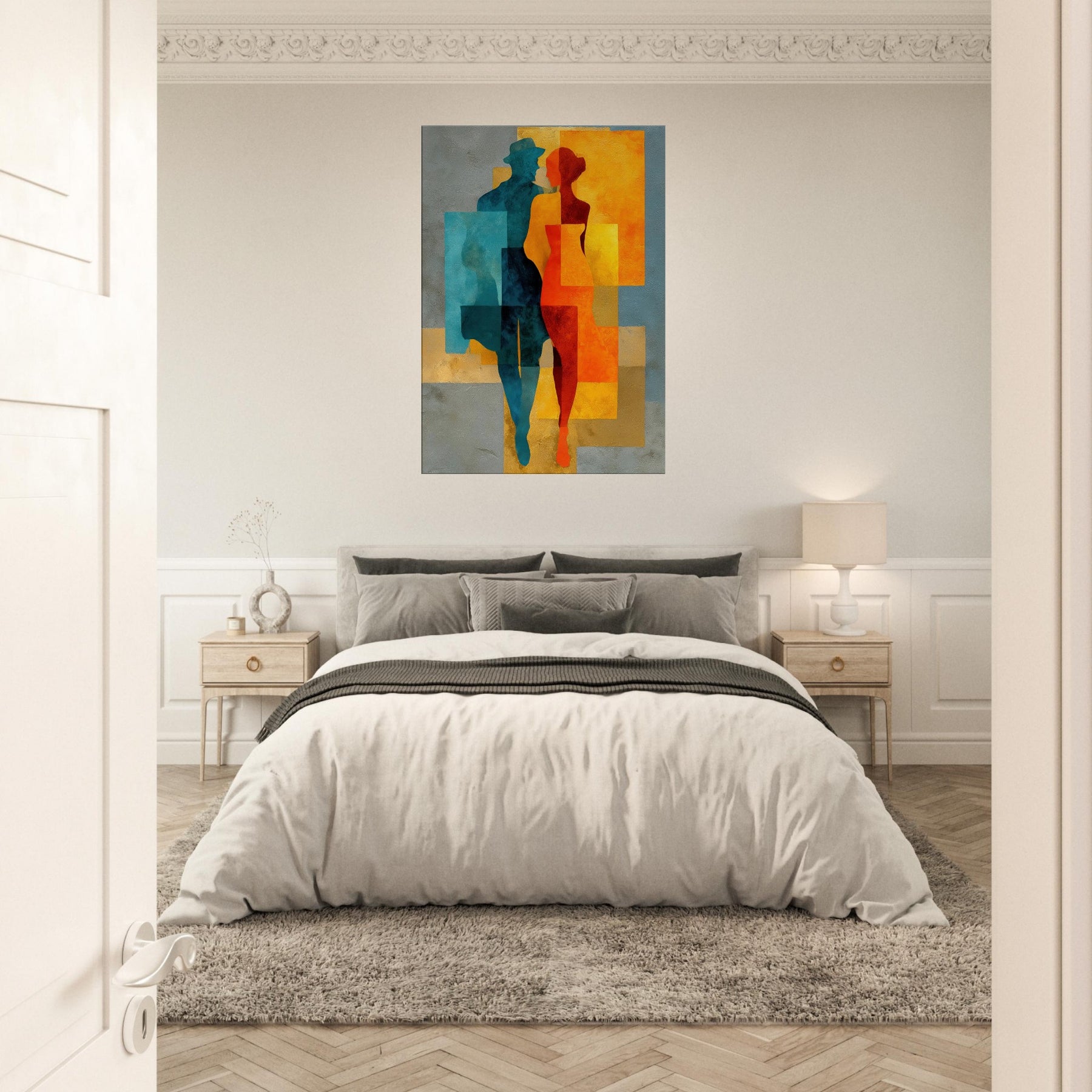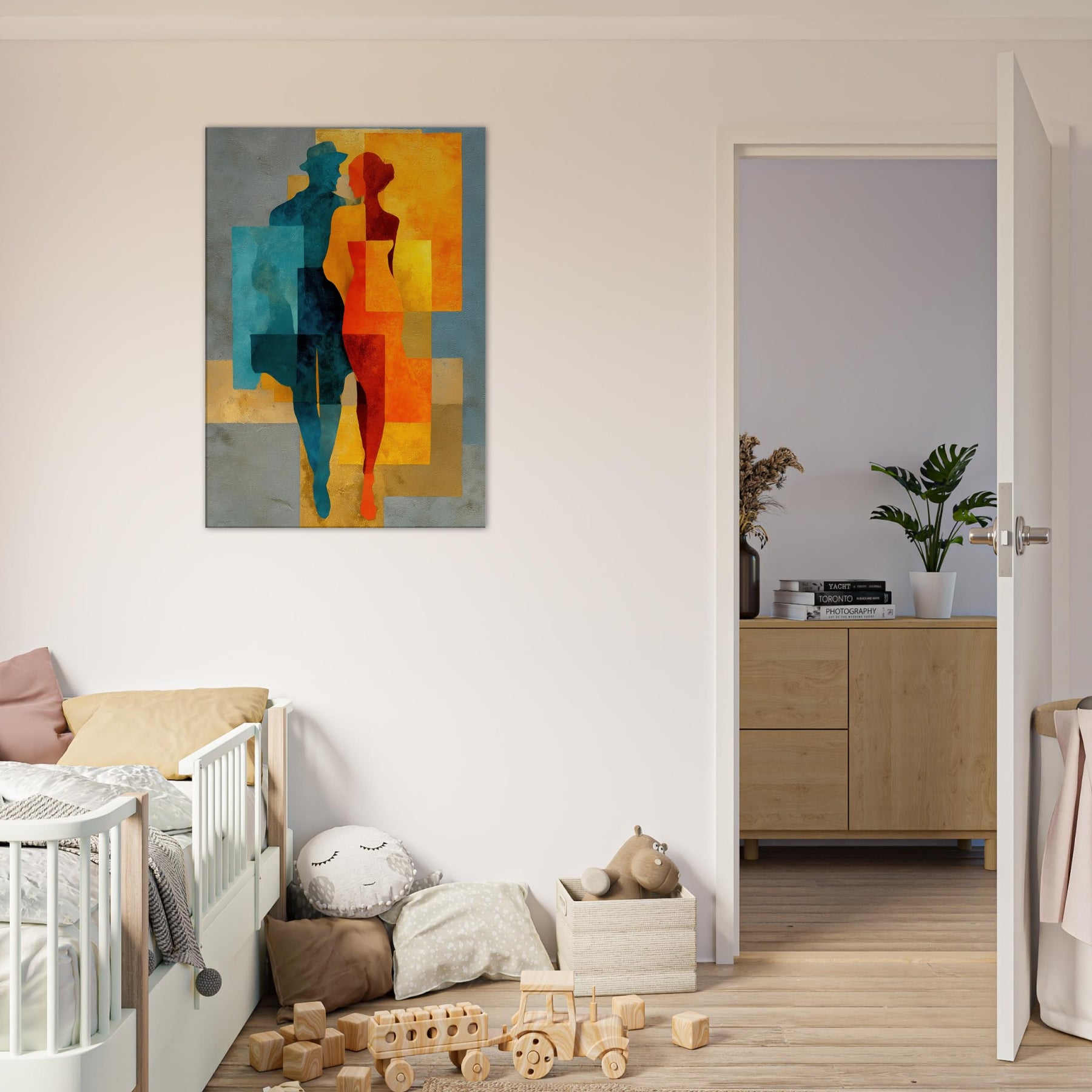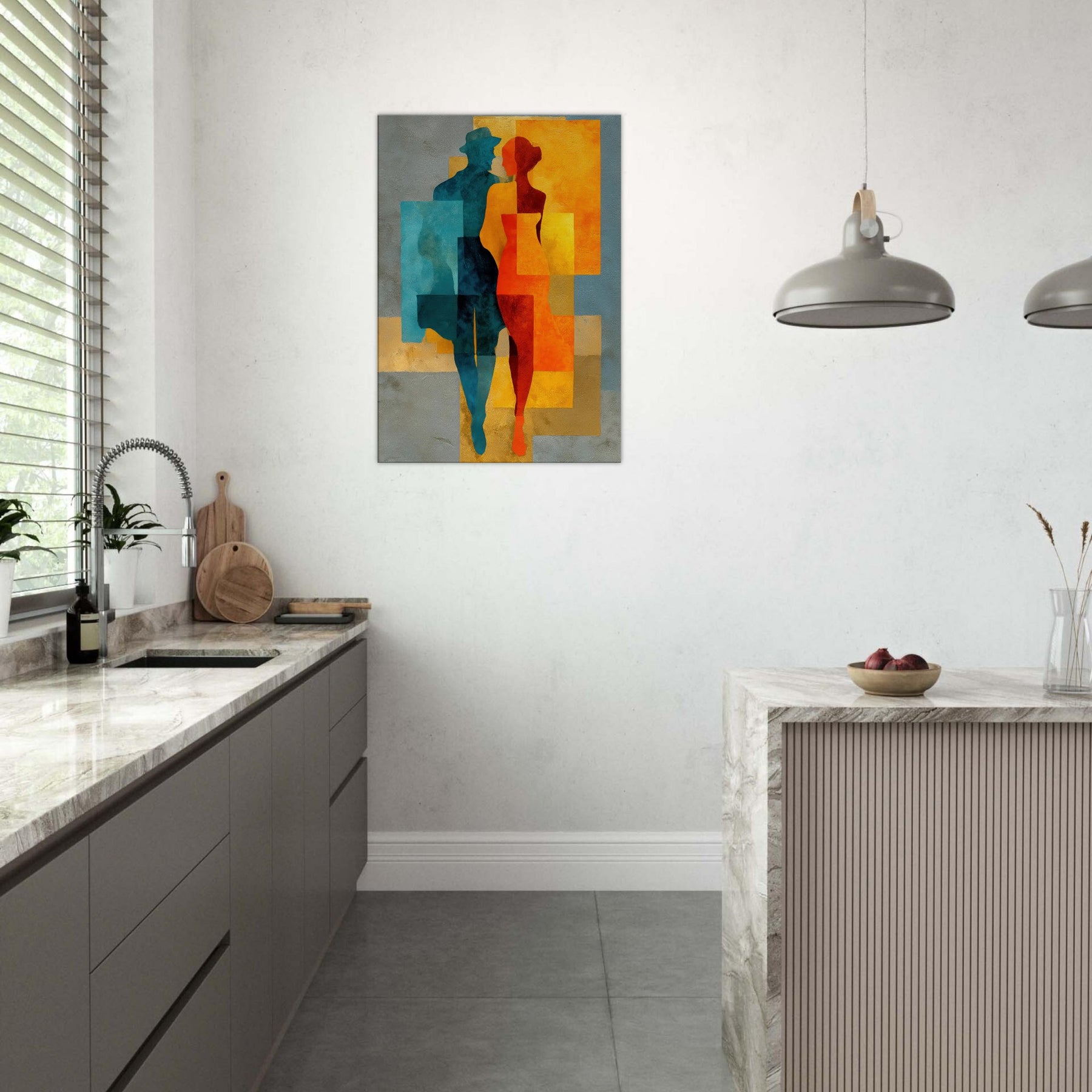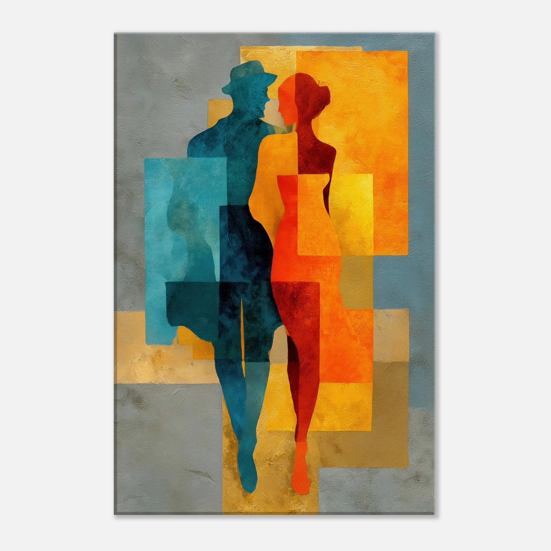 Couple Walking emerges as a luminous narrative of connection and motion. Painted in overlapping color blocks, this piece travels from cool teals to blazing oranges, inviting the eye to glide along their silhouettes. The atmosphere is both intimate and expansive, like a quiet street at sunset where footsteps echo softly on a canvas of light. Hang it in a living room or hallway to cultivate warmth, dialogue, and a sense of shared direction the kind of art that makes a space feel alive.