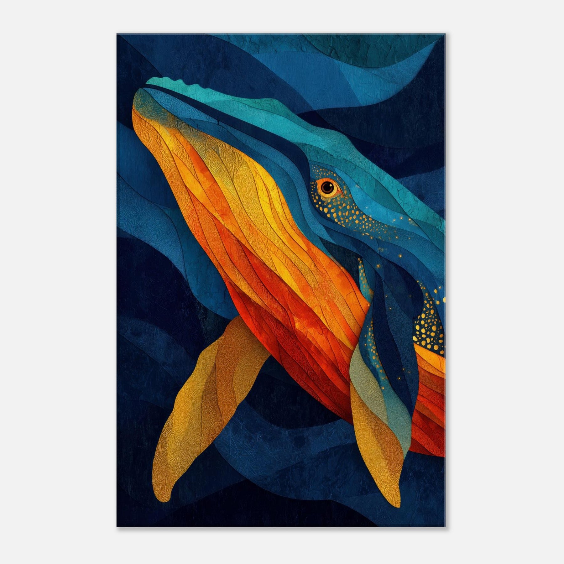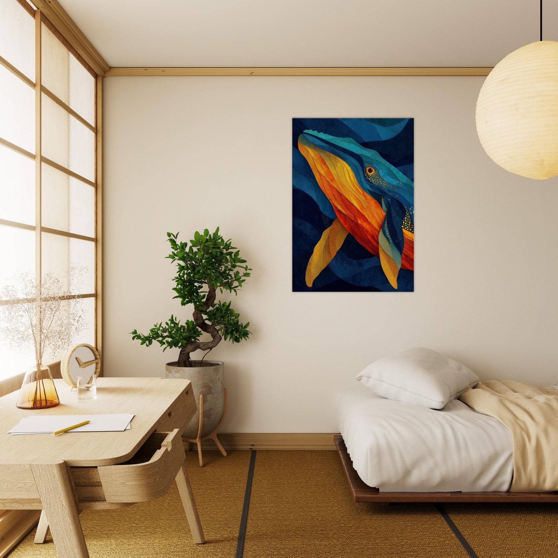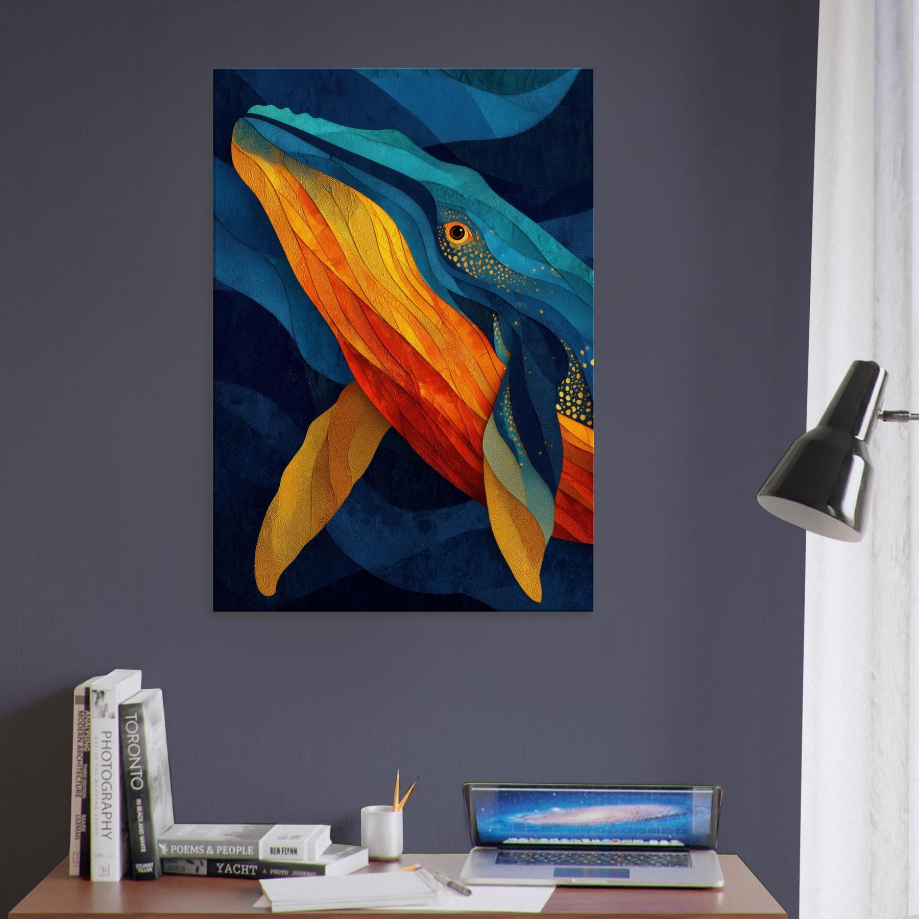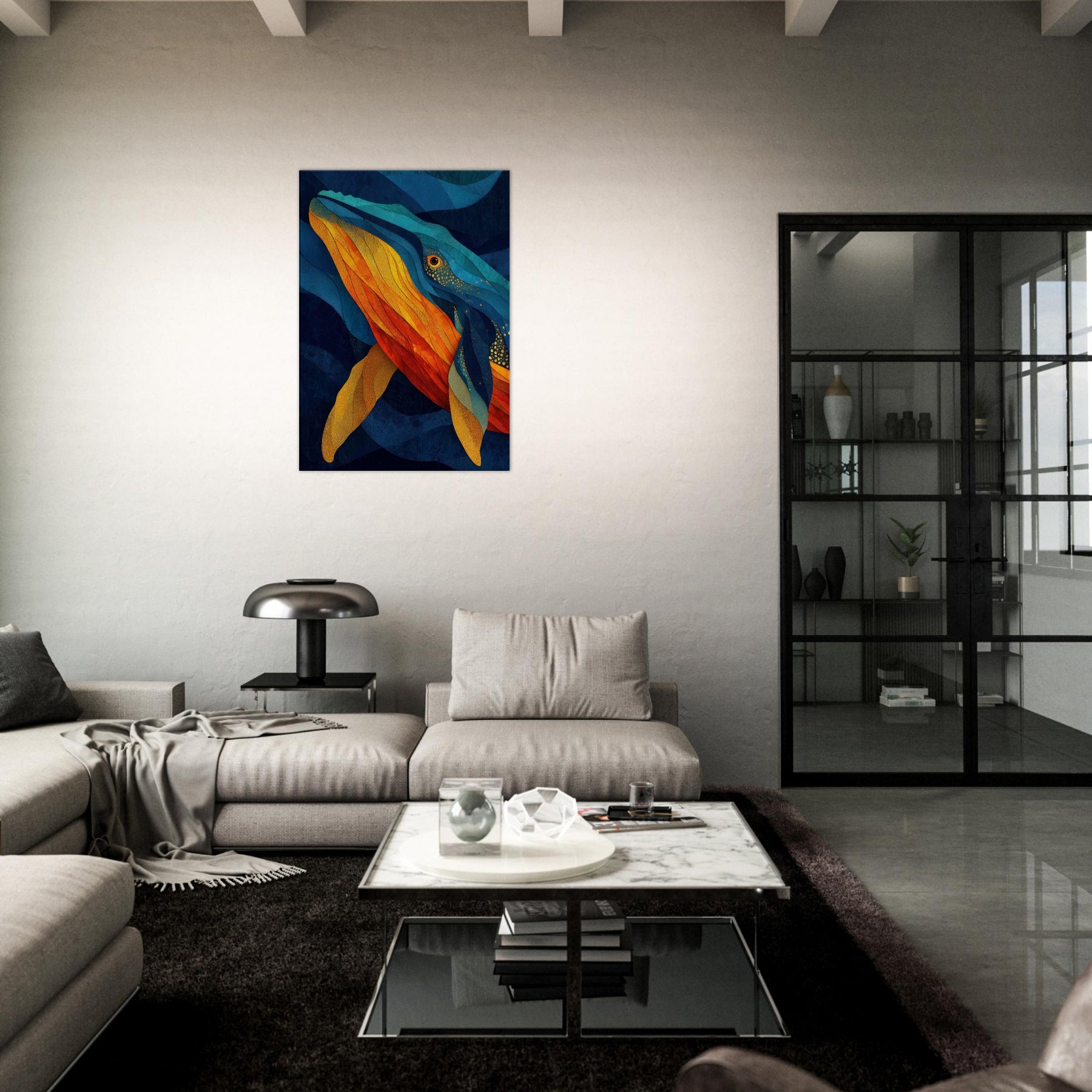 An abstract ode to the Whale, this piece threads vibrant ribbons of orange and blue into a living current. The layered textures invite the eye to glide along the creature's silhouette, echoing the breath and weight of the sea. In a softly lit room, it conjures warmth and depth an atmospheric focal point above a sofa or console. Let the Whale's presence embolden your space with oceanic calm, wonder, and a whisper of light.