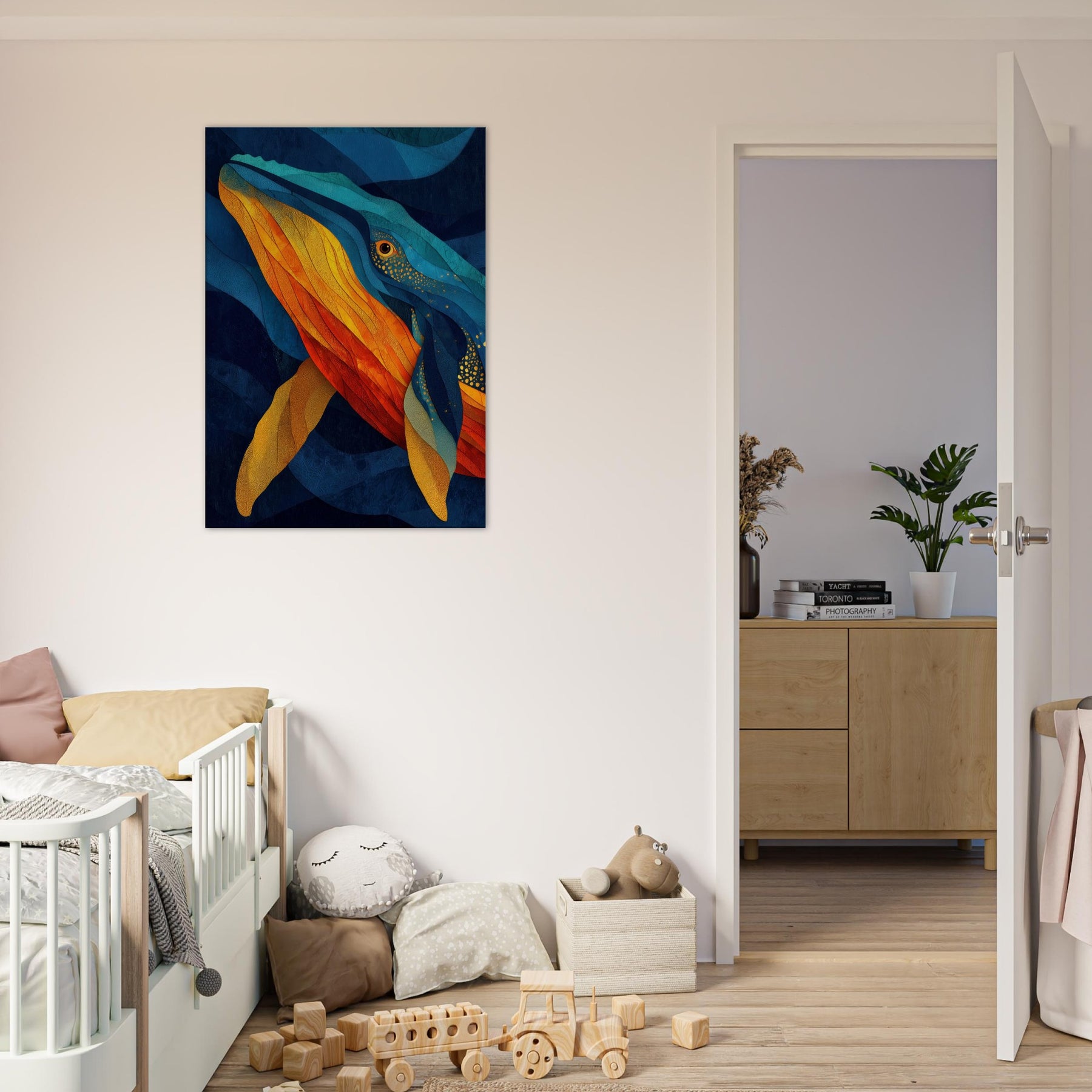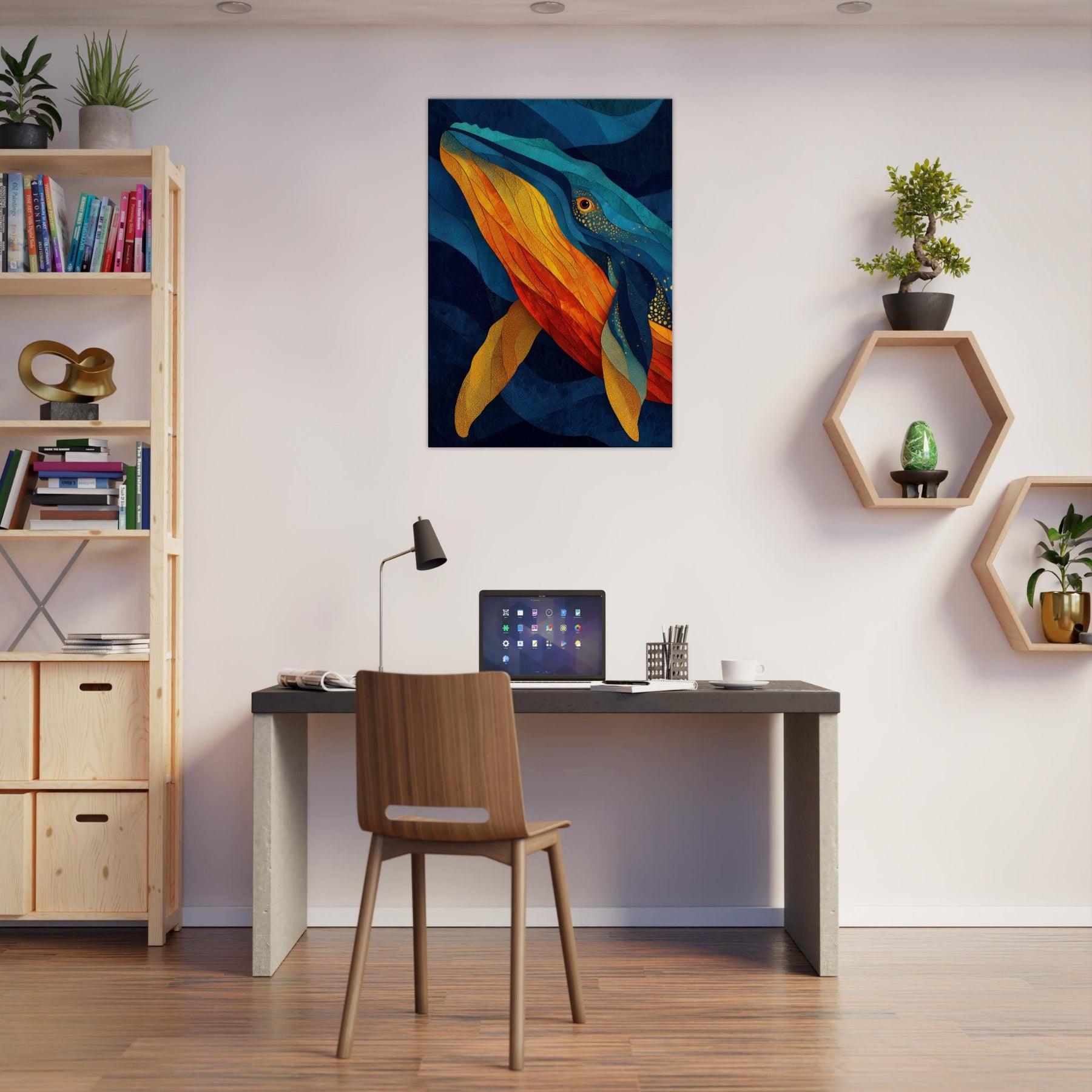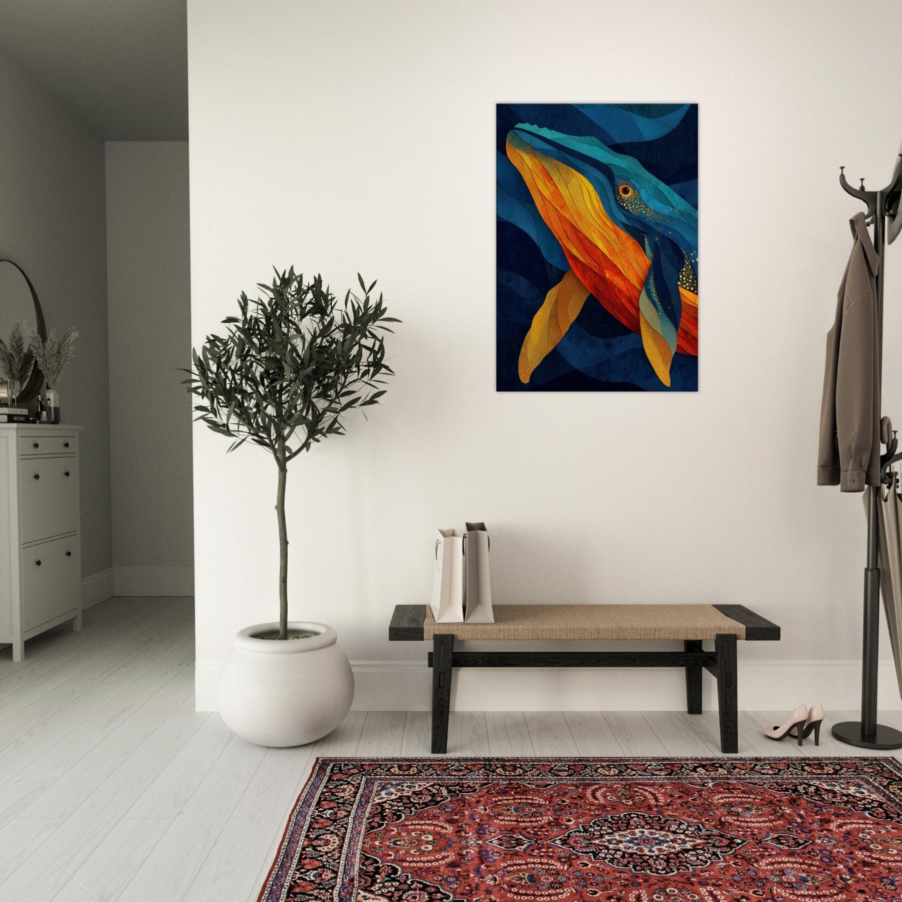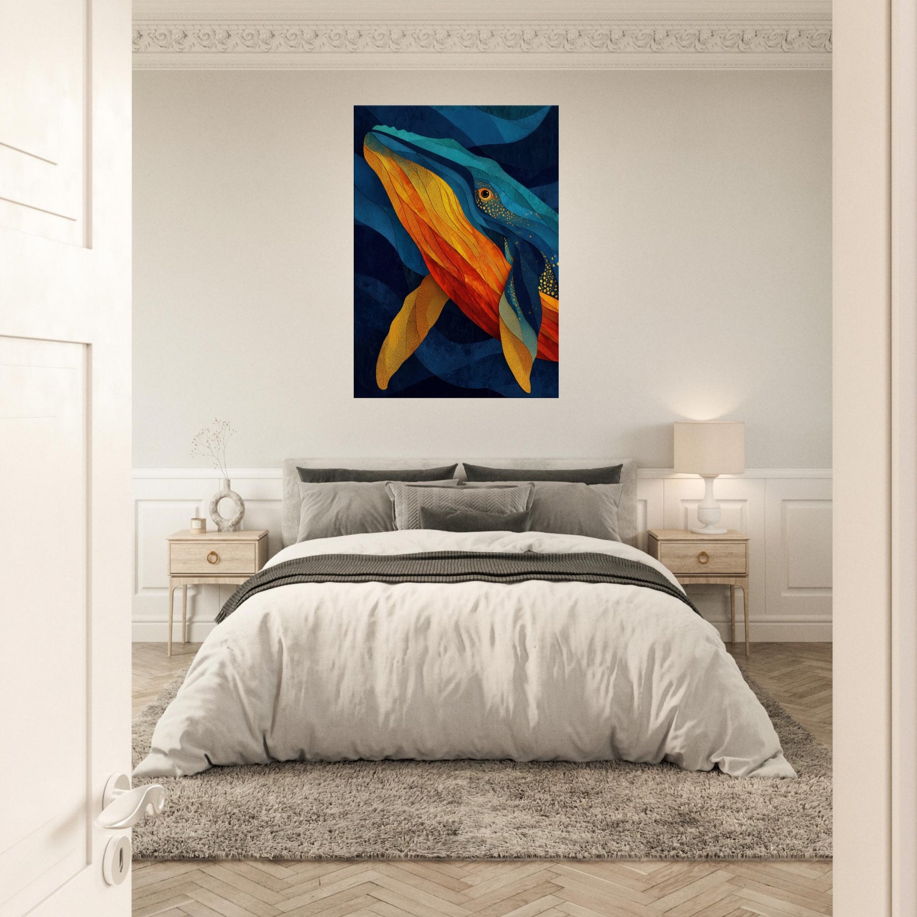 An abstract ode to the Whale, this piece threads vibrant ribbons of orange and blue into a living current. The layered textures invite the eye to glide along the creature's silhouette, echoing the breath and weight of the sea. In a softly lit room, it conjures warmth and depth an atmospheric focal point above a sofa or console. Let the Whale's presence embolden your space with oceanic calm, wonder, and a whisper of light.