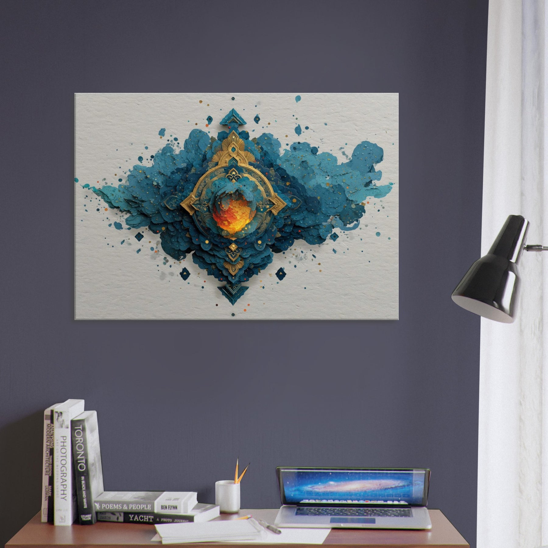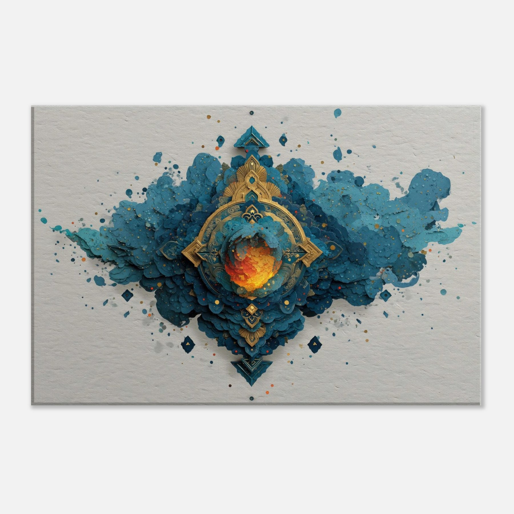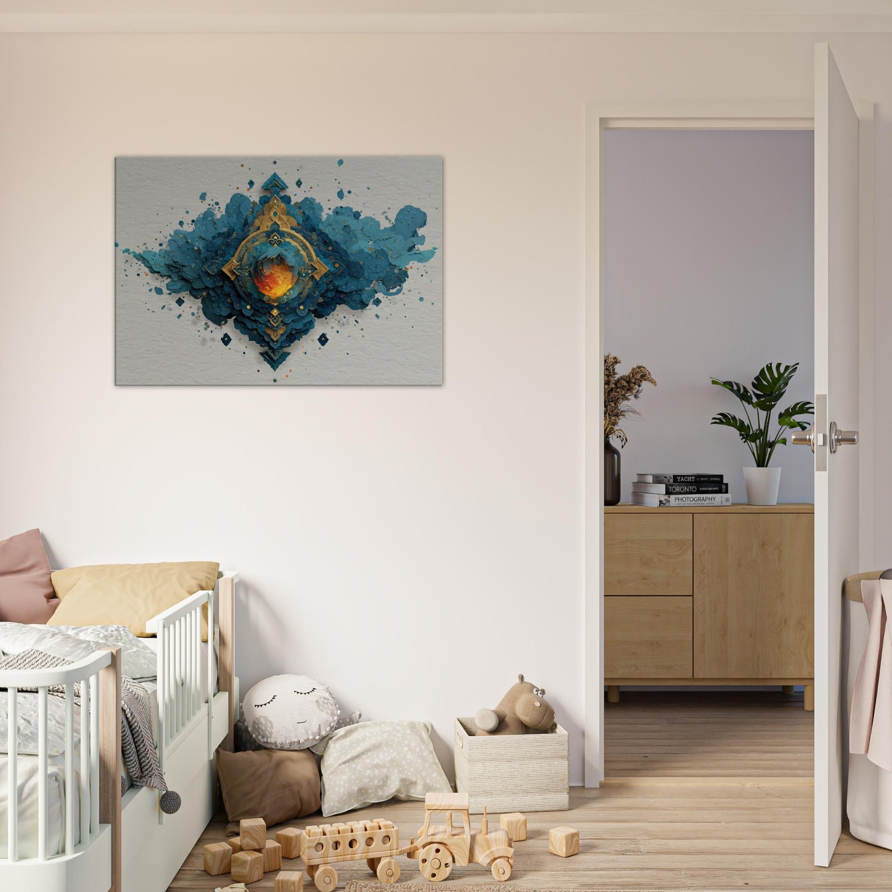 As the primary subject, Smudge Smoke Swirl unfurls in tones of deep teal and molten gold, carrying your space into a whispered horizon of possibility. This abstract, mystical composition breathes like a breath of wind blue veils curling around a radiant core of molten orange and gold. The delicately wrought geometric frame anchors the swirl, lending a temple like calm to any wall. In a living room or study, it becomes a meditative focal point inviting quiet reflection, soft light, and an atmosphere of refined mystery that sensorially elevates the daily experience.