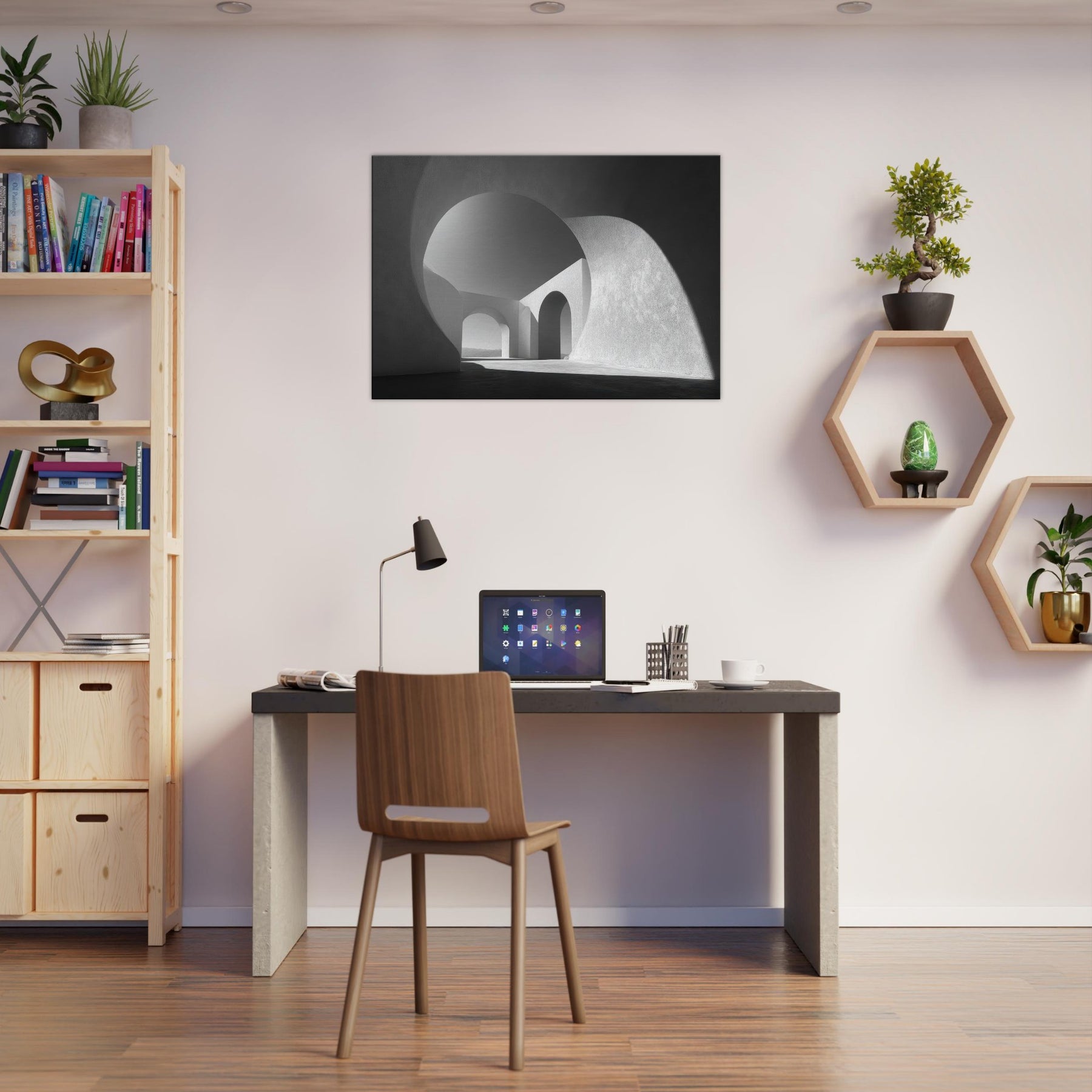 The Archway becomes a vignette of urban living the feeling of sun warmed concrete and distant horizons distilled into calm, elegant form. Hang it in a living room or hallway to add a timeless architectural mood that nourishes focus, conversation, and serene daily rituals.