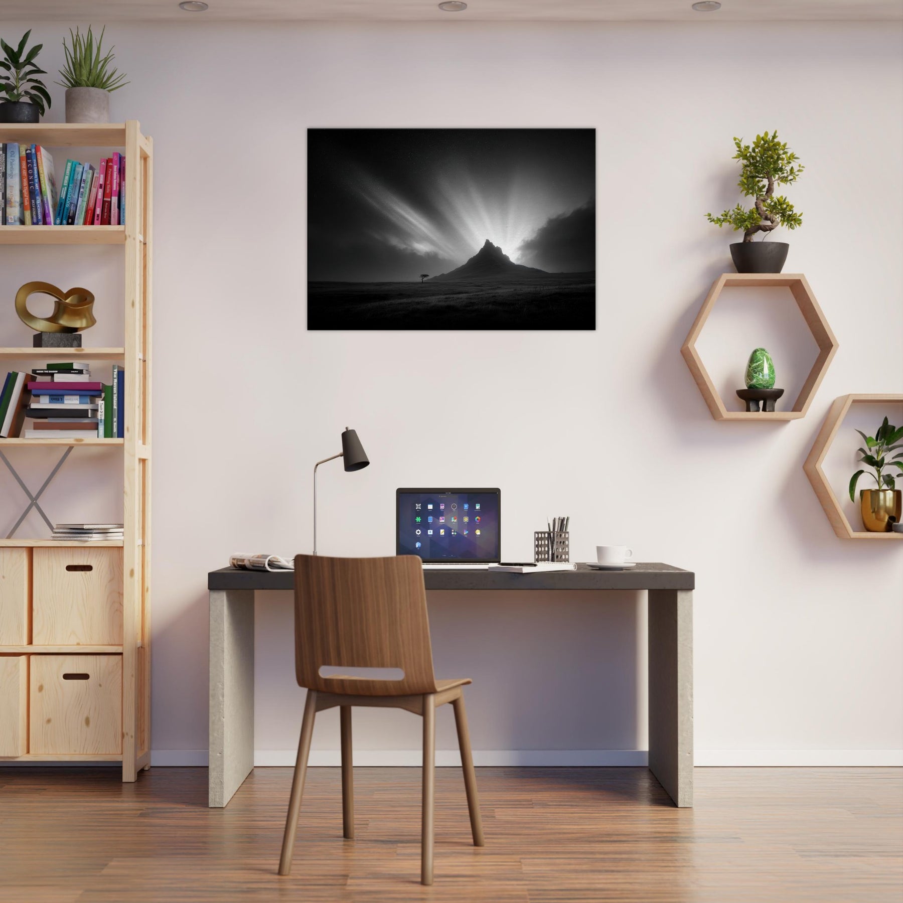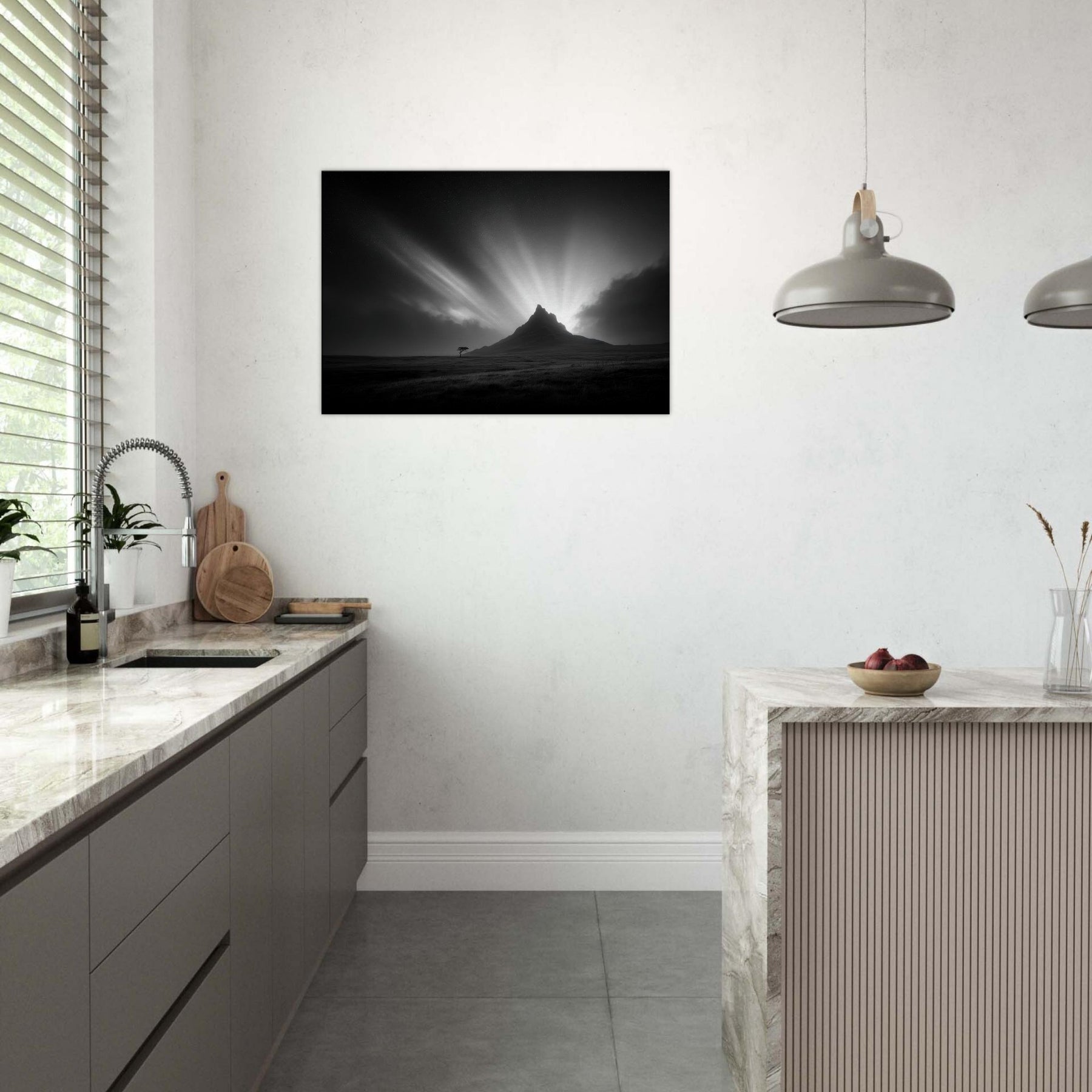 In a living space, its monochrome drama acts as a serene focal point, soft, cinematic, and timeless, encouraging slower evenings, thoughtful conversations, and a sense of vast, open air even in interiors. Perfect for modern homes that crave poetry in quiet contrast.